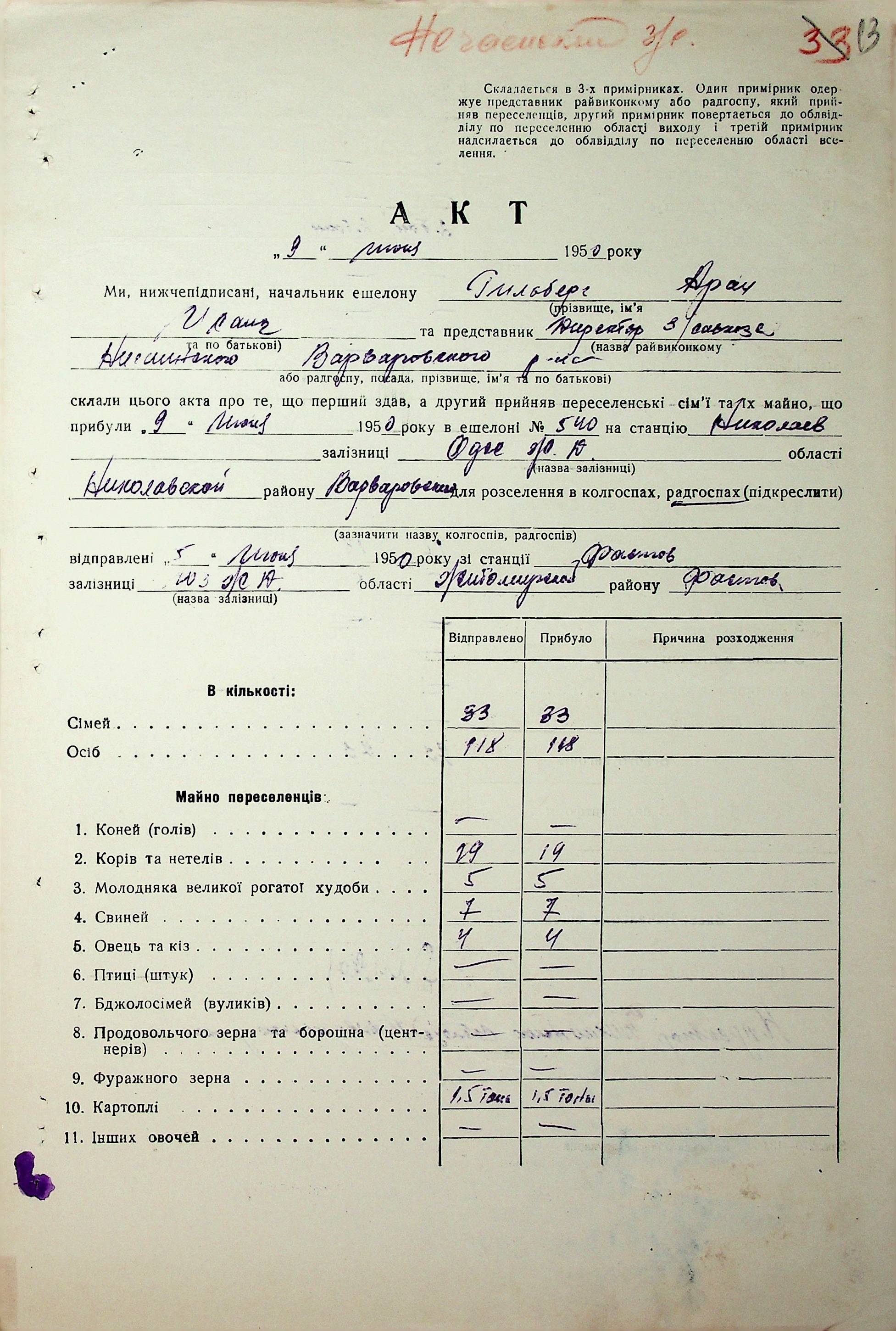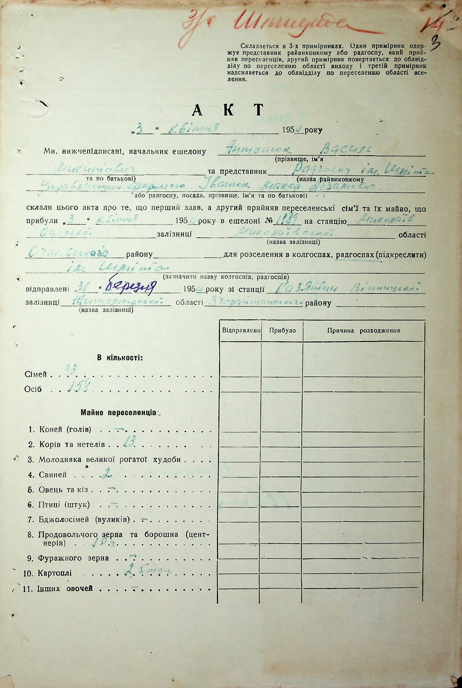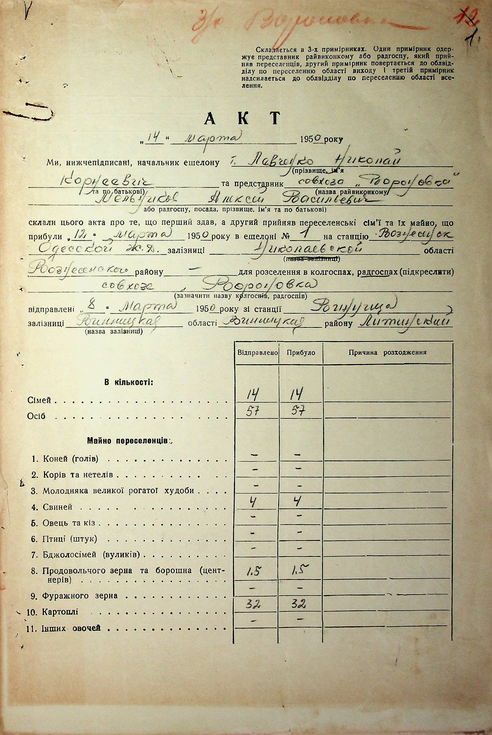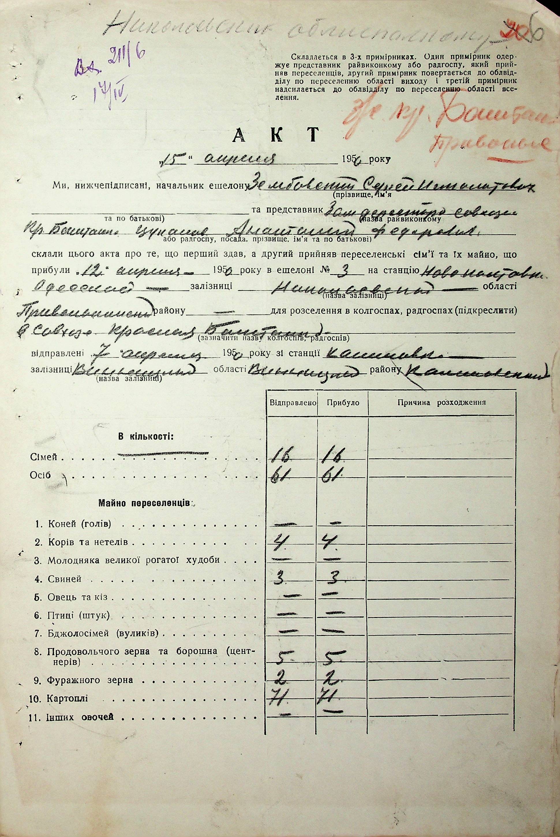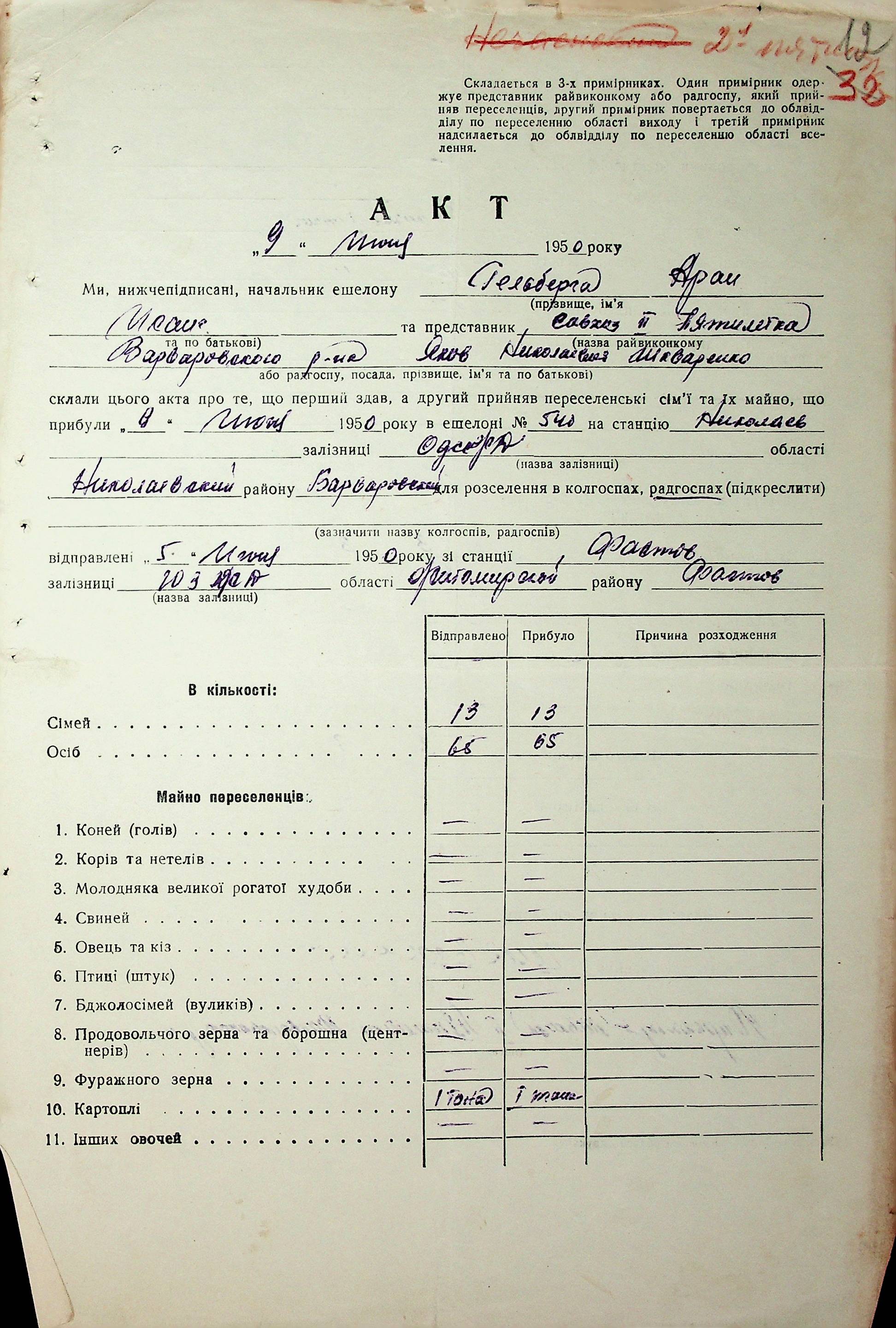 • • • • Справа № 68 “Документи (акти, звіт, списки, розшифровка, довідка, реєстр) про прибуття сімей переселенців та їх майна із Вінницької, Житомирської, Закарпатської, Чернігівської та Тернопільської областей; про проходження санітарної обробки та кількість прийнятої від переселенців картоплі”