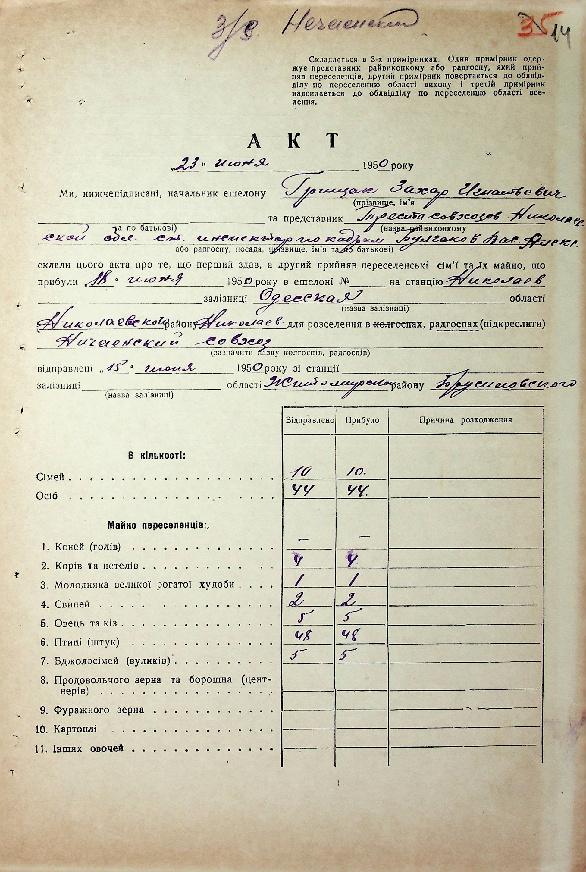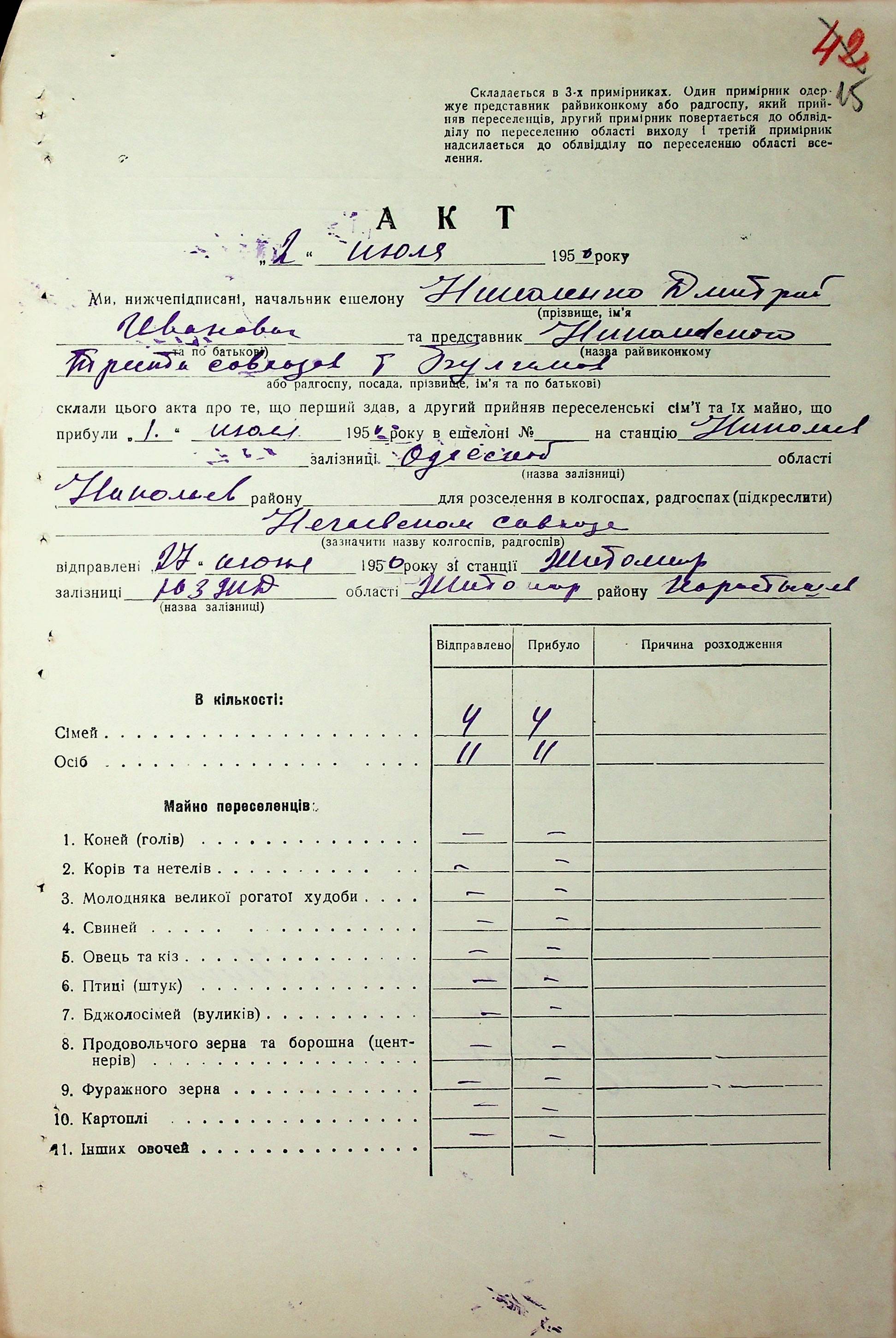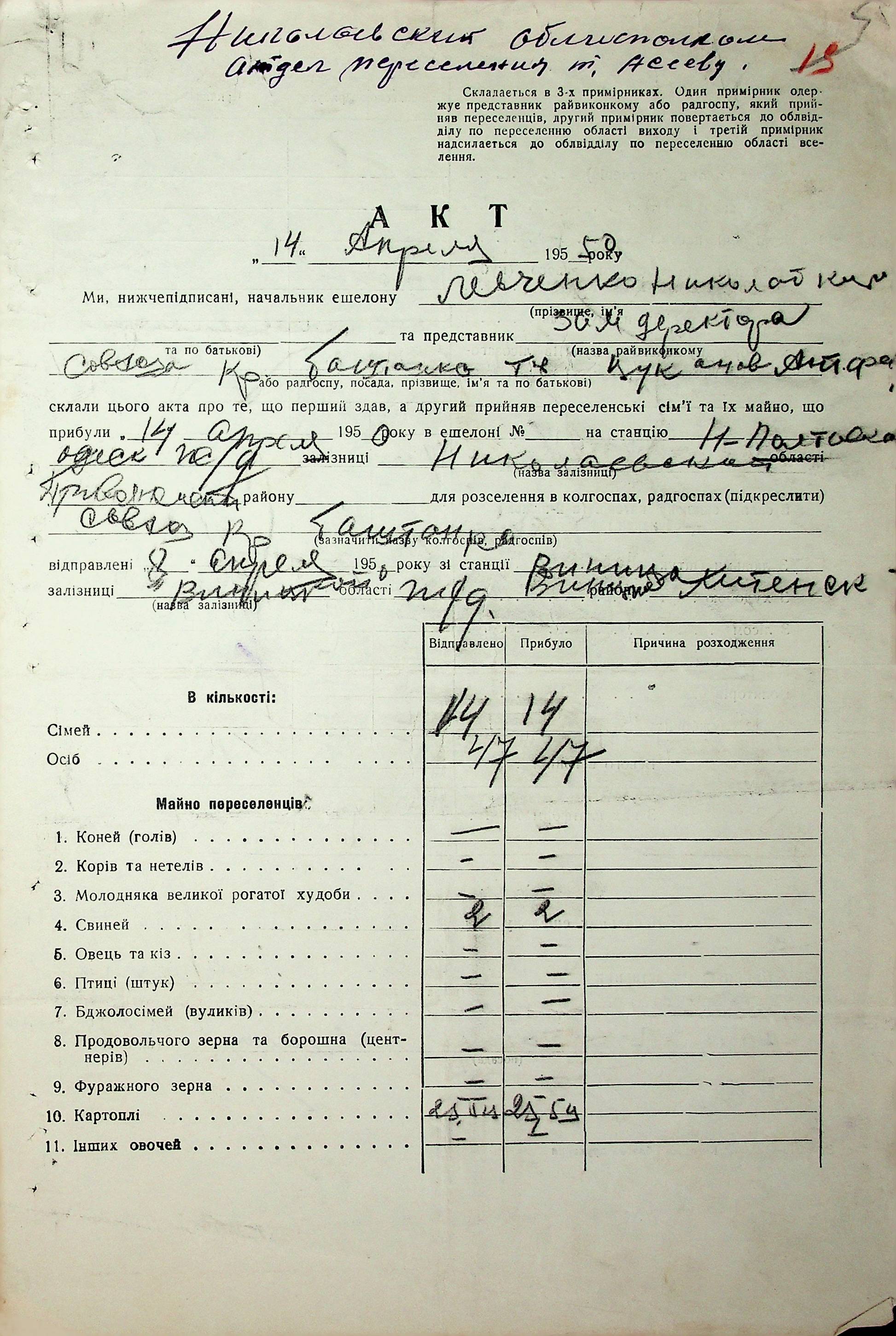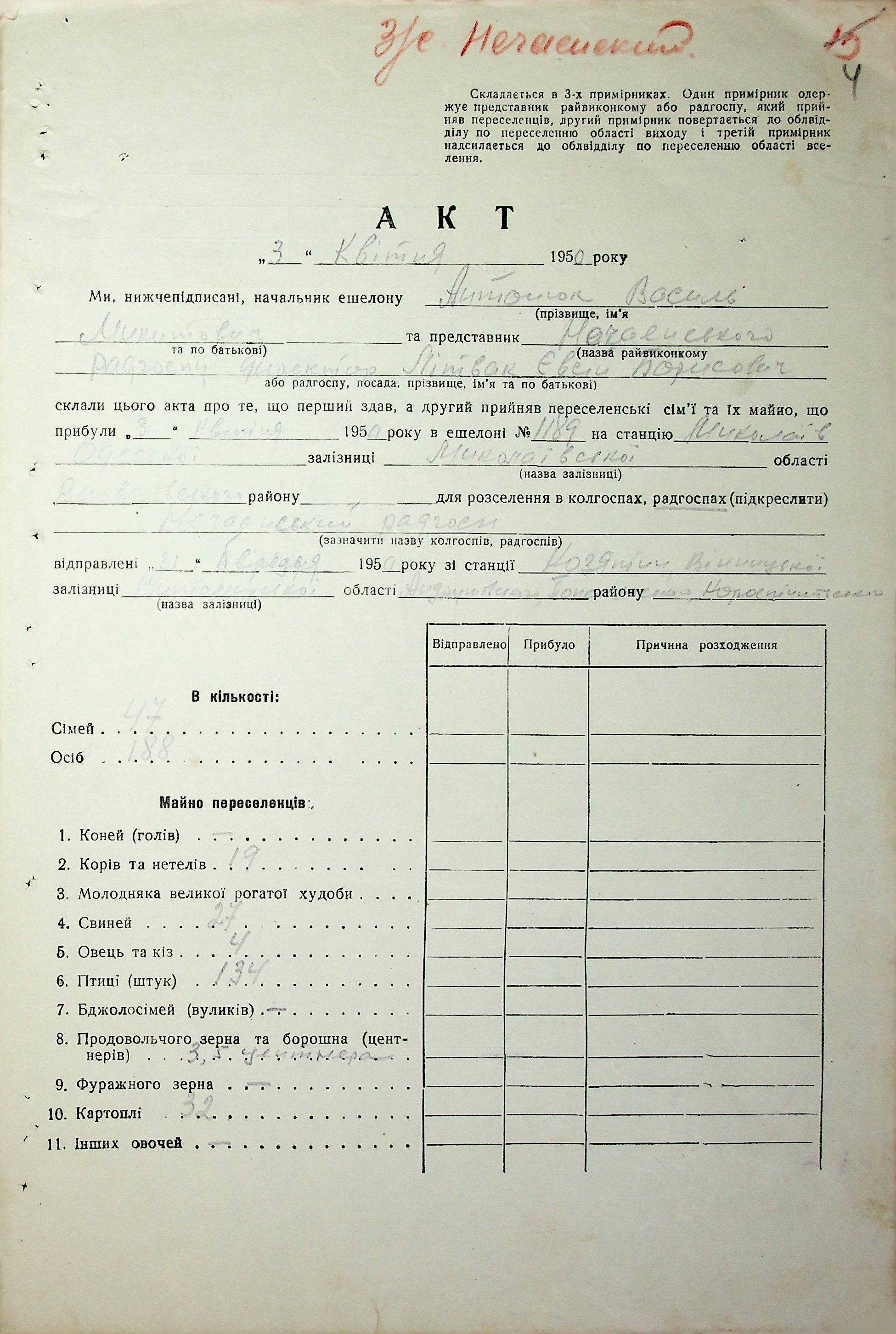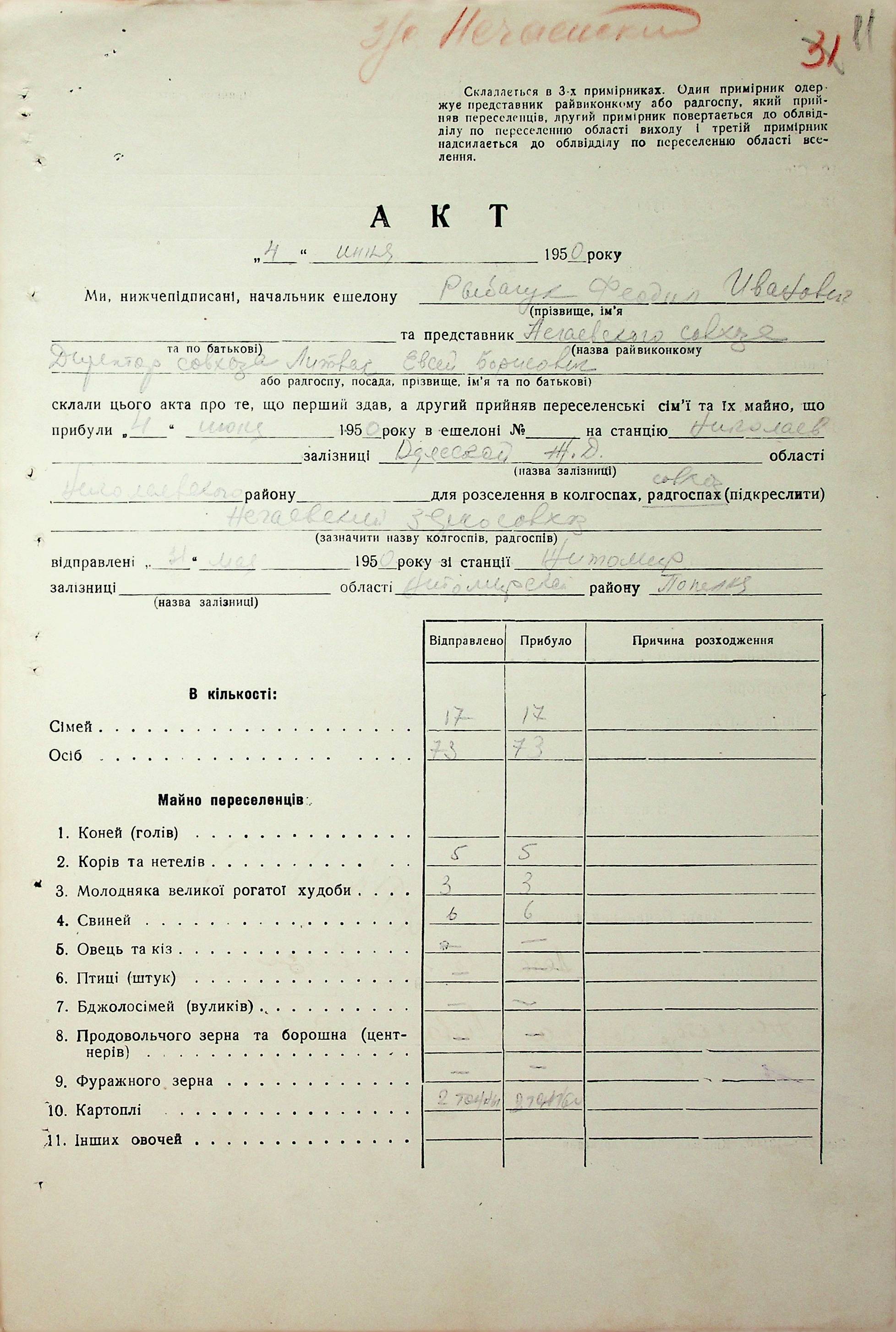 • • • • Справа № 68 “Документи (акти, звіт, списки, розшифровка, довідка, реєстр) про прибуття сімей переселенців та їх майна із Вінницької, Житомирської, Закарпатської, Чернігівської та Тернопільської областей; про проходження санітарної обробки та кількість прийнятої від переселенців картоплі”