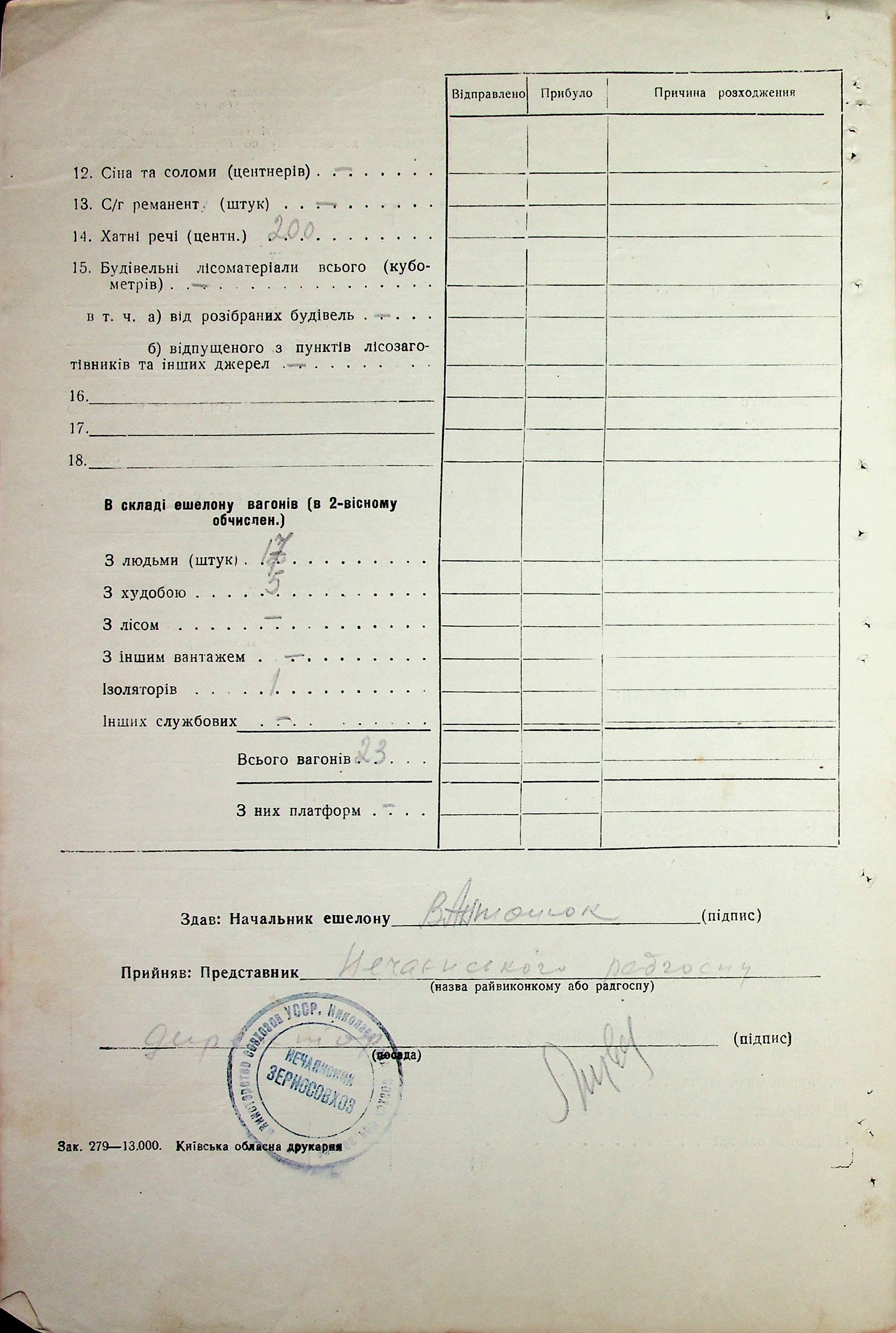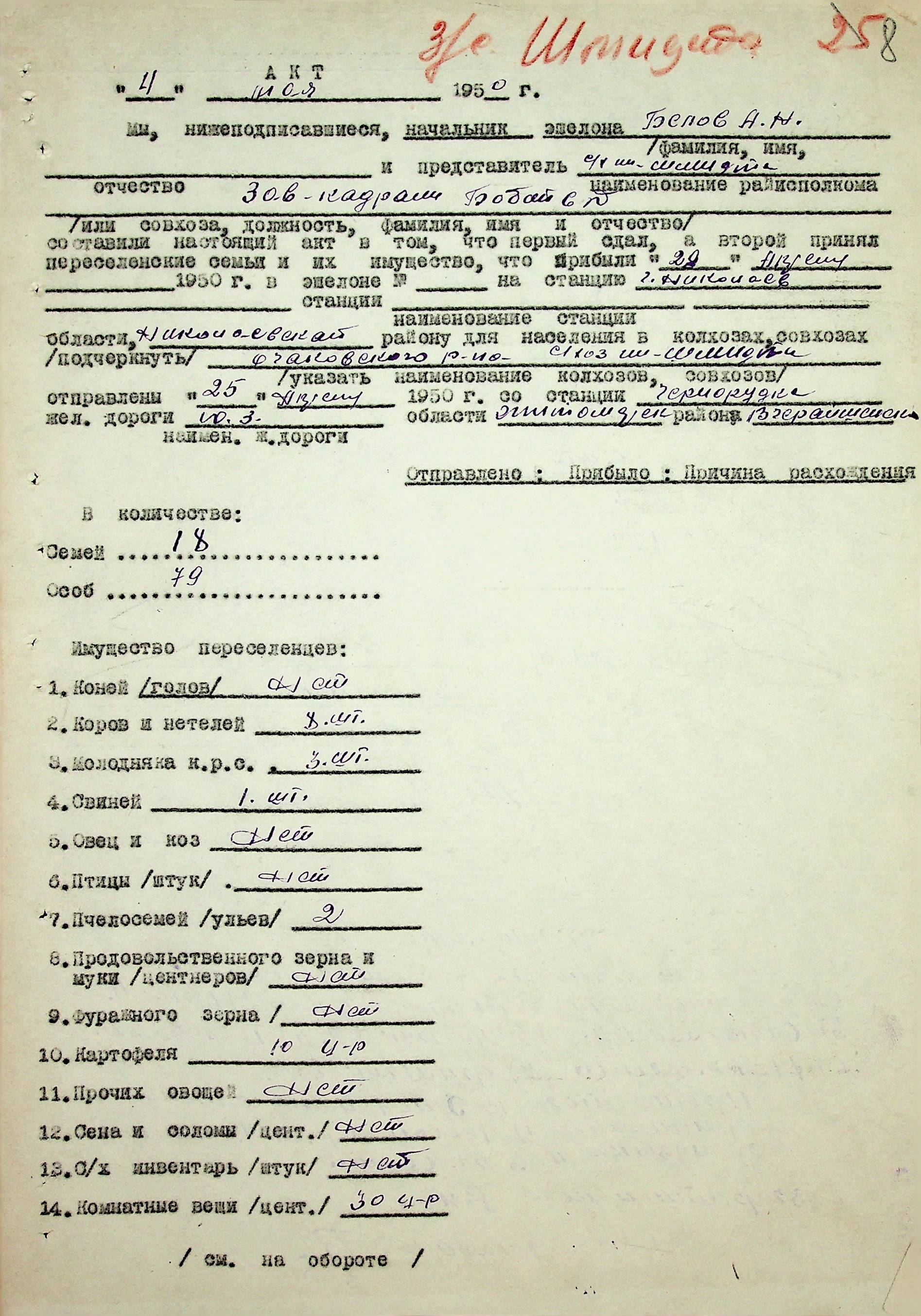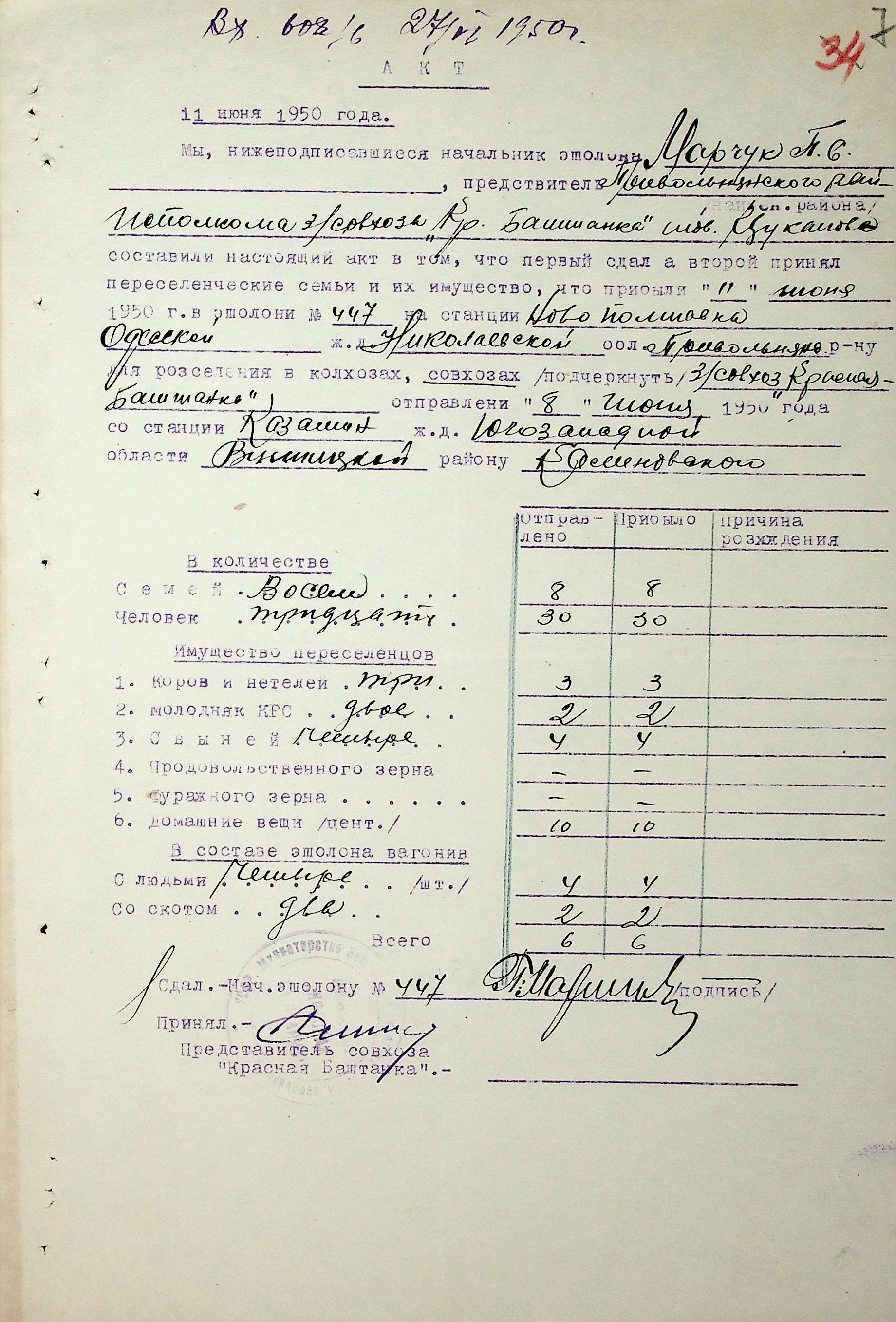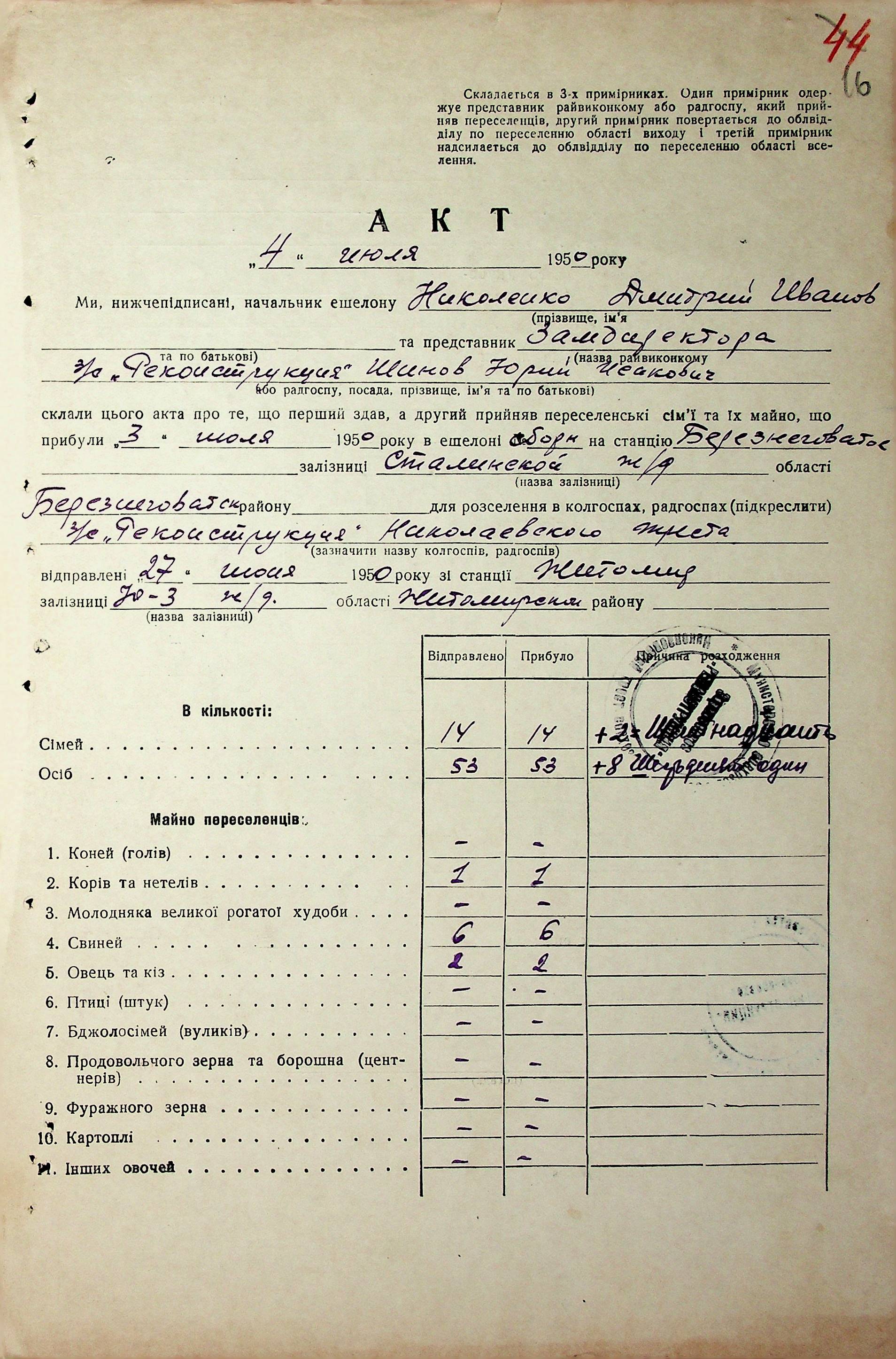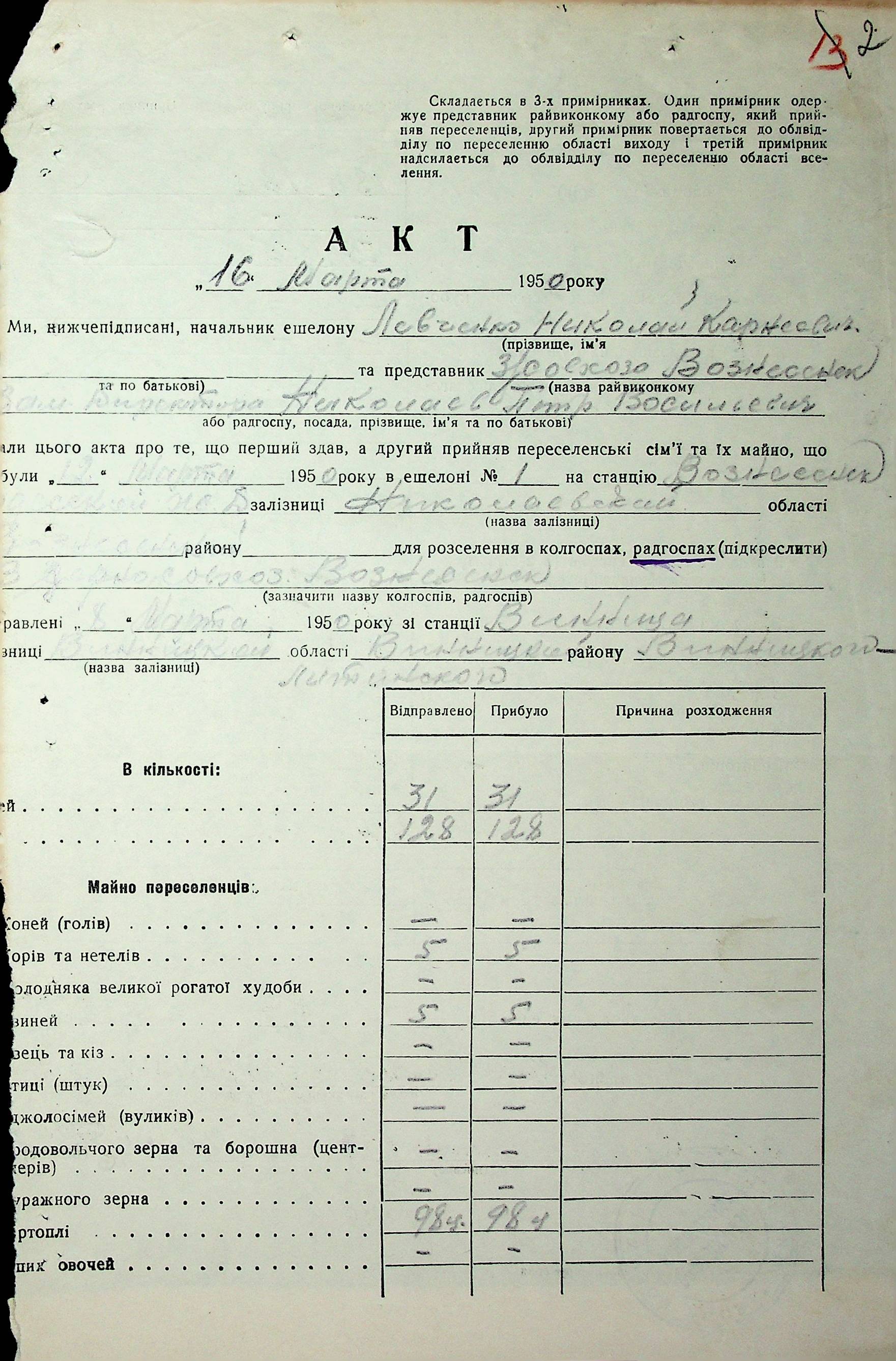 • • • • Справа № 68 “Документи (акти, звіт, списки, розшифровка, довідка, реєстр) про прибуття сімей переселенців та їх майна із Вінницької, Житомирської, Закарпатської, Чернігівської та Тернопільської областей; про проходження санітарної обробки та кількість прийнятої від переселенців картоплі”