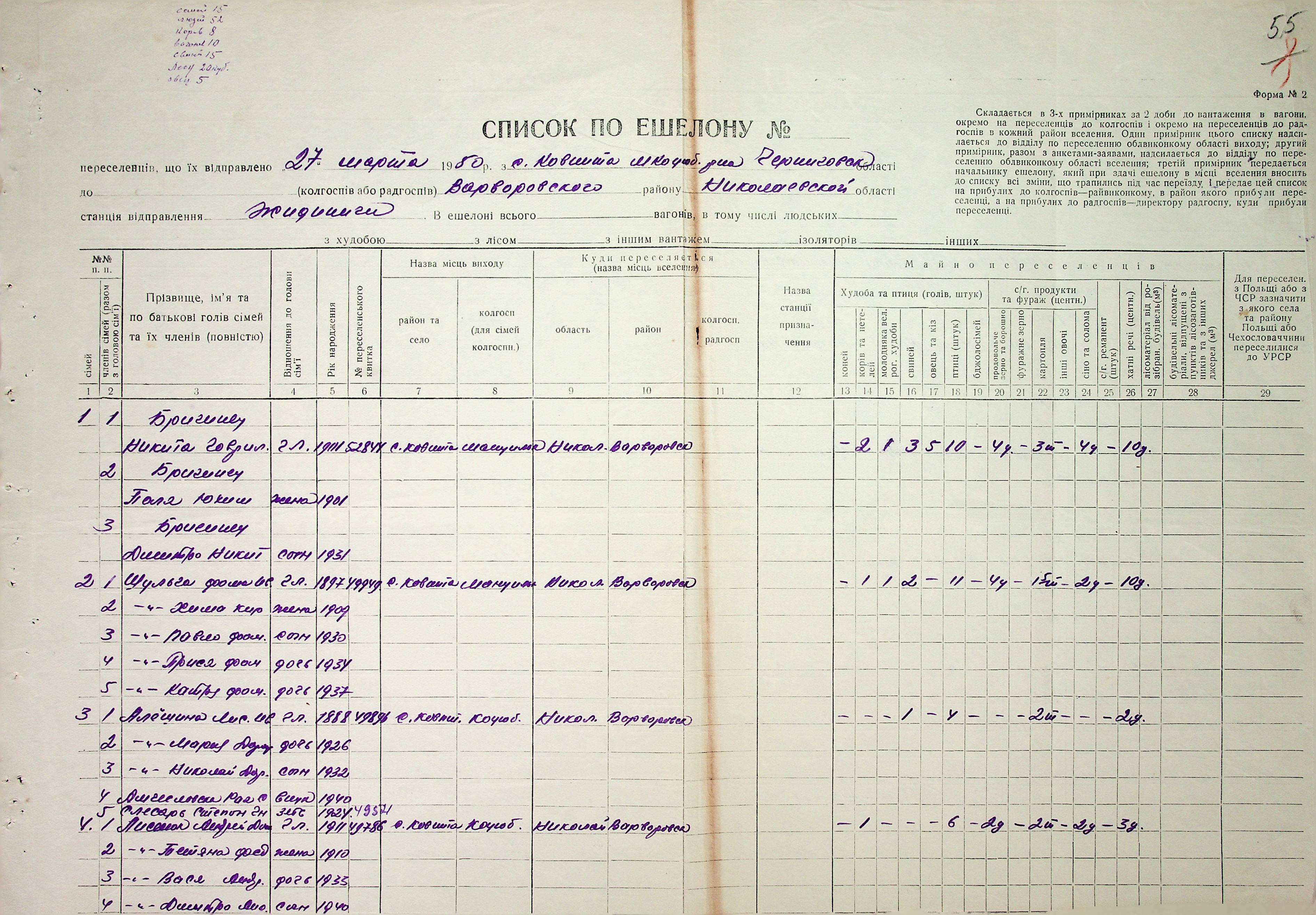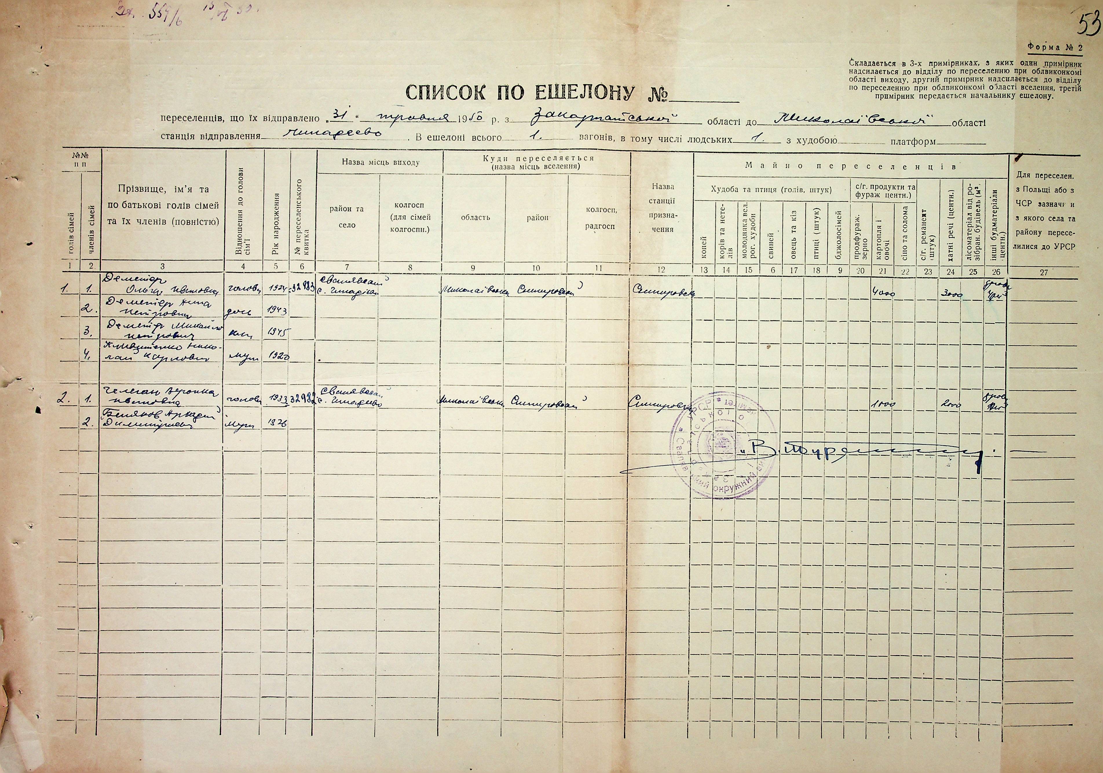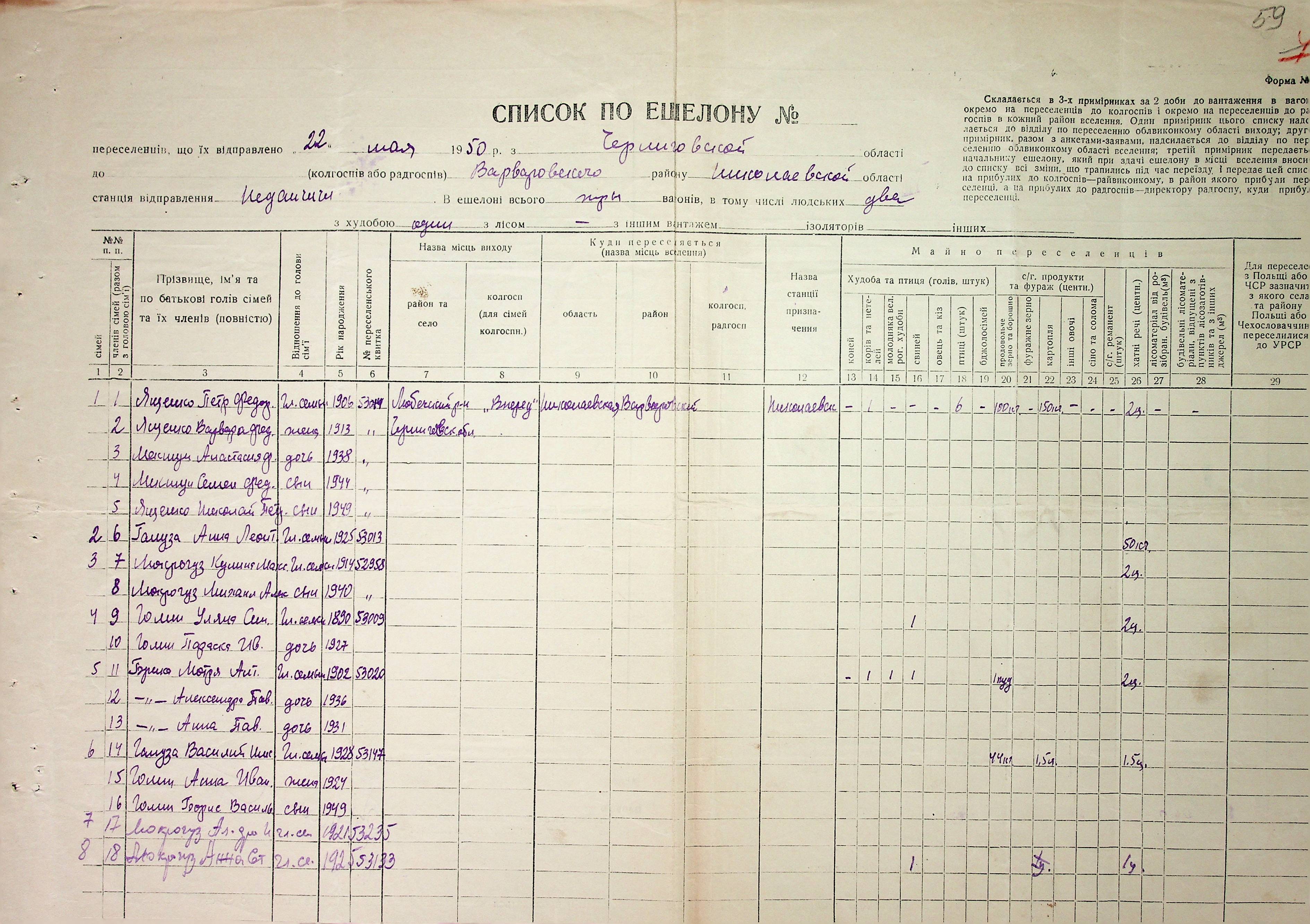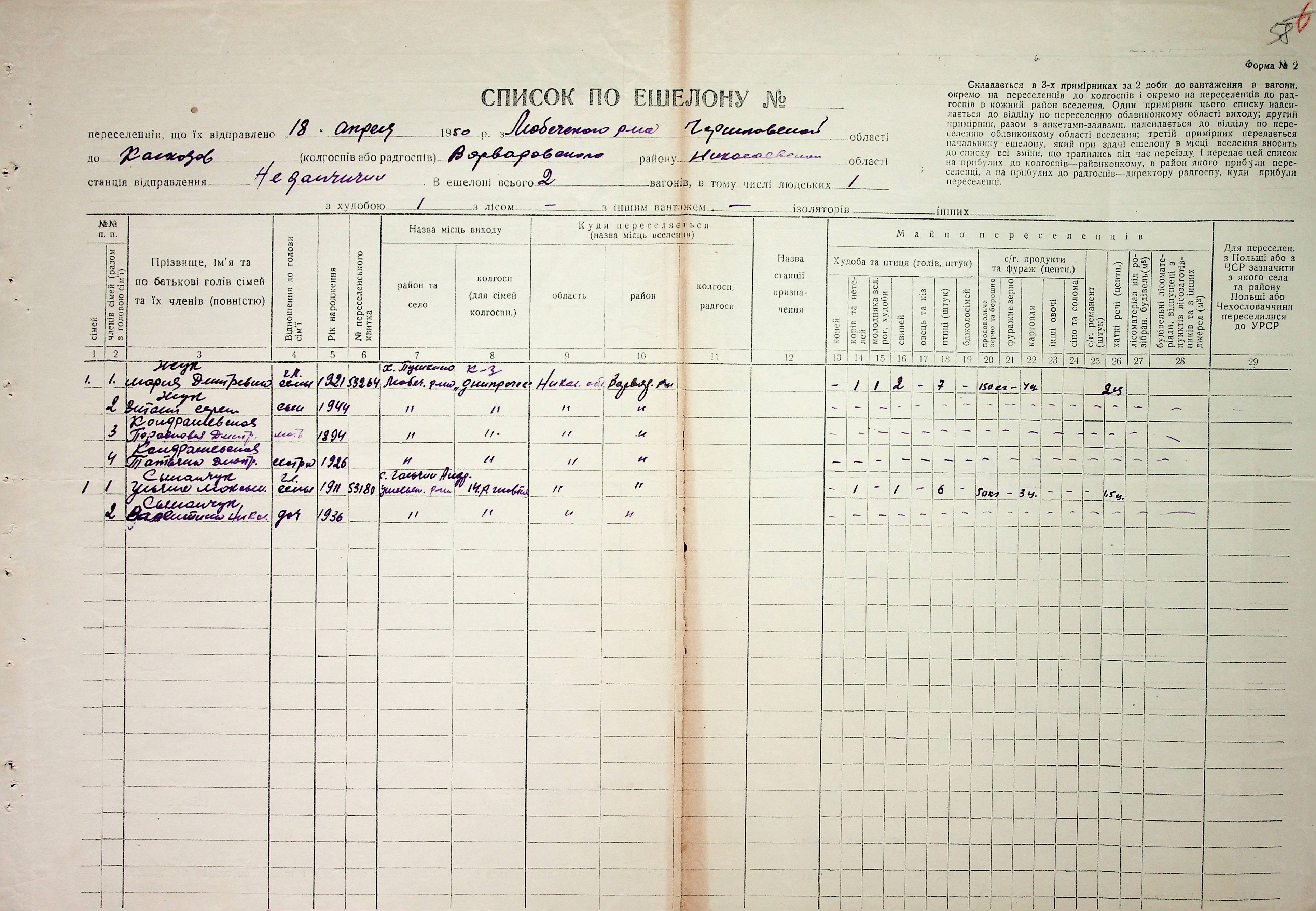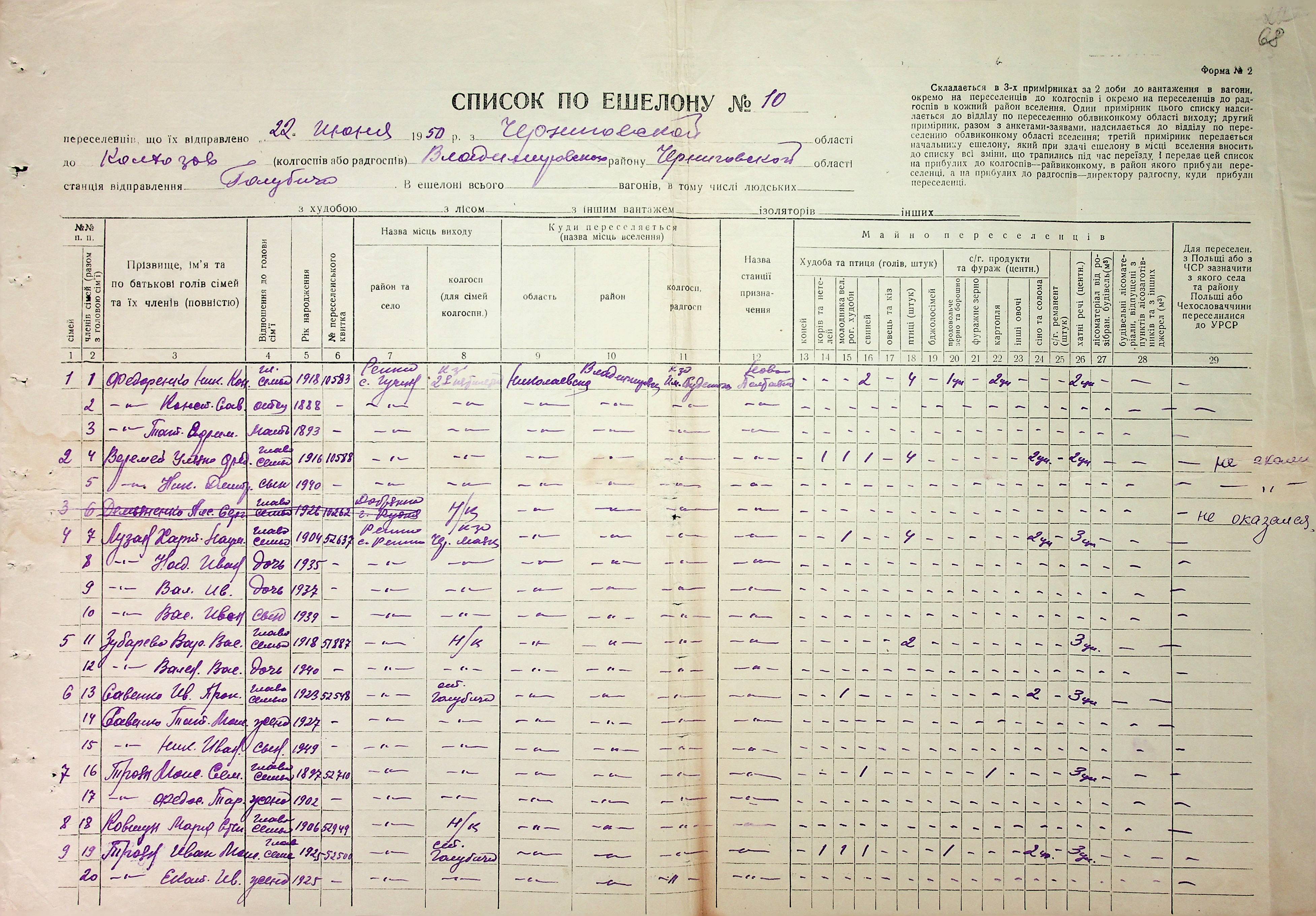 • • • • Справа № 69 “Ешелонні списки на осіб, відправлених із Вінницької, Закарпатської та Чернігівської областей до Миколаївської області”