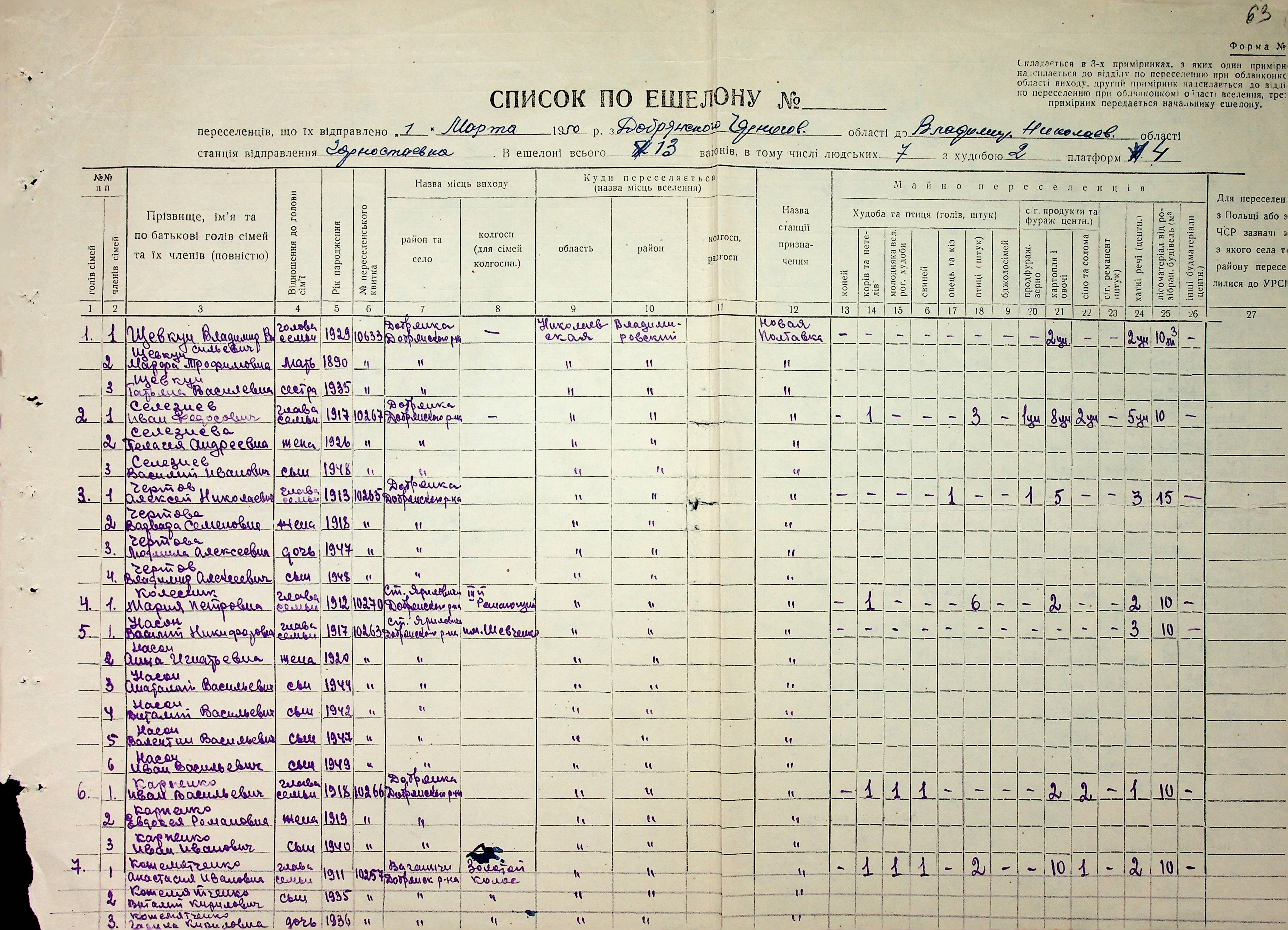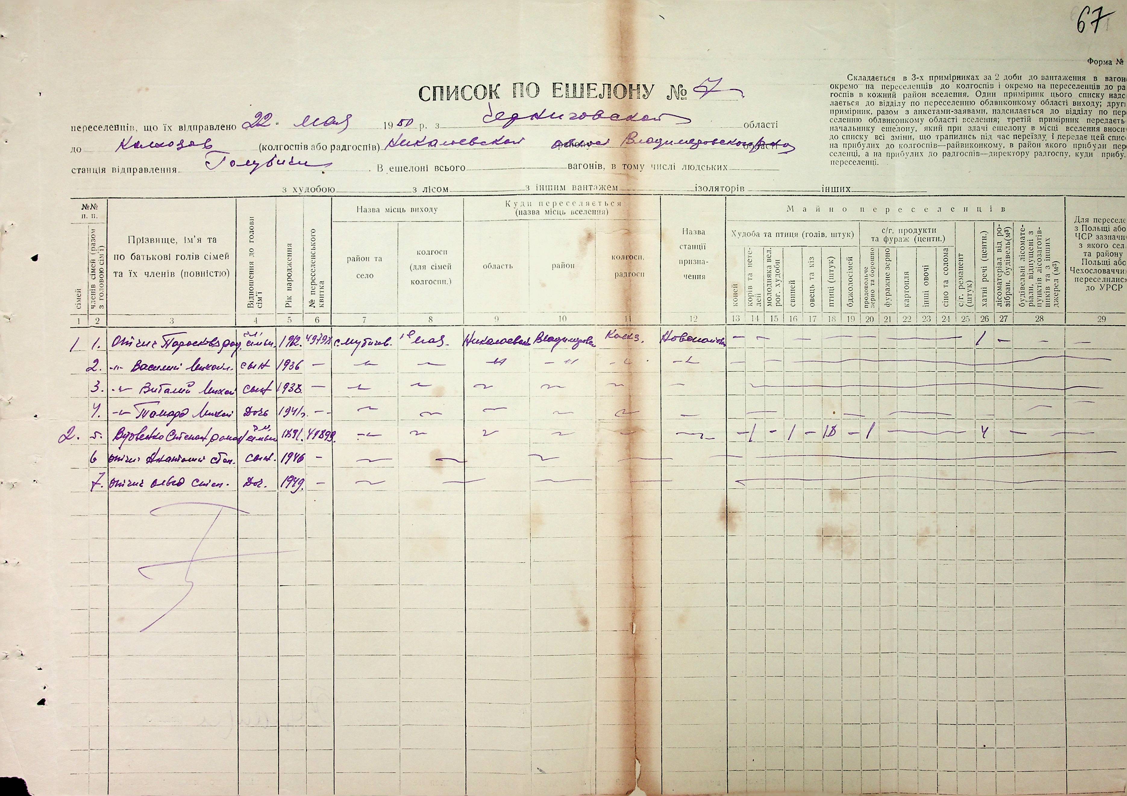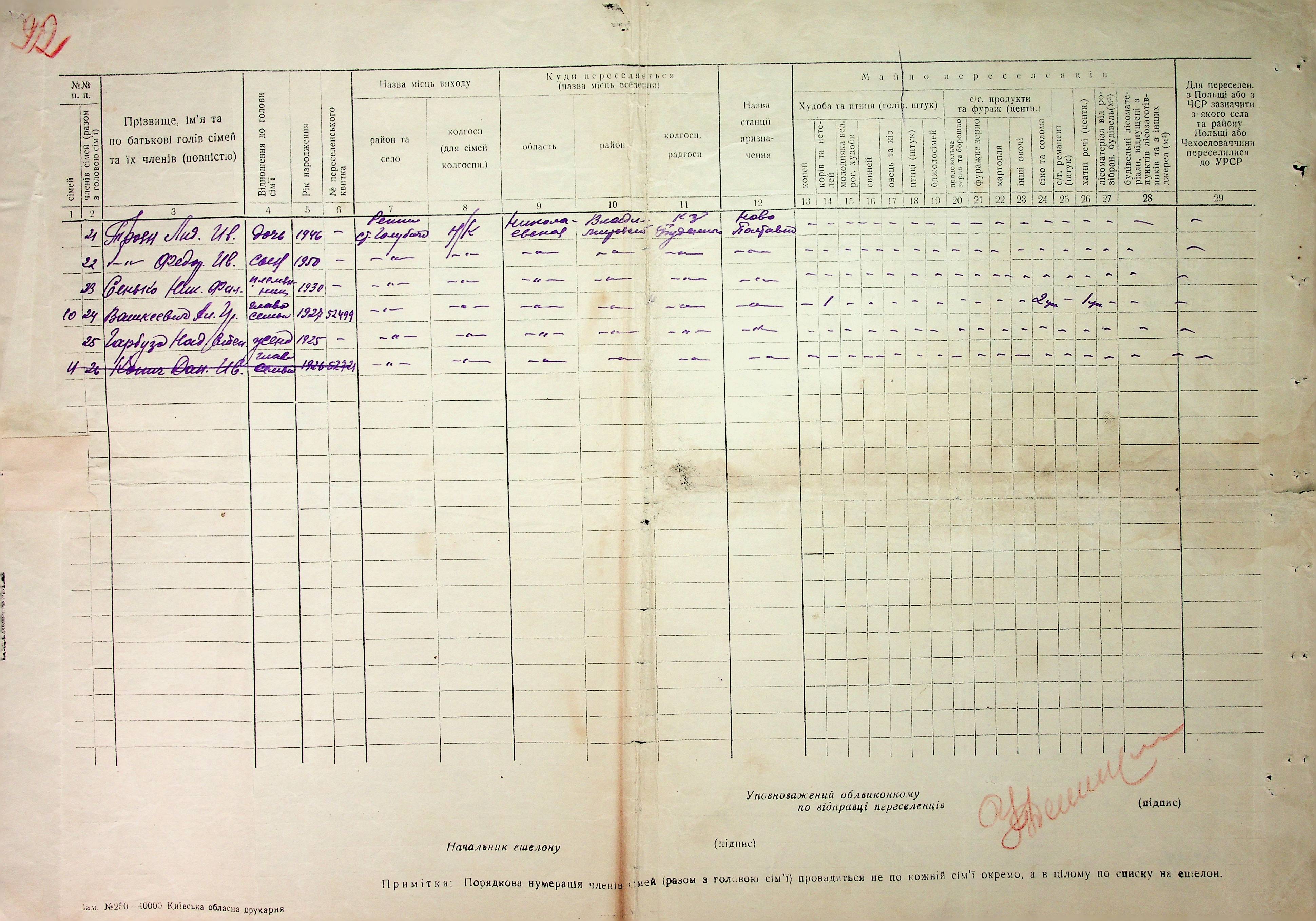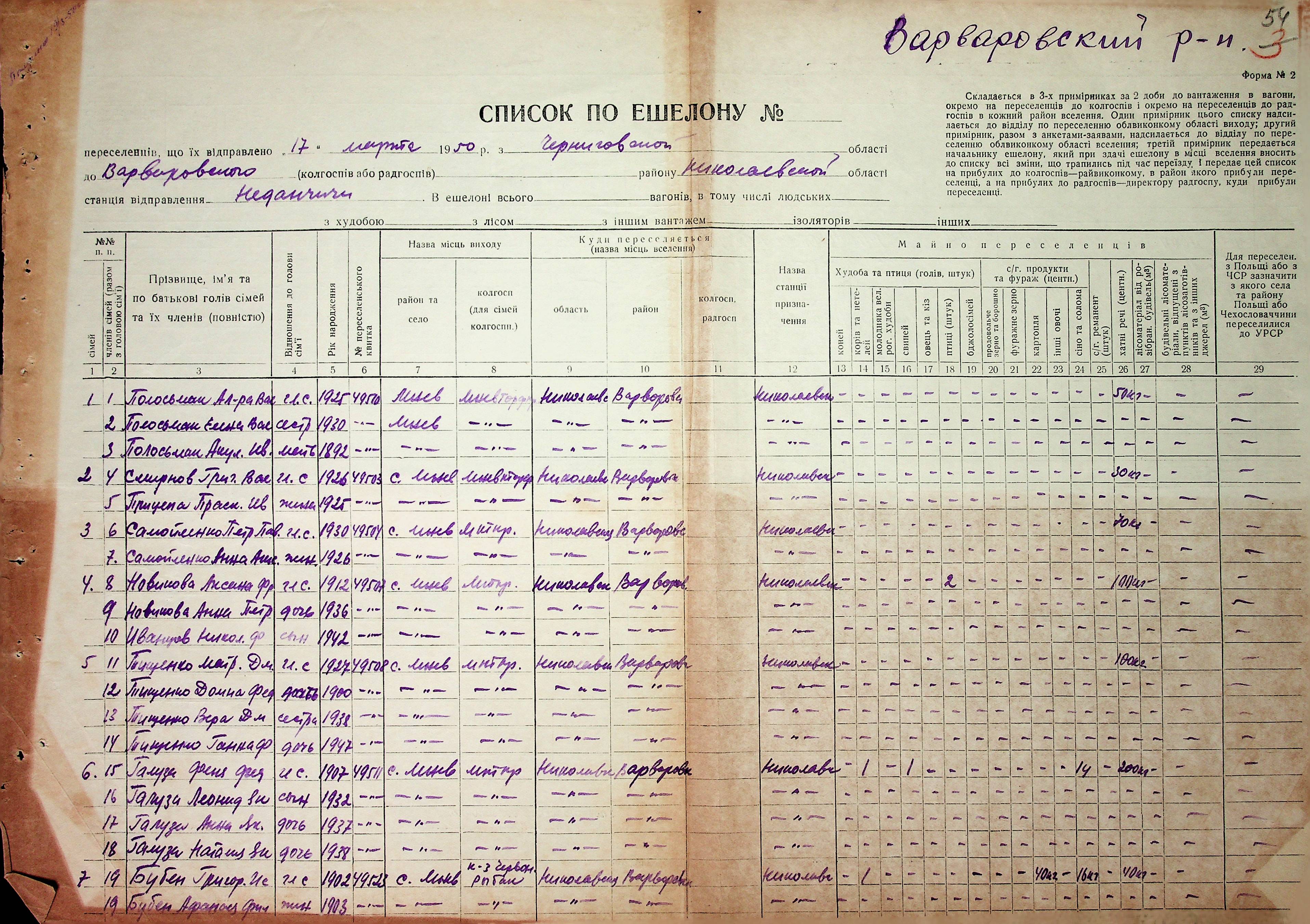 • • • • Справа № 69 “Ешелонні списки на осіб, відправлених із Вінницької, Закарпатської та Чернігівської областей до Миколаївської області”