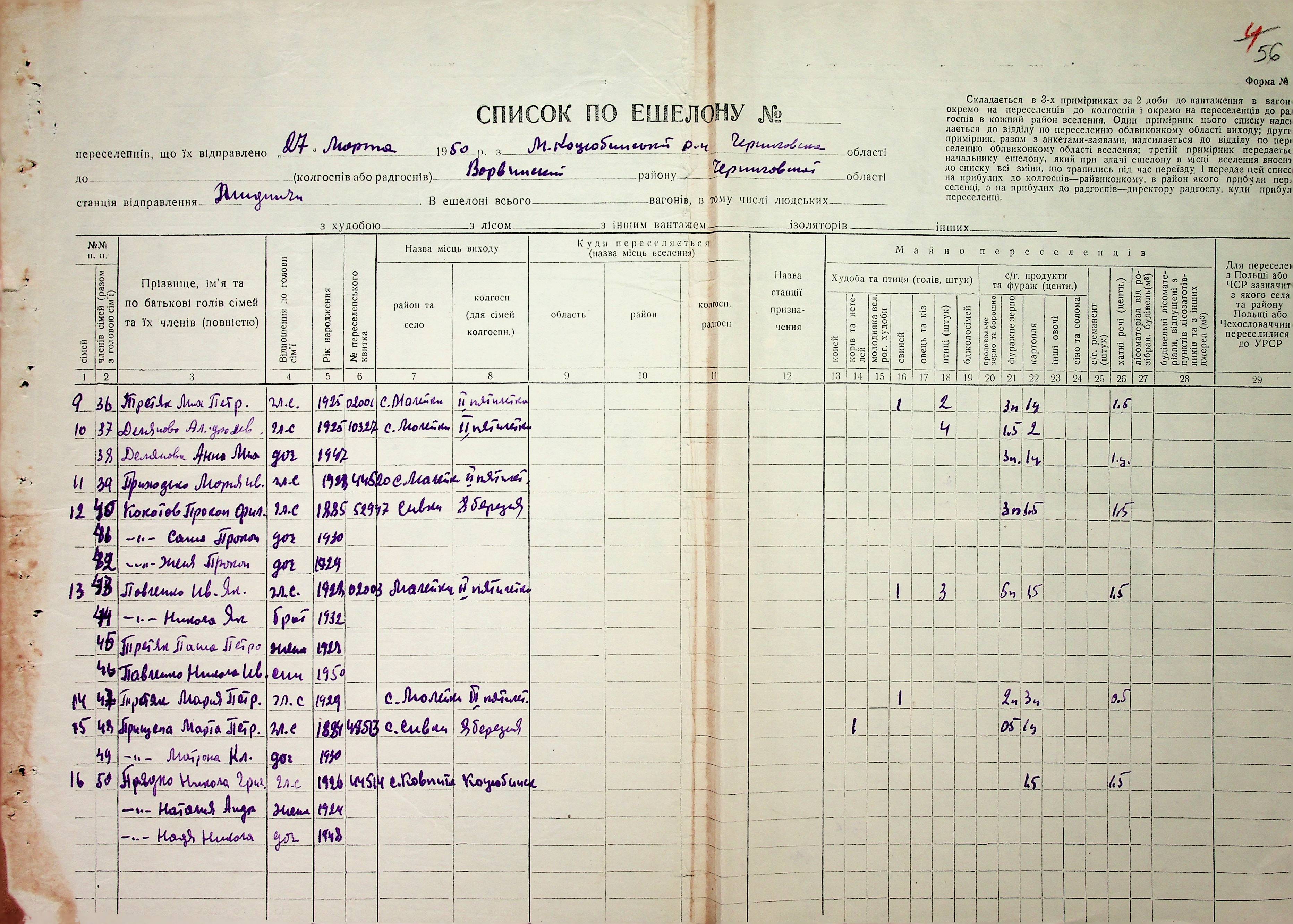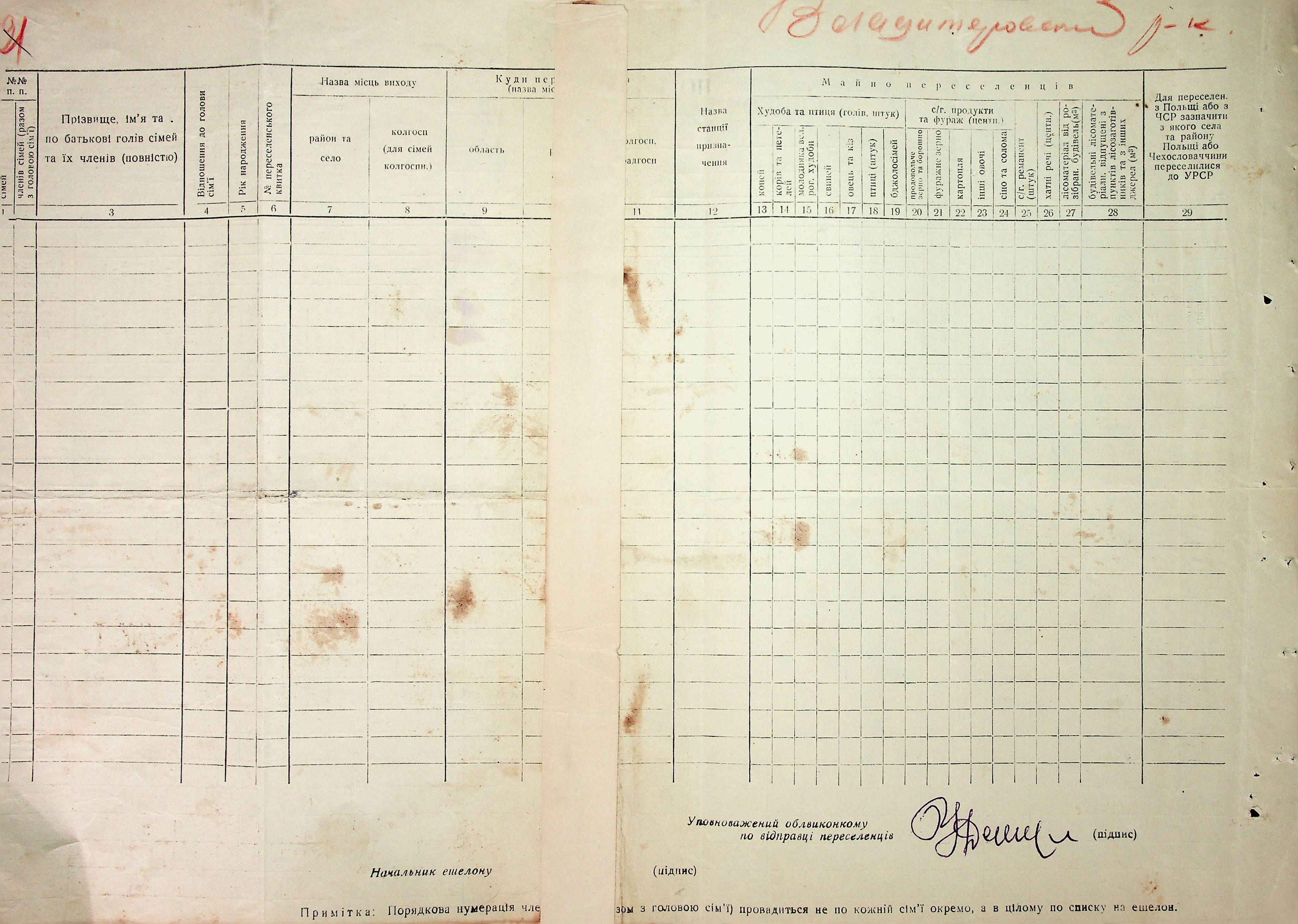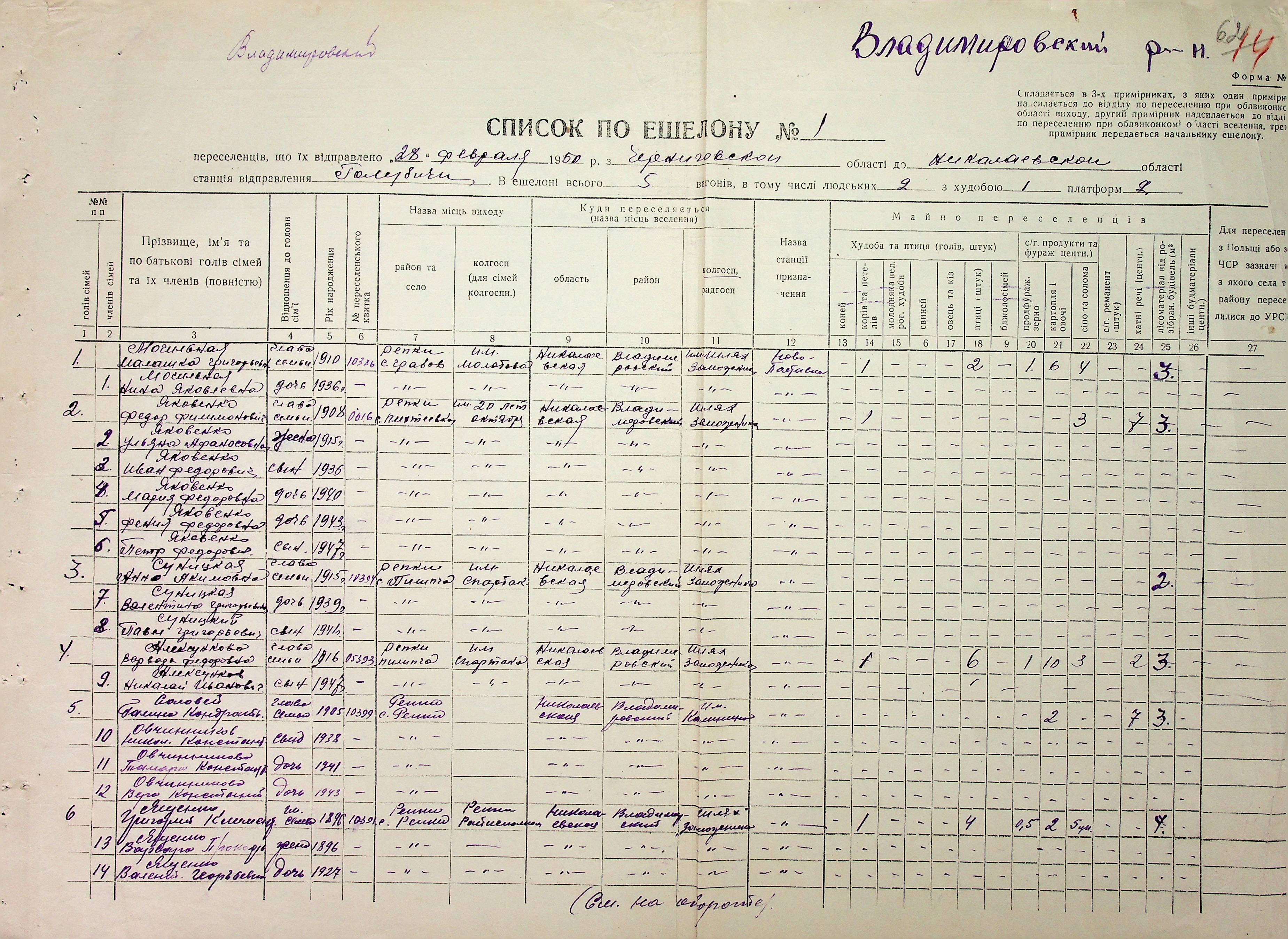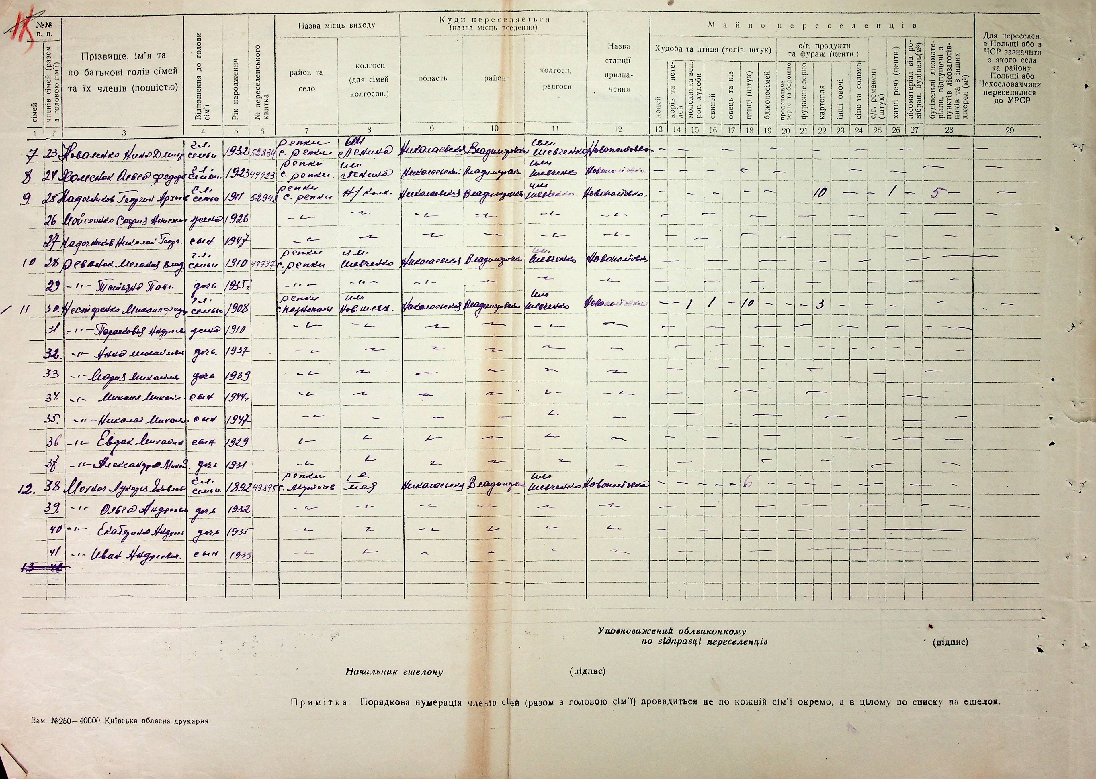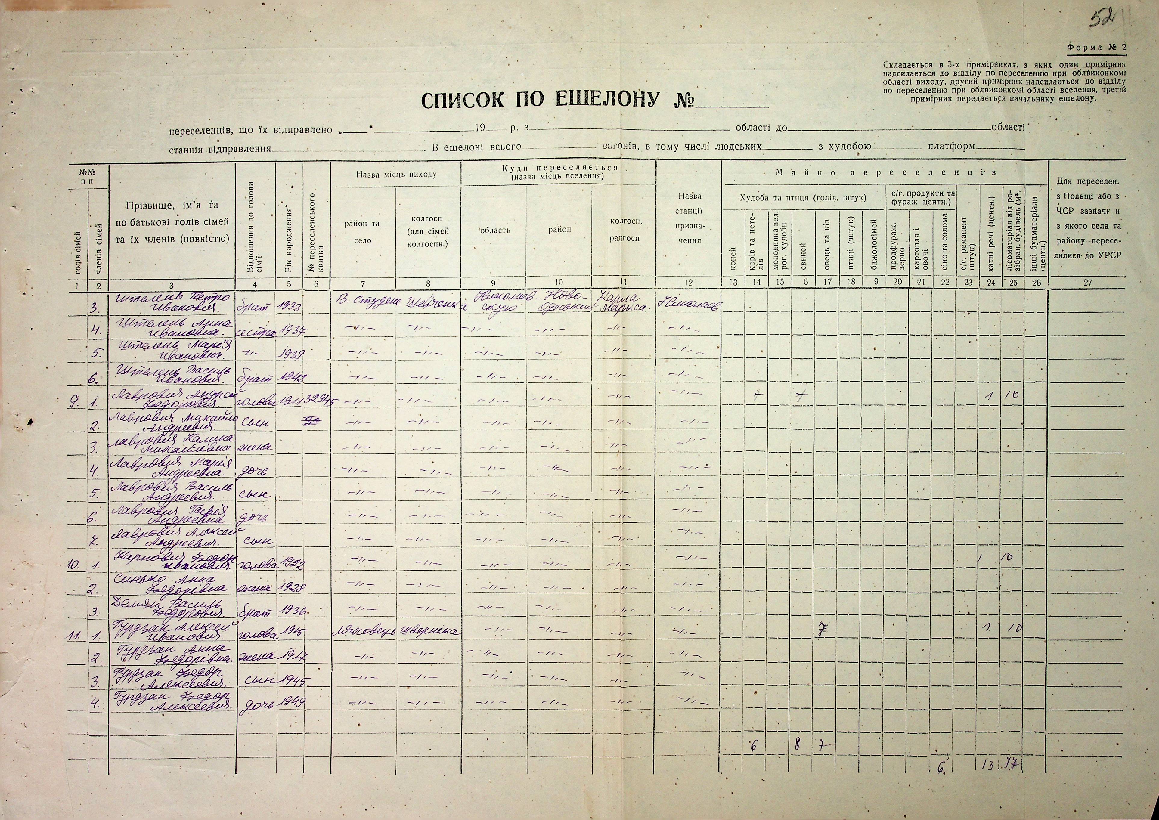 • • • • Справа № 69 “Ешелонні списки на осіб, відправлених із Вінницької, Закарпатської та Чернігівської областей до Миколаївської області”