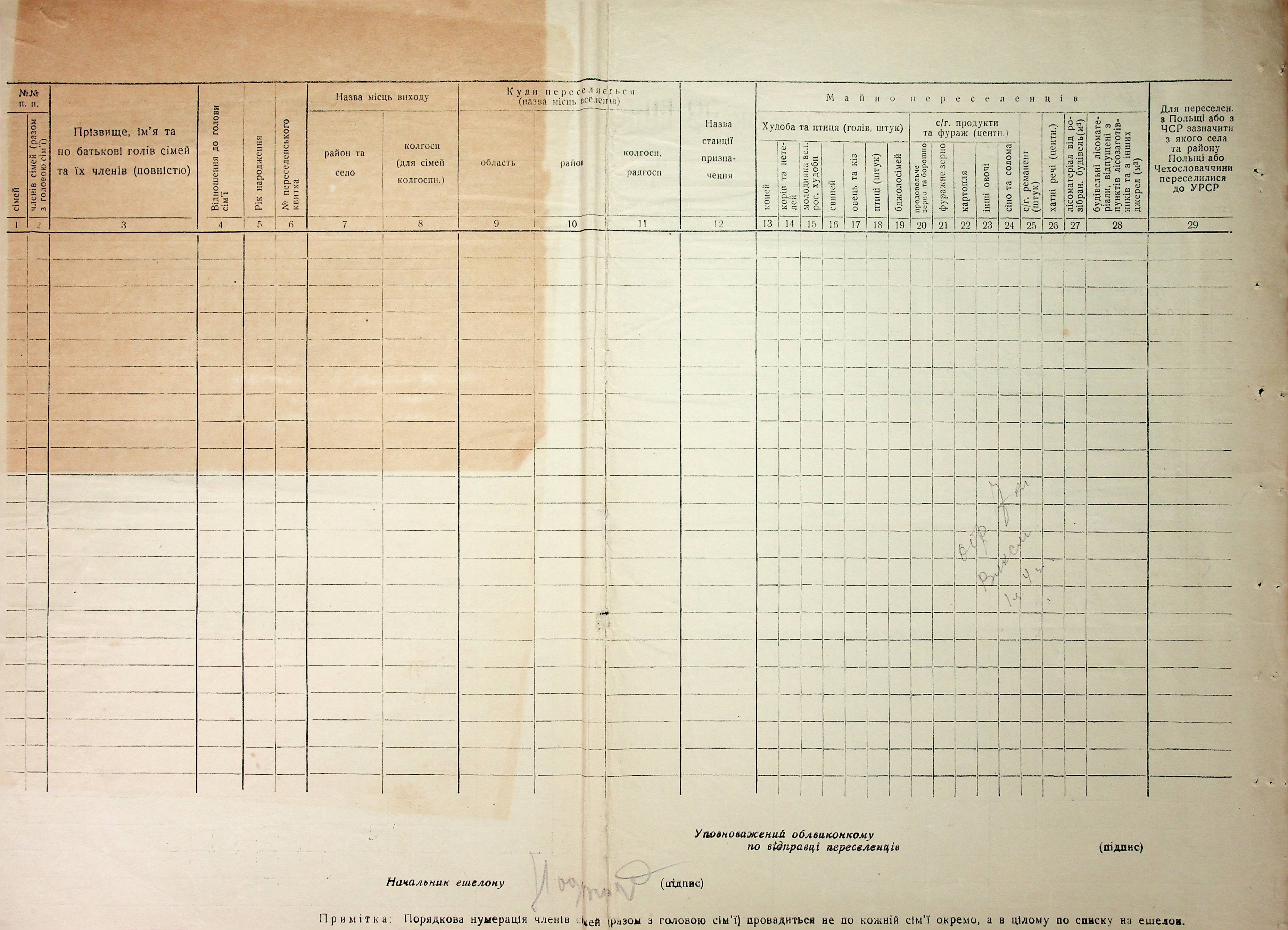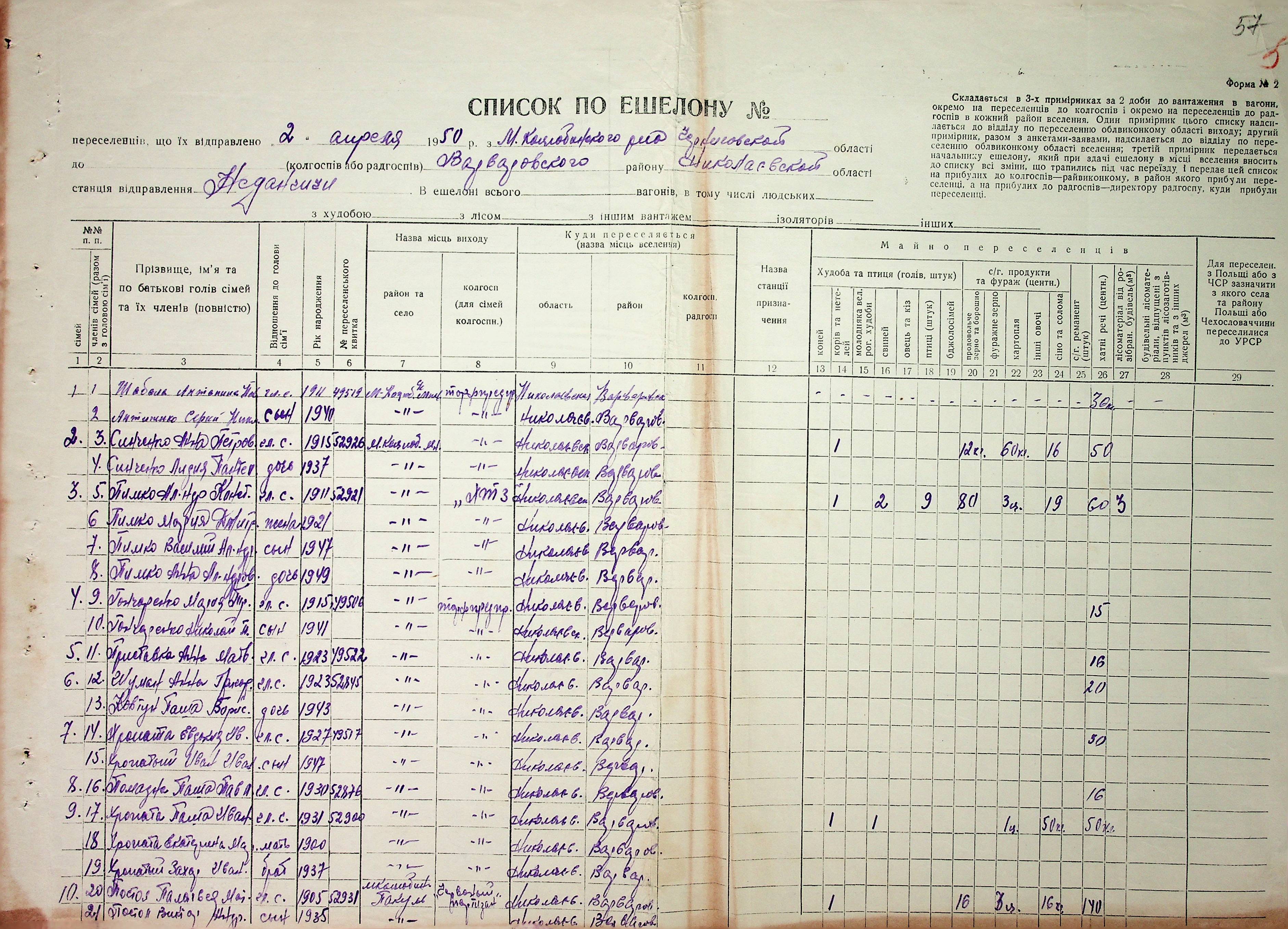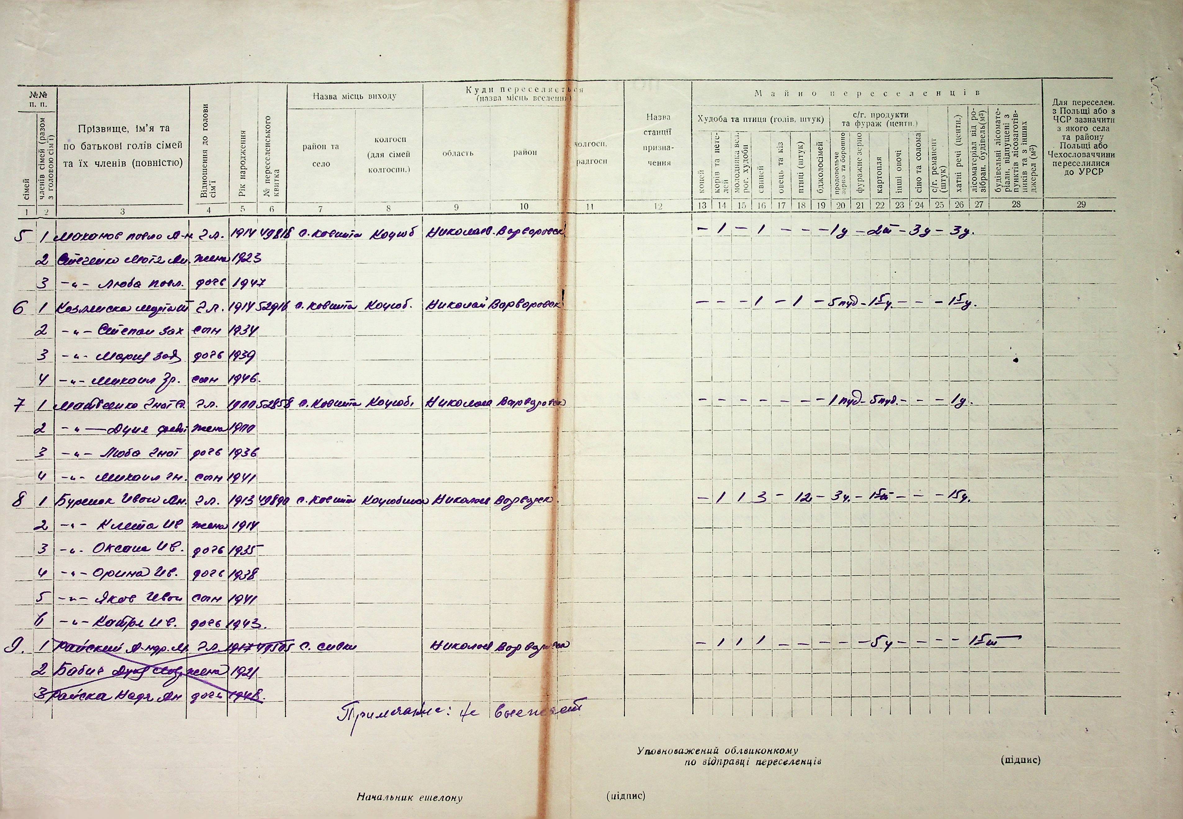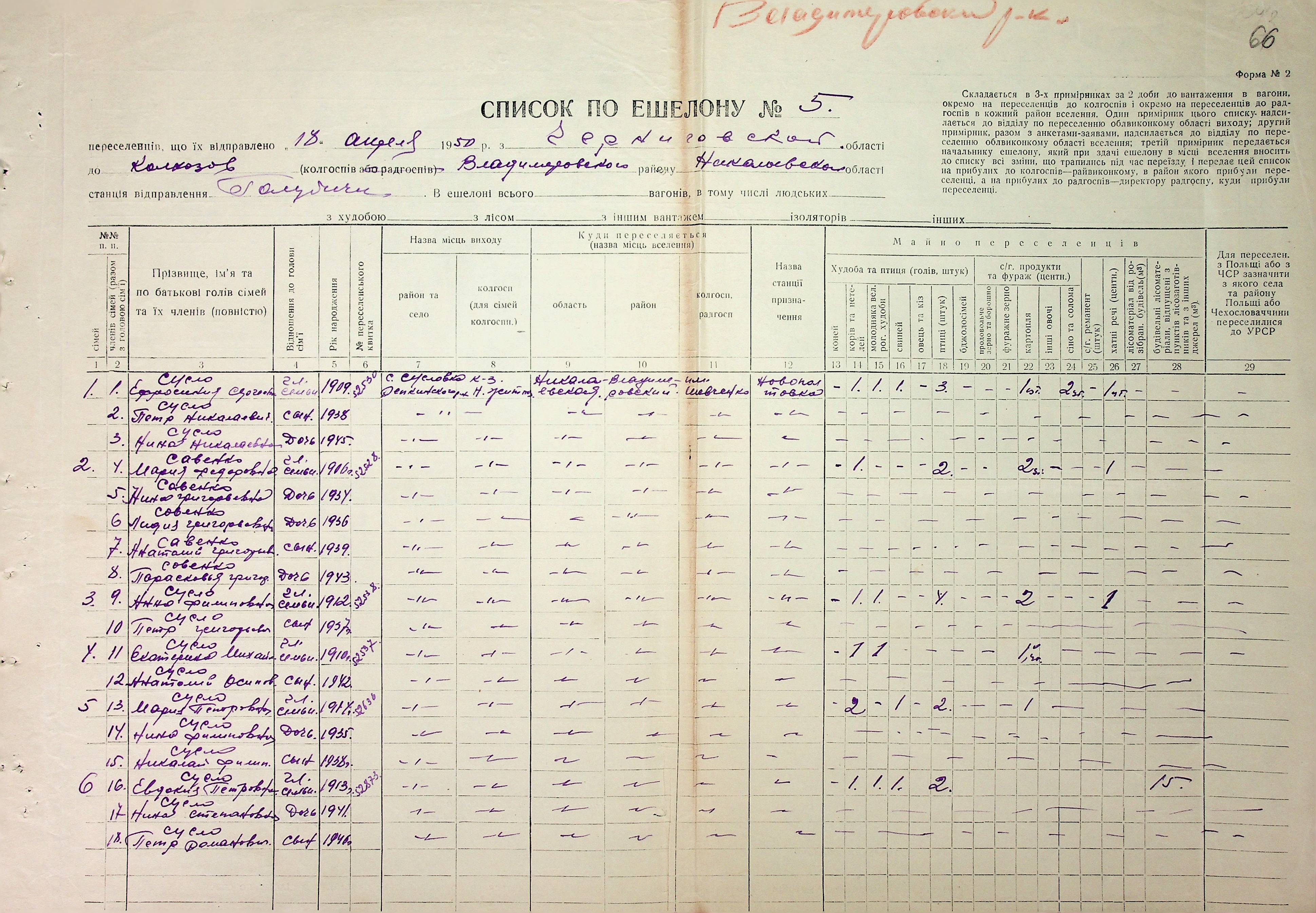 • • • • Справа № 69 “Ешелонні списки на осіб, відправлених із Вінницької, Закарпатської та Чернігівської областей до Миколаївської області”