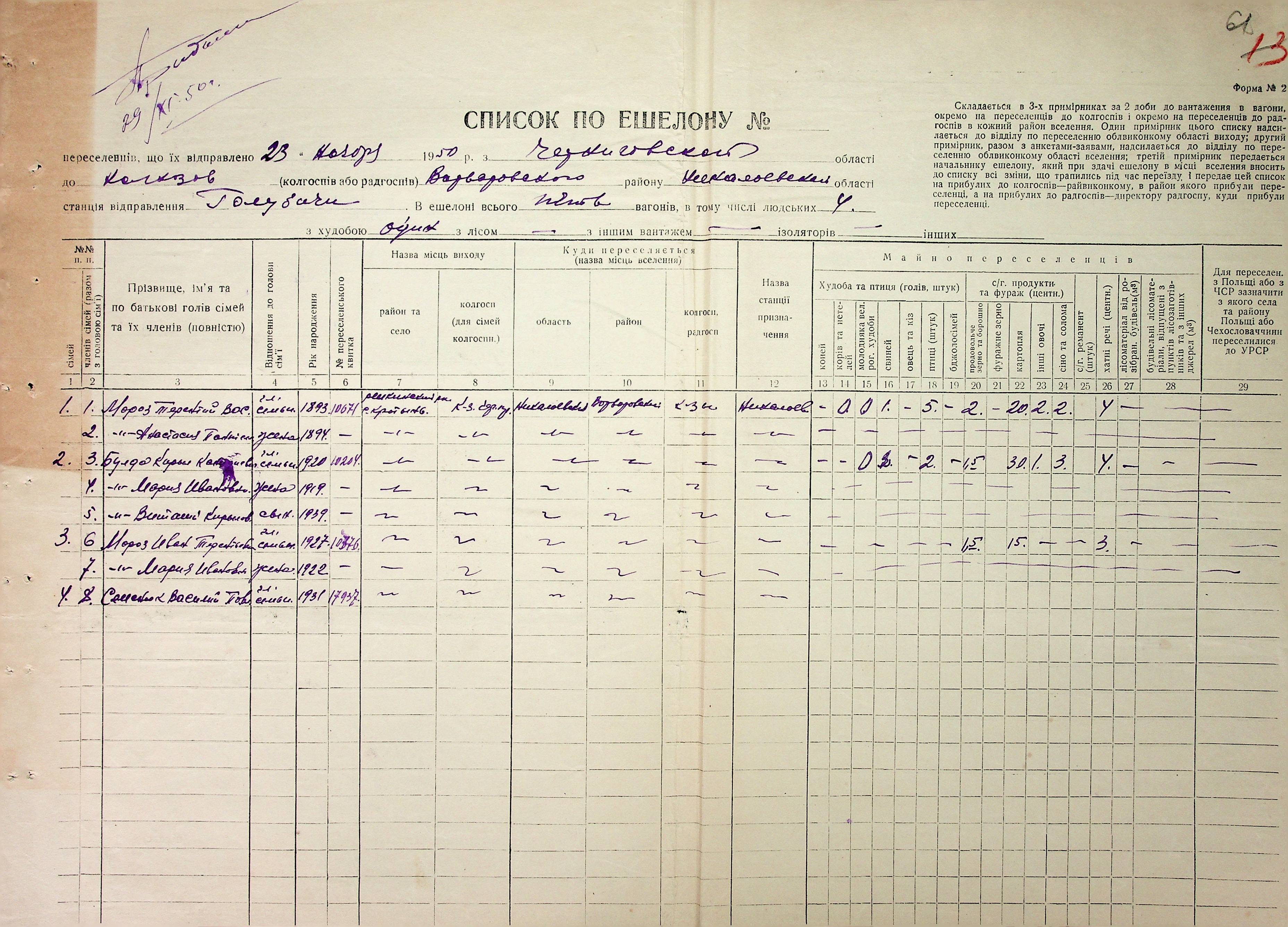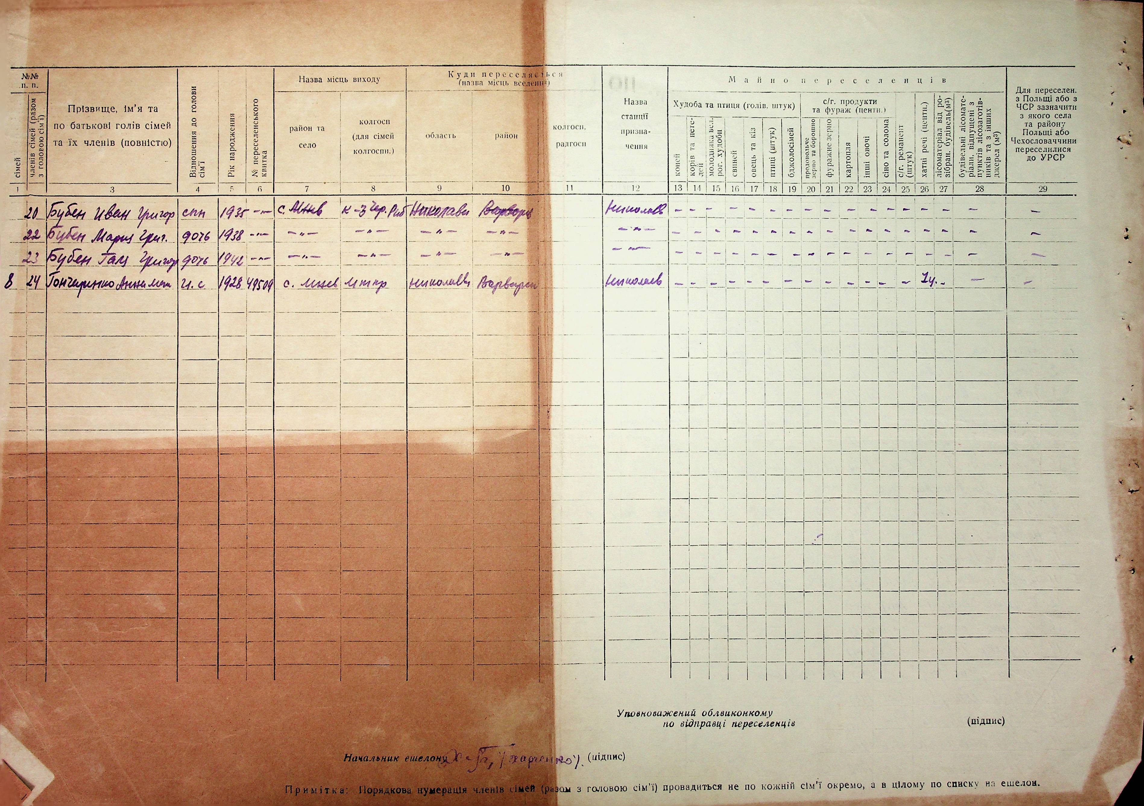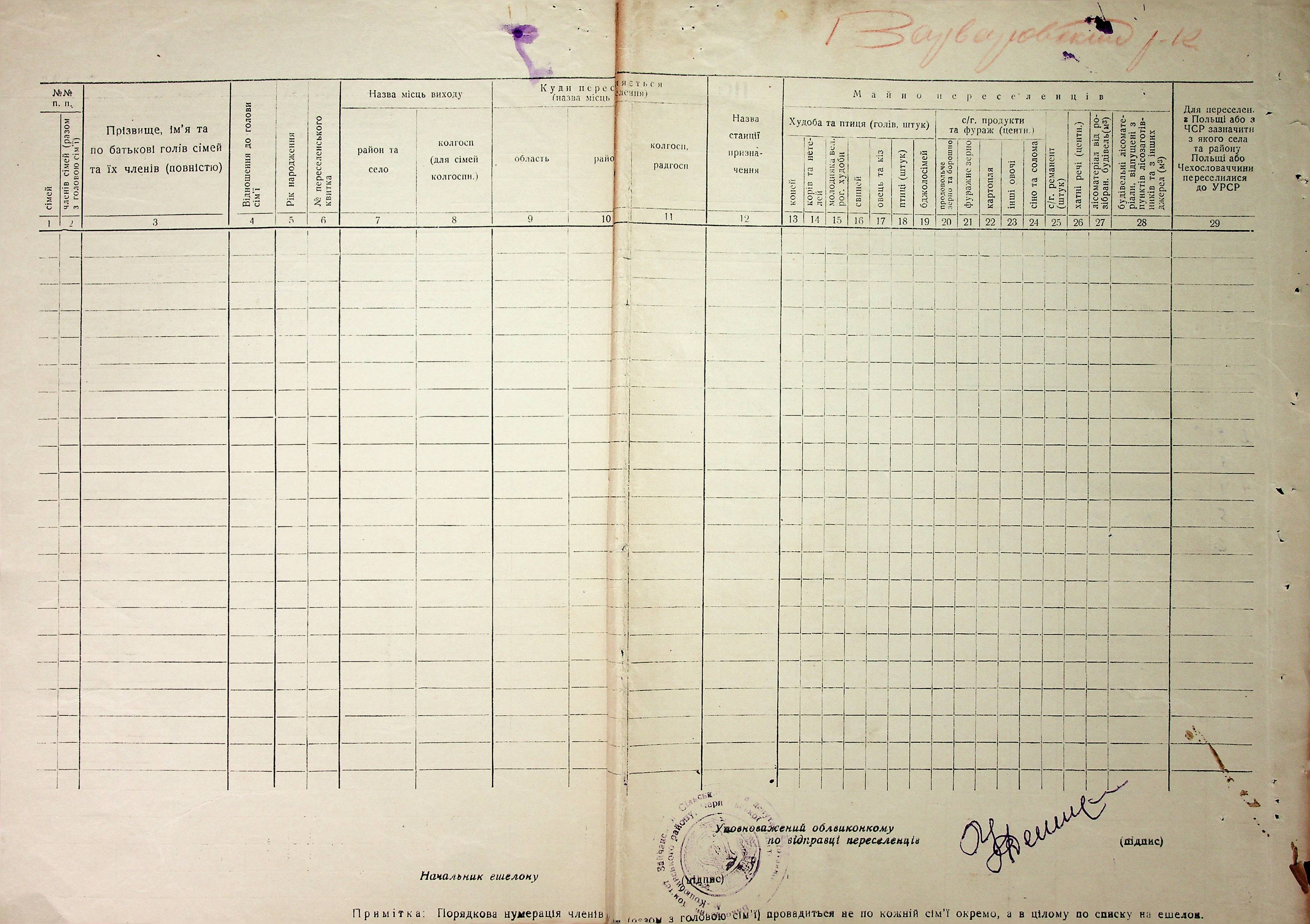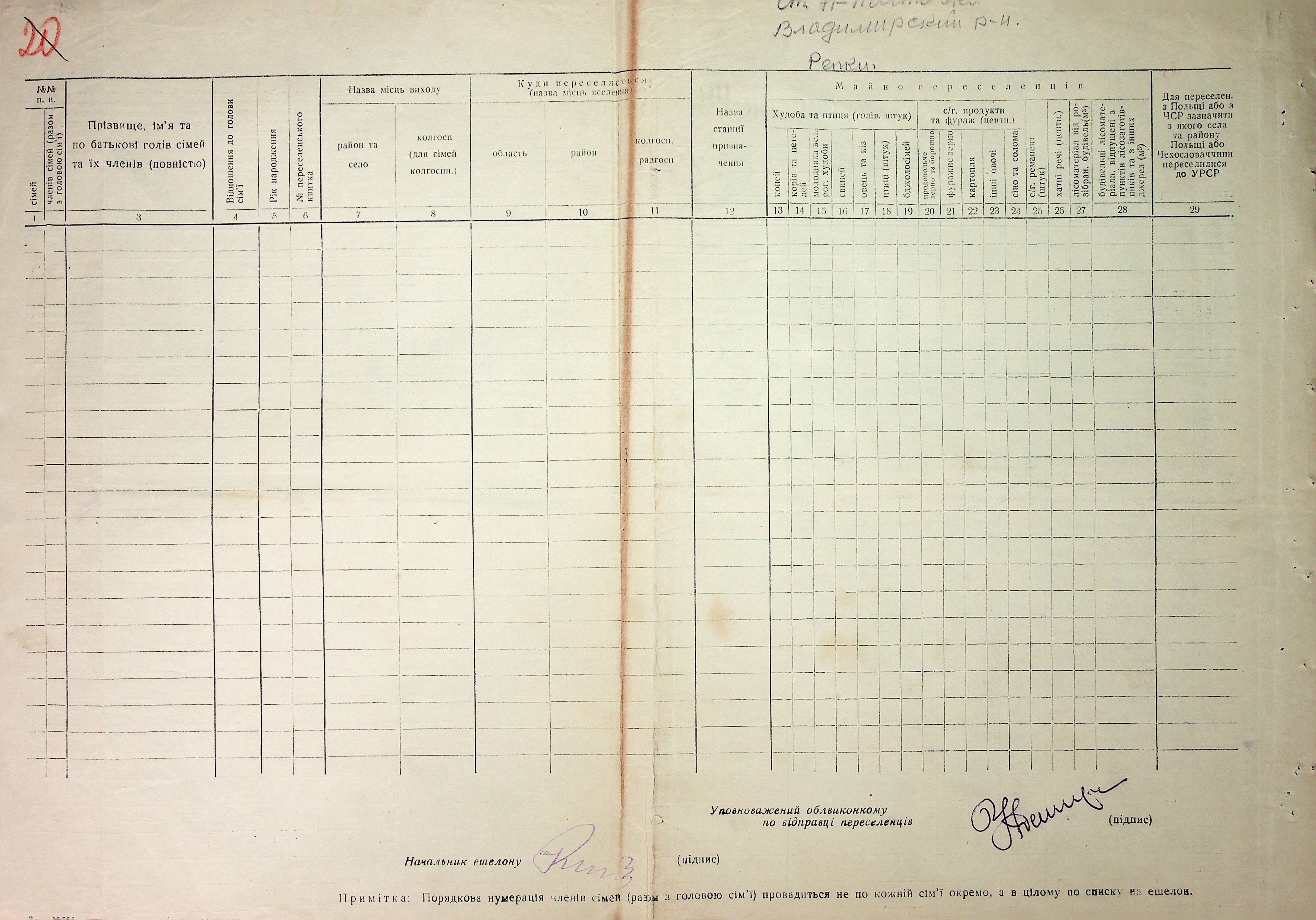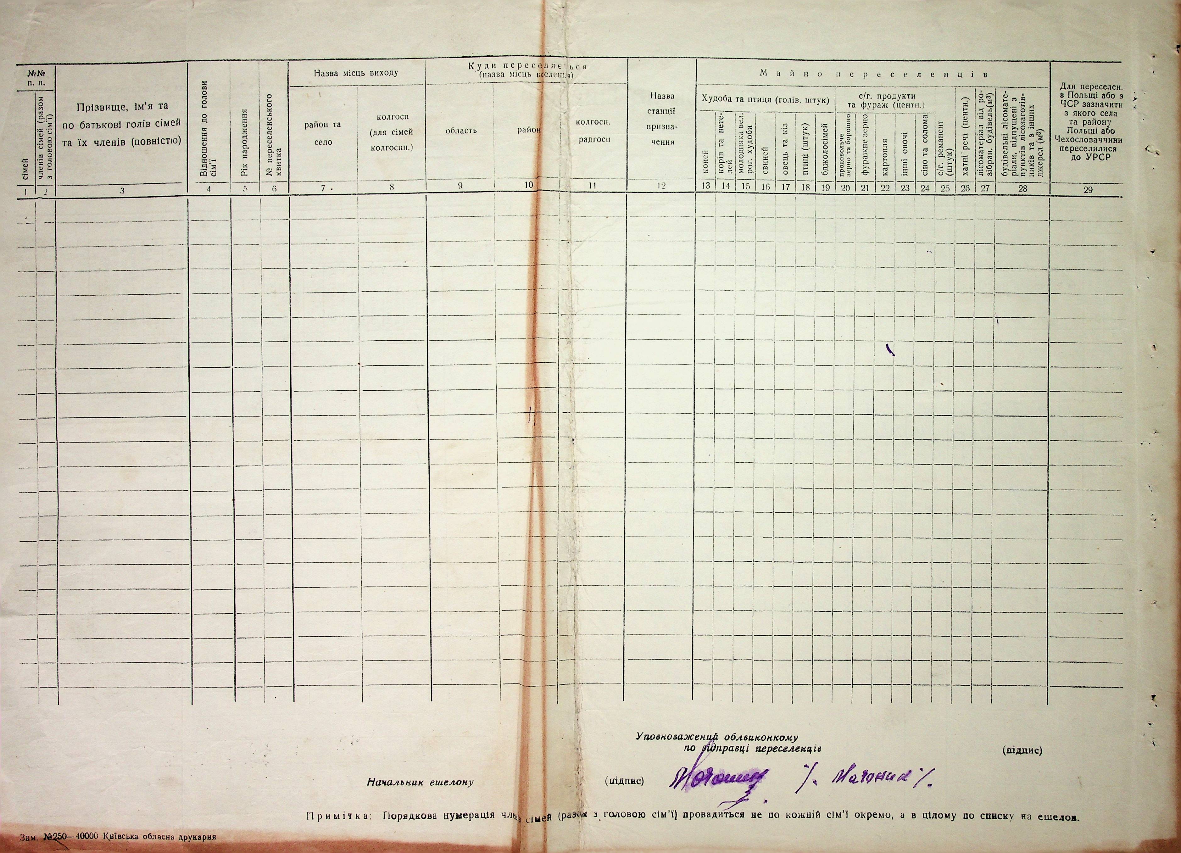 • • • • Справа № 69 “Ешелонні списки на осіб, відправлених із Вінницької, Закарпатської та Чернігівської областей до Миколаївської області”