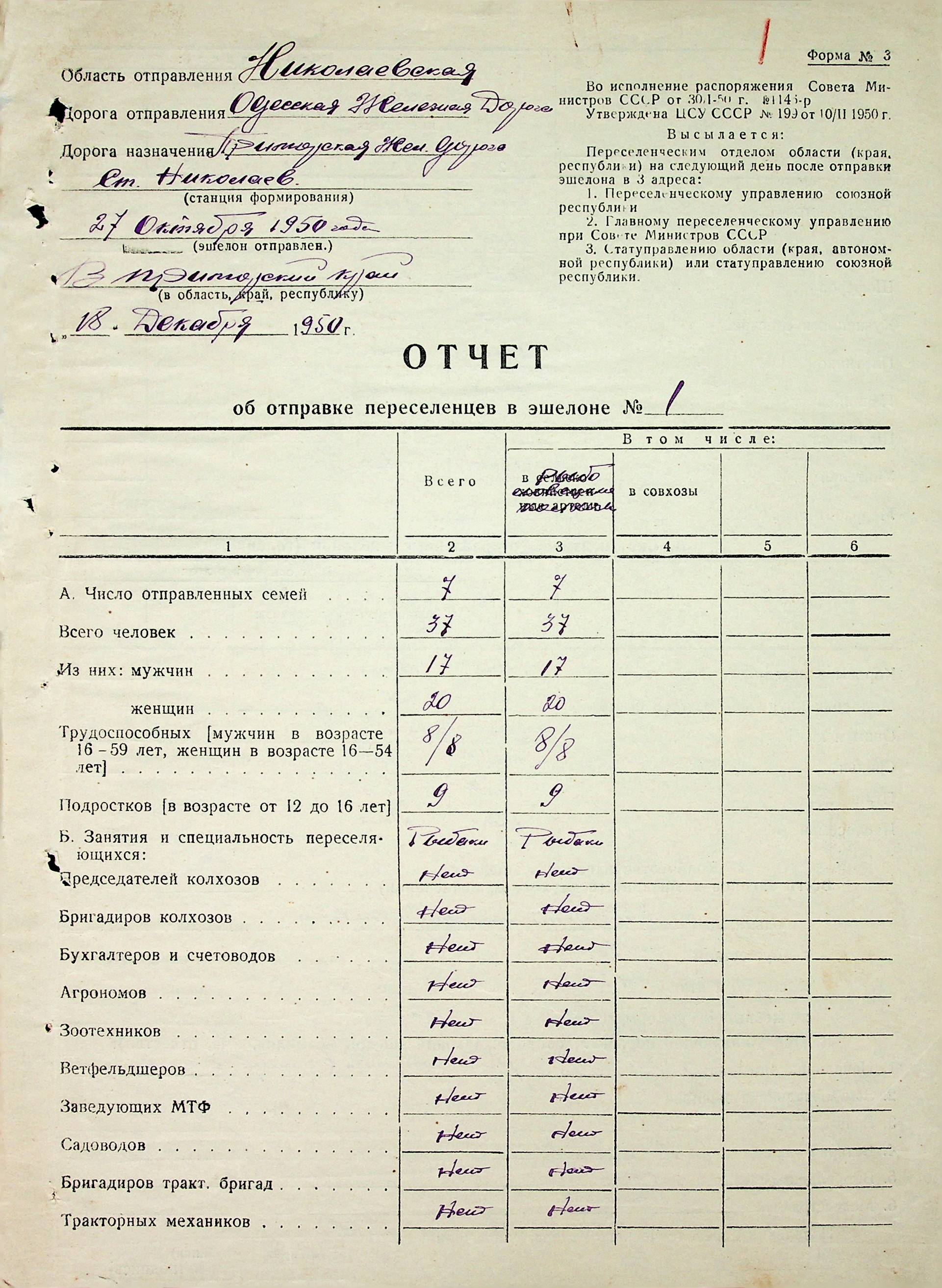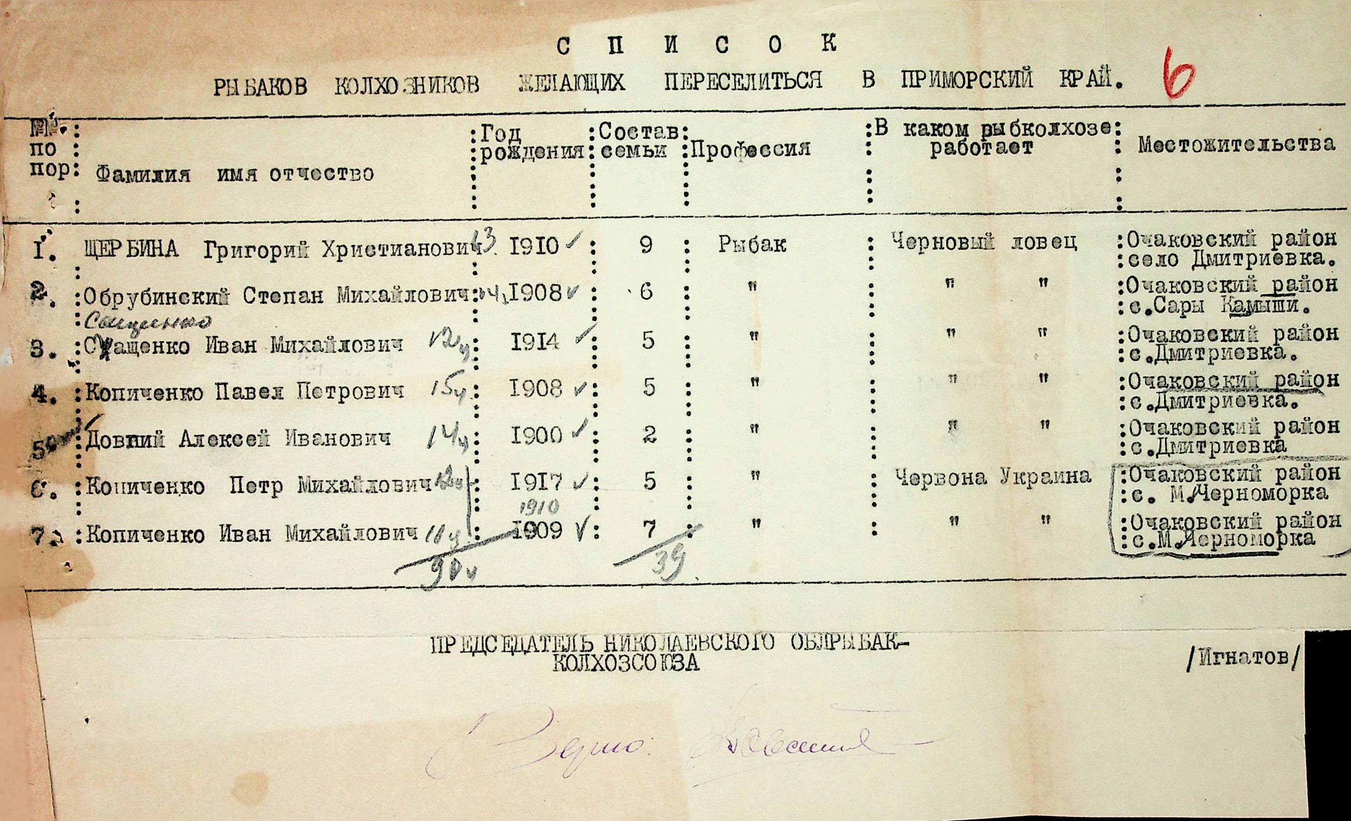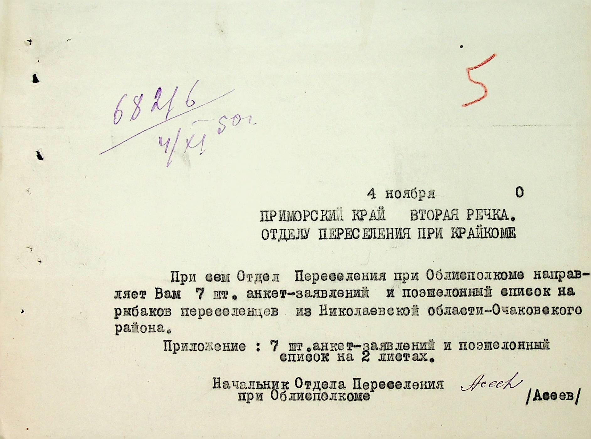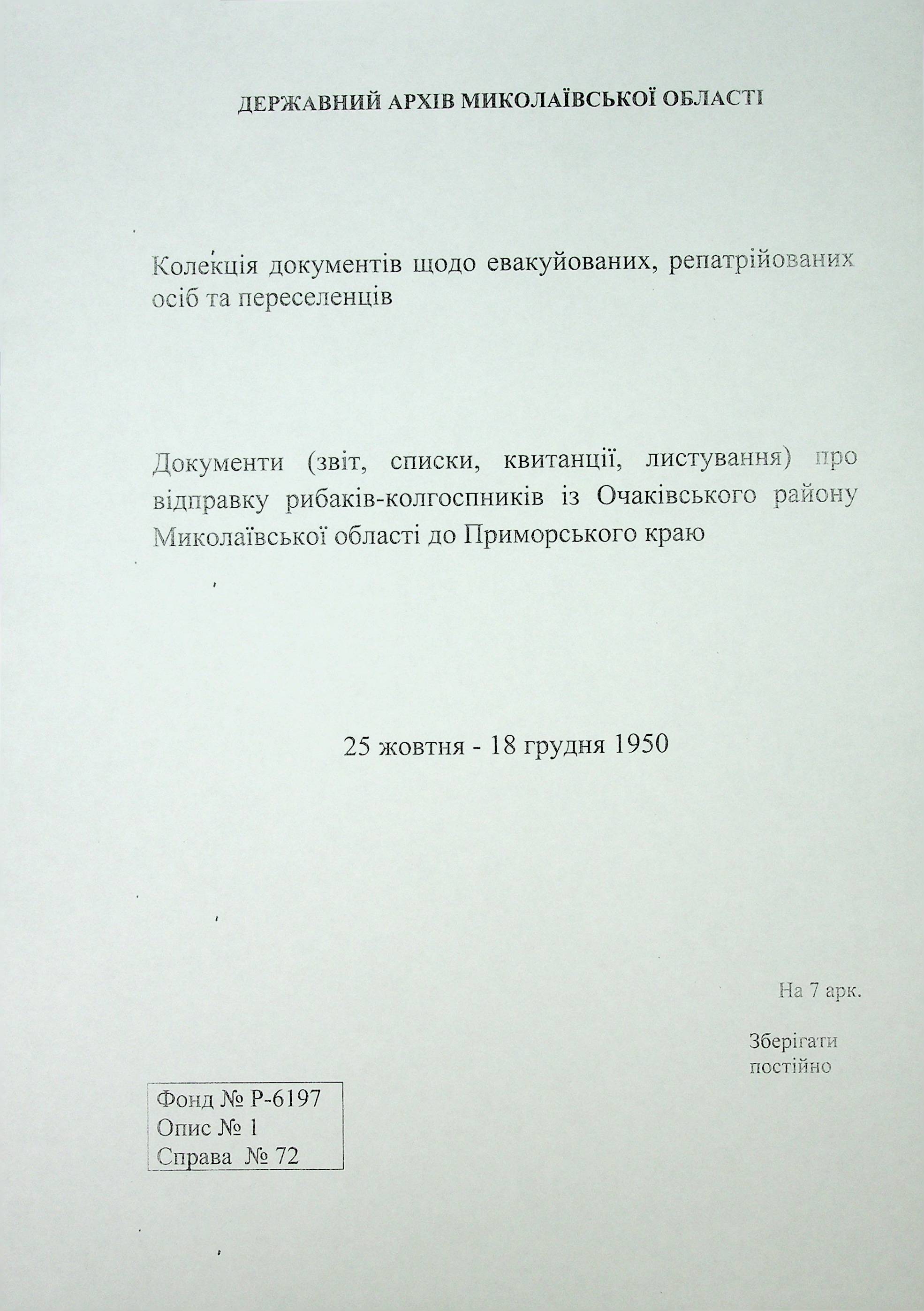 • • • • Справа № 72 “Документи (звіт, списки, квитанції, листування) про відправку рибаків-колгоспників із Очаківського району Миколаївської області до Примор-ського краю”
