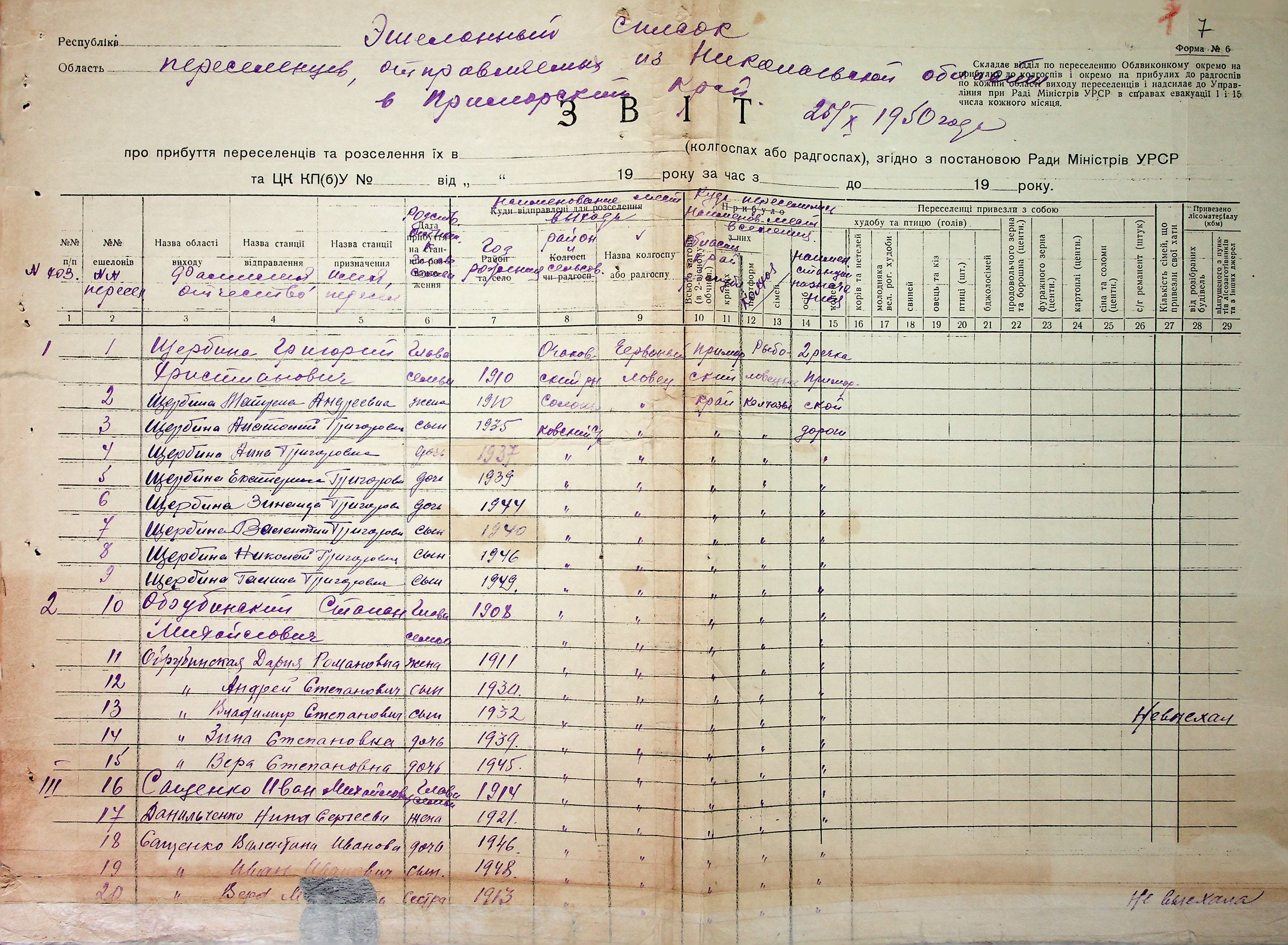◦ ◦ Фонд № Р-6197 “Колекція документів щодо евакуйованих, репатрійованих осіб та переселенців”