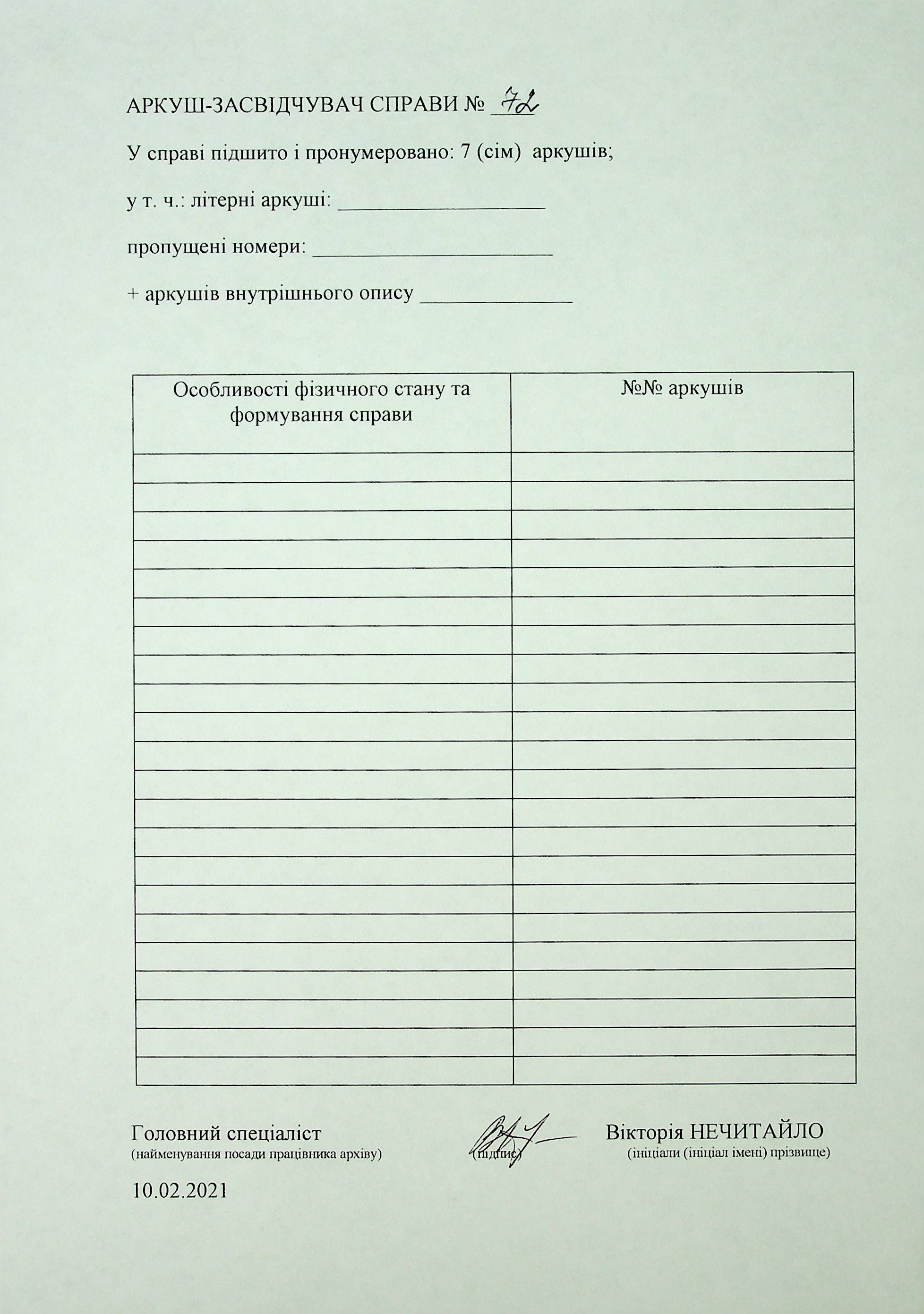 Фонд Р-6197 / Опис 1 / Справа 72