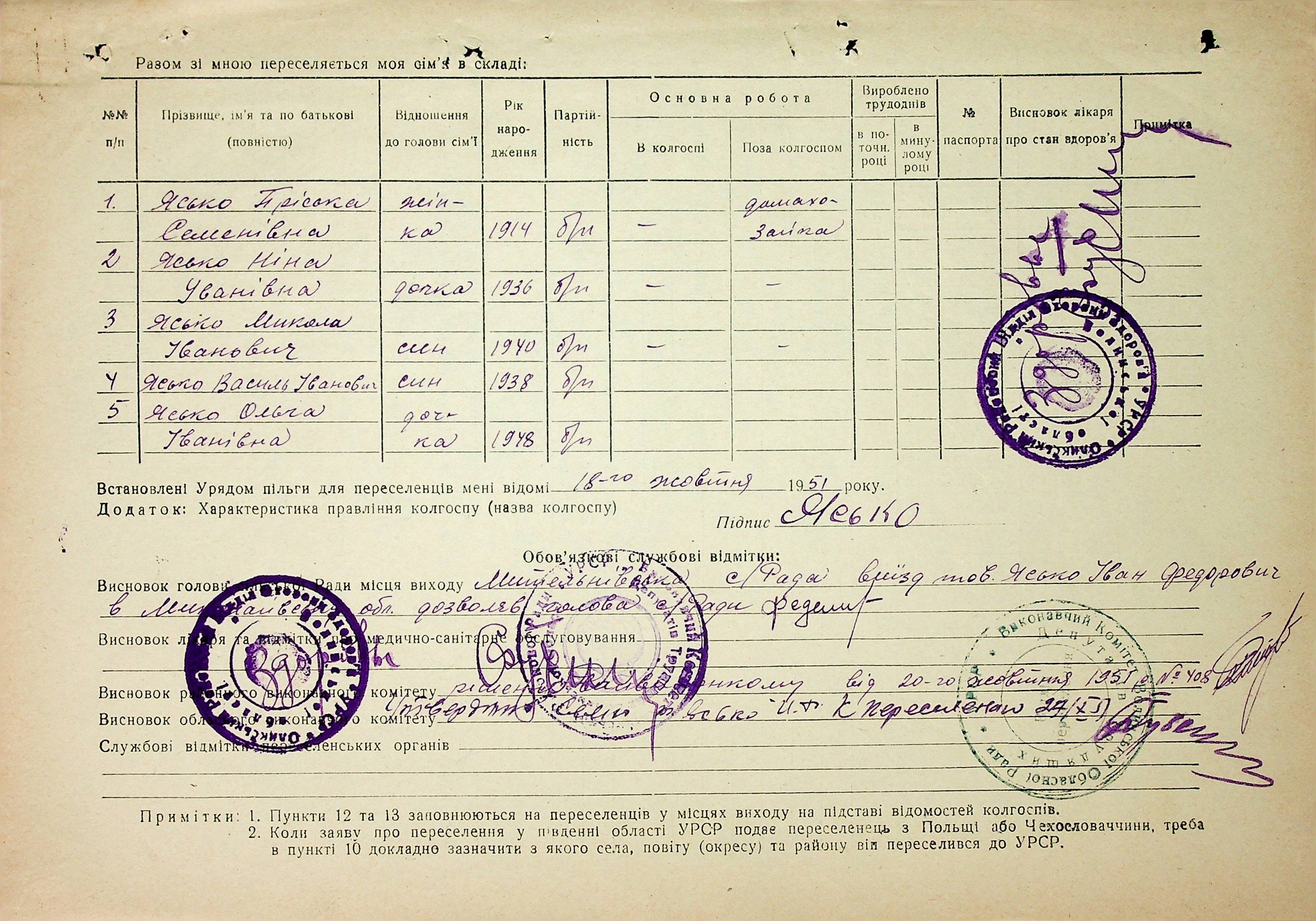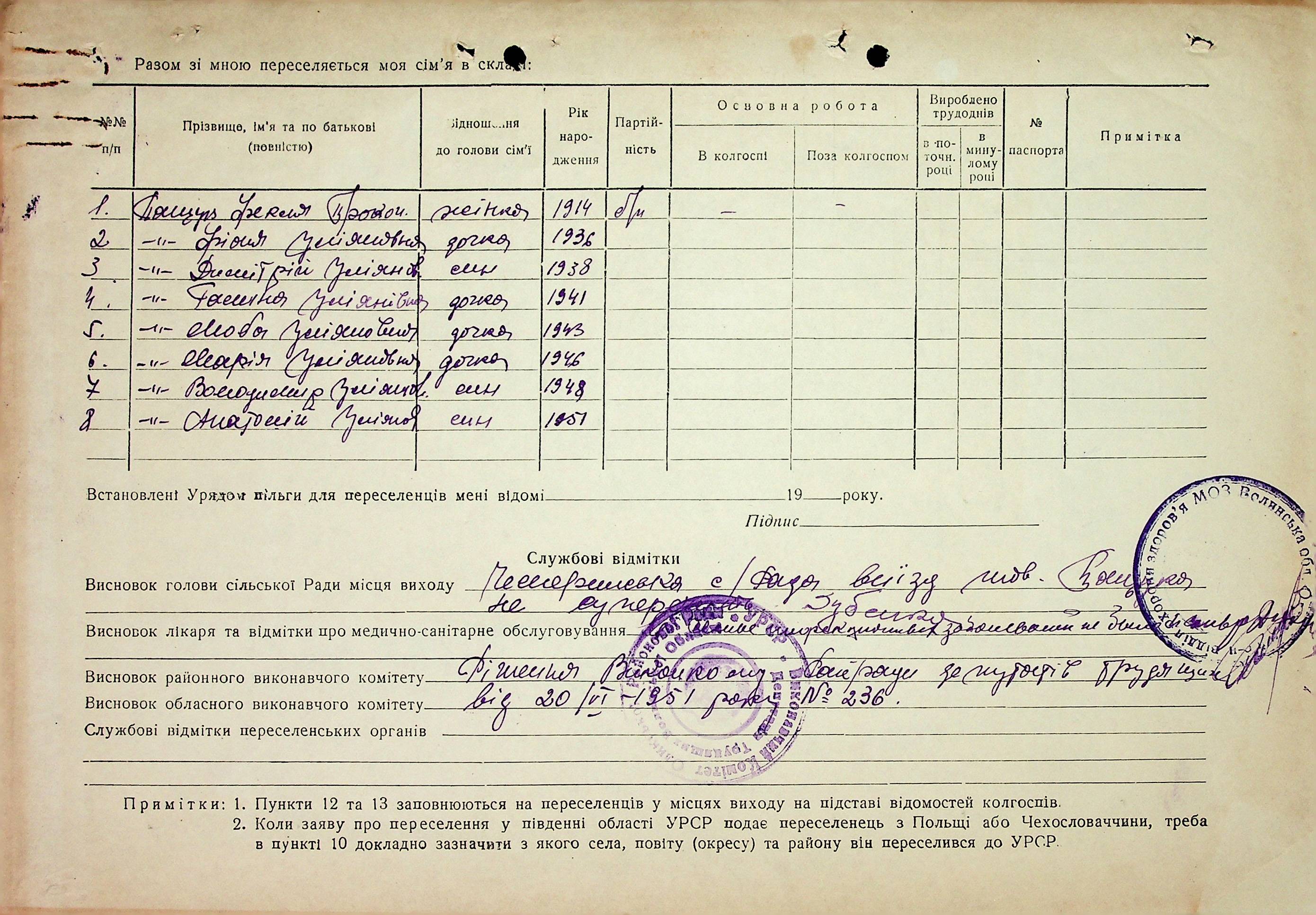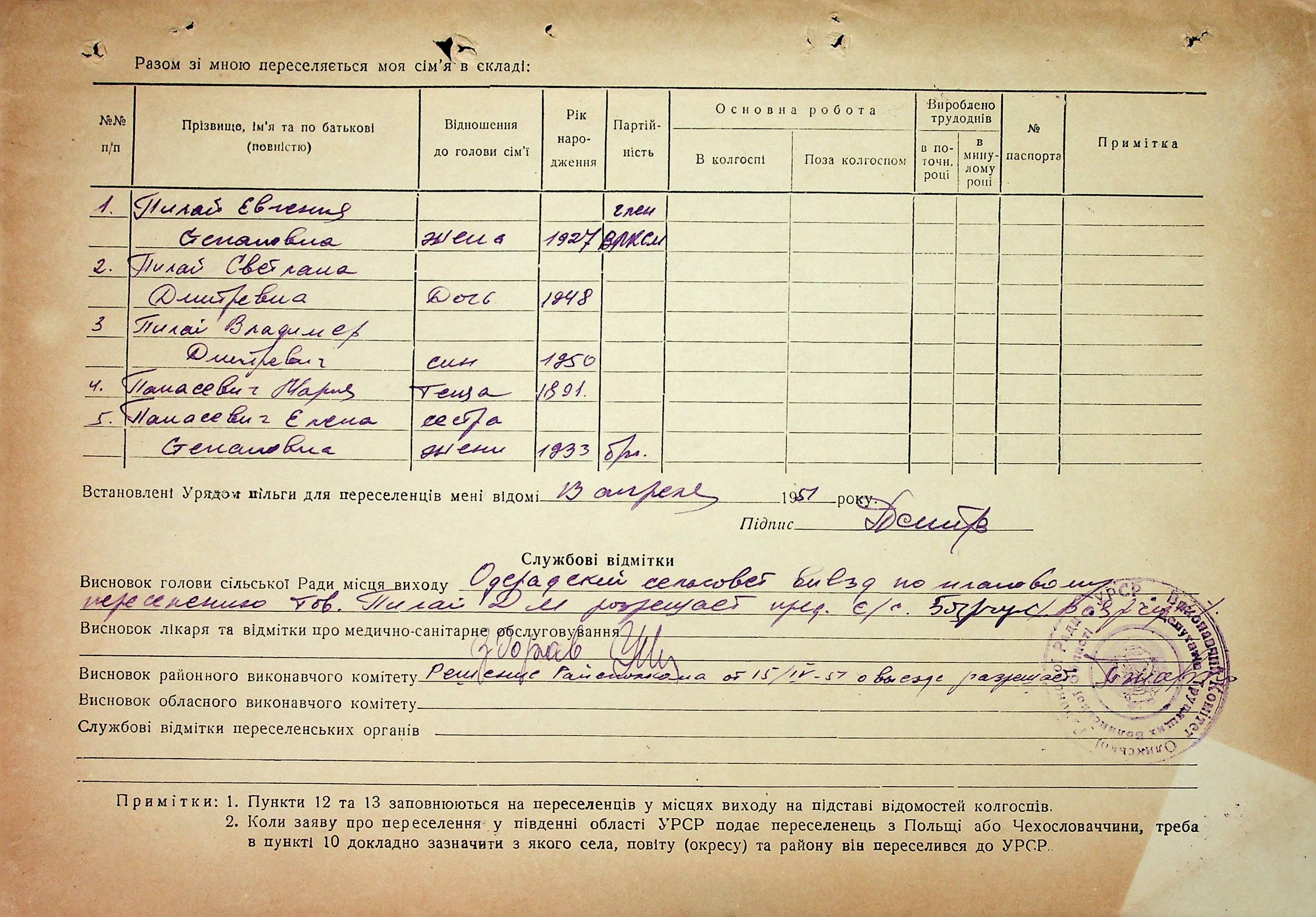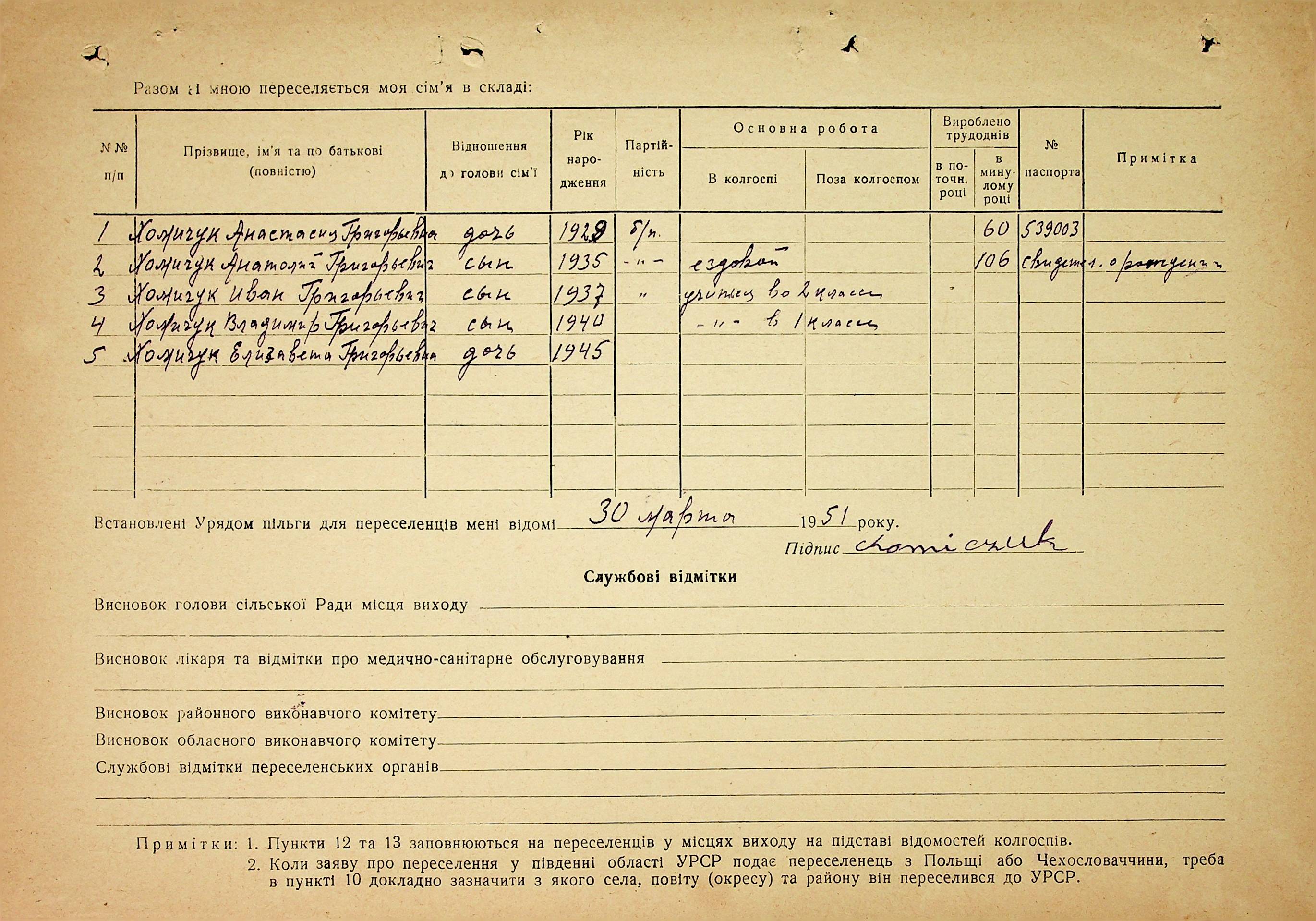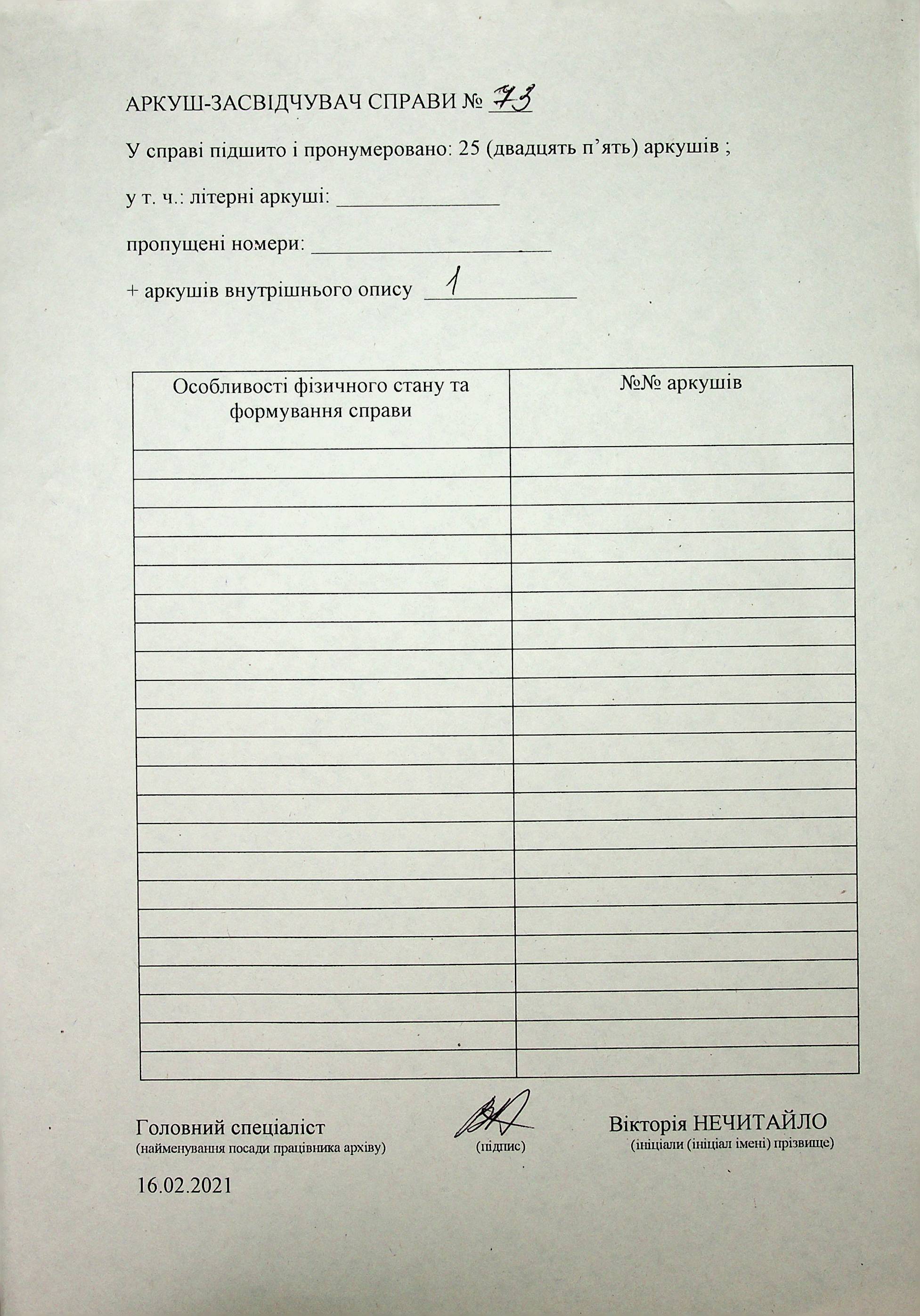 • • • • Справа № 73 “Анкети-заяви про планове переселення сімей з Волинської до Миколаївської області”