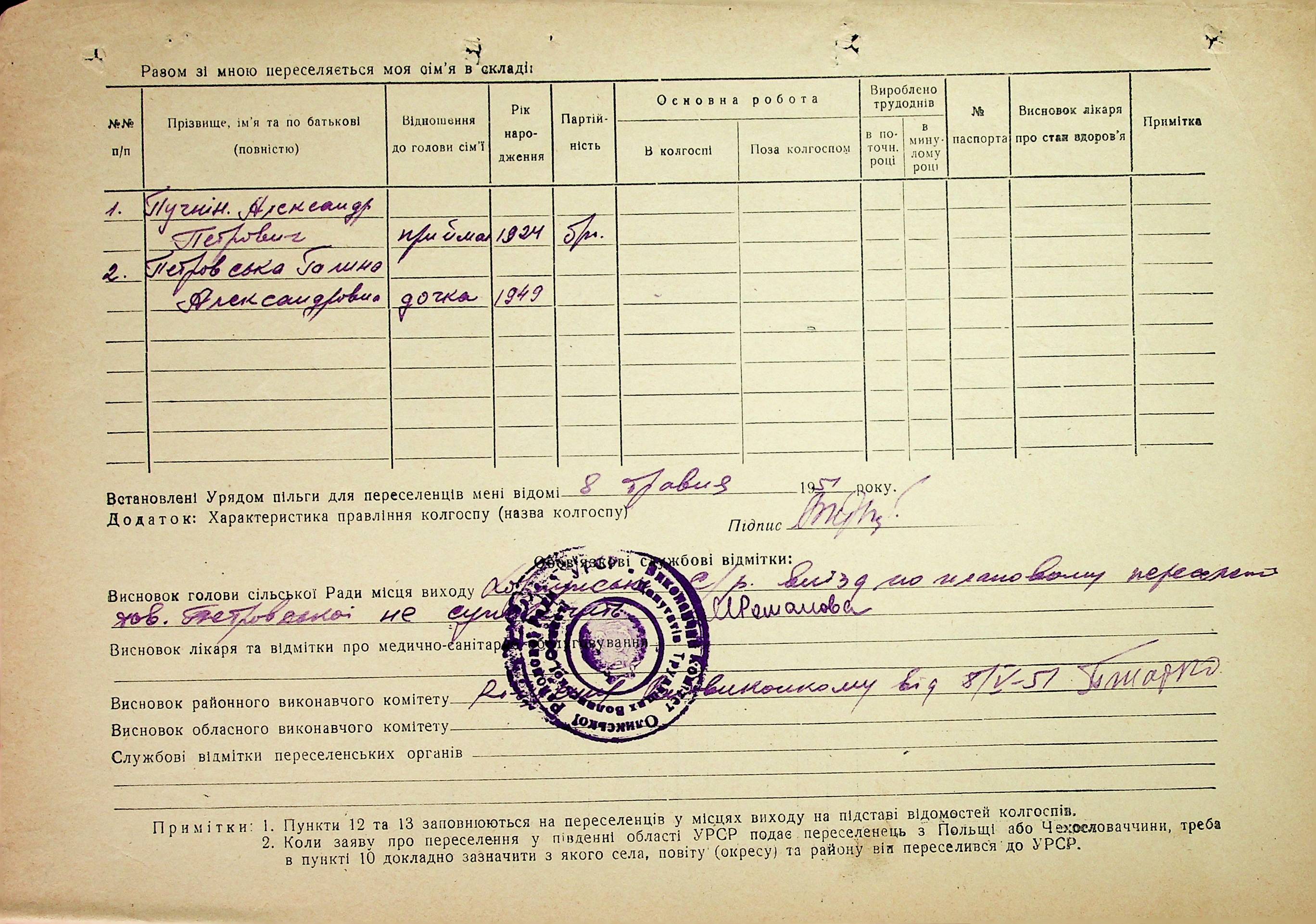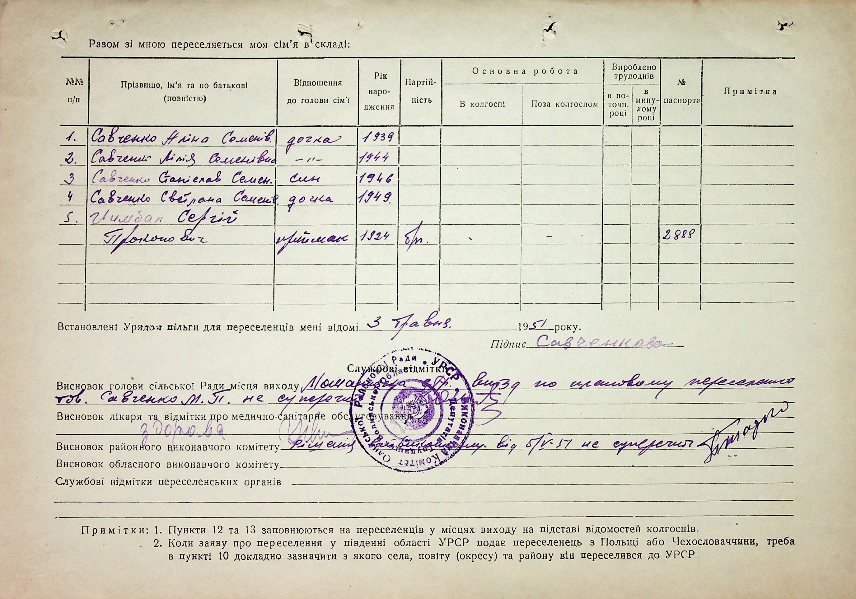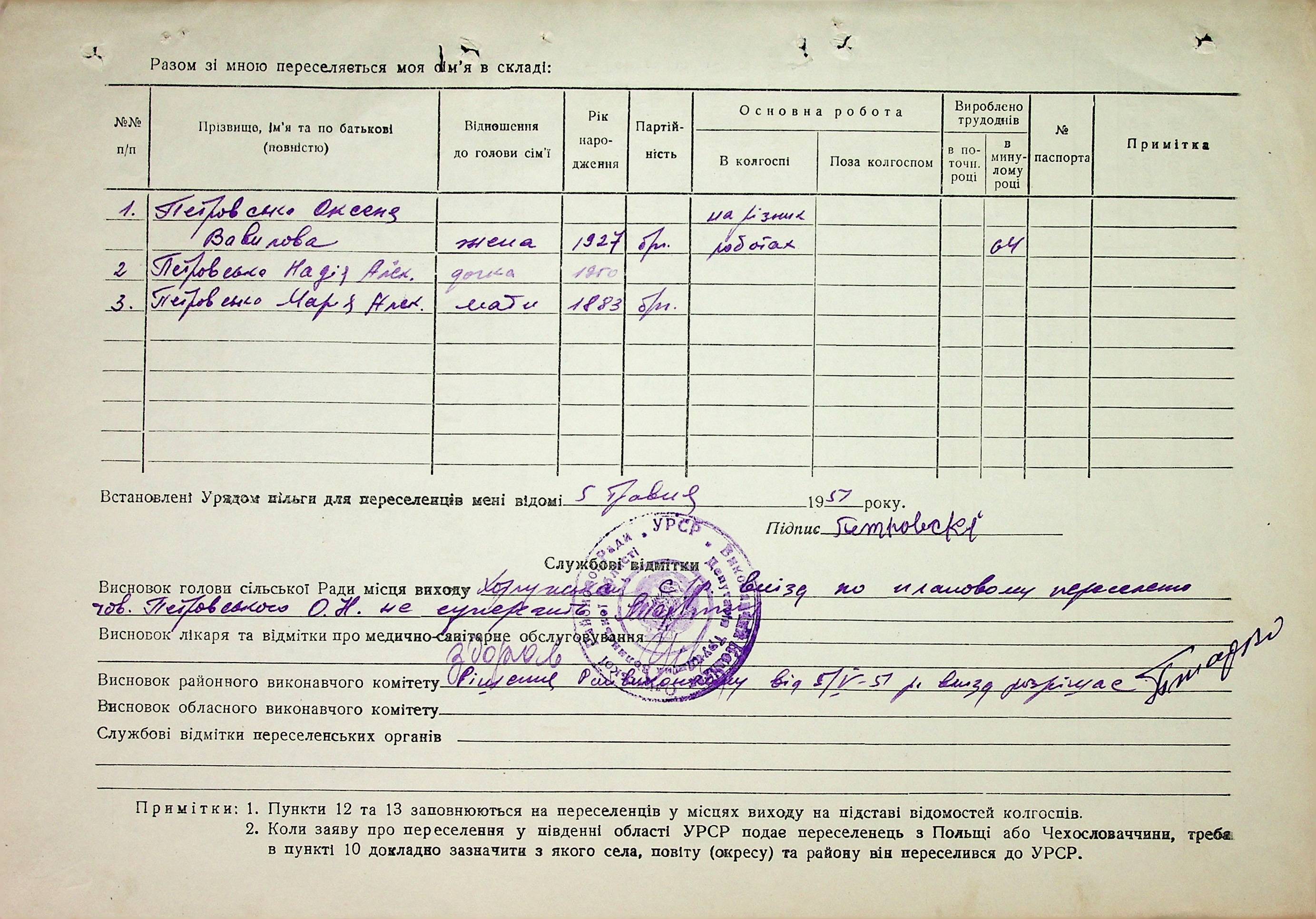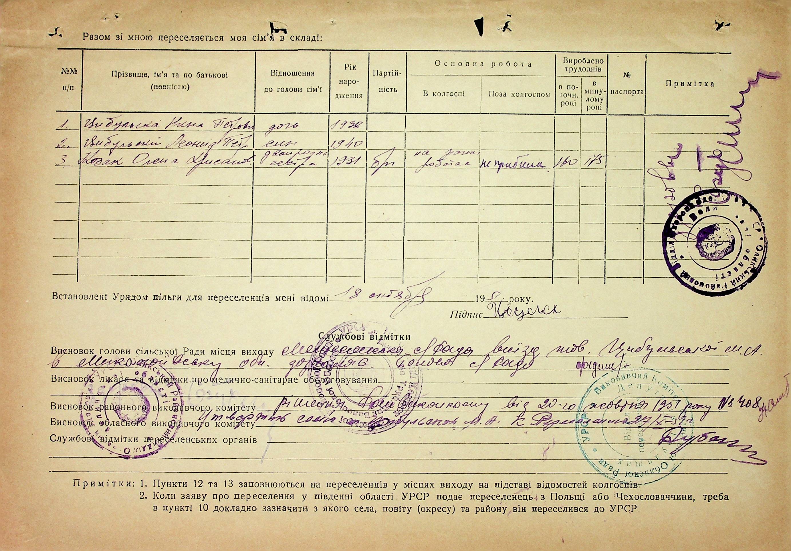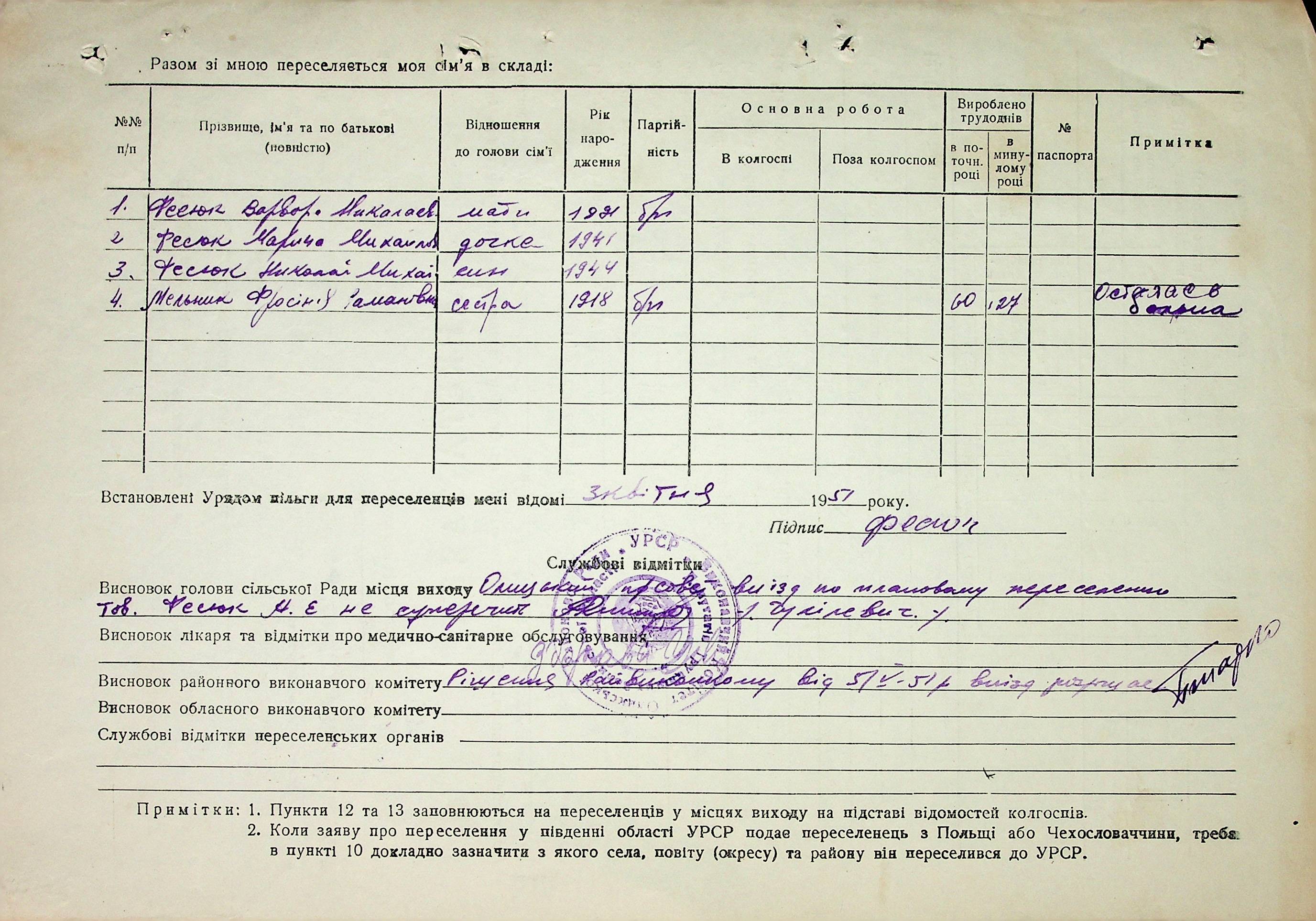 • • • • Справа № 73 “Анкети-заяви про планове переселення сімей з Волинської до Миколаївської області”