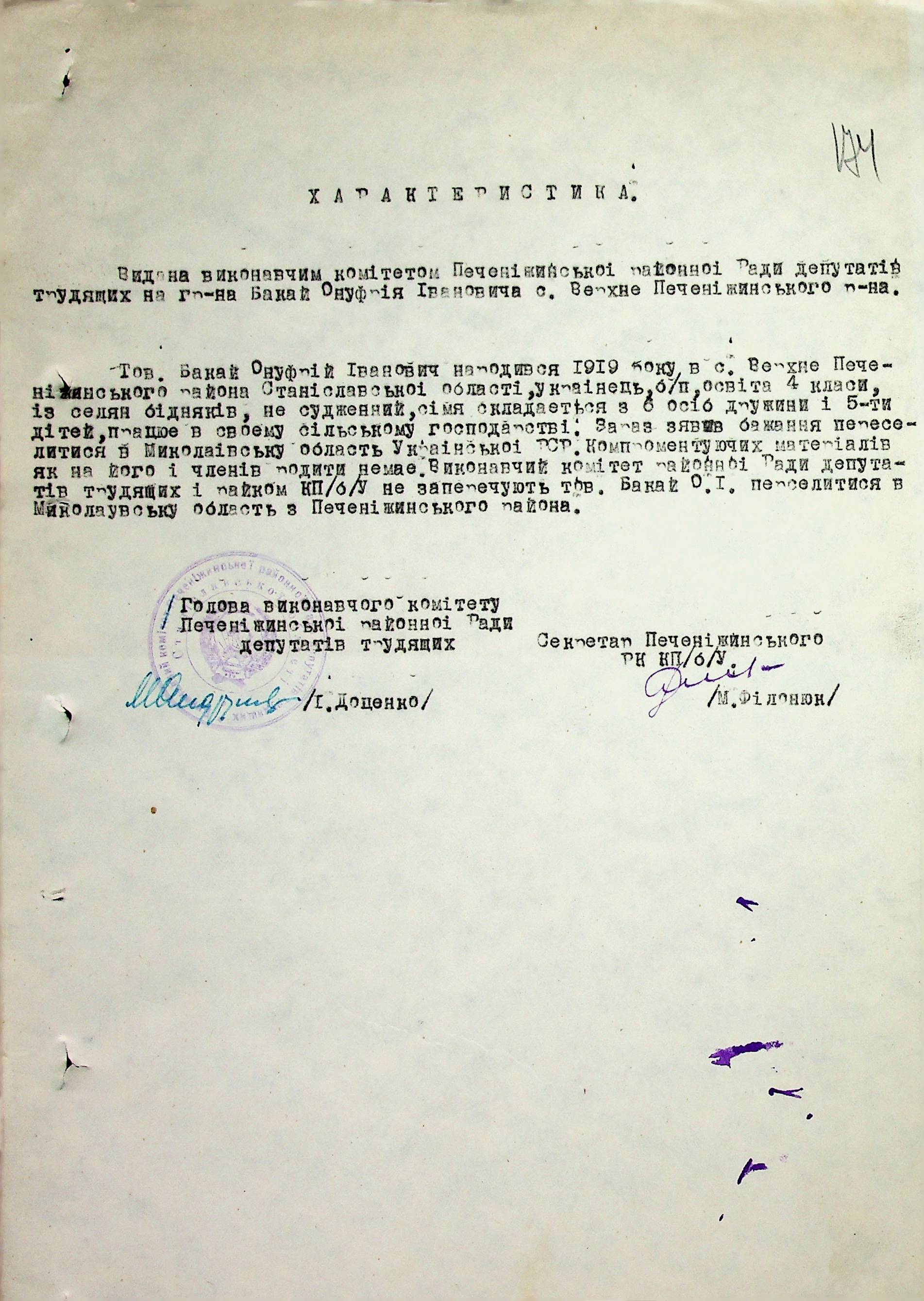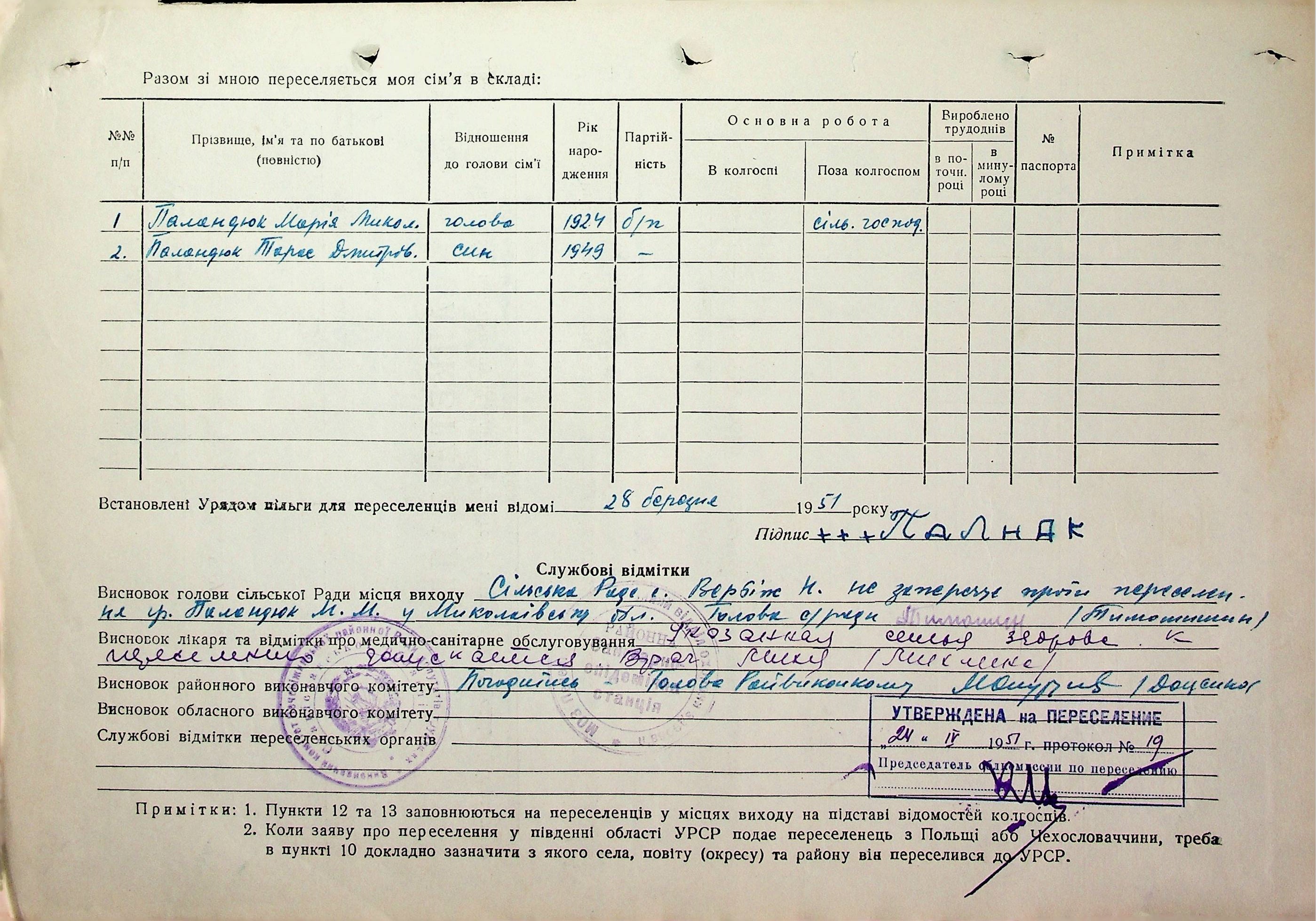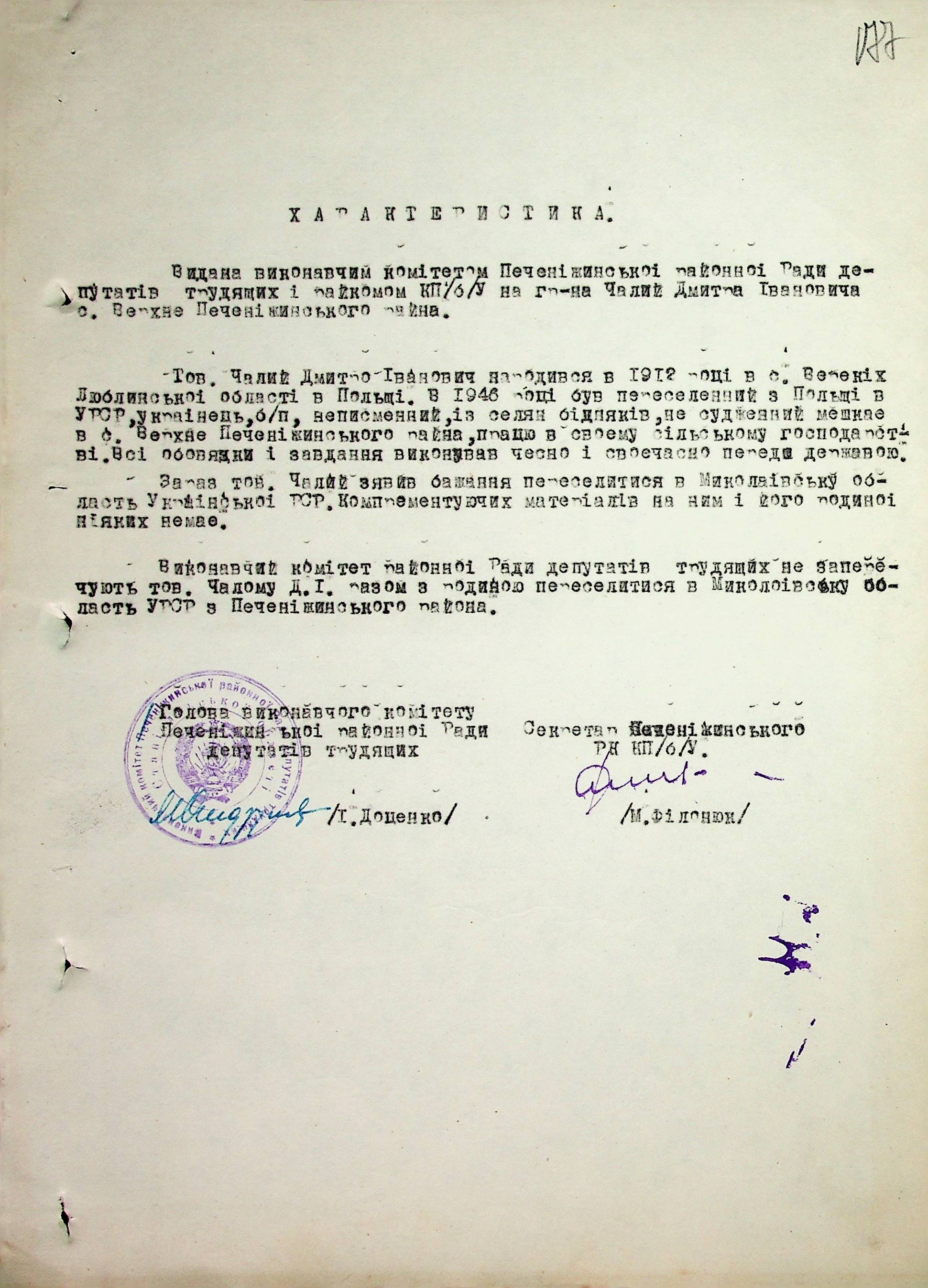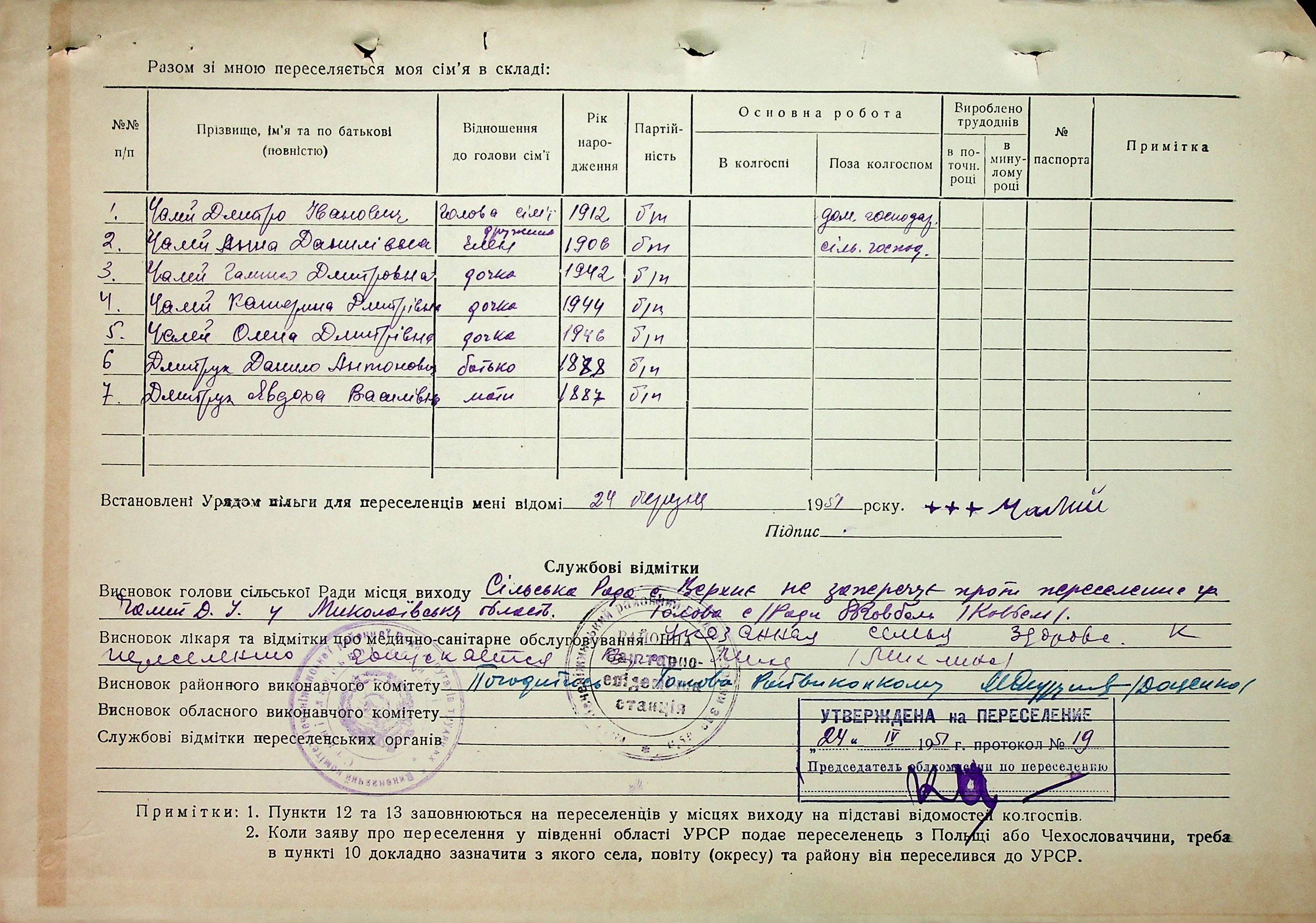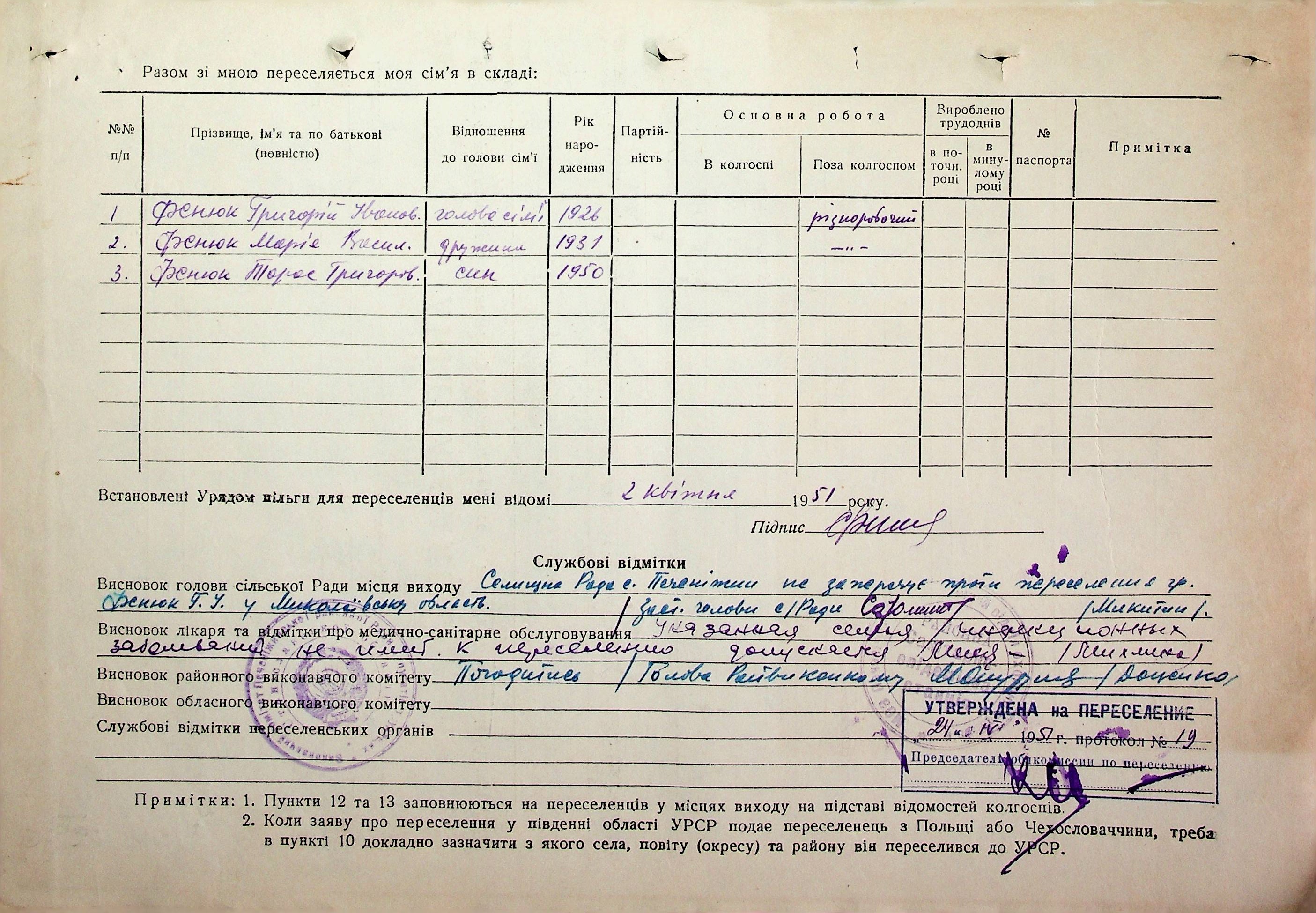 • • • • Справа № 74 “Анкети-заяви про планове переселення сімей з Станіславської до Миколаївської області. Характеристики на господарства, надані виконкомами районних Рад депутатів трудящих особам, які виявили бажання переселитися. Санітарний паспорт і дублікат ветеринарного свідоцтва на право посадки в ешелони. Том 1”