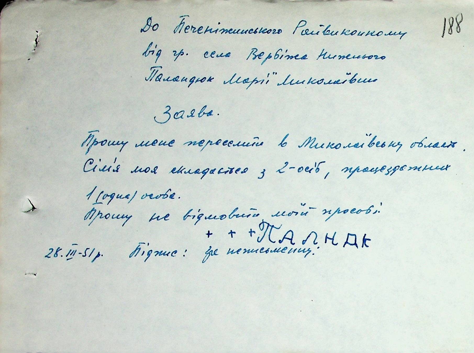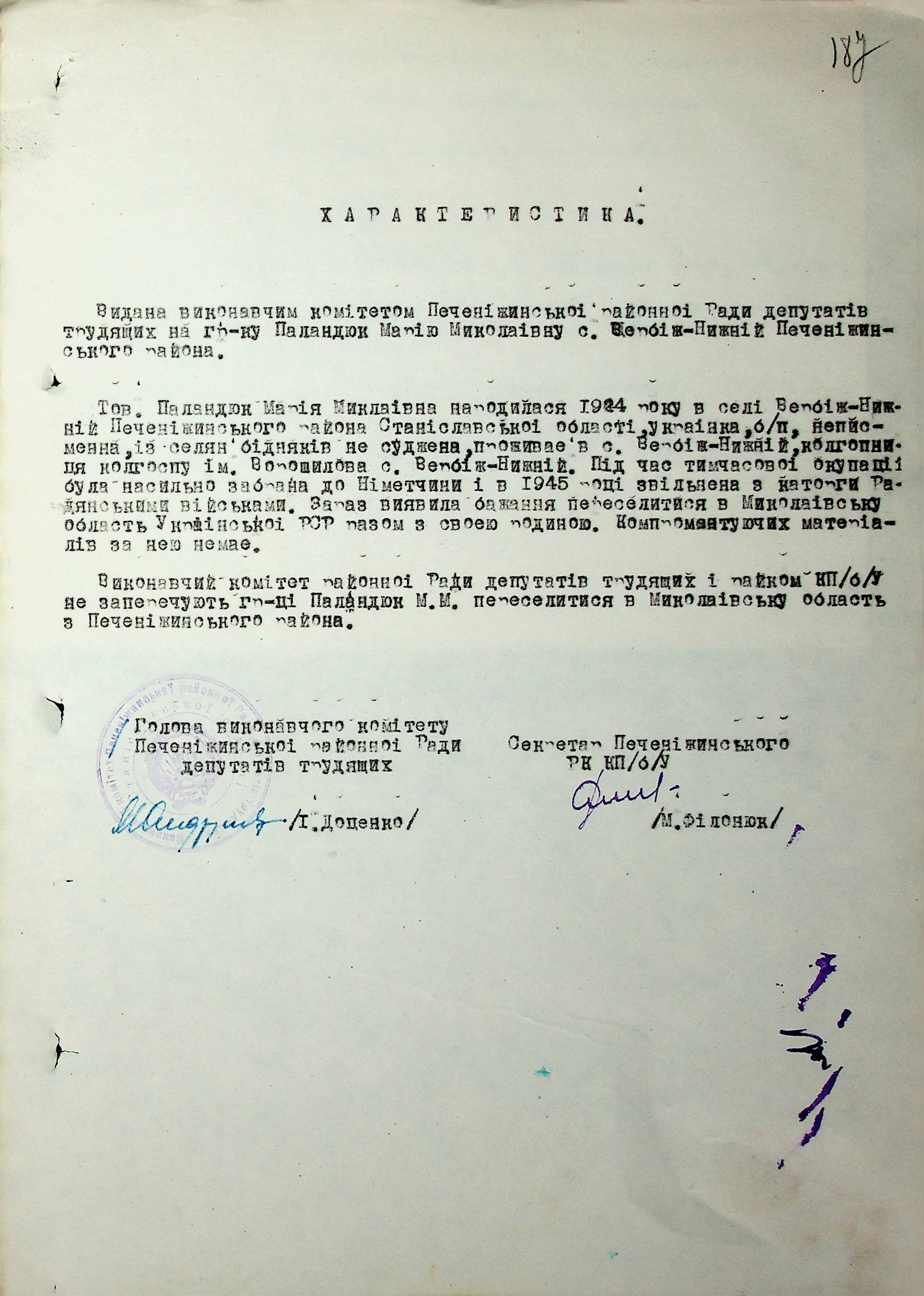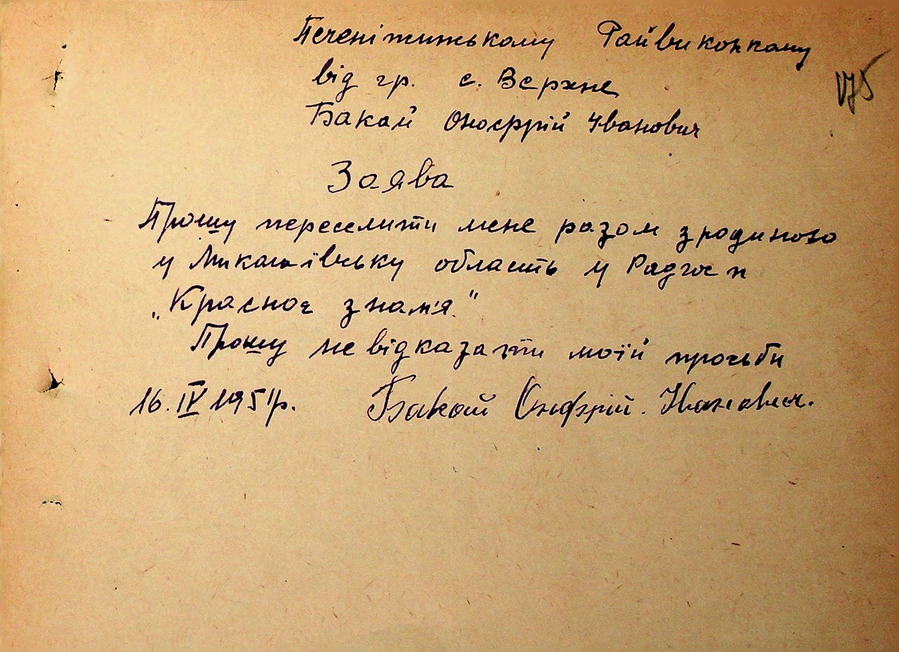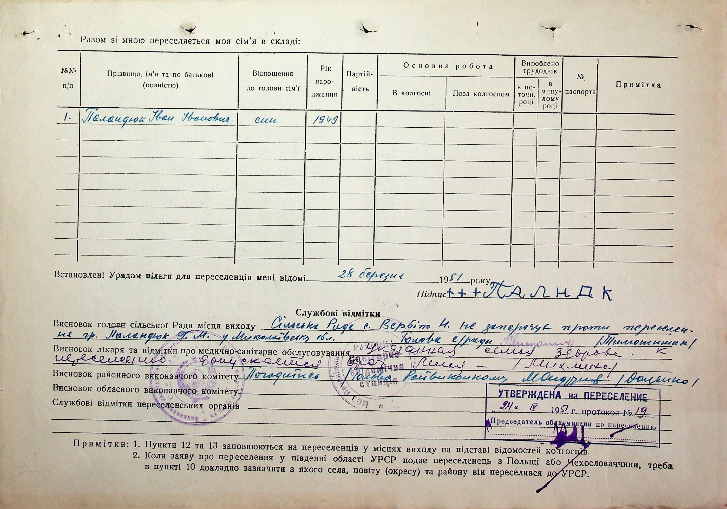 • • • • Справа № 74 “Анкети-заяви про планове переселення сімей з Станіславської до Миколаївської області. Характеристики на господарства, надані виконкомами районних Рад депутатів трудящих особам, які виявили бажання переселитися. Санітарний паспорт і дублікат ветеринарного свідоцтва на право посадки в ешелони. Том 1”