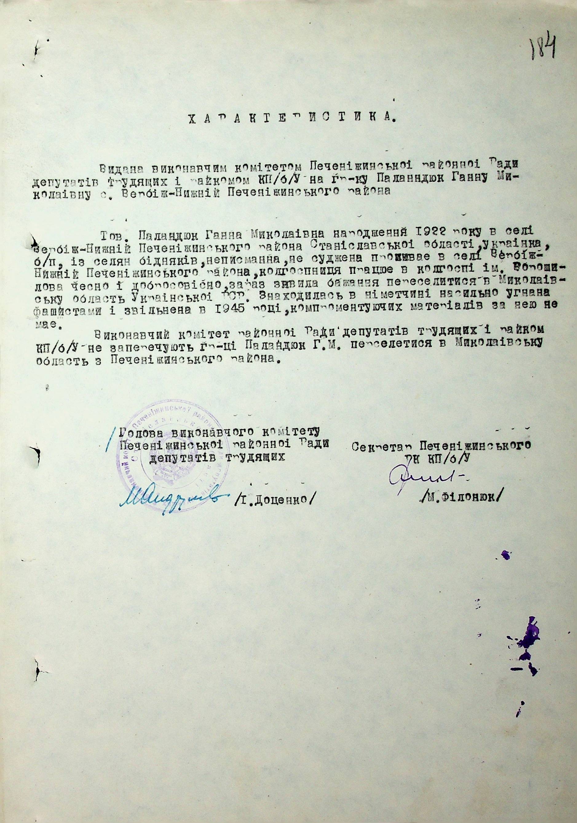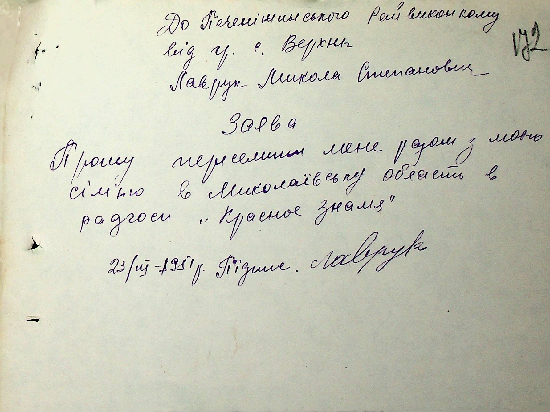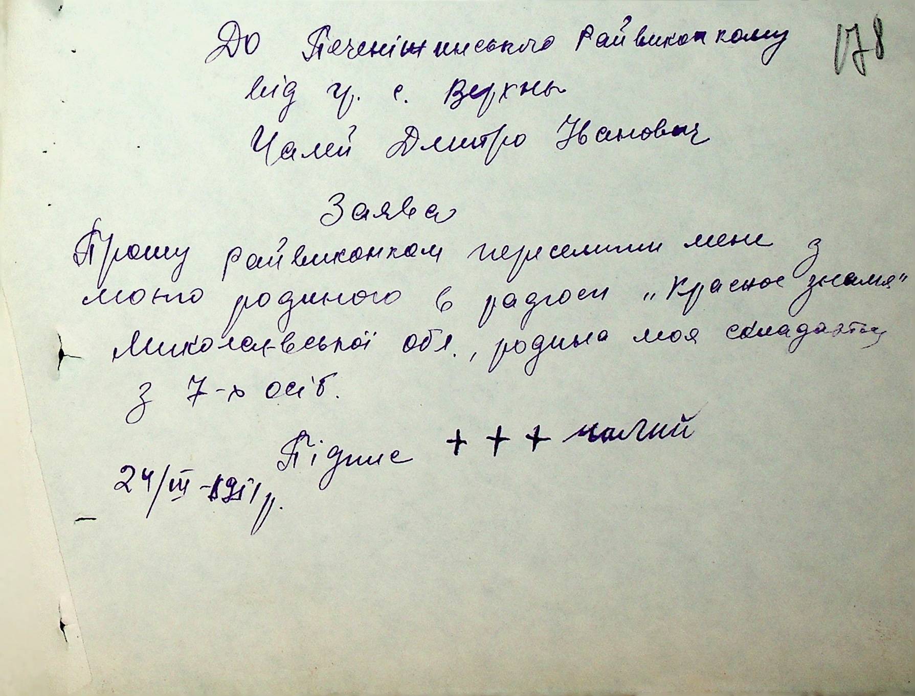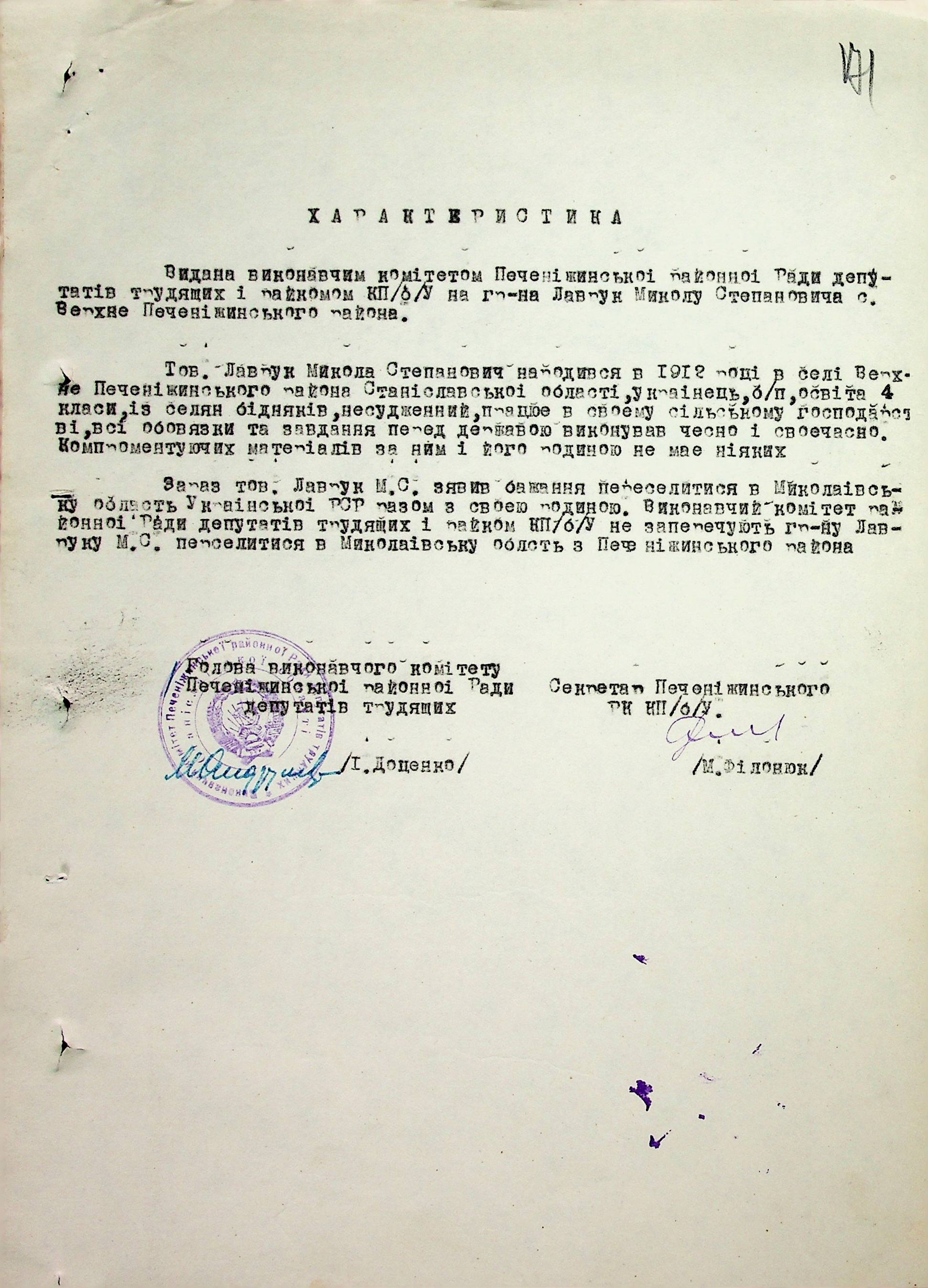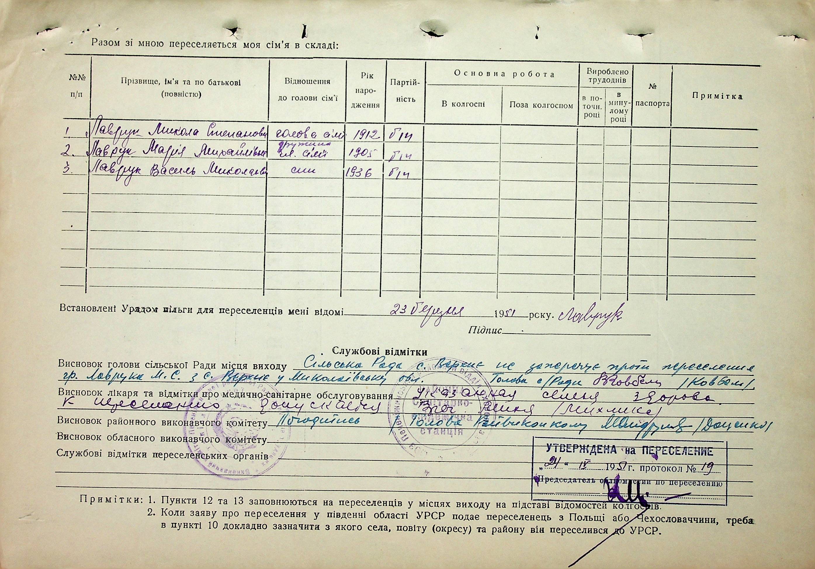 • • • • Справа № 74 “Анкети-заяви про планове переселення сімей з Станіславської до Миколаївської області. Характеристики на господарства, надані виконкомами районних Рад депутатів трудящих особам, які виявили бажання переселитися. Санітарний паспорт і дублікат ветеринарного свідоцтва на право посадки в ешелони. Том 1”