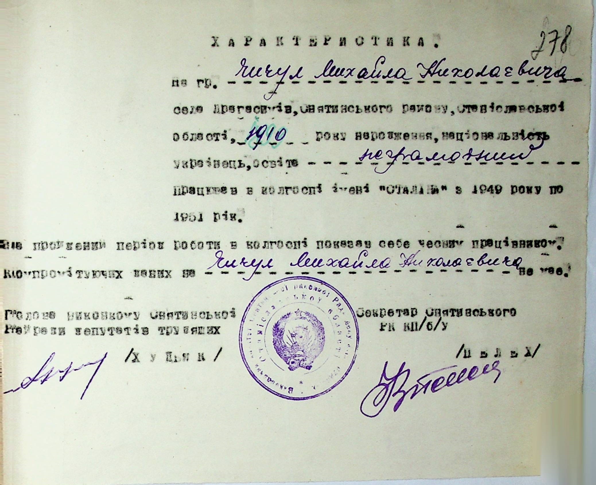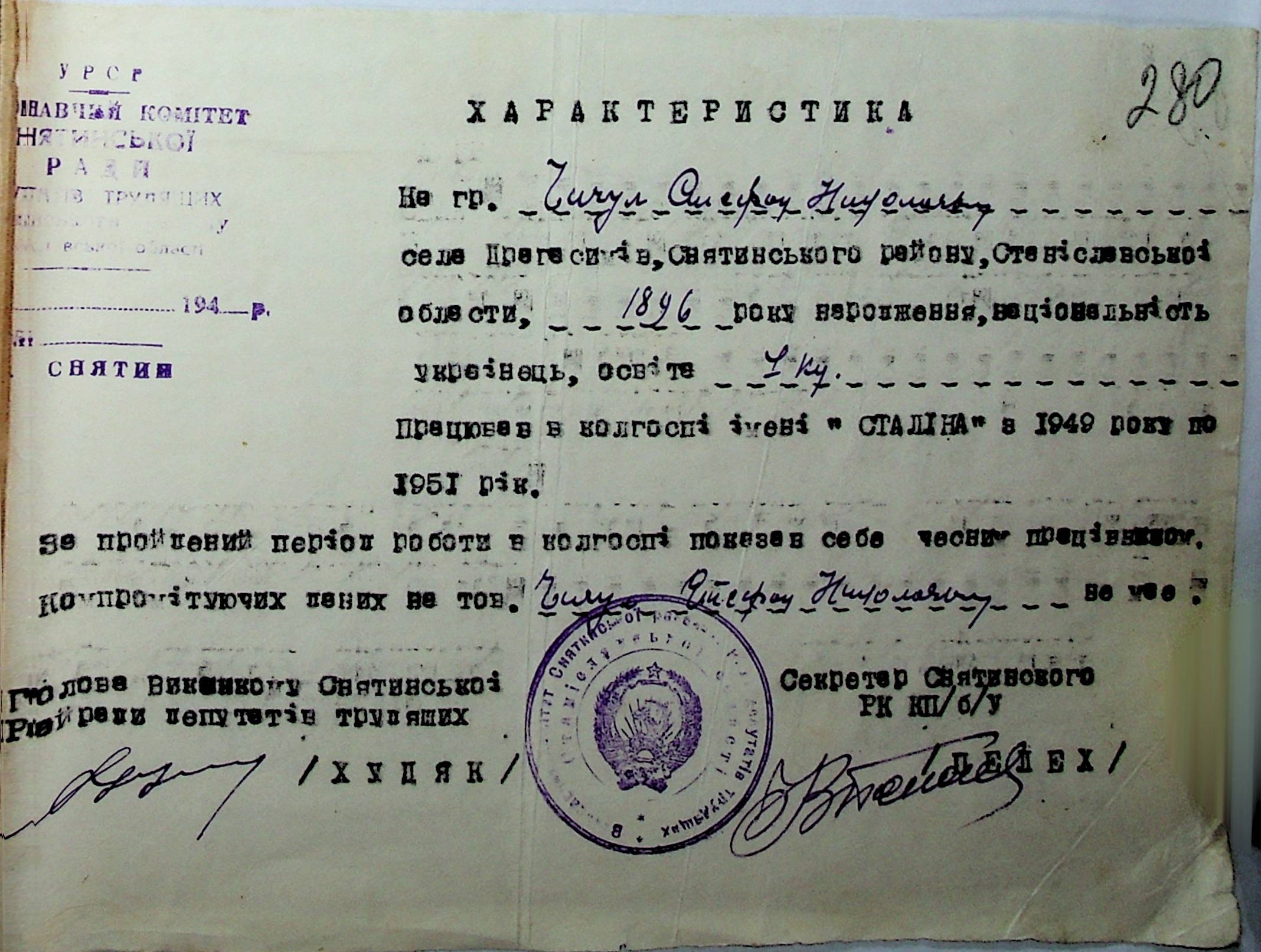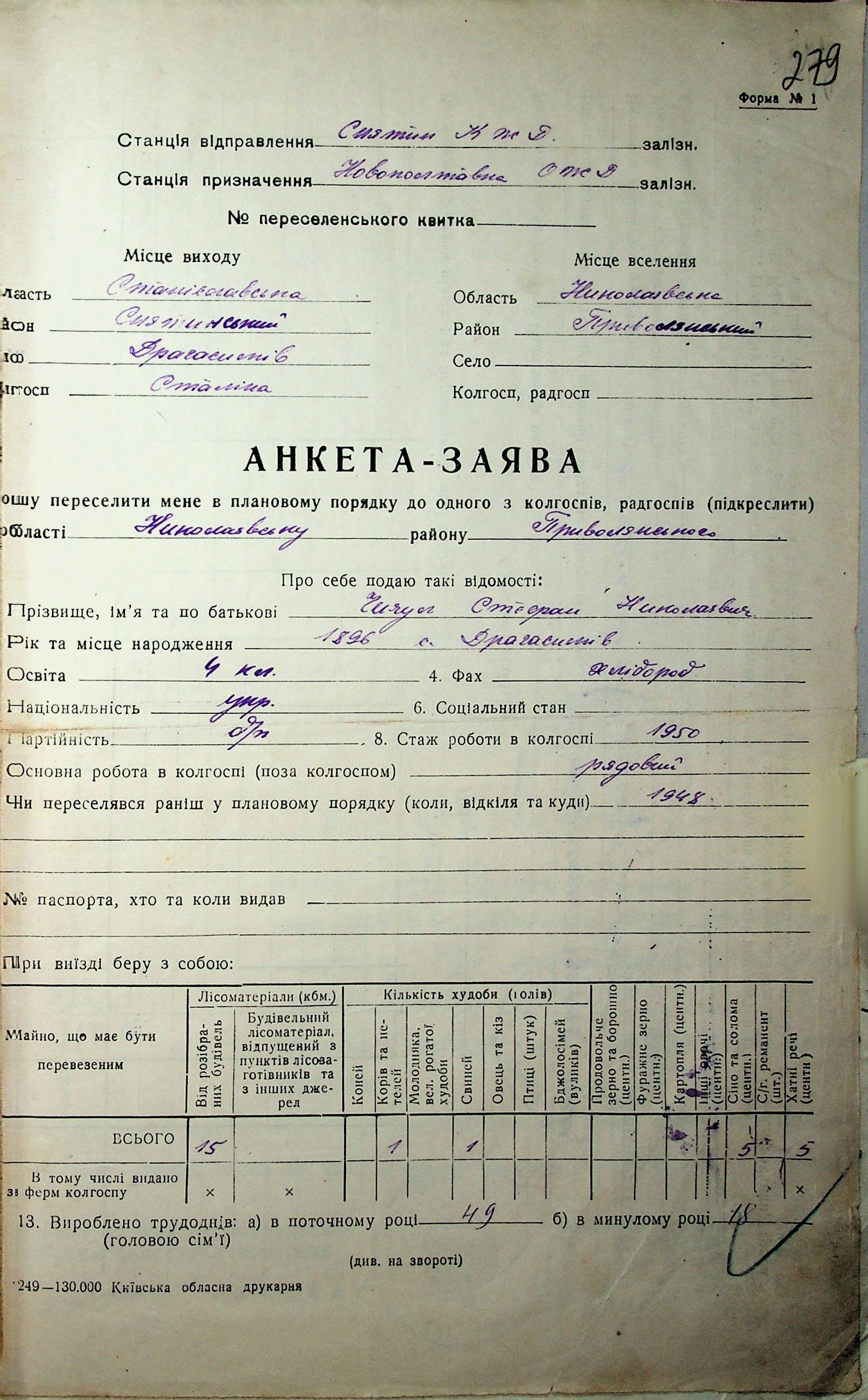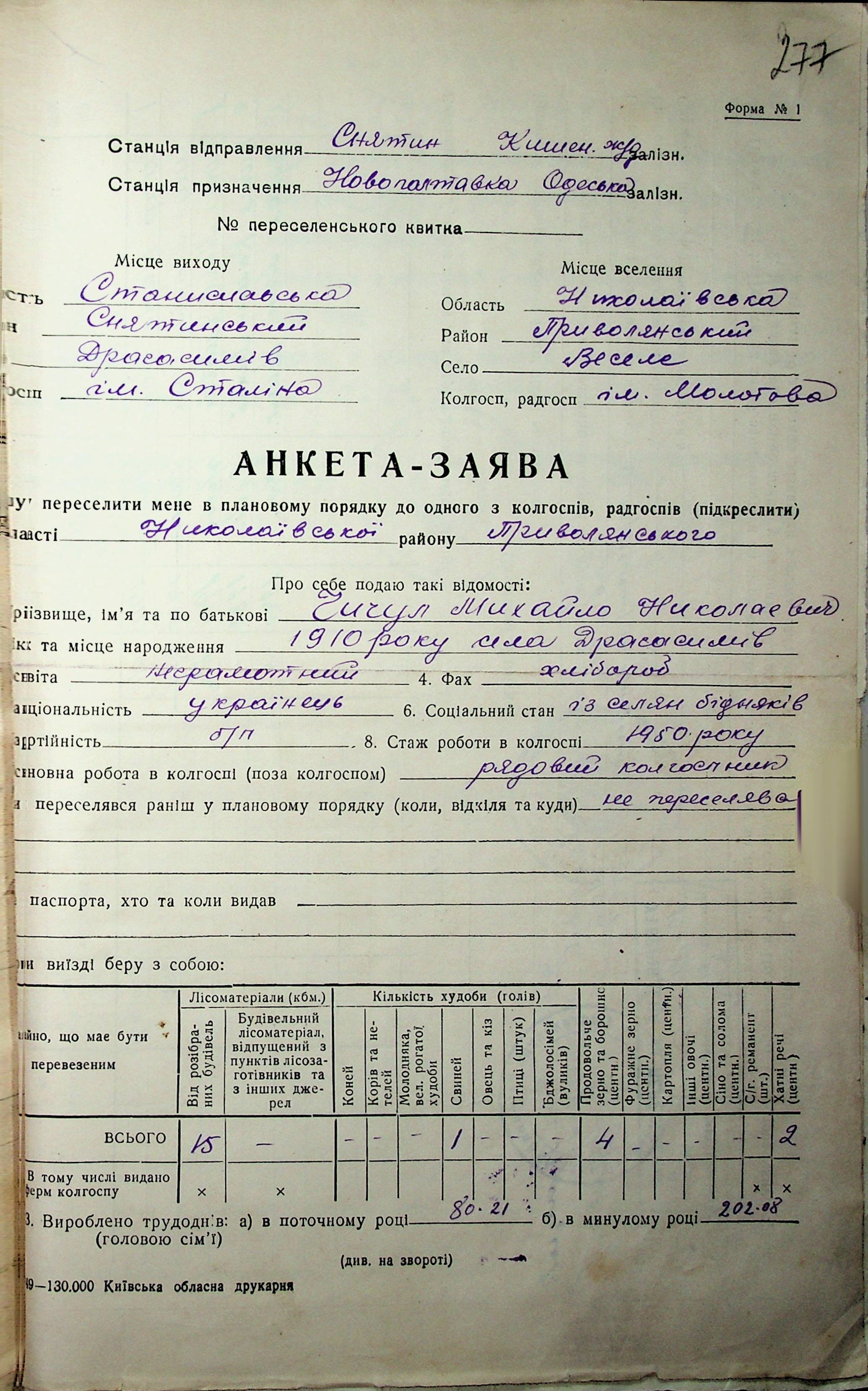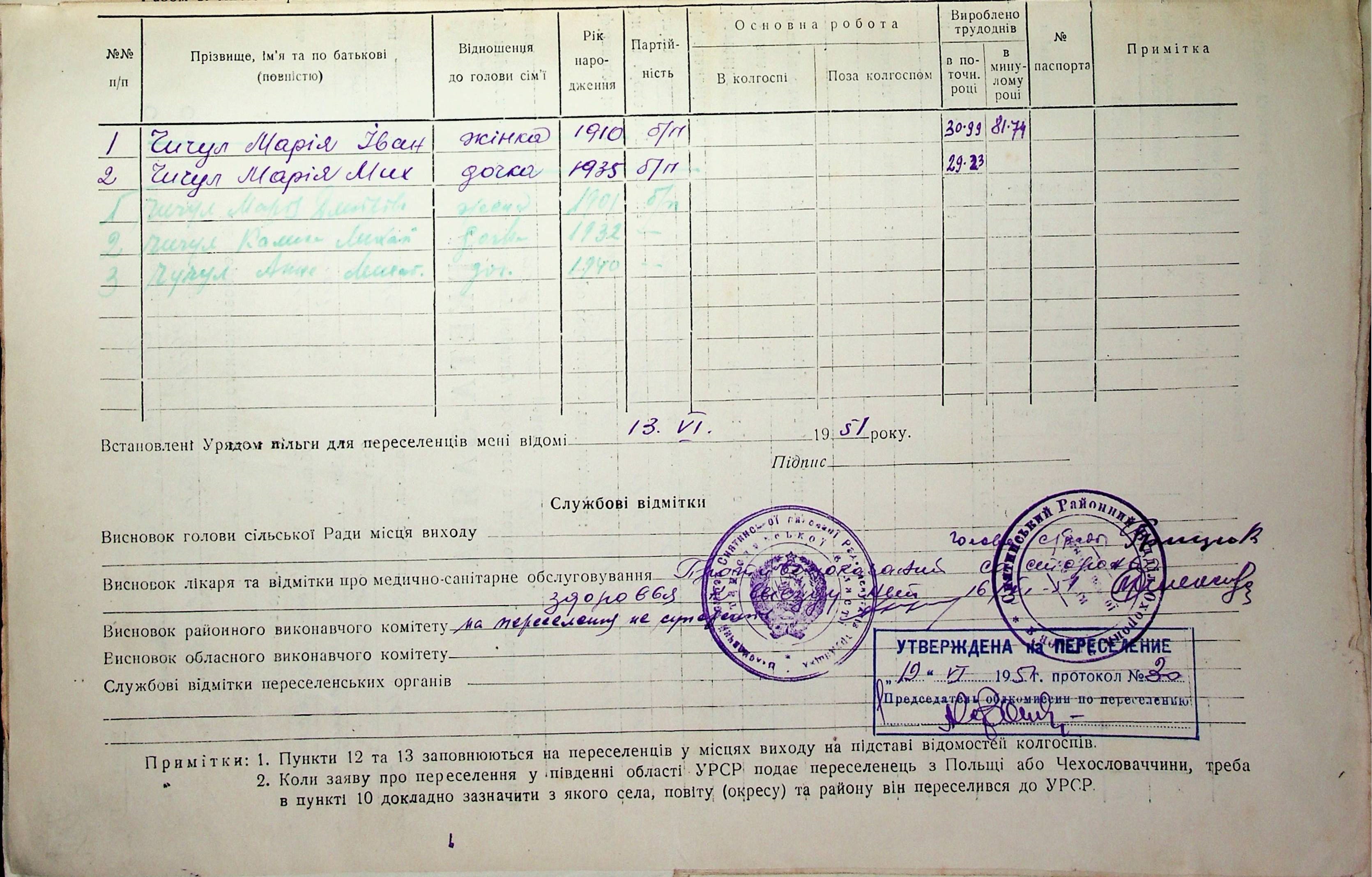 • • • • Справа № 75 “Анкети-заяви про планове переселення сімей з Станіславської до Миколаївської області. Характеристики на громадян, надані виконкомами районних Рад депутатів трудящих про відсутність компрометуючих даних на них. Том 2”