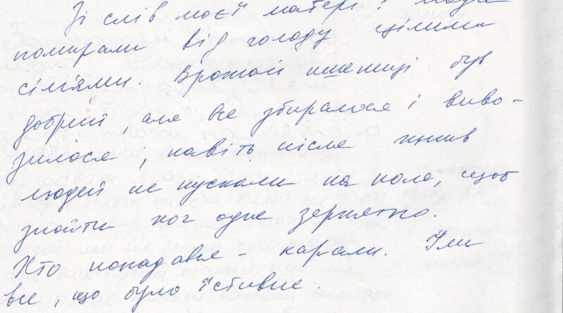 Представляємо свідчення очевидців Голодомору 1932-1933 років, мешканців Арбузинського району Миколаївської області, що зберігаються у колекції свідчень у державному архіві (фонд