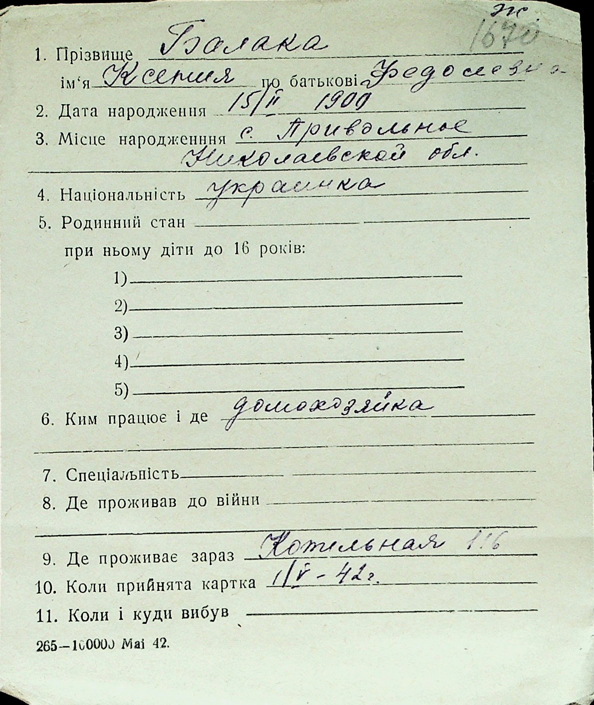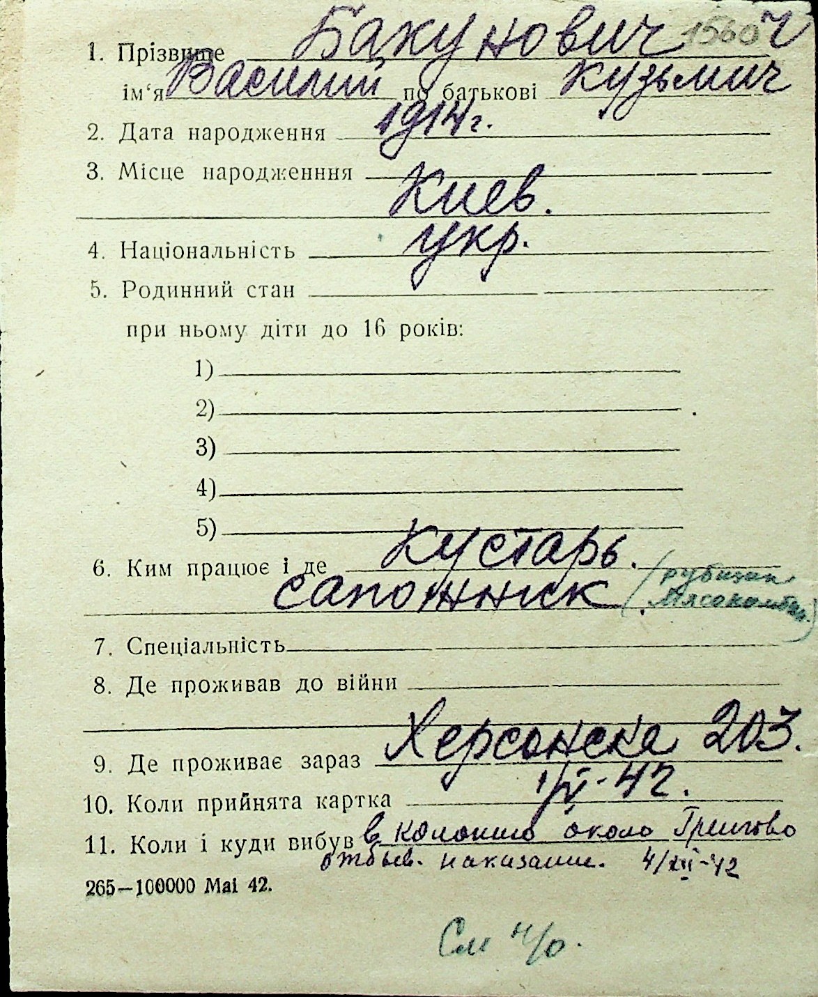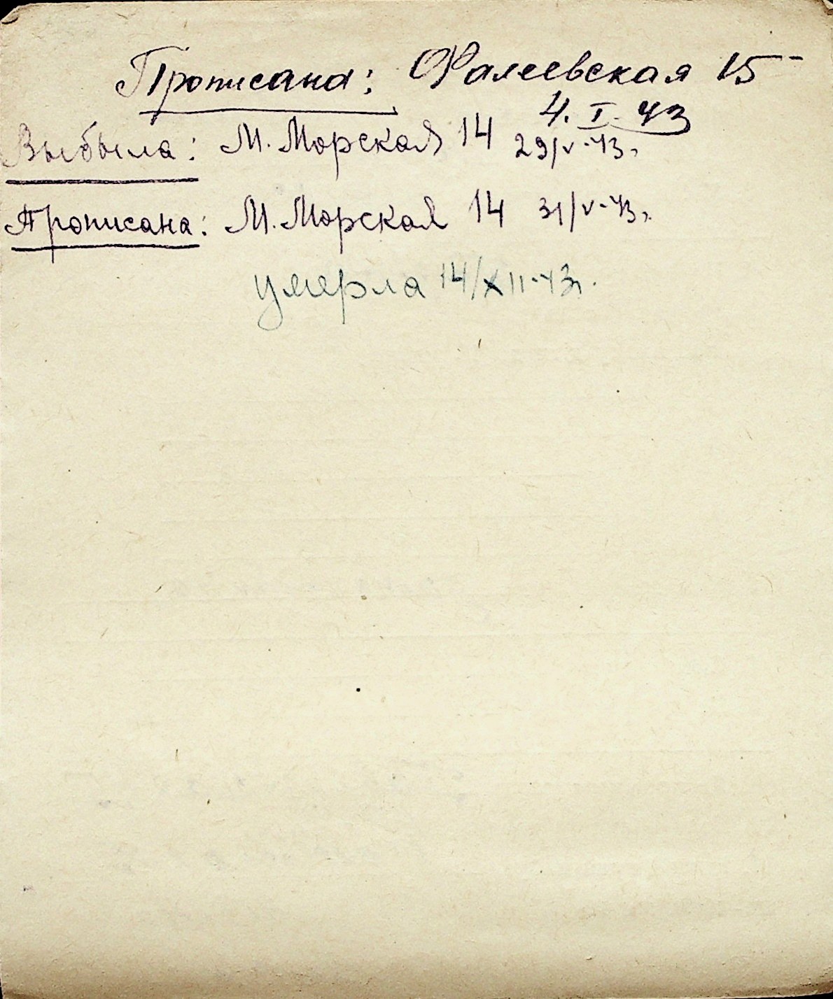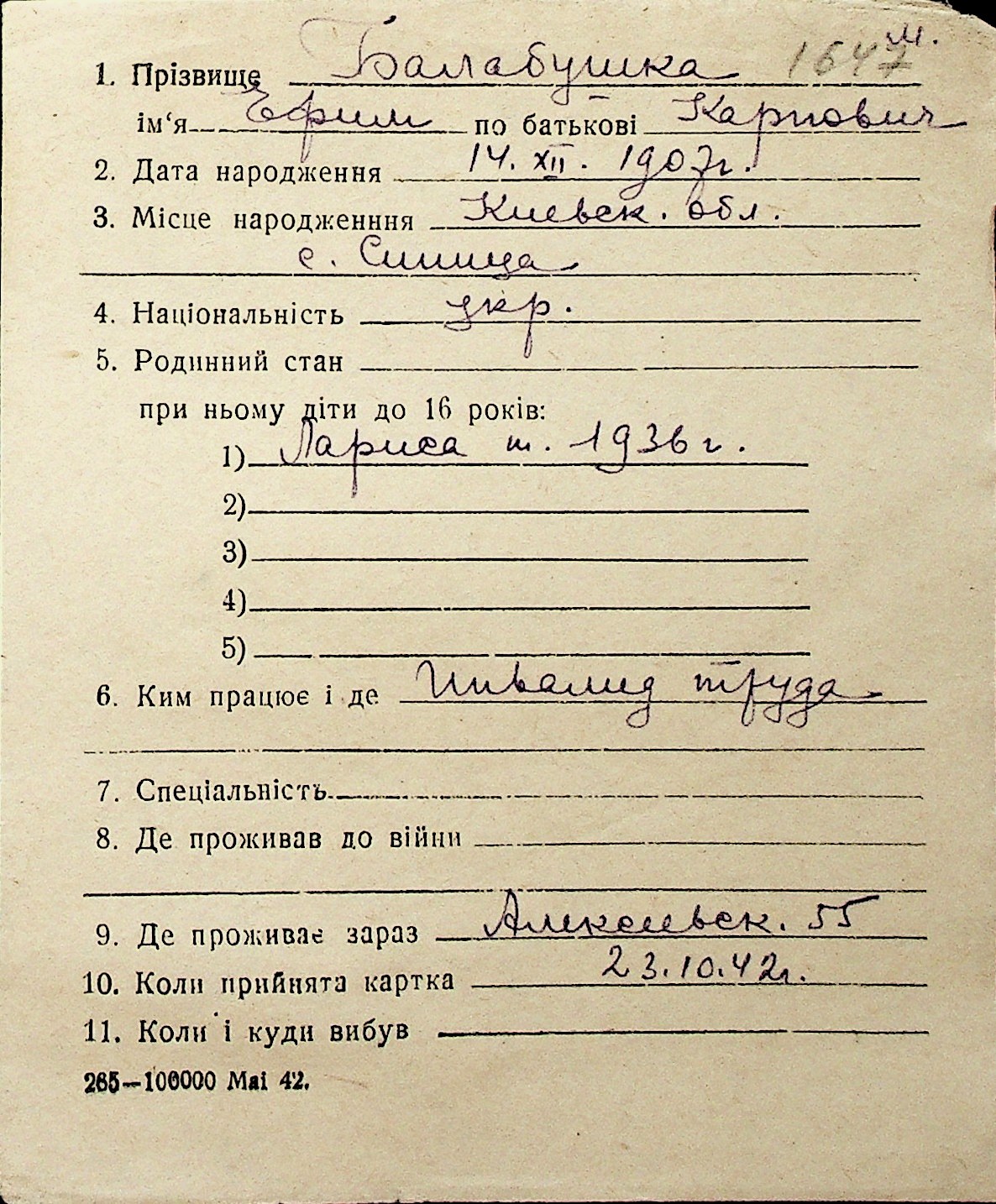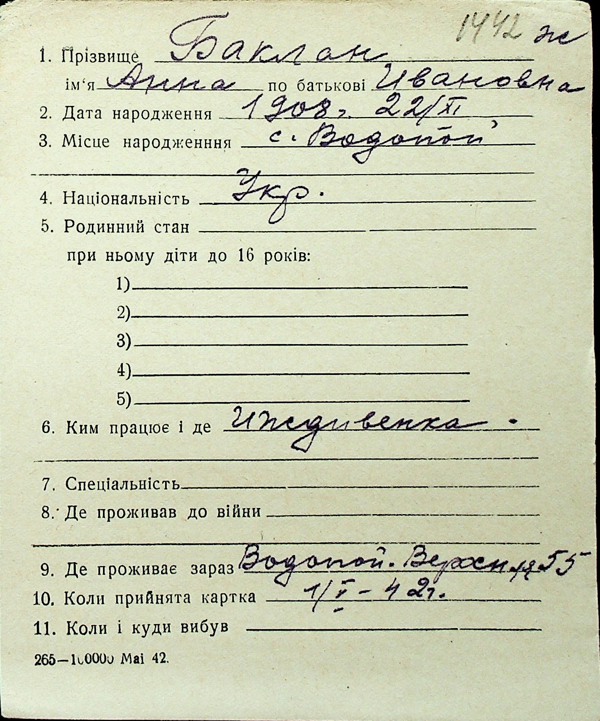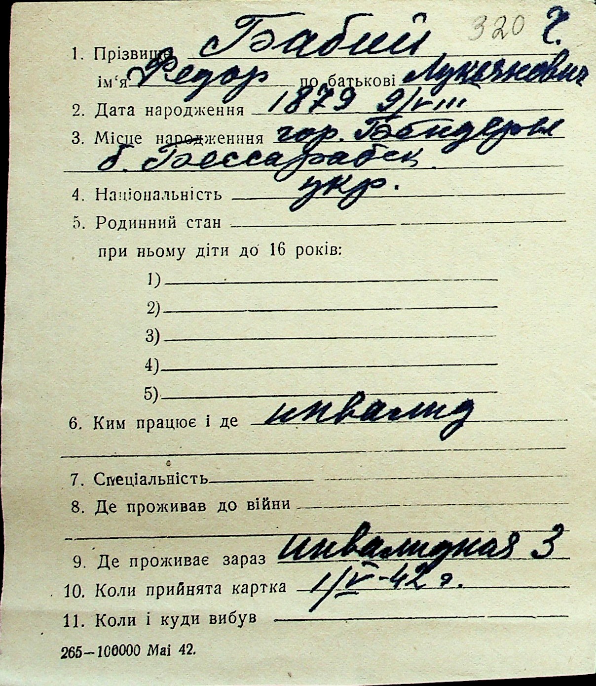 ◦ ◦ Перелік карток на осіб, які мешкали у м. Миколаїв у період окупації 1941–1944 років
