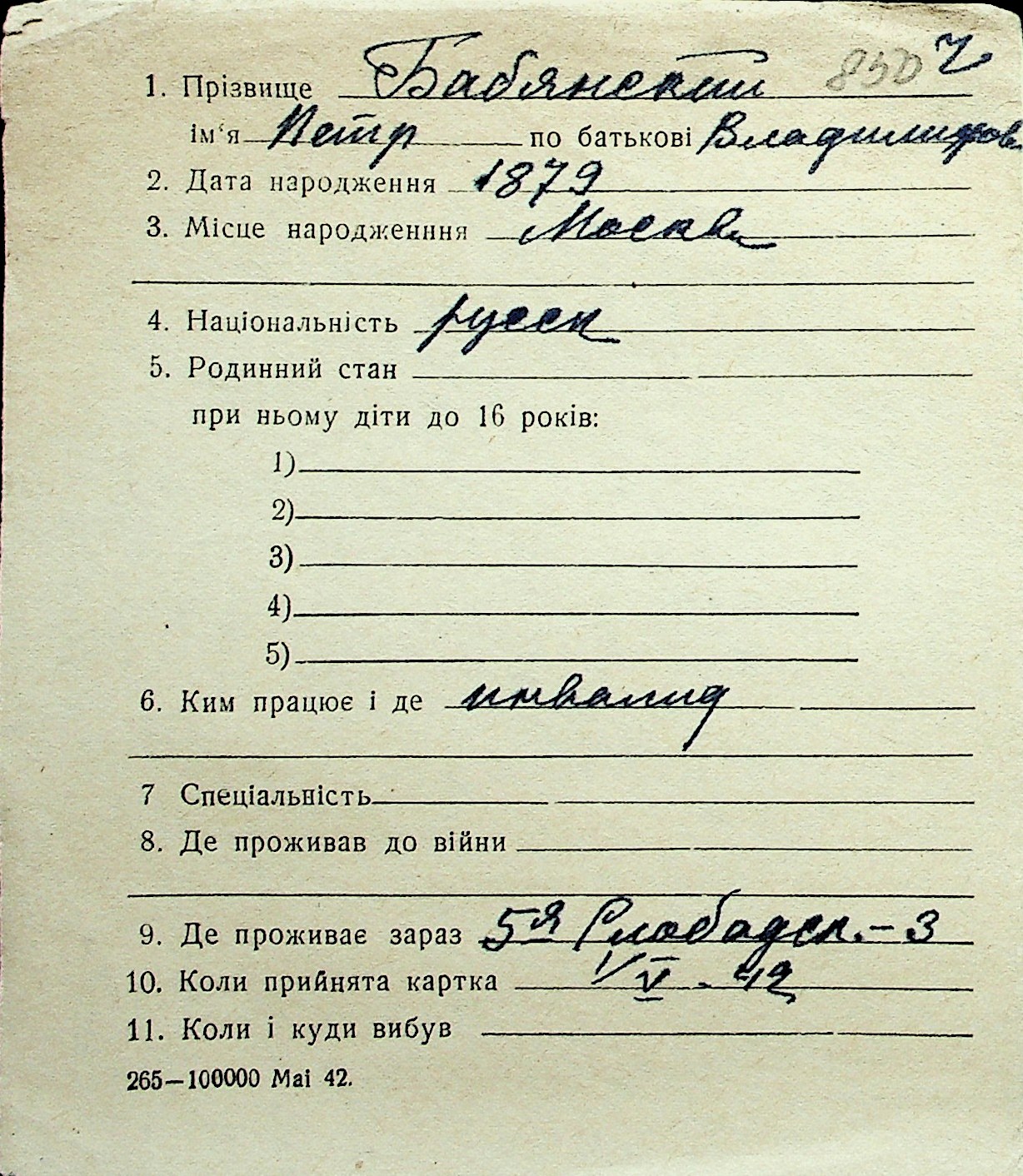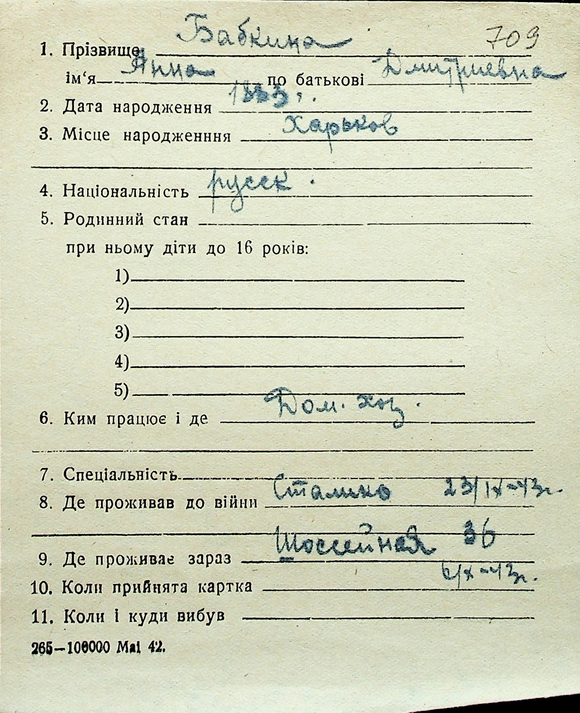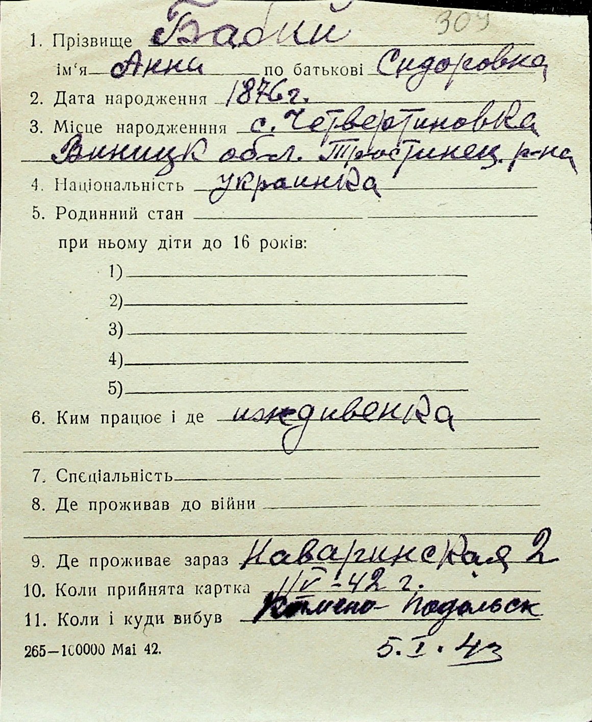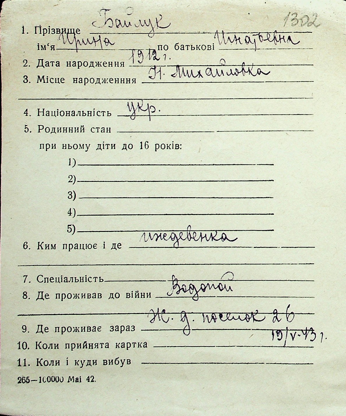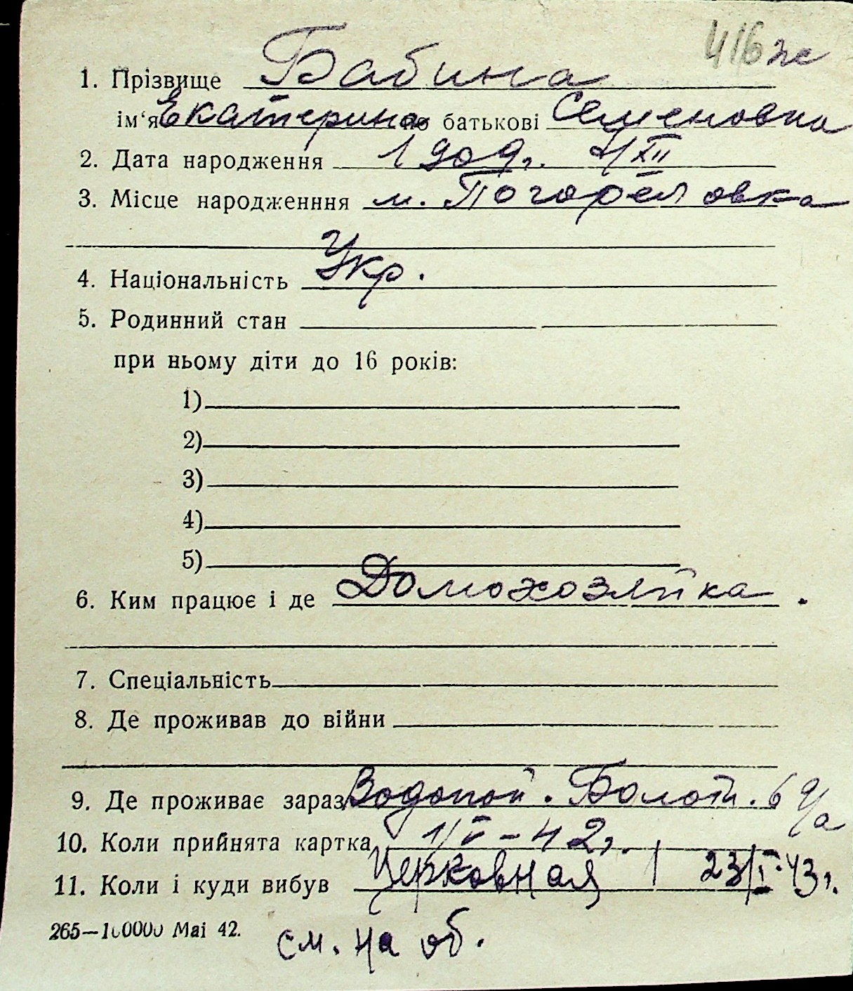 ◦ ◦ Перелік карток на осіб, які мешкали у м. Миколаїв у період окупації 1941–1944 років