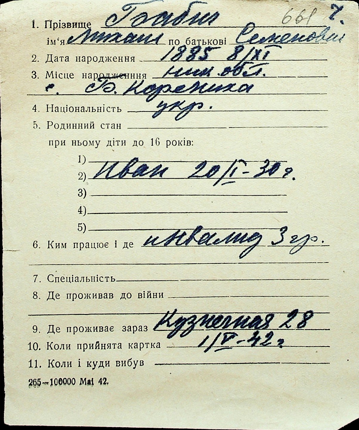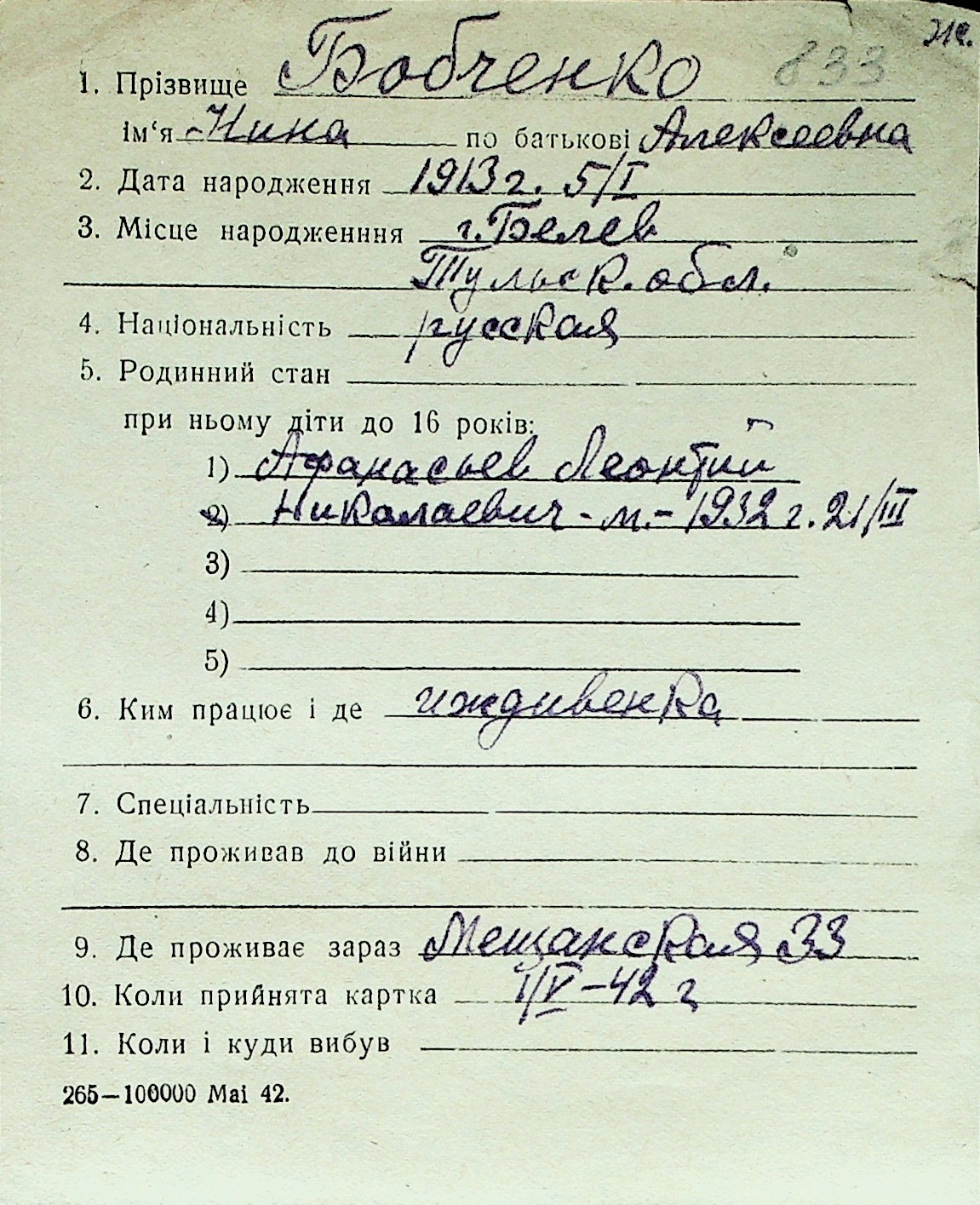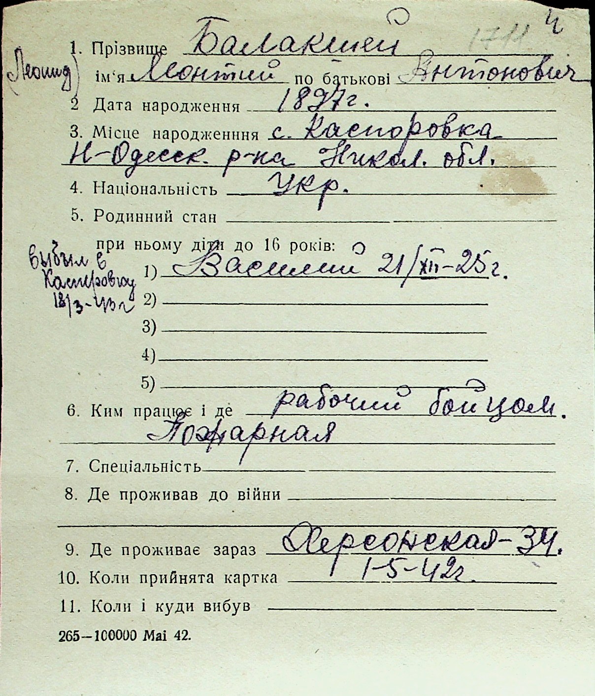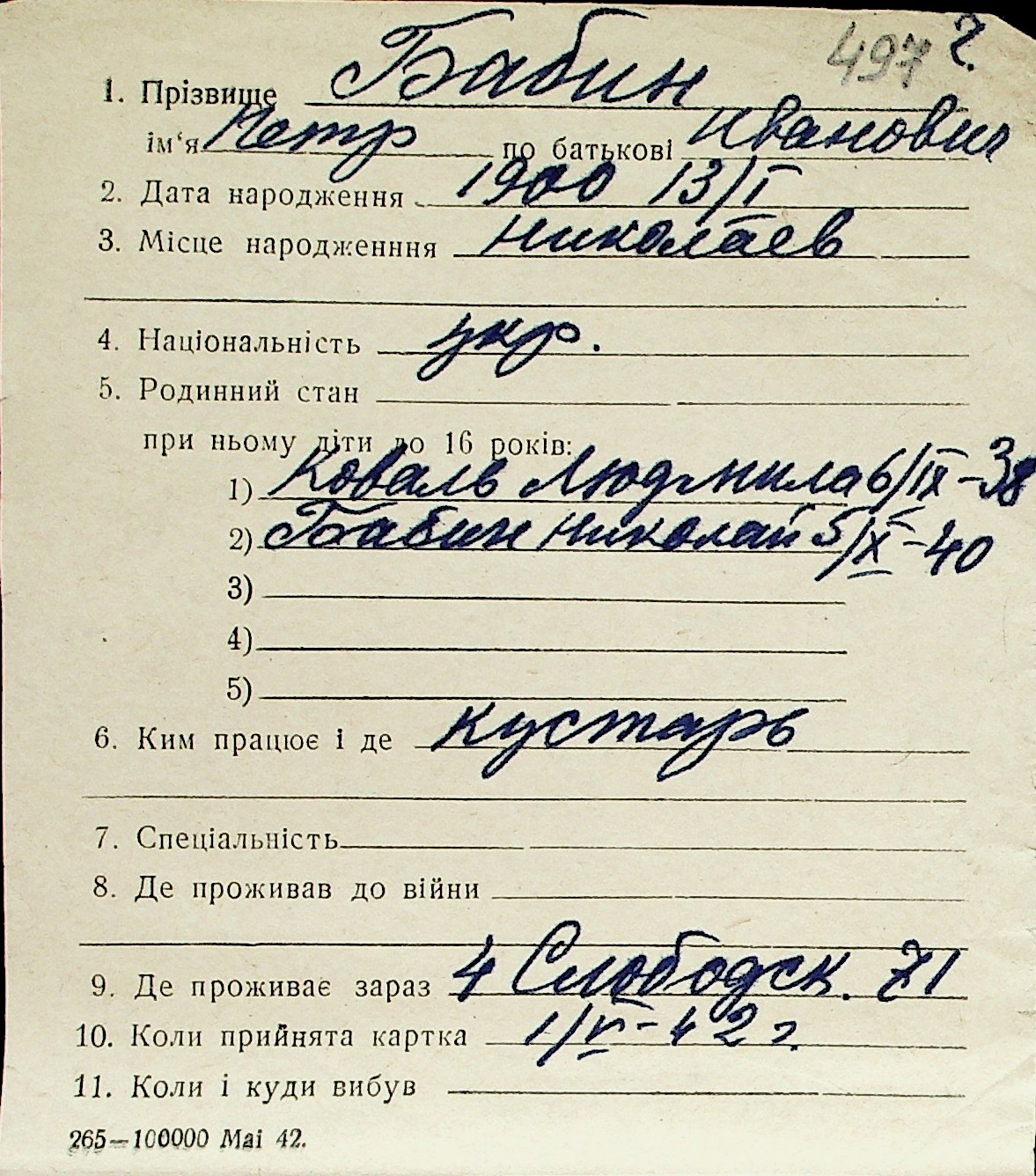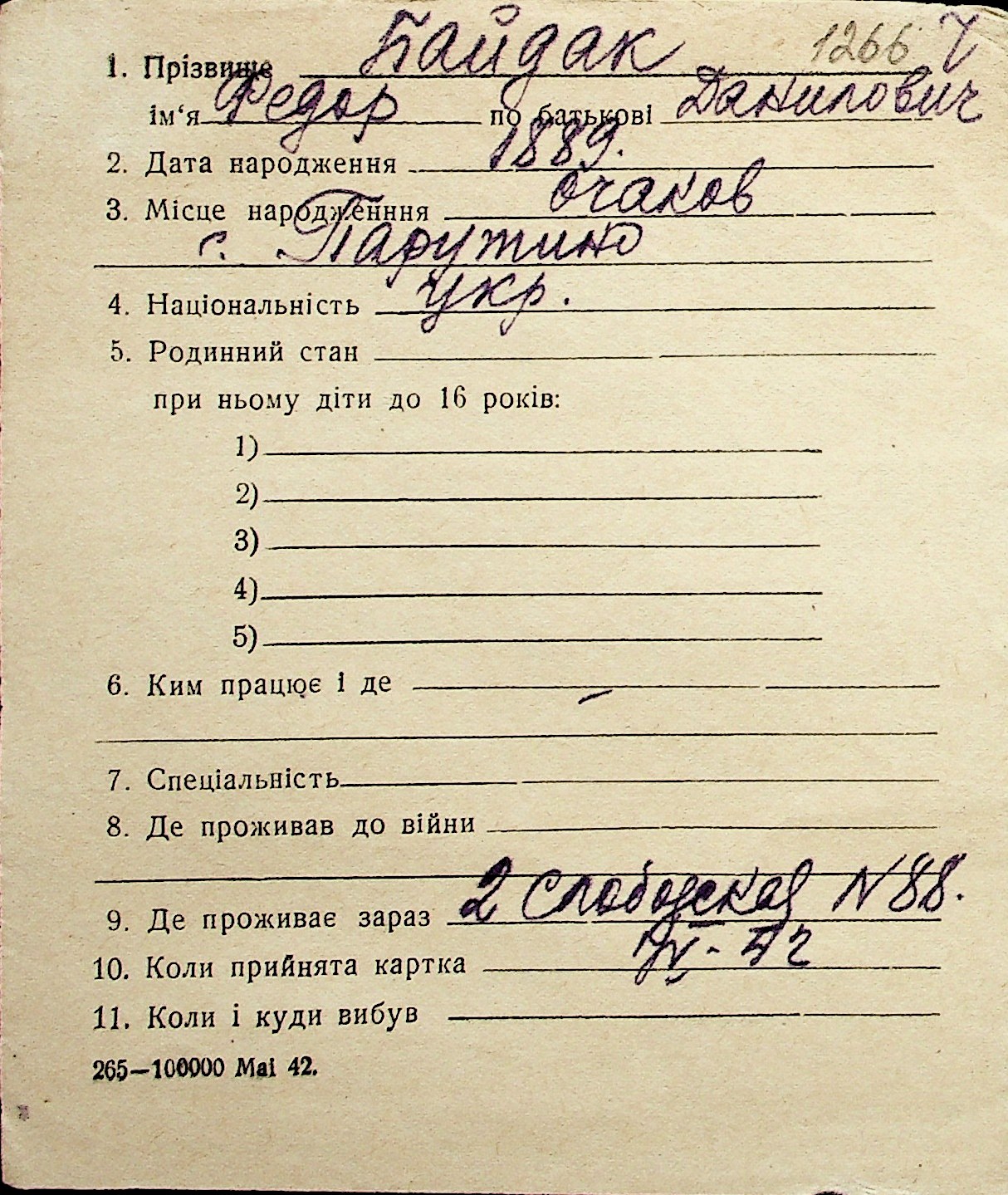 ◦ ◦ Перелік карток на осіб, які мешкали у м. Миколаїв у період окупації 1941–1944 років