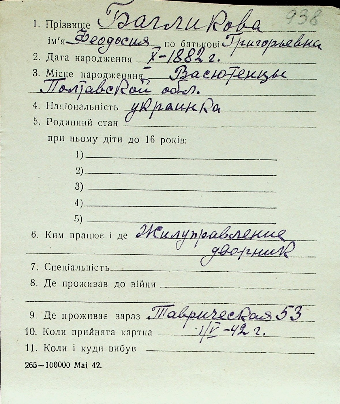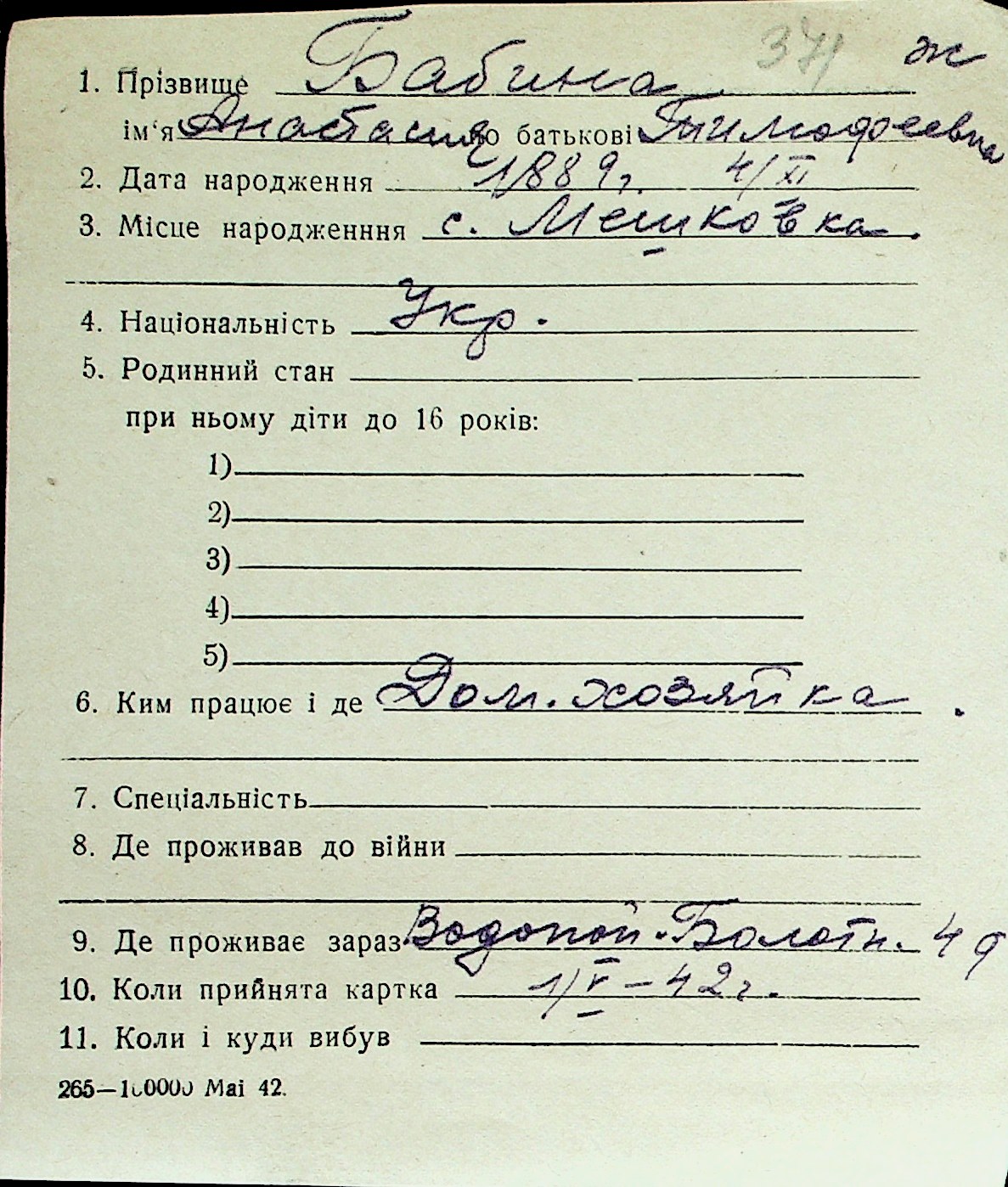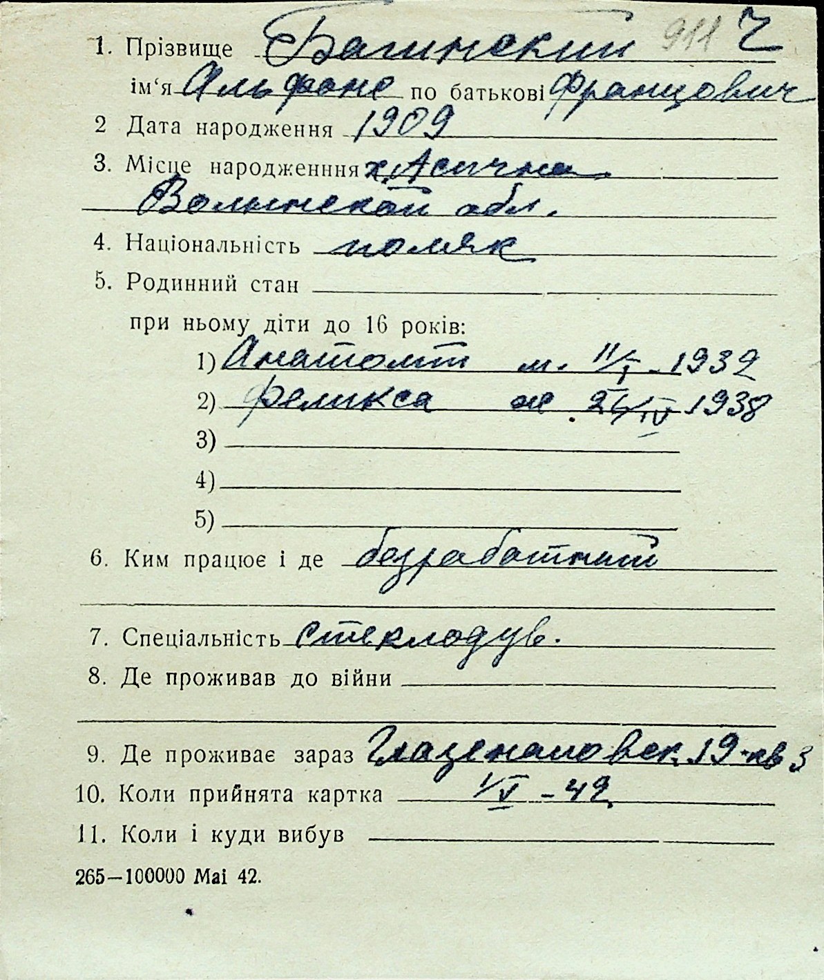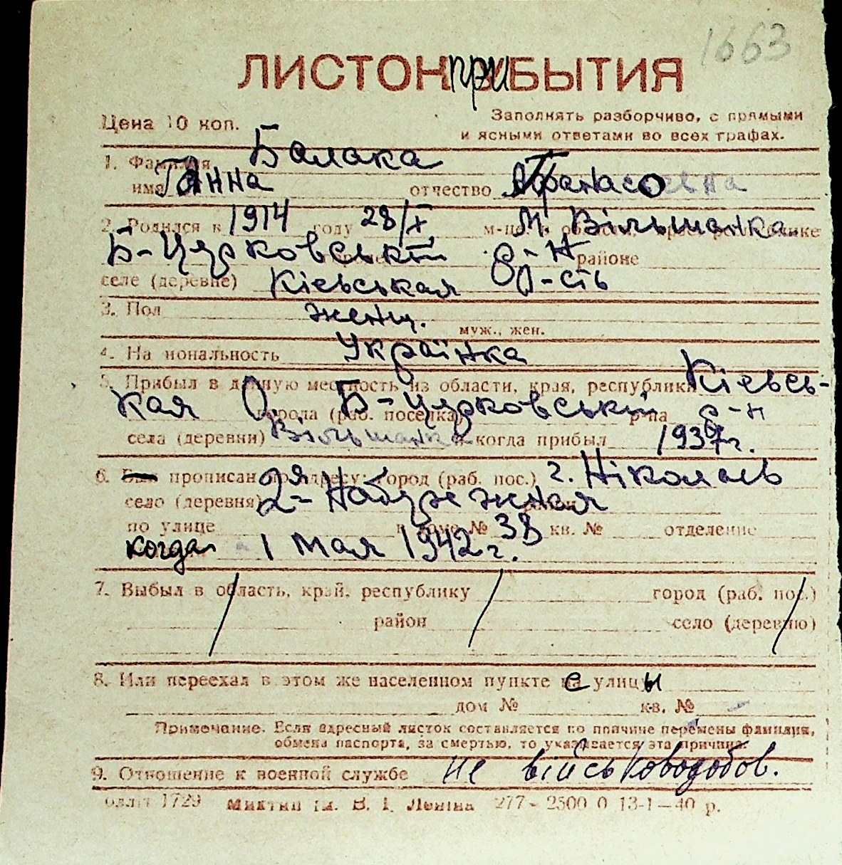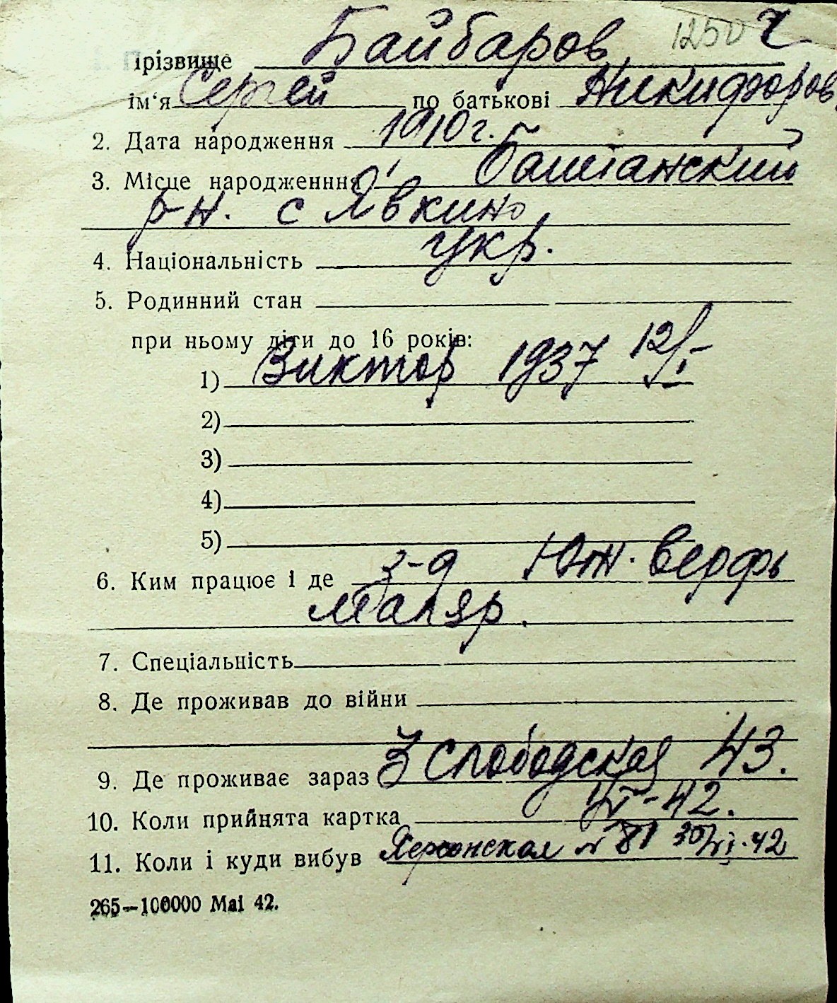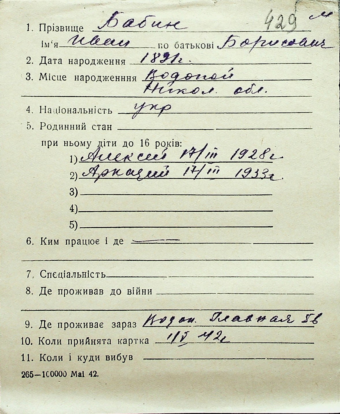 ◦ ◦ Перелік карток на осіб, які мешкали у м. Миколаїв у період окупації 1941–1944 років