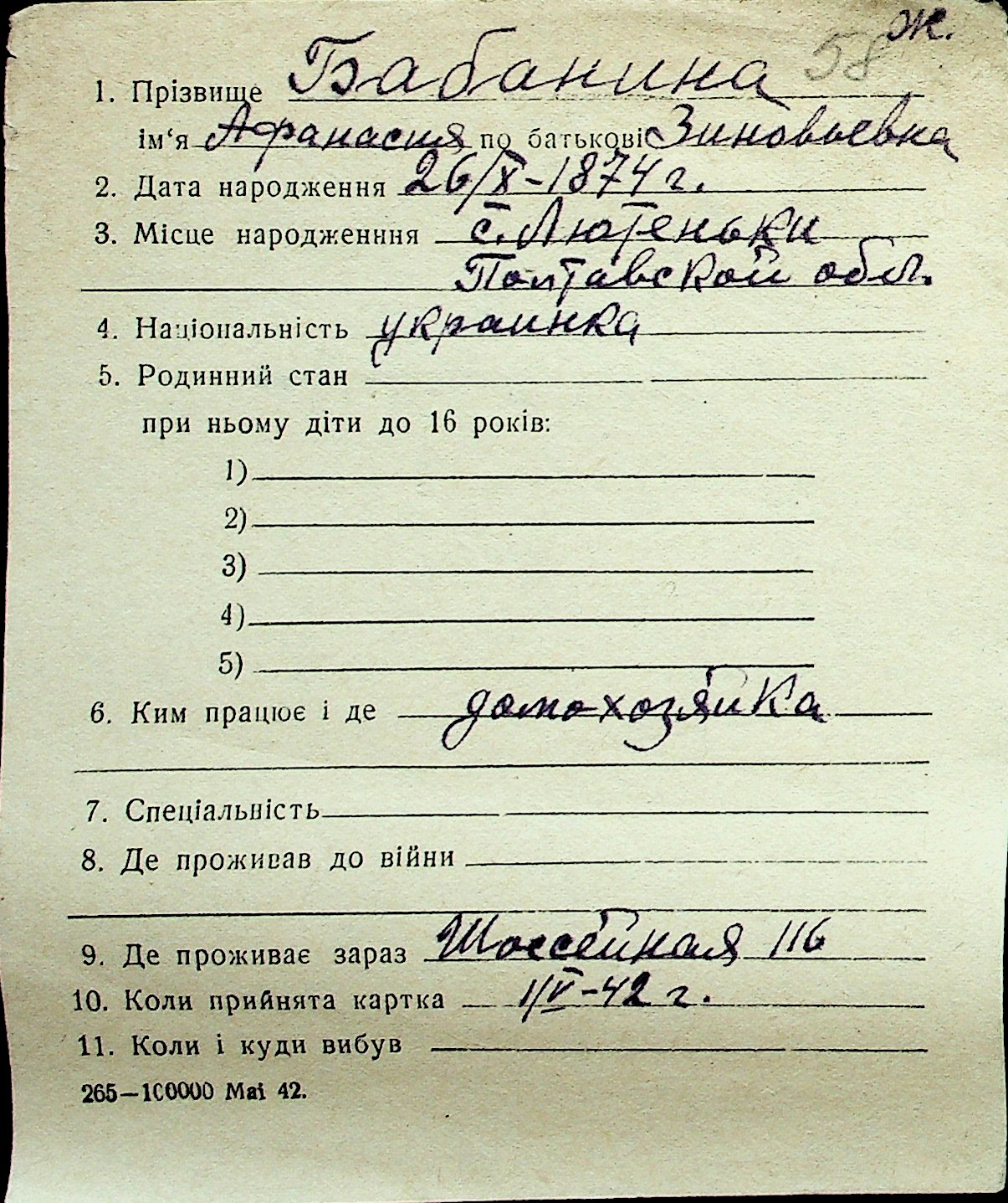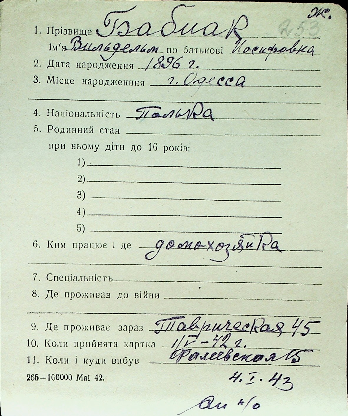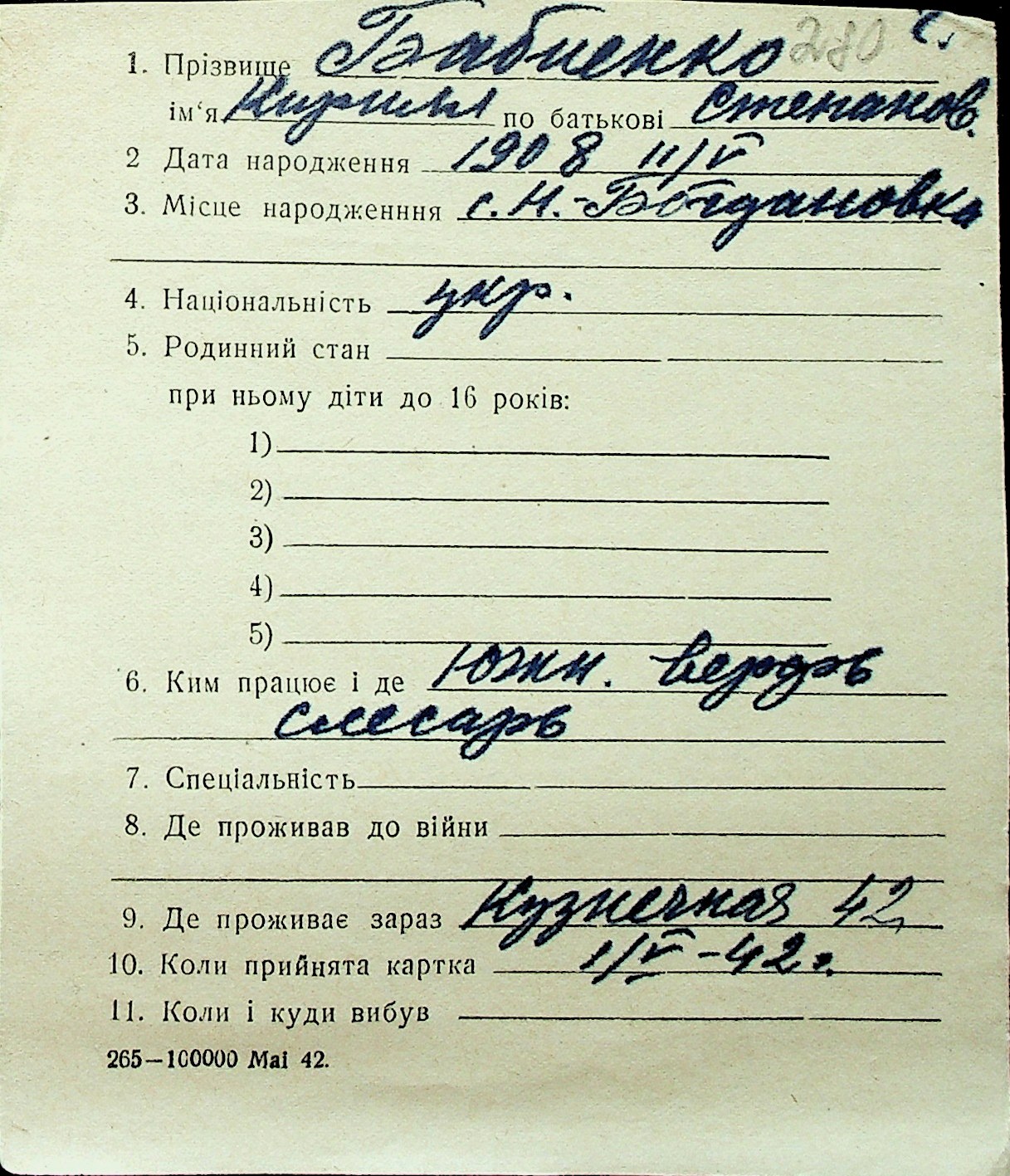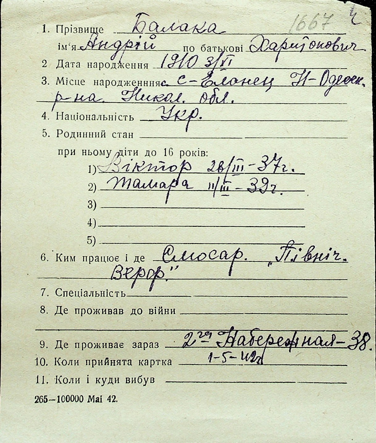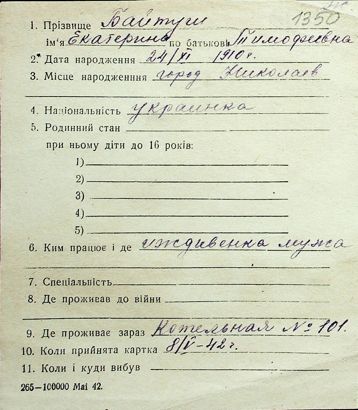 ◦ ◦ Перелік карток на осіб, які мешкали у м. Миколаїв у період окупації 1941–1944 років