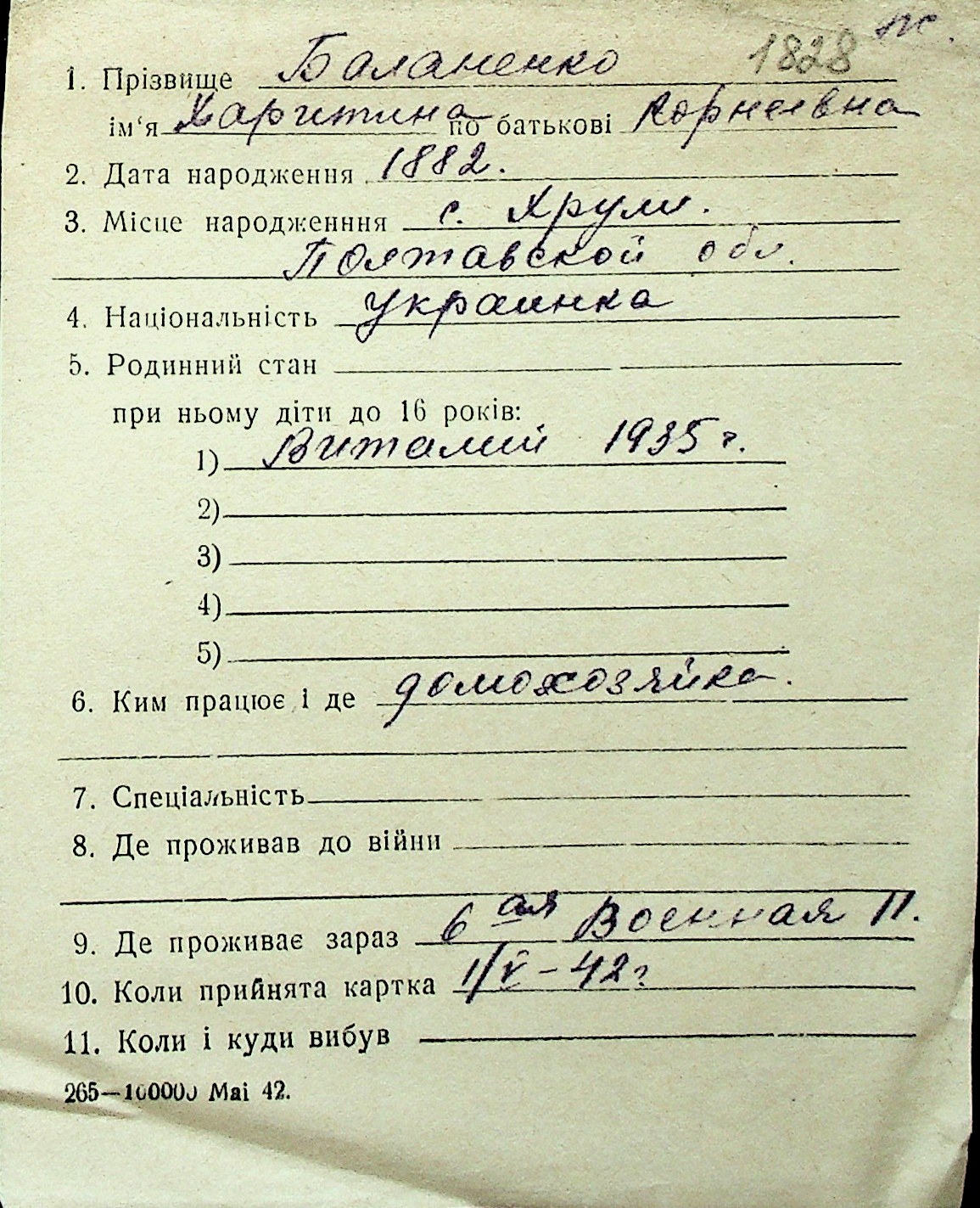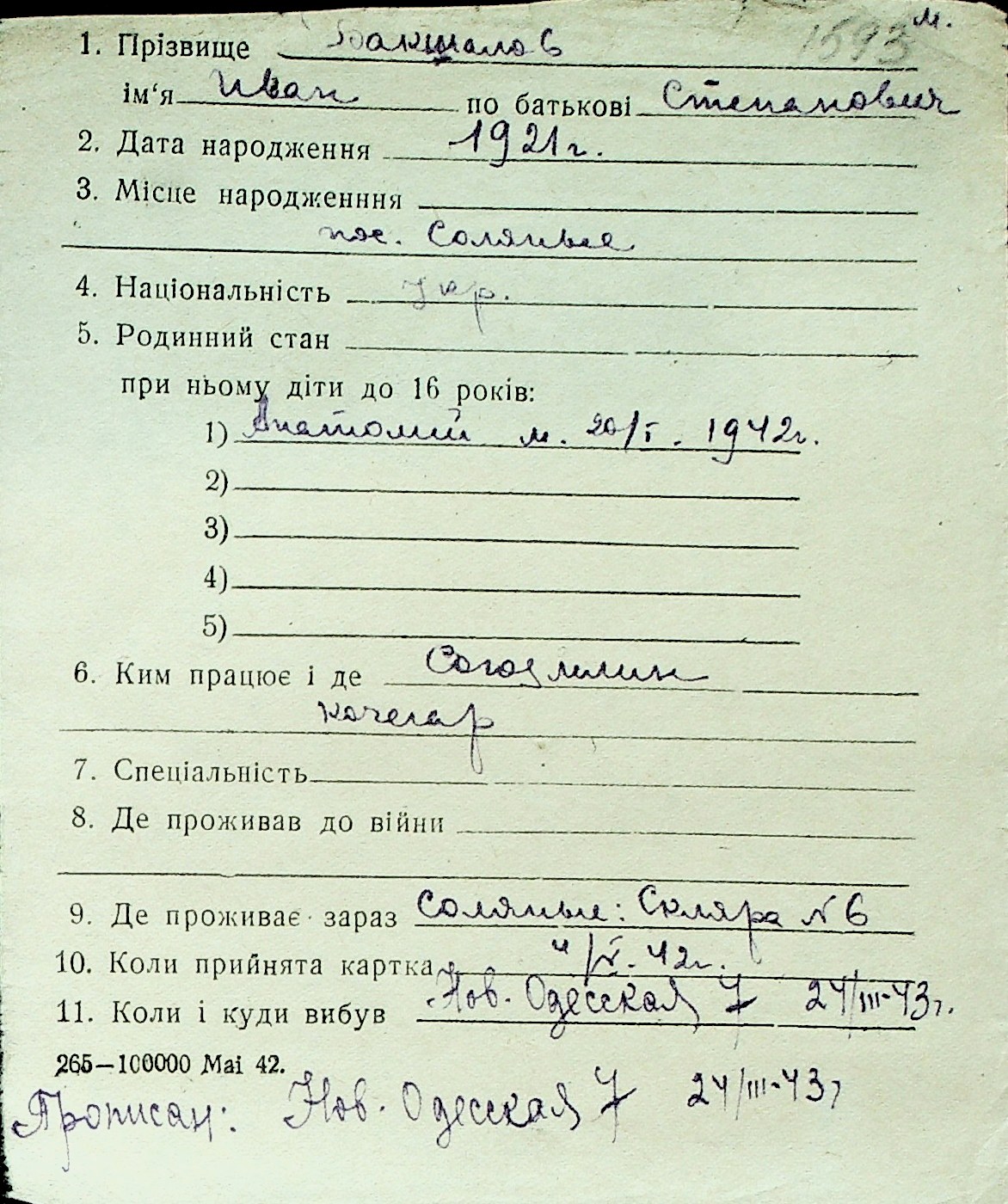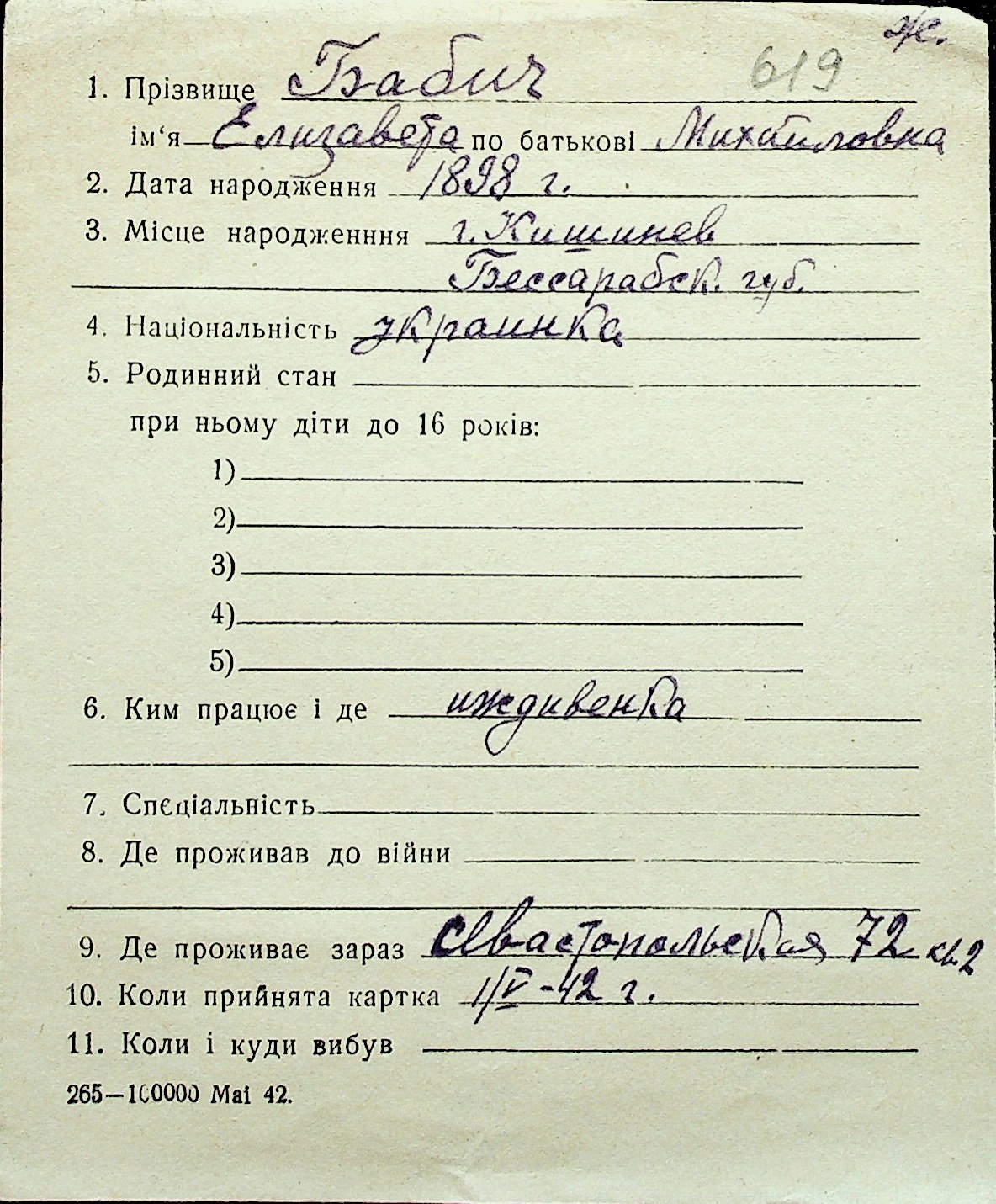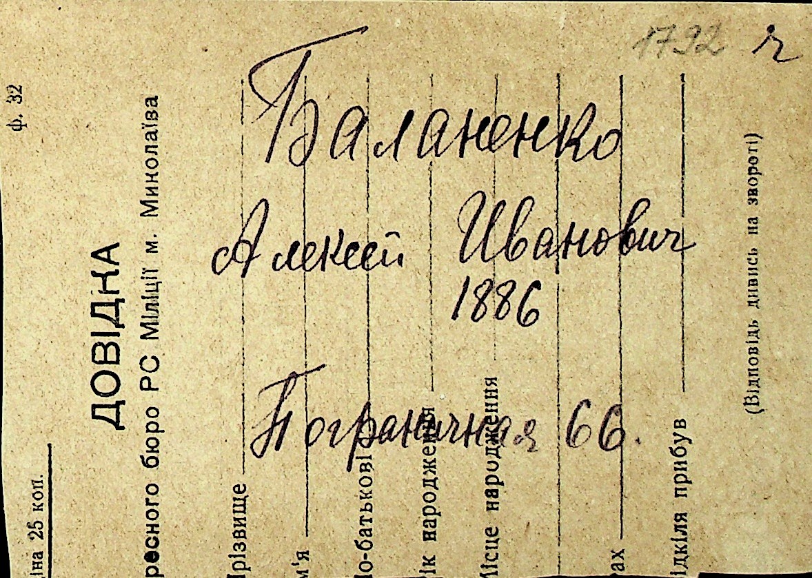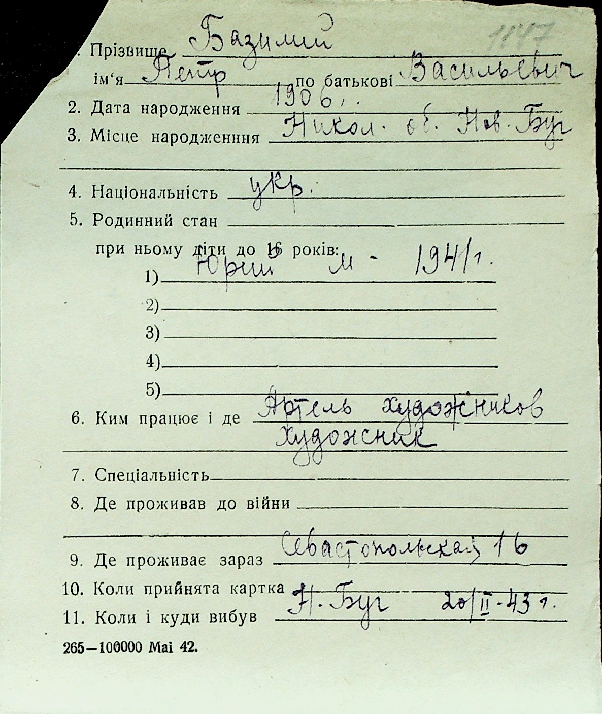 ◦ ◦ Перелік карток на осіб, які мешкали у м. Миколаїв у період окупації 1941–1944 років