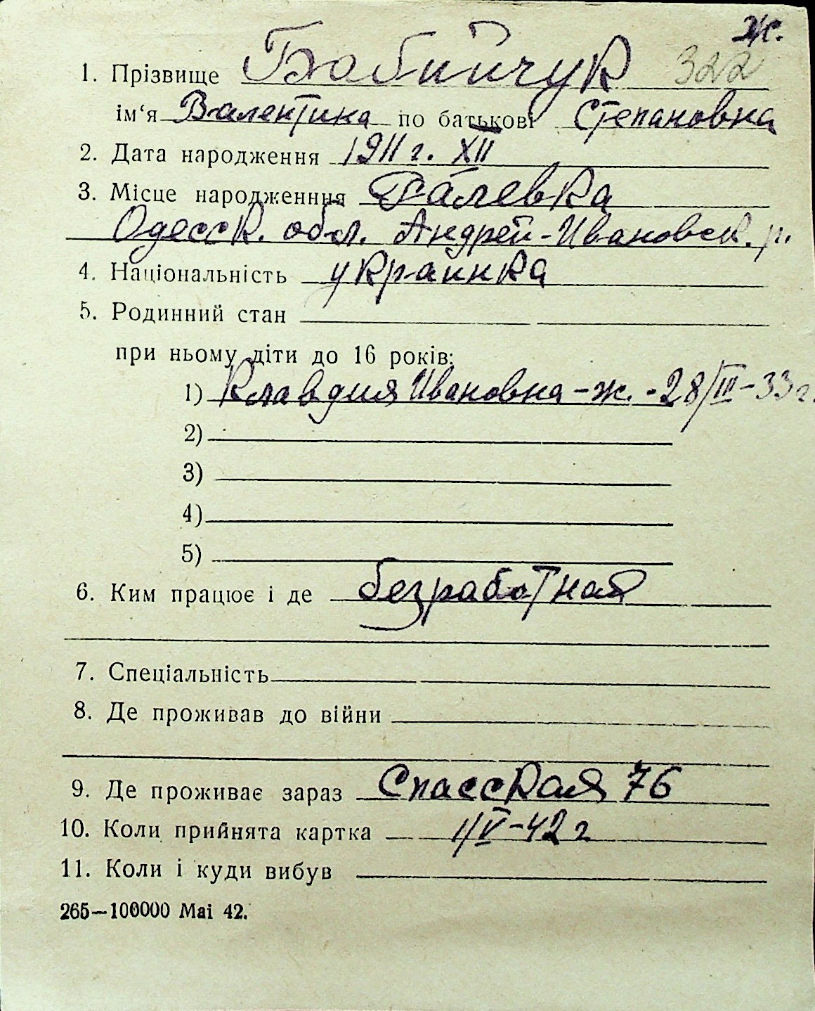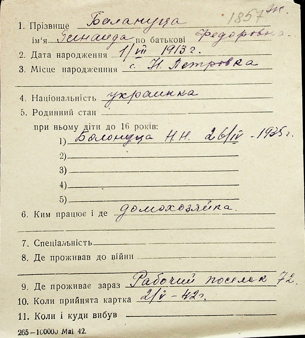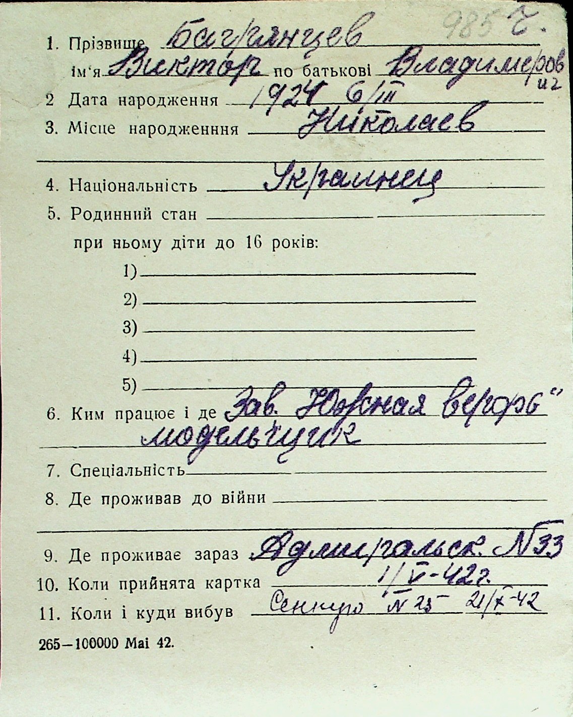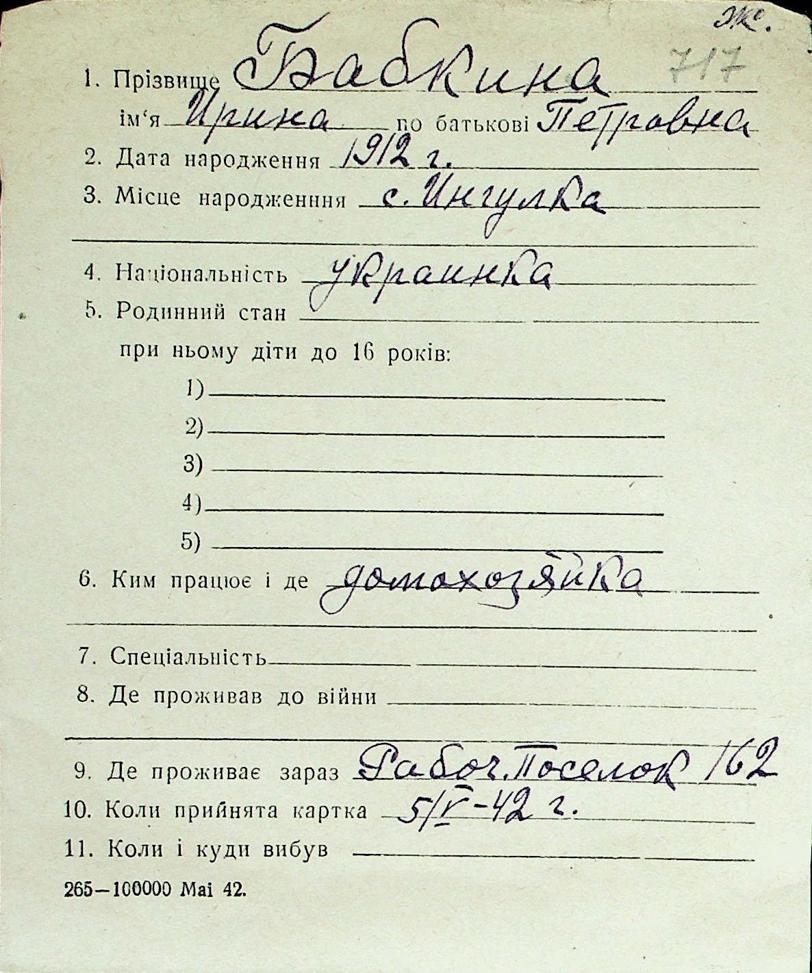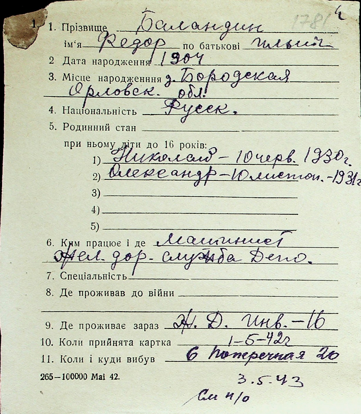 ◦ ◦ Перелік карток на осіб, які мешкали у м. Миколаїв у період окупації 1941–1944 років