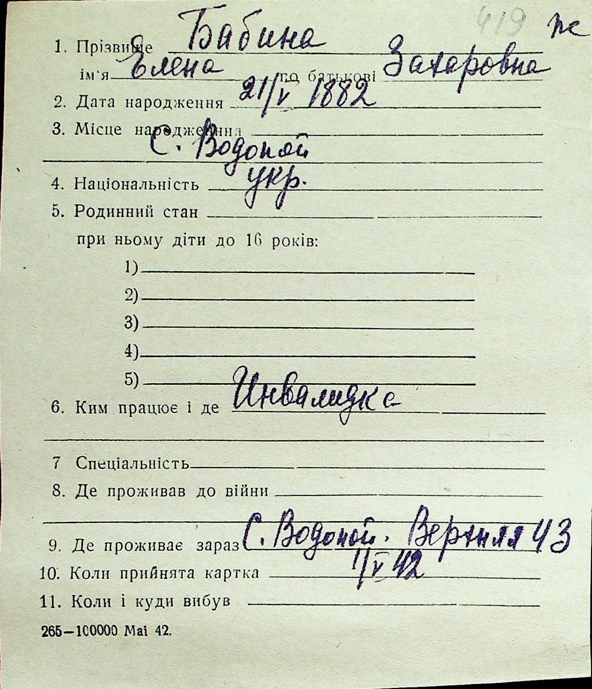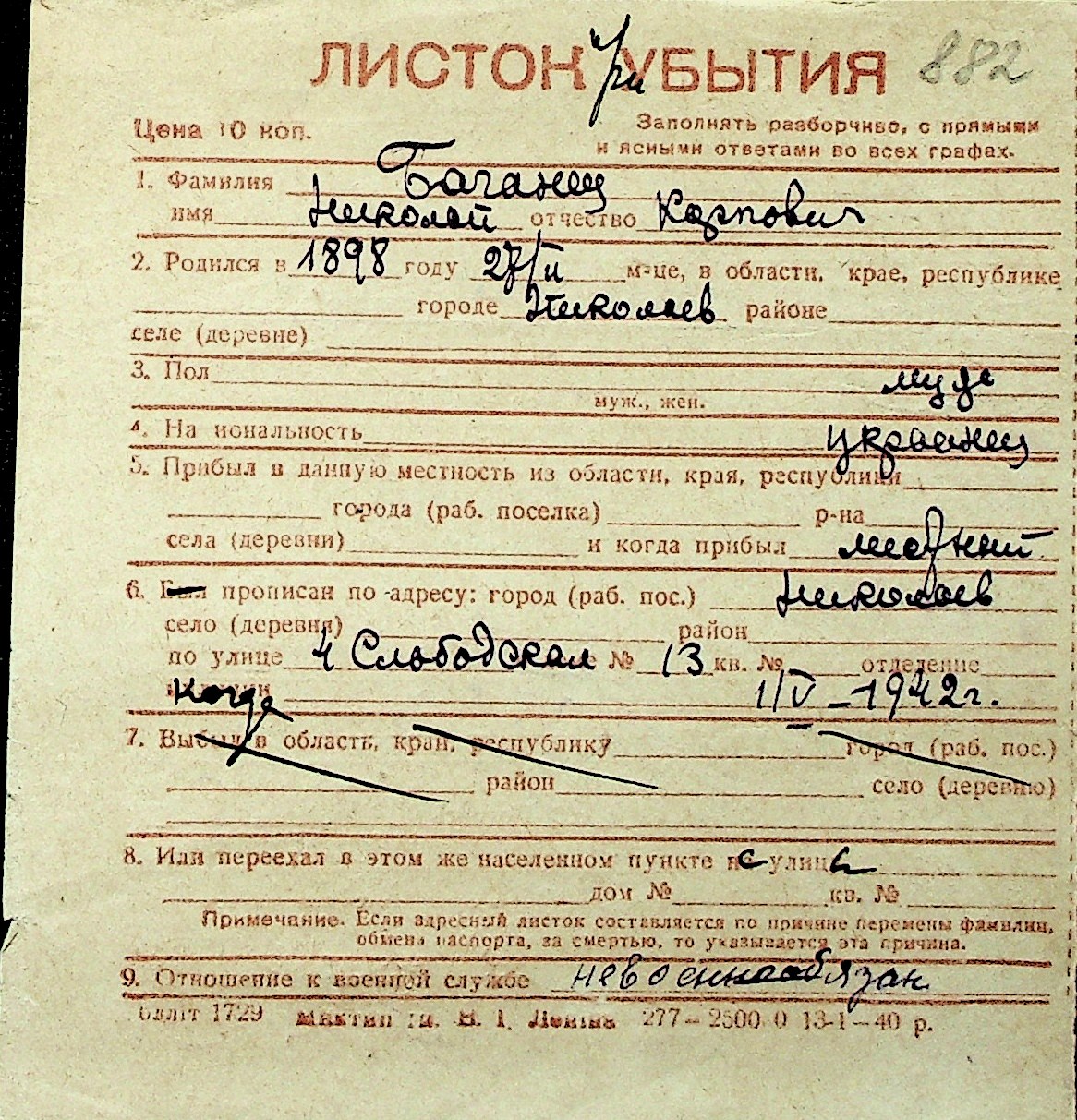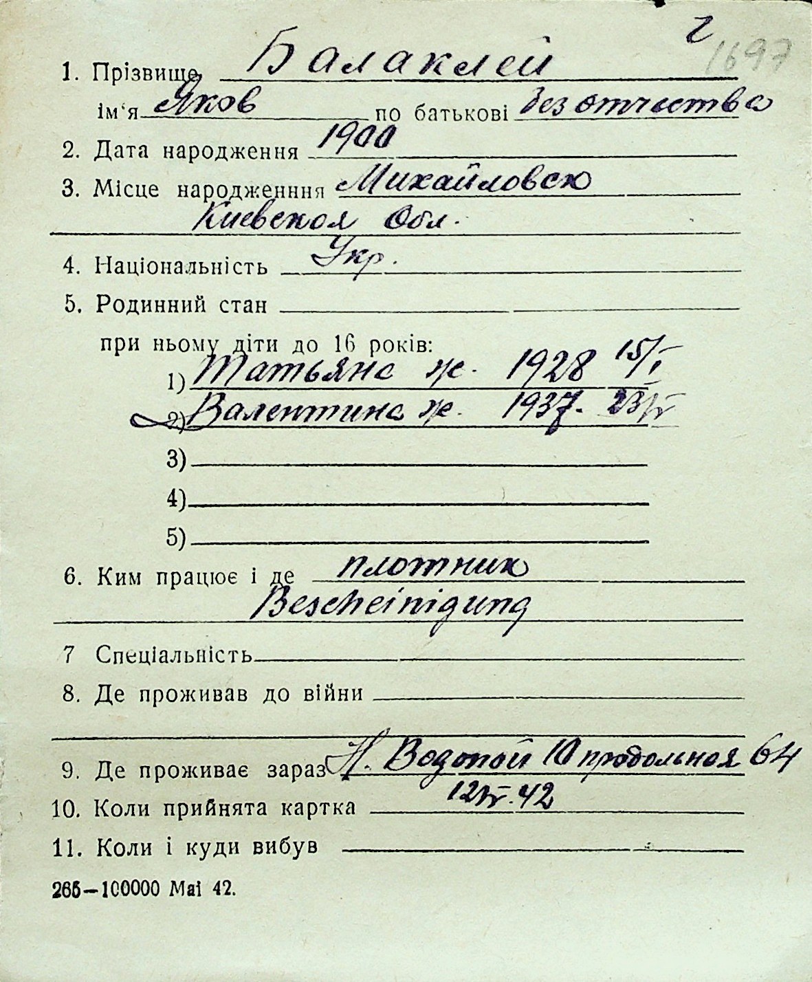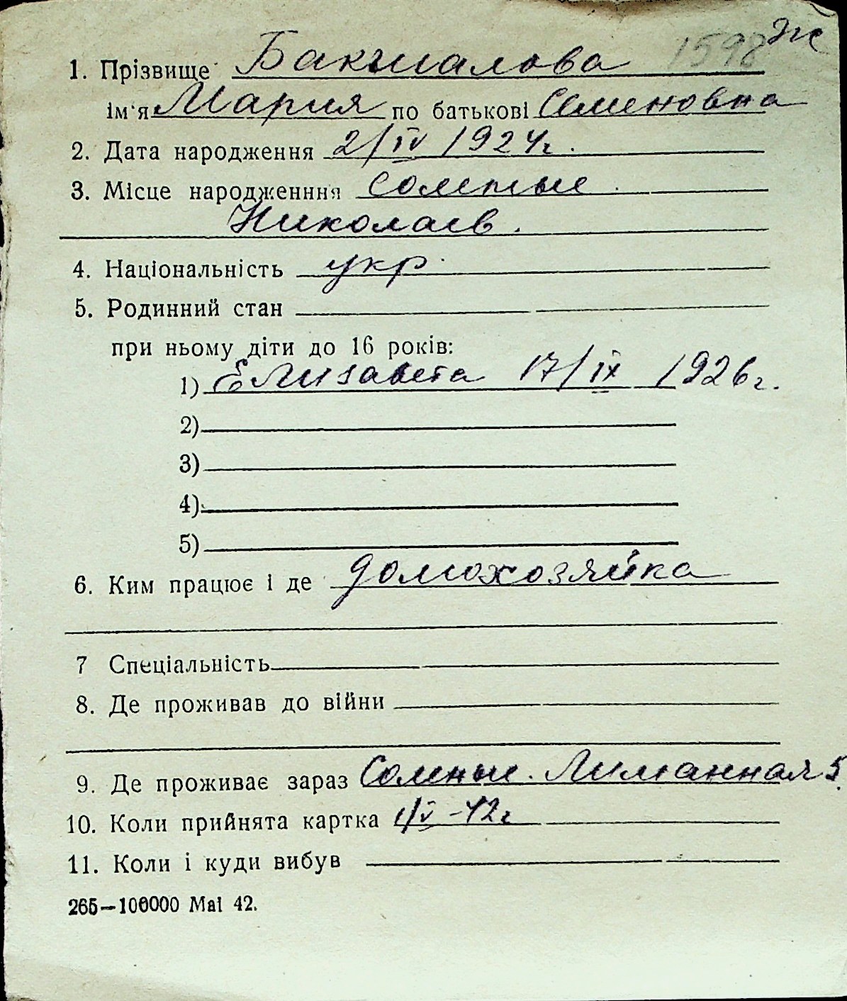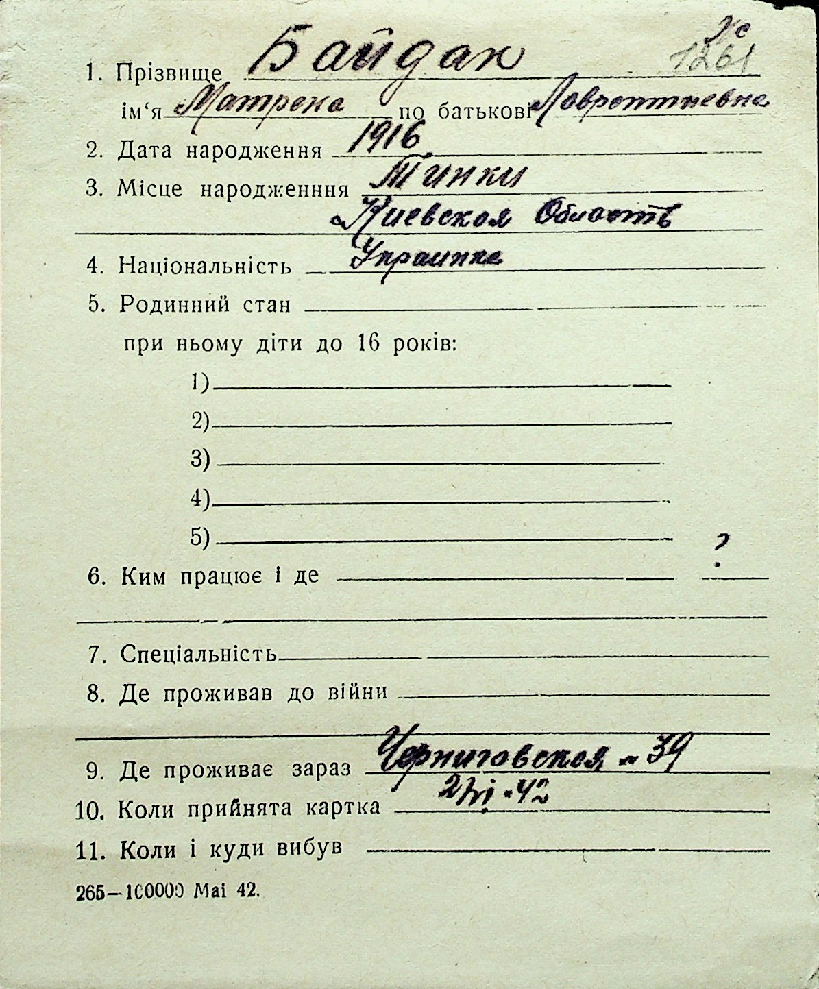 ◦ ◦ Перелік карток на осіб, які мешкали у м. Миколаїв у період окупації 1941–1944 років