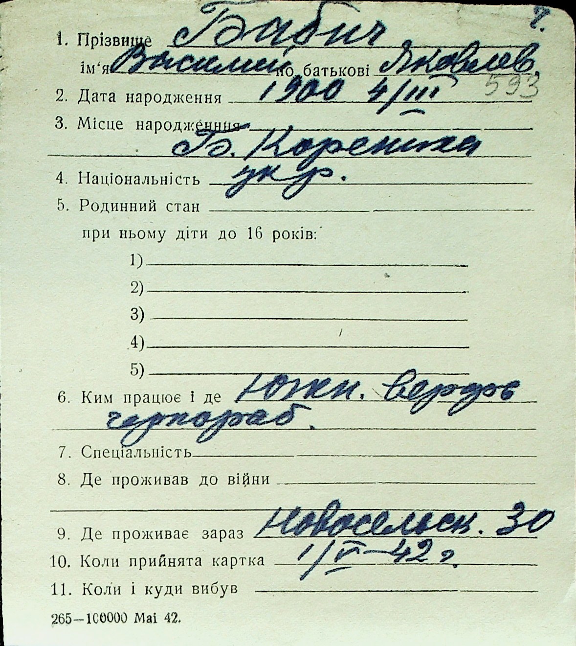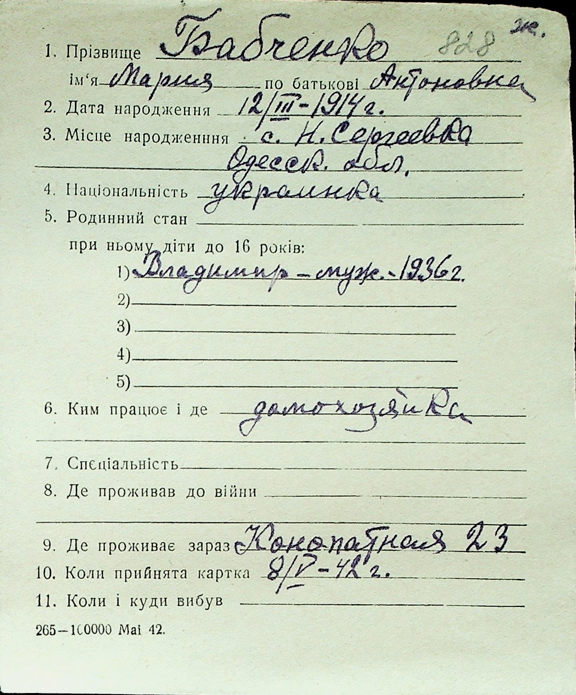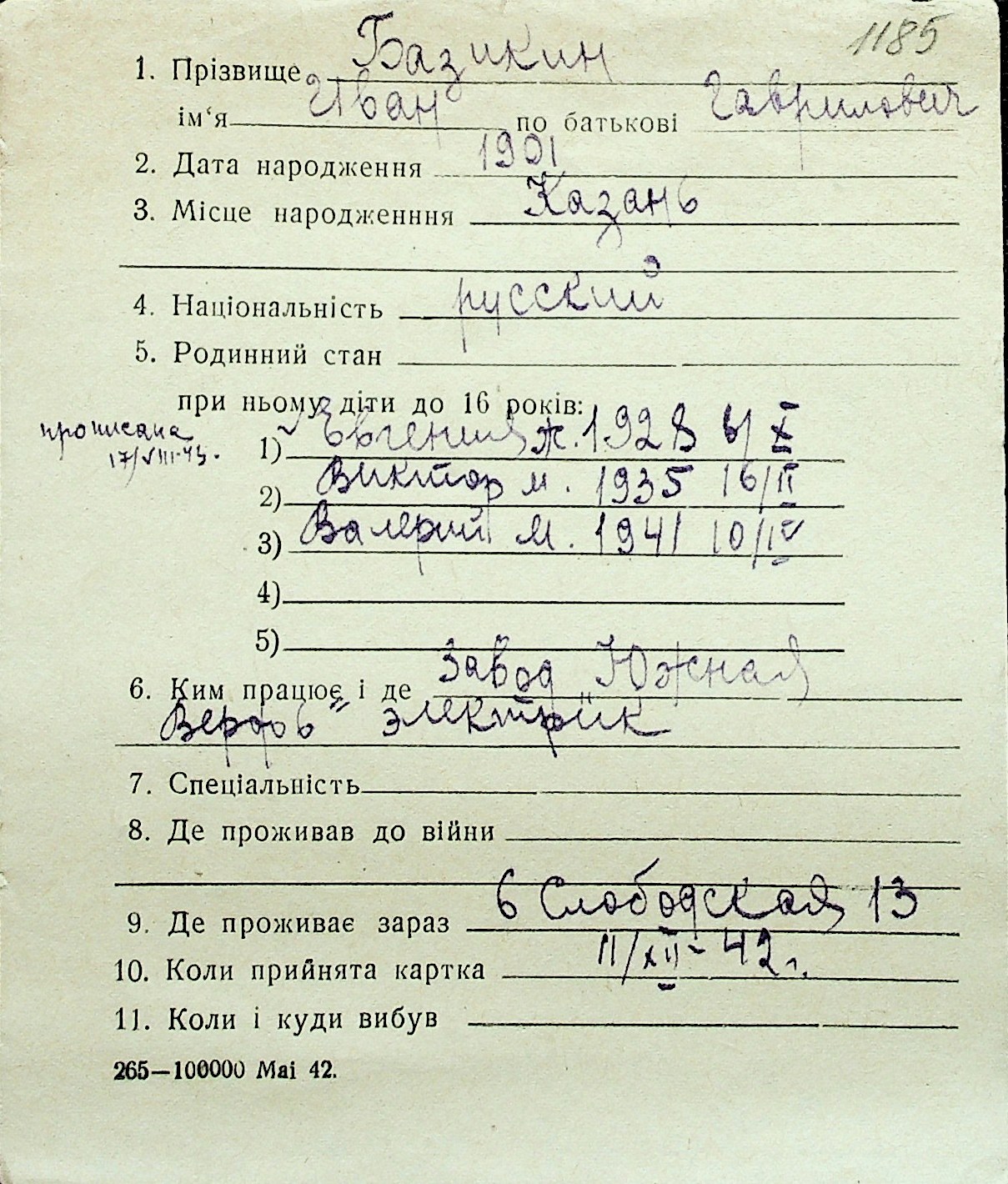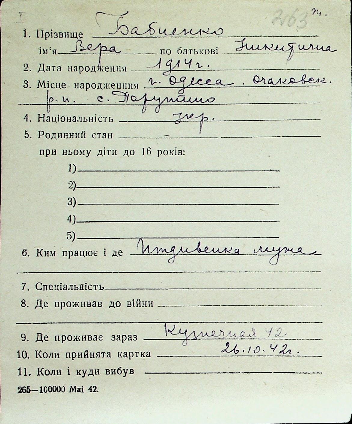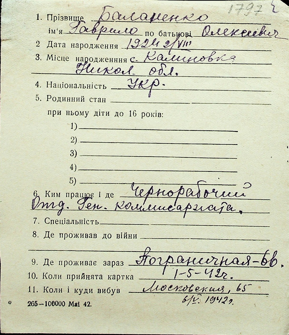 ◦ ◦ Перелік карток на осіб, які мешкали у м. Миколаїв у період окупації 1941–1944 років