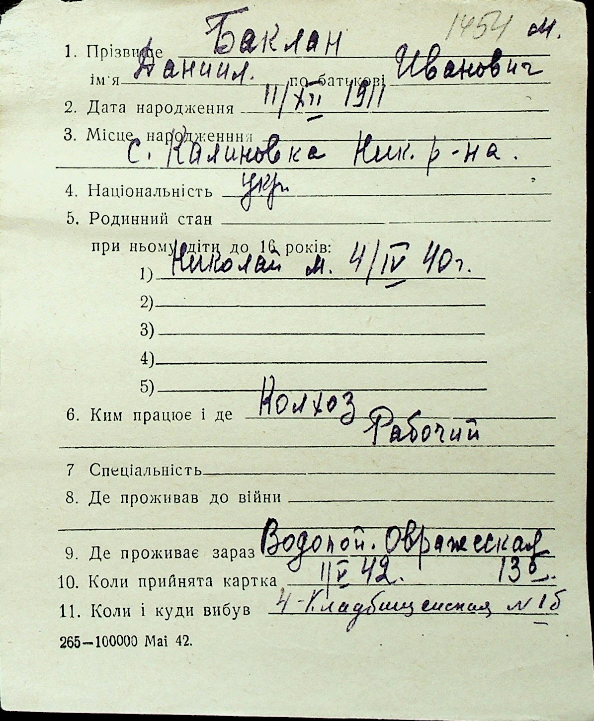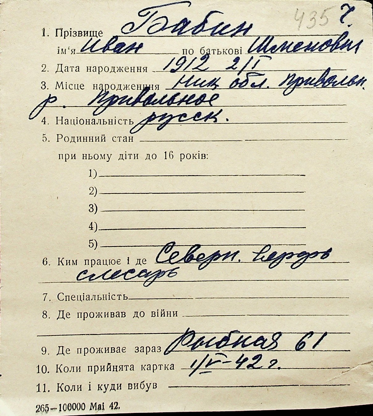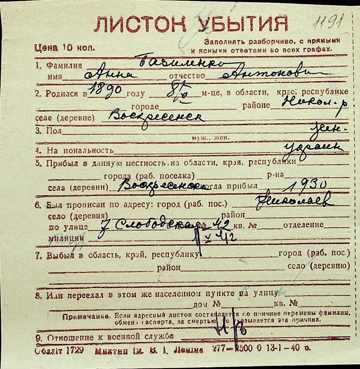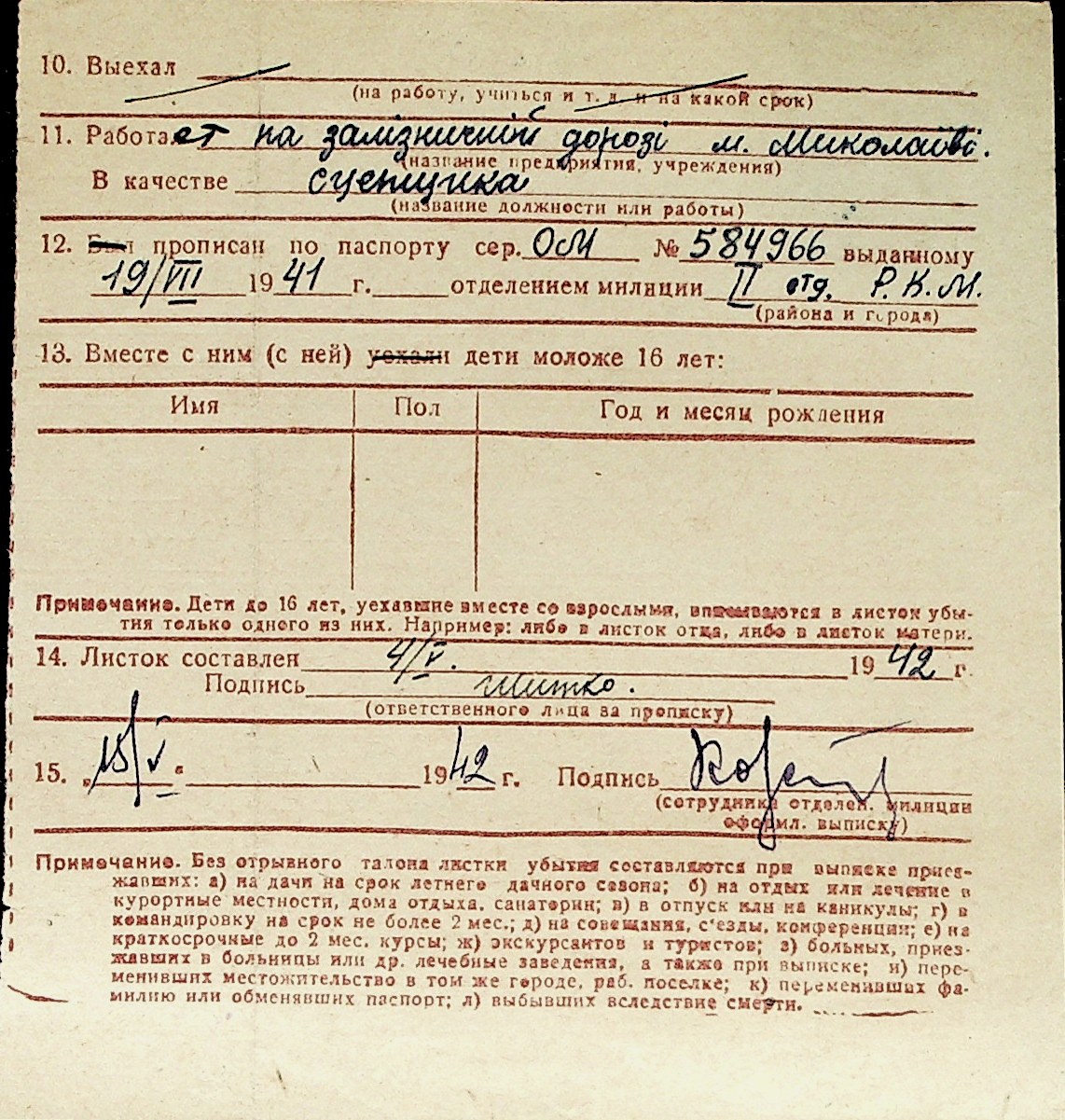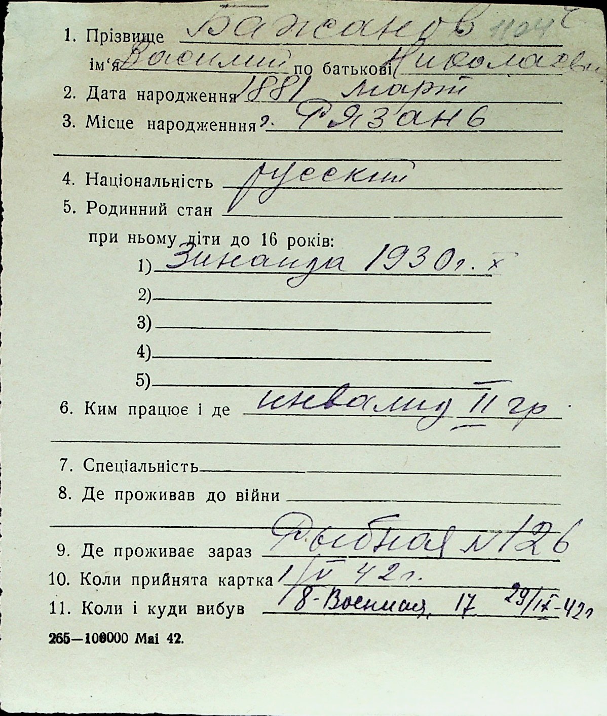 ◦ ◦ Перелік карток на осіб, які мешкали у м. Миколаїв у період окупації 1941–1944 років