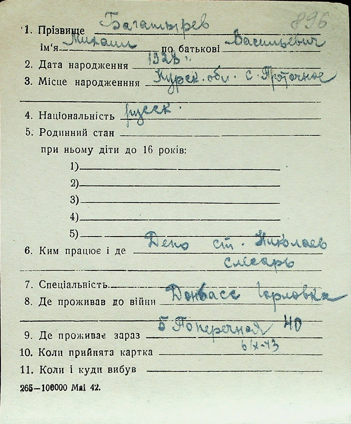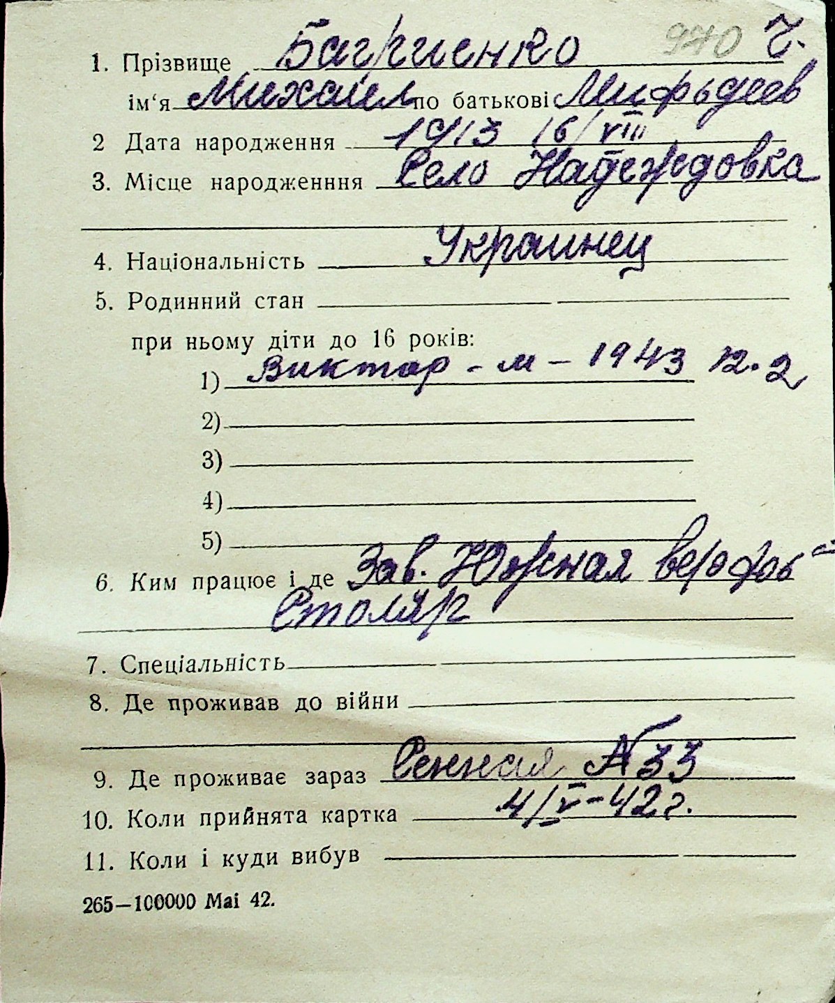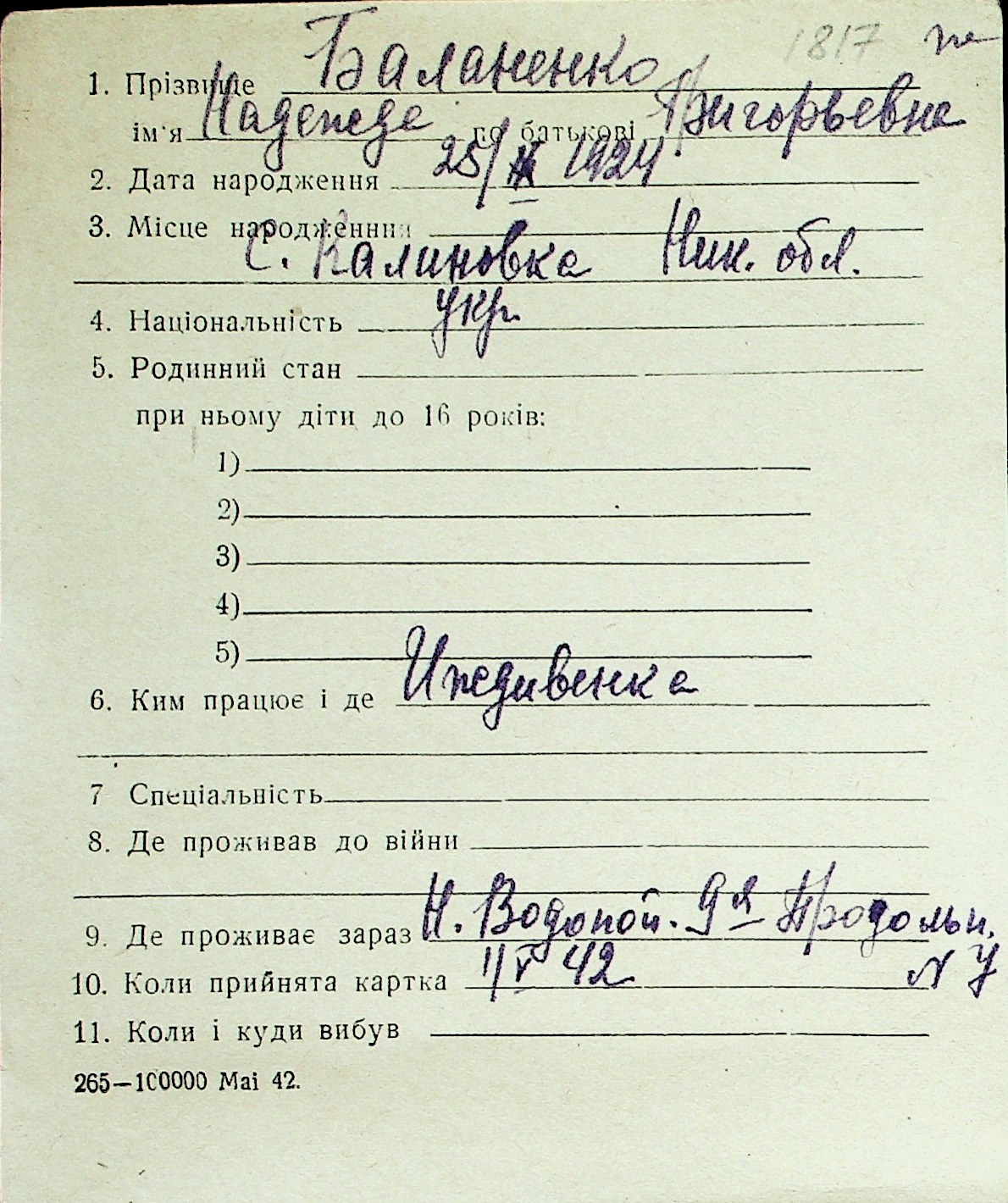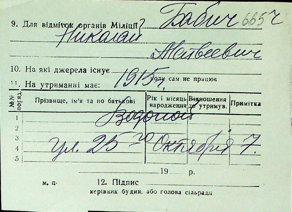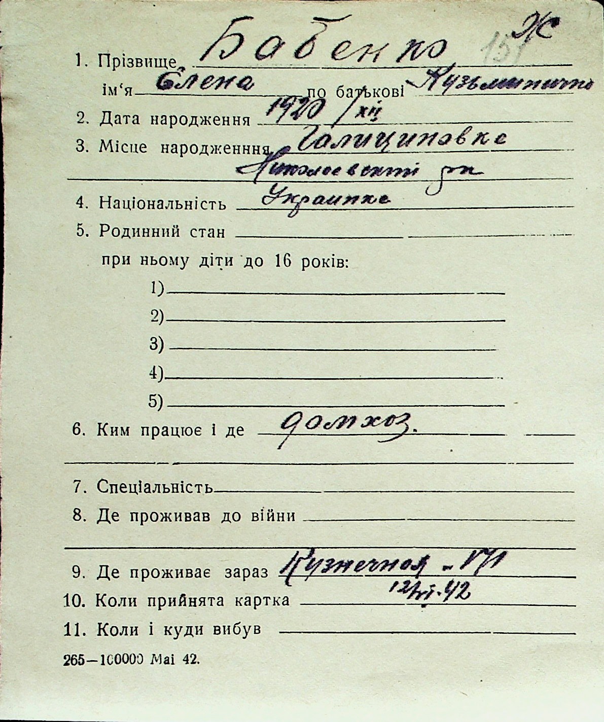 ◦ ◦ Перелік карток на осіб, які мешкали у м. Миколаїв у період окупації 1941–1944 років