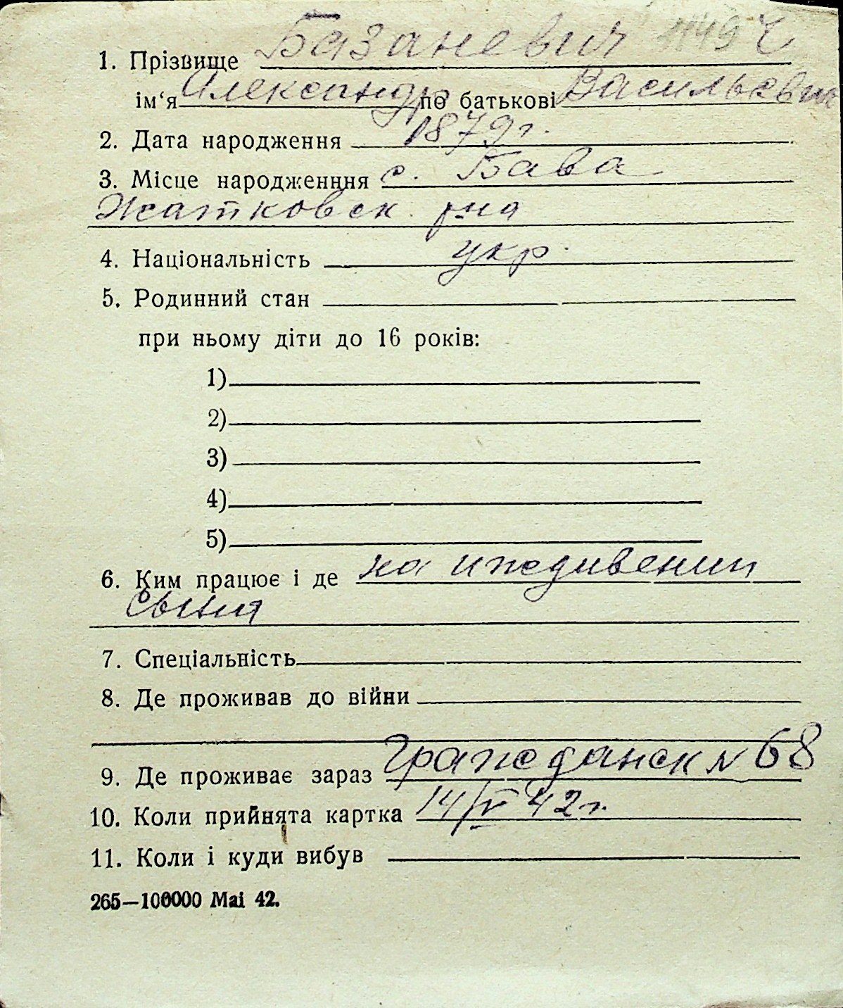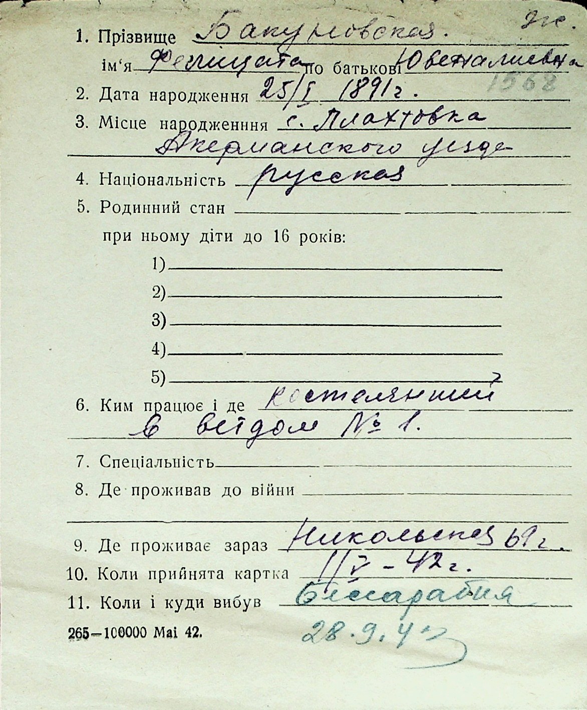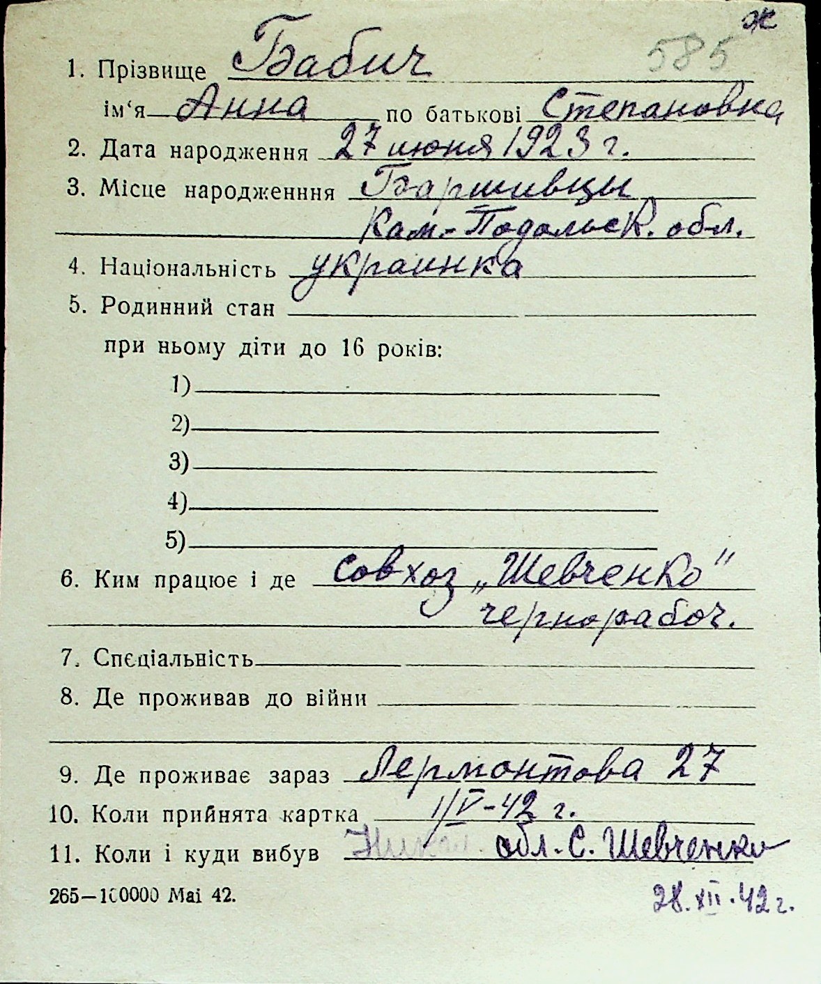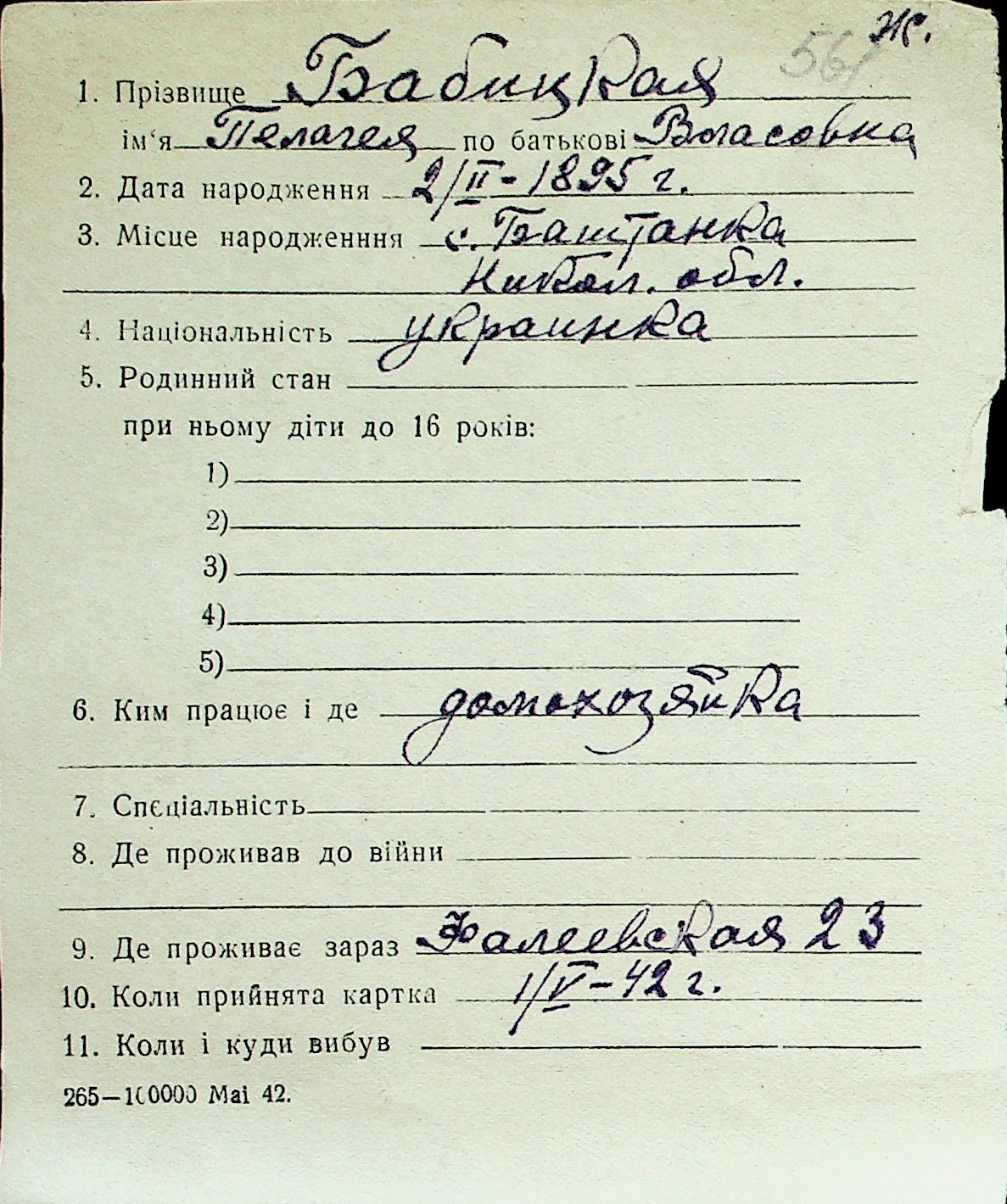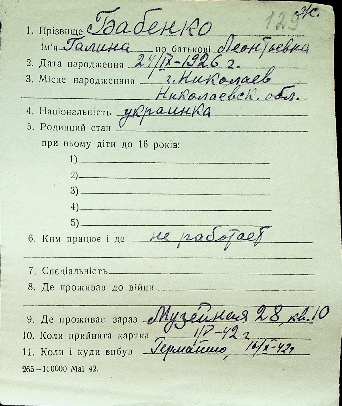 ◦ ◦ Перелік карток на осіб, які мешкали у м. Миколаїв у період окупації 1941–1944 років