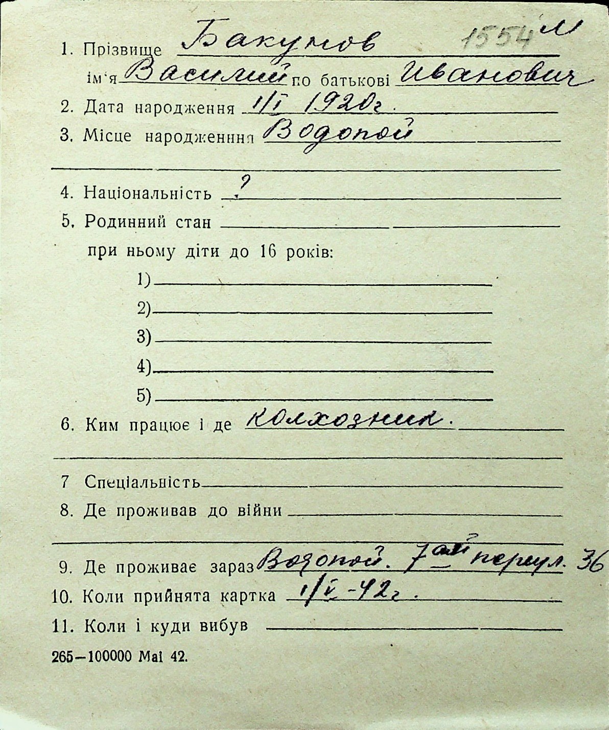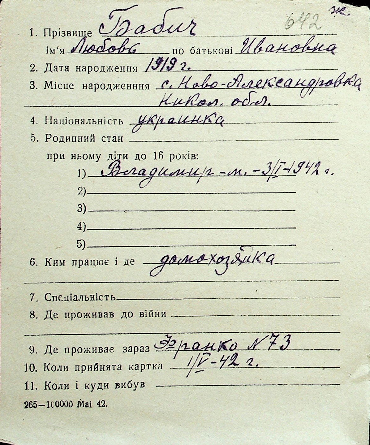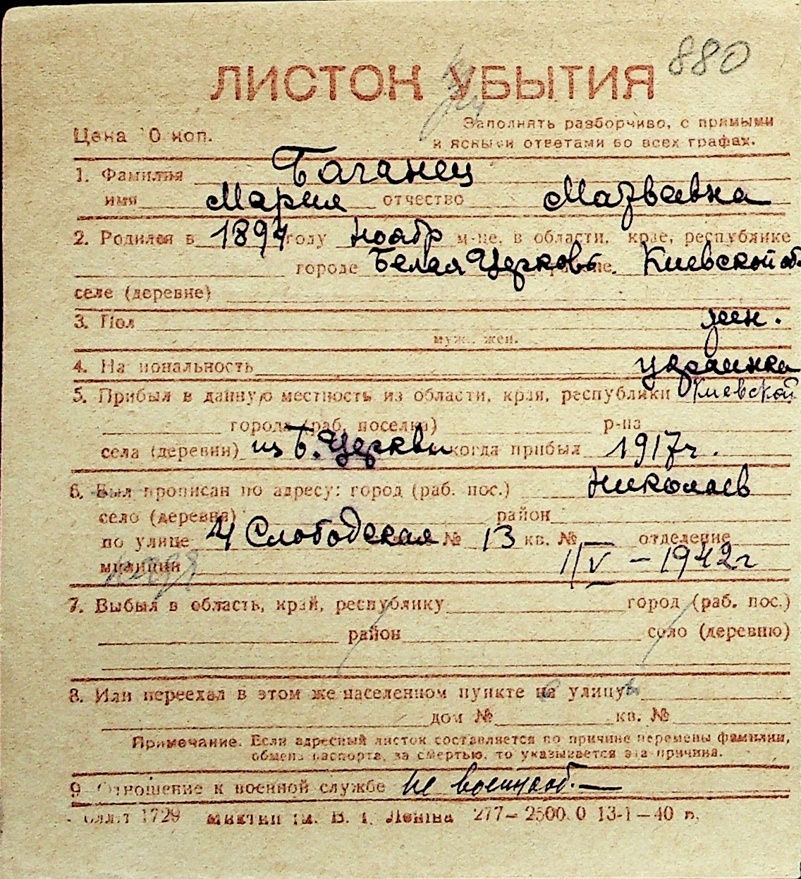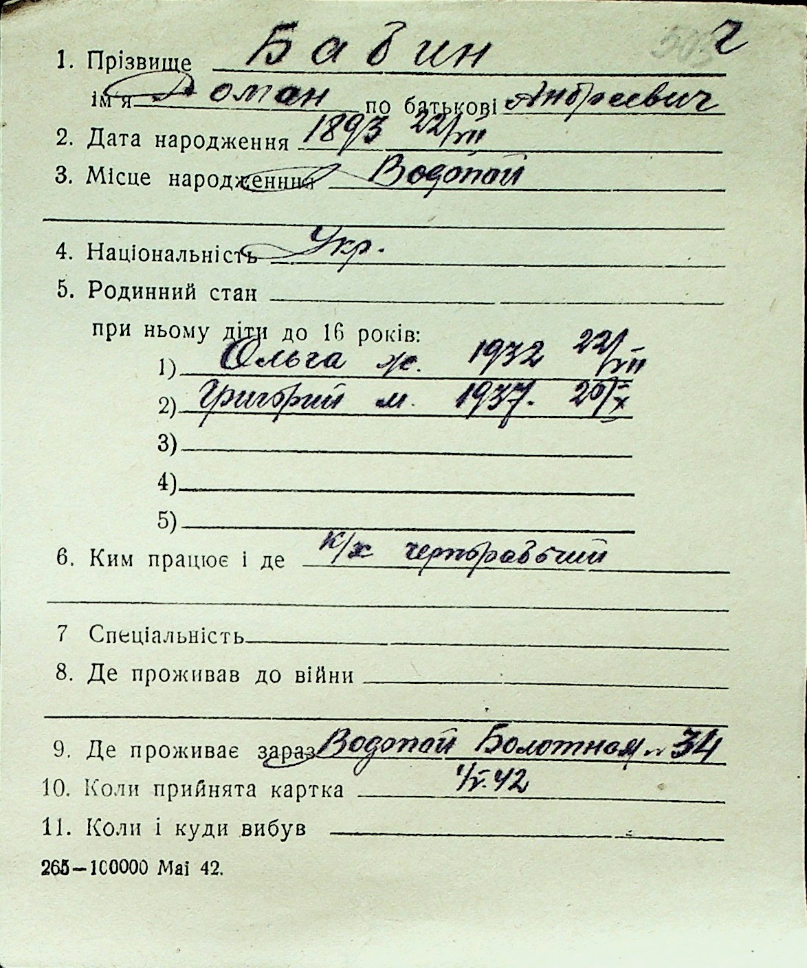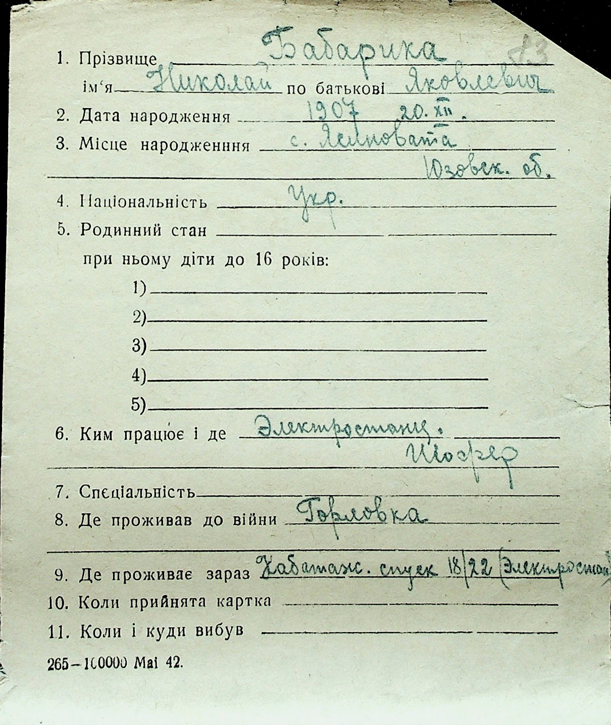 ◦ ◦ Перелік карток на осіб, які мешкали у м. Миколаїв у період окупації 1941–1944 років