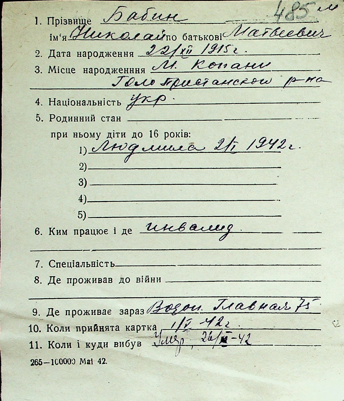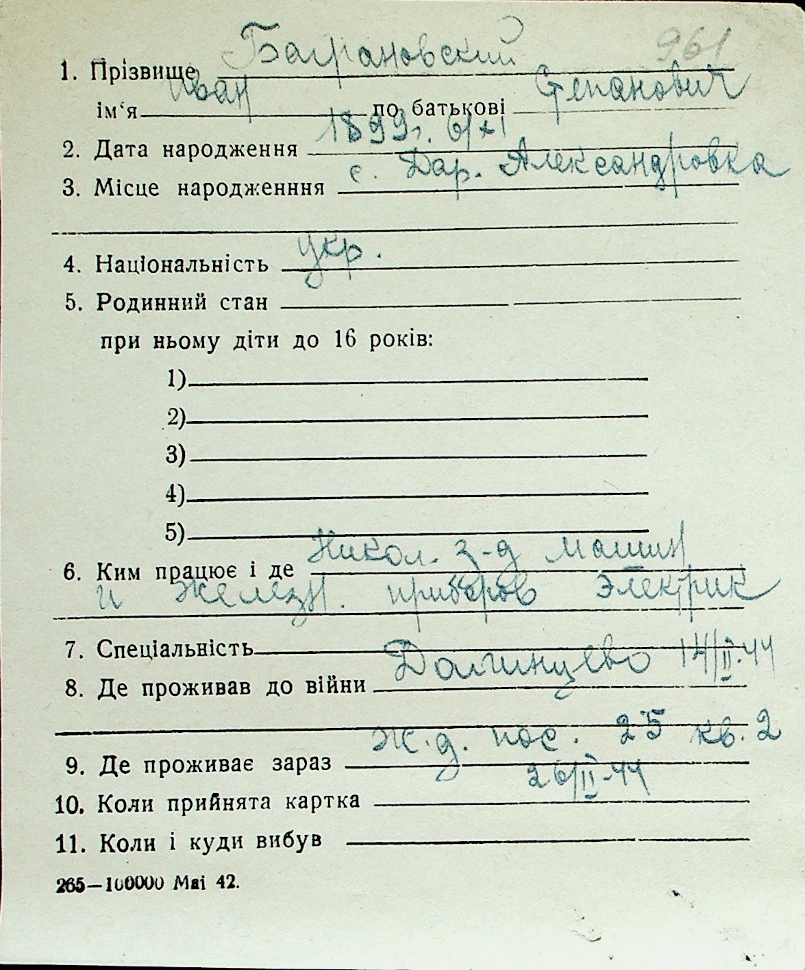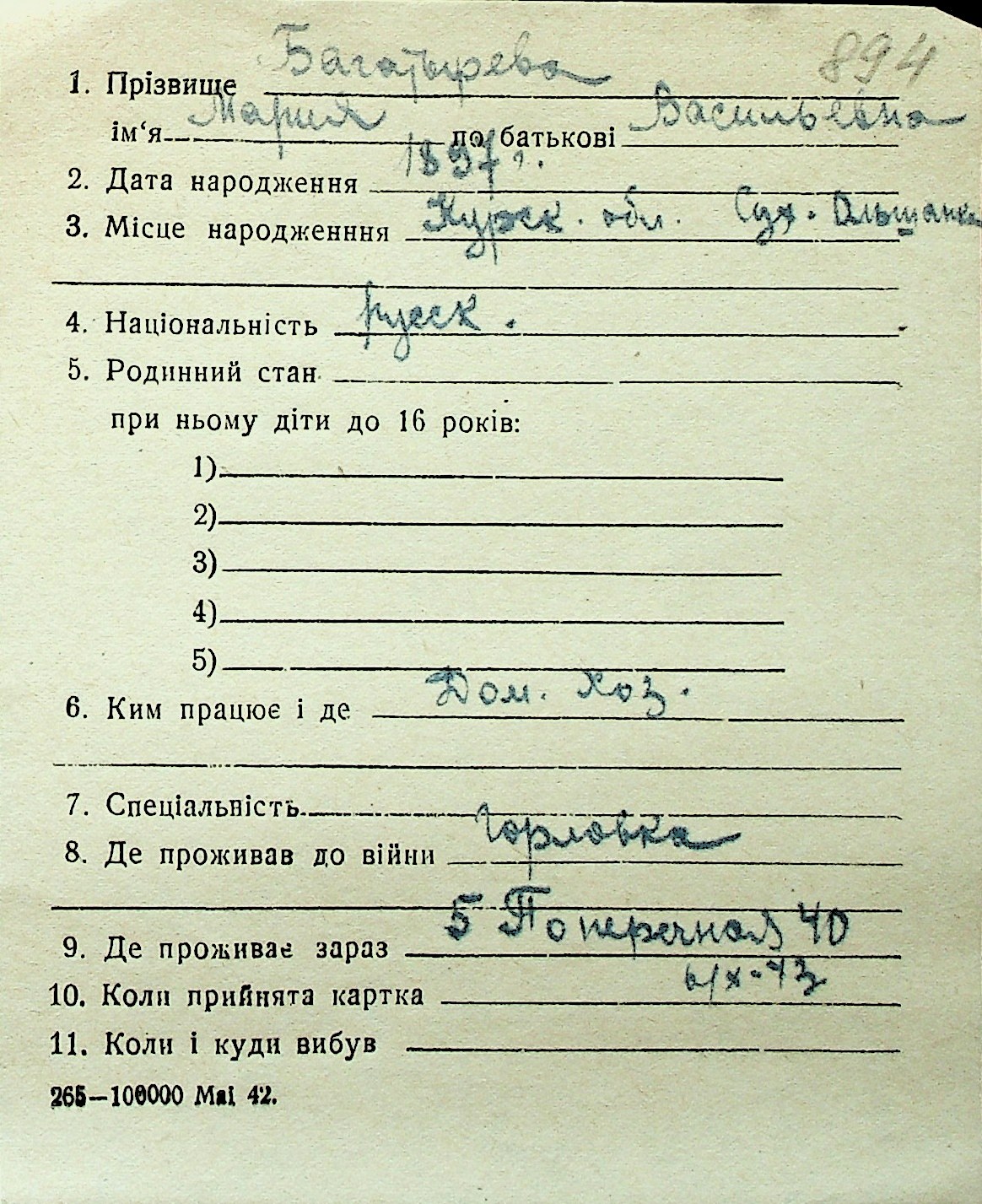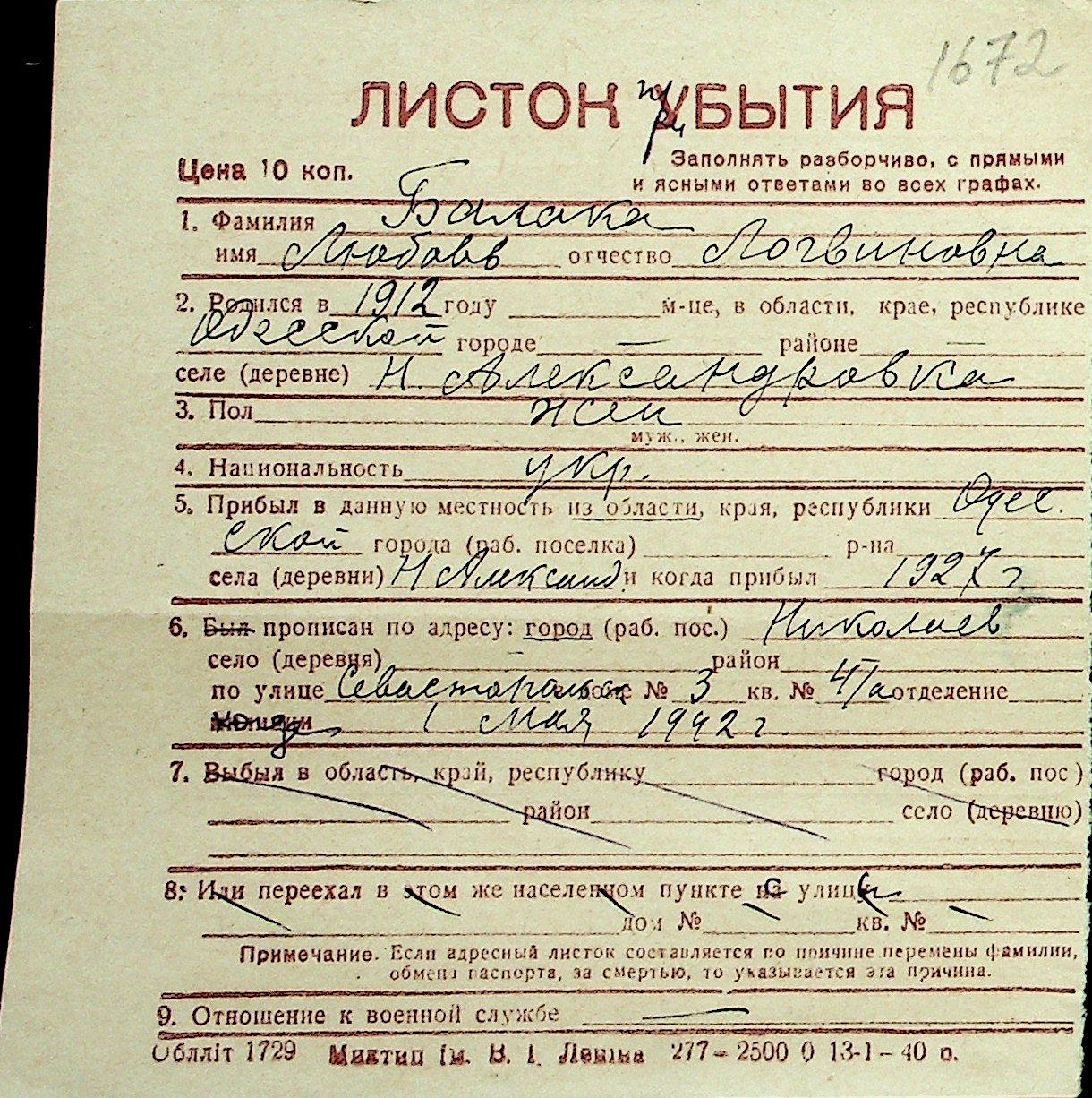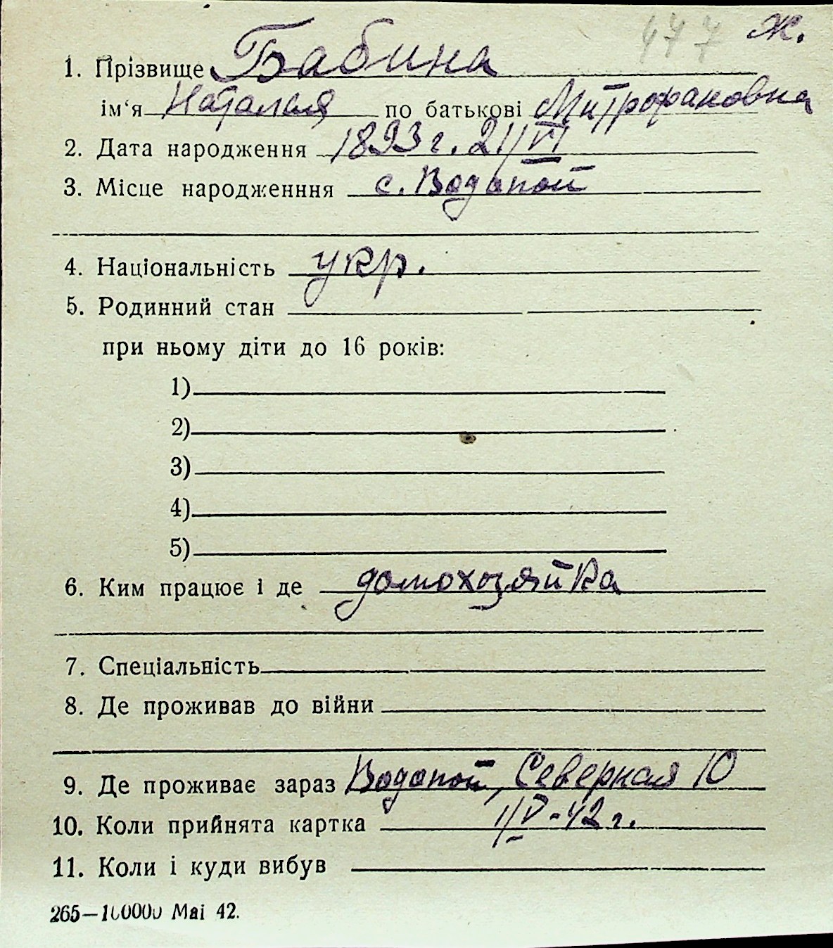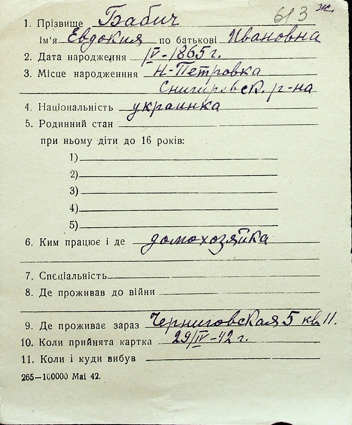 ◦ ◦ Перелік карток на осіб, які мешкали у м. Миколаїв у період окупації 1941–1944 років