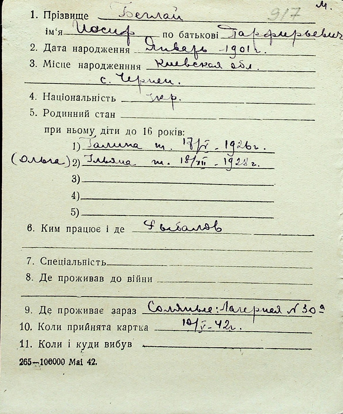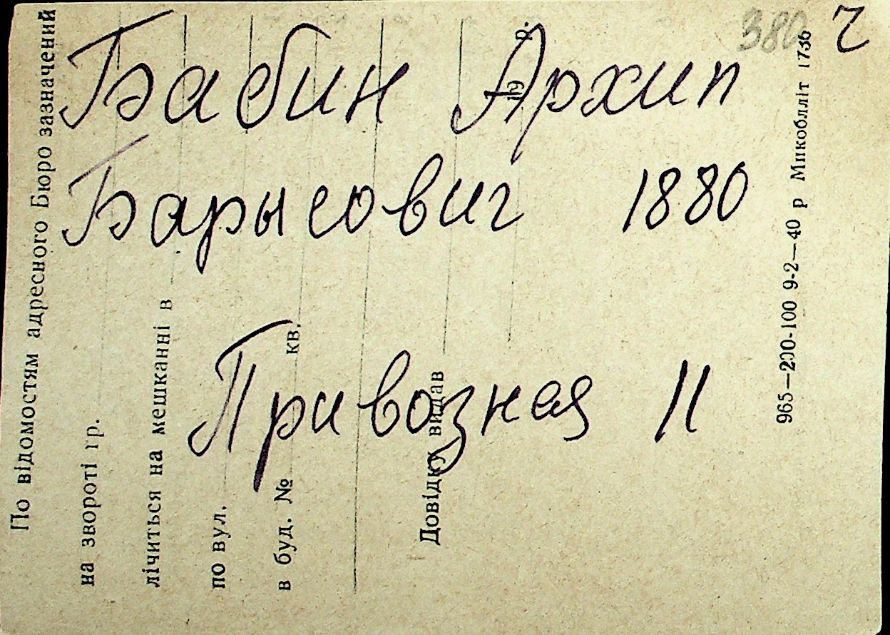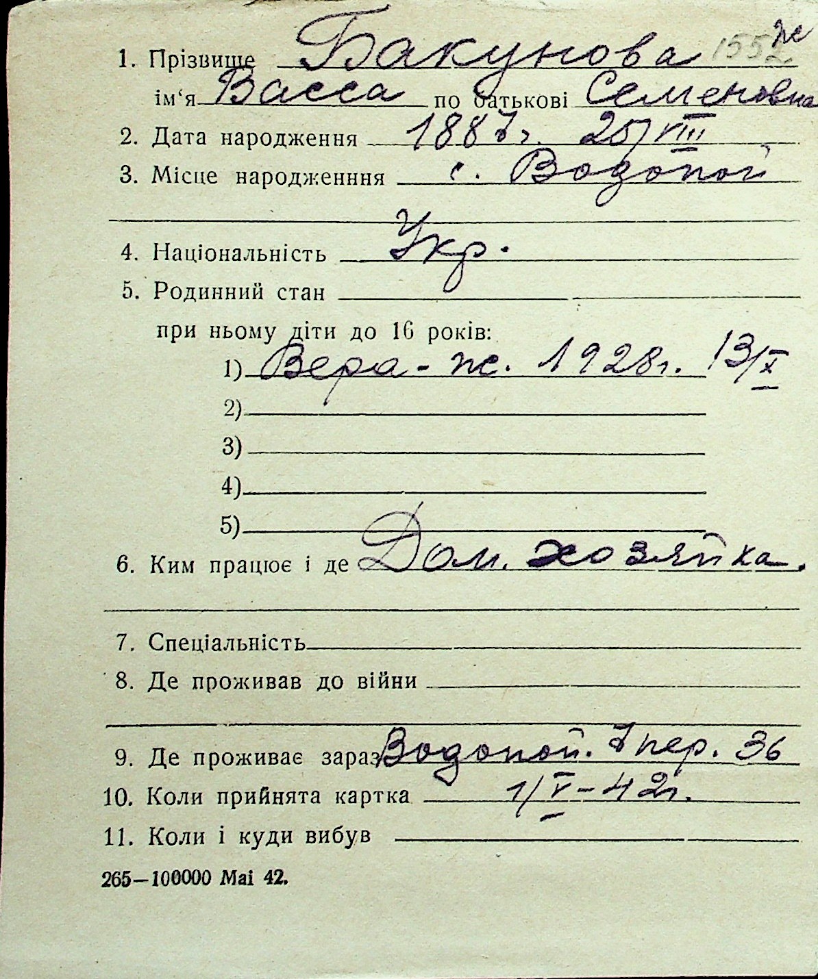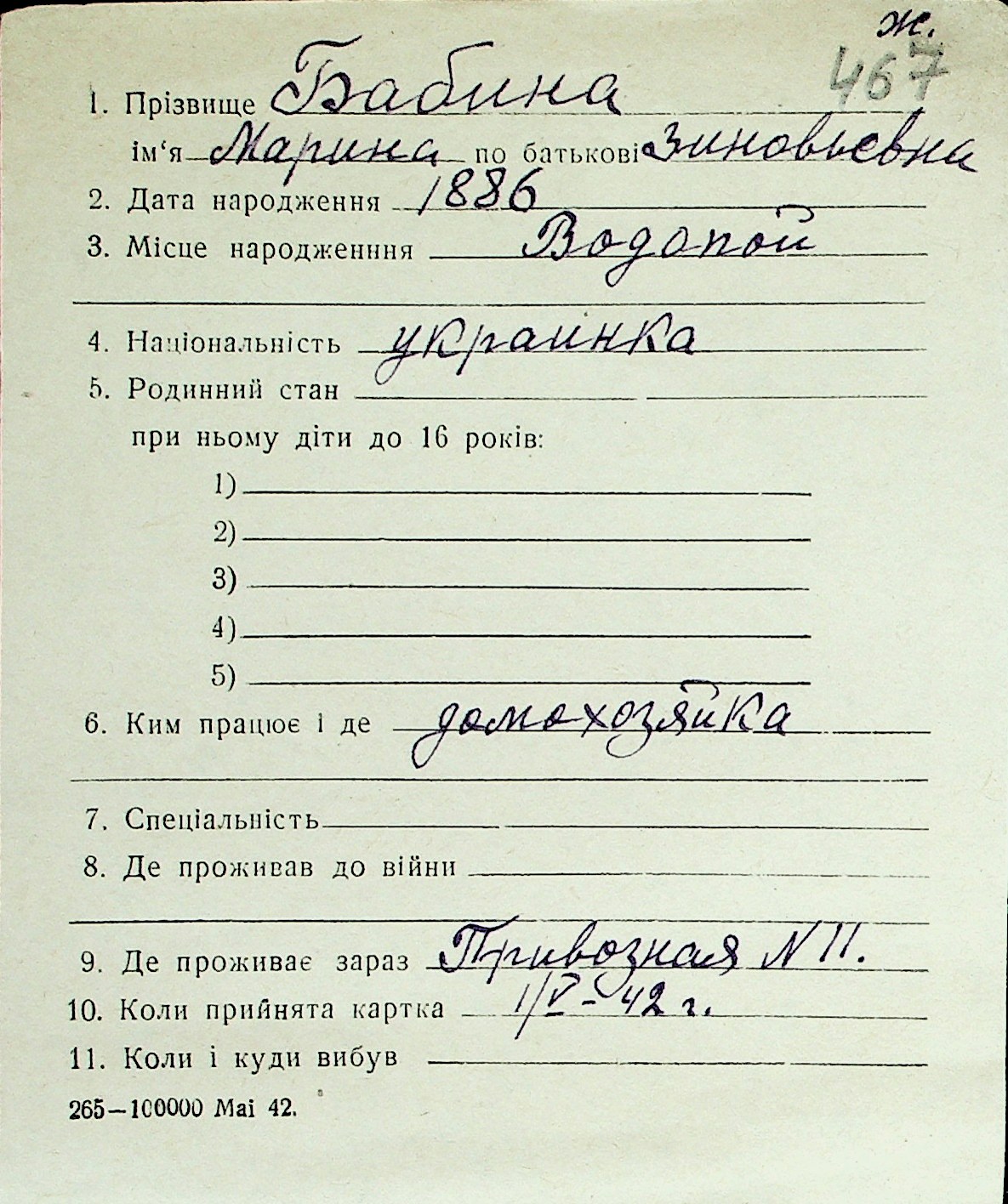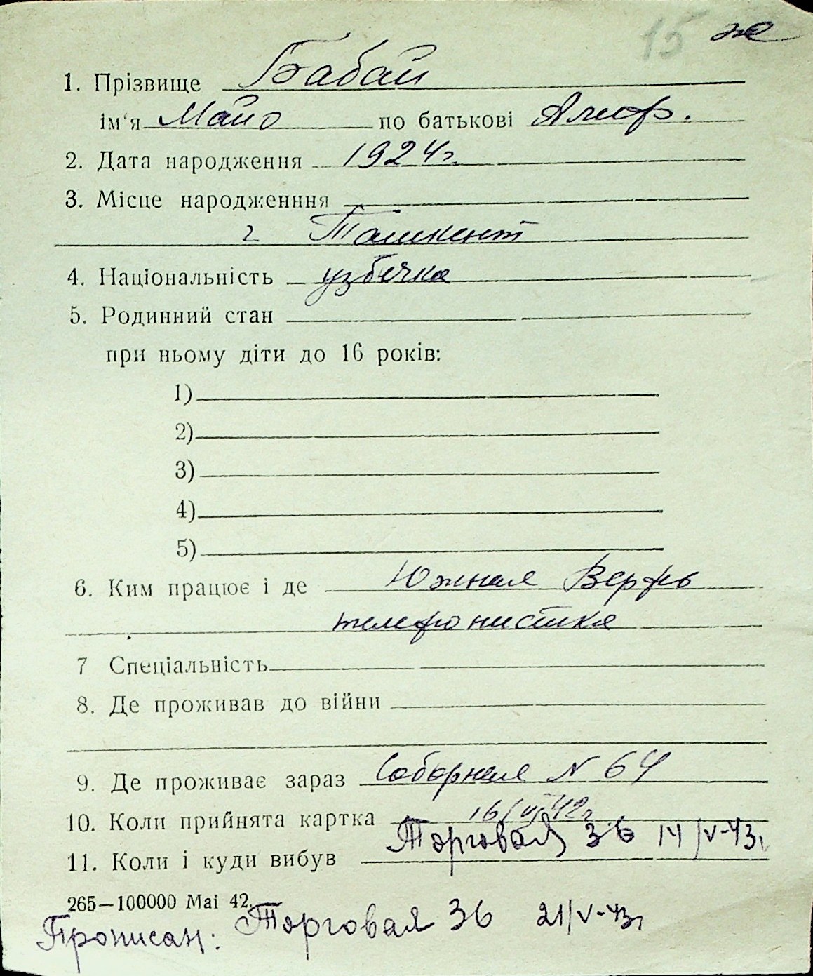 ◦ ◦ Перелік карток на осіб, які мешкали у м. Миколаїв у період окупації 1941–1944 років