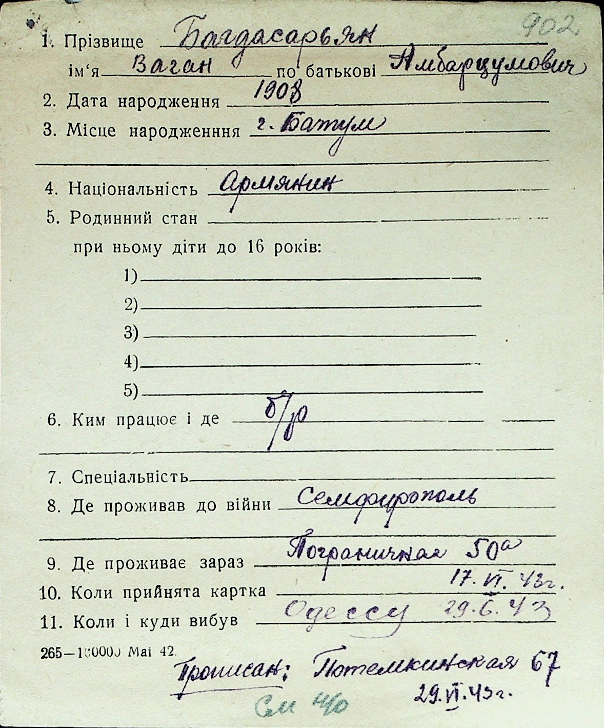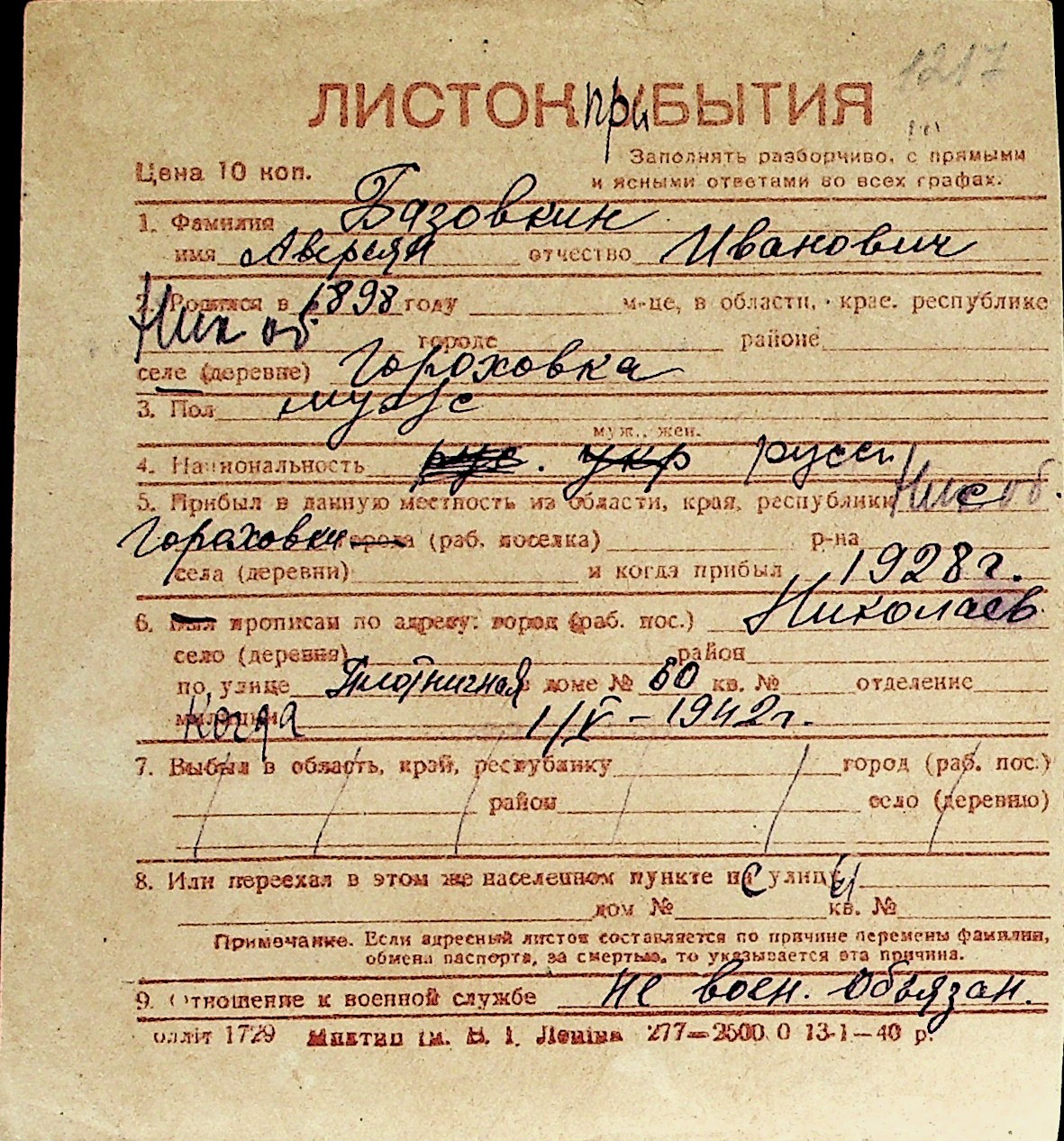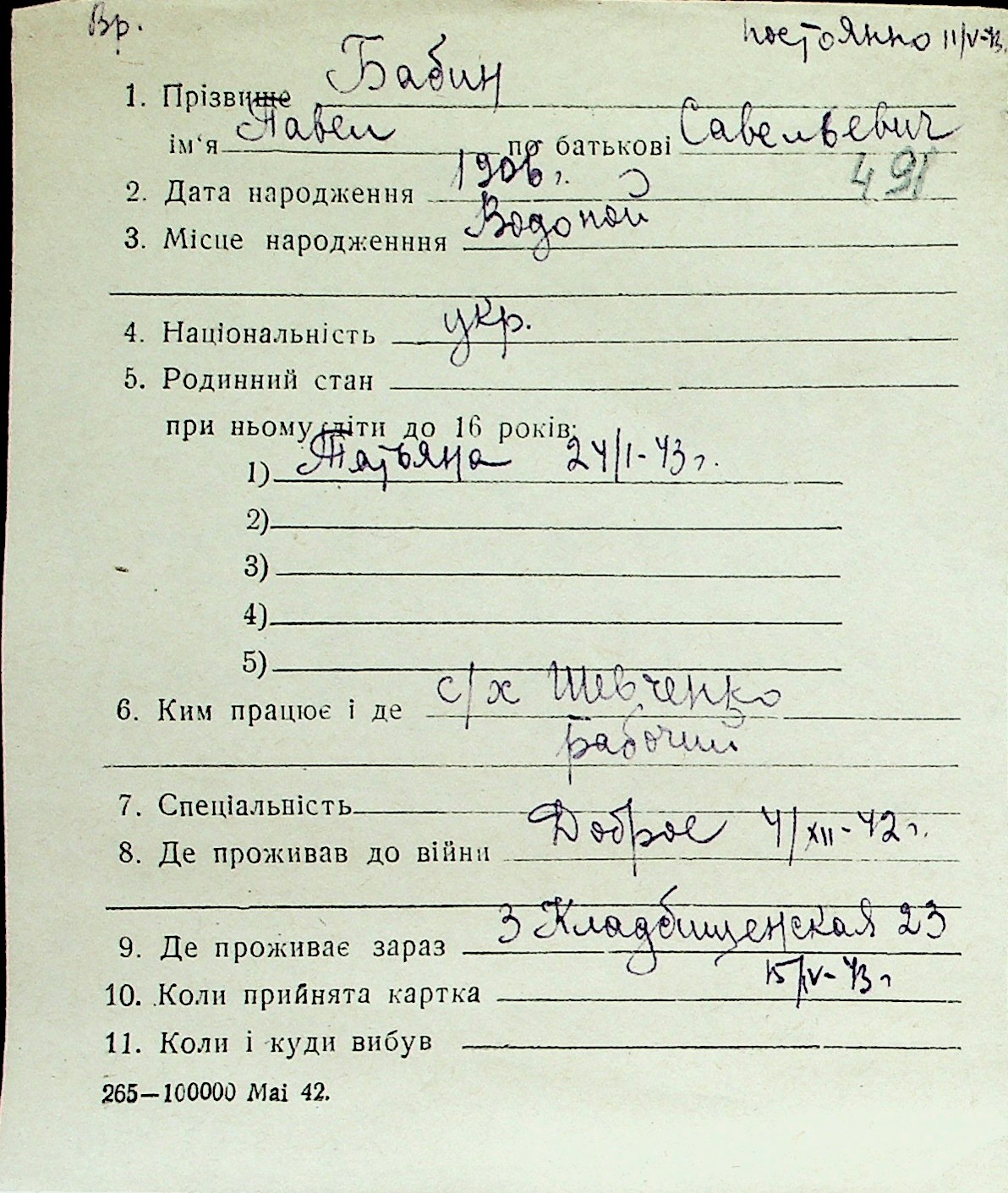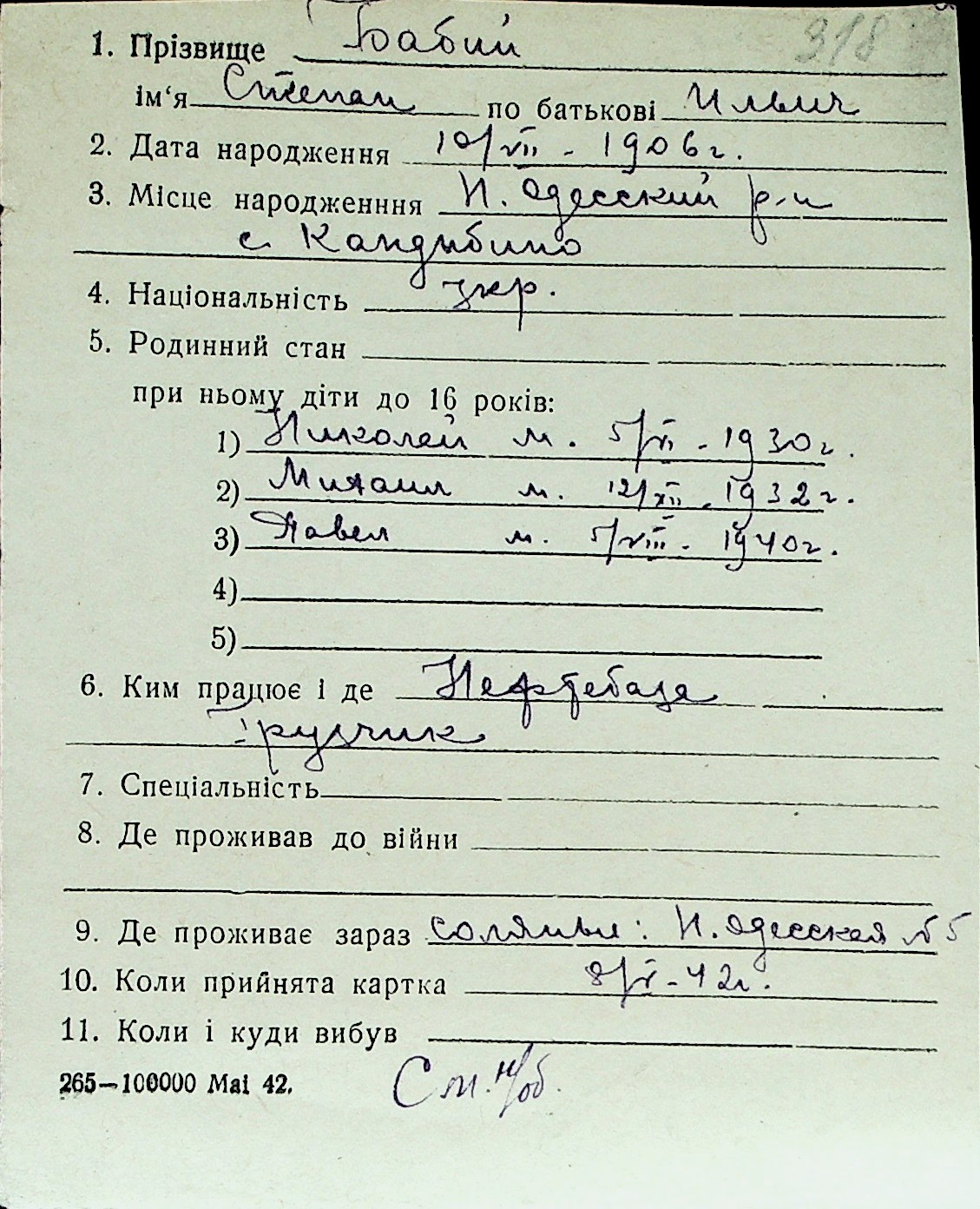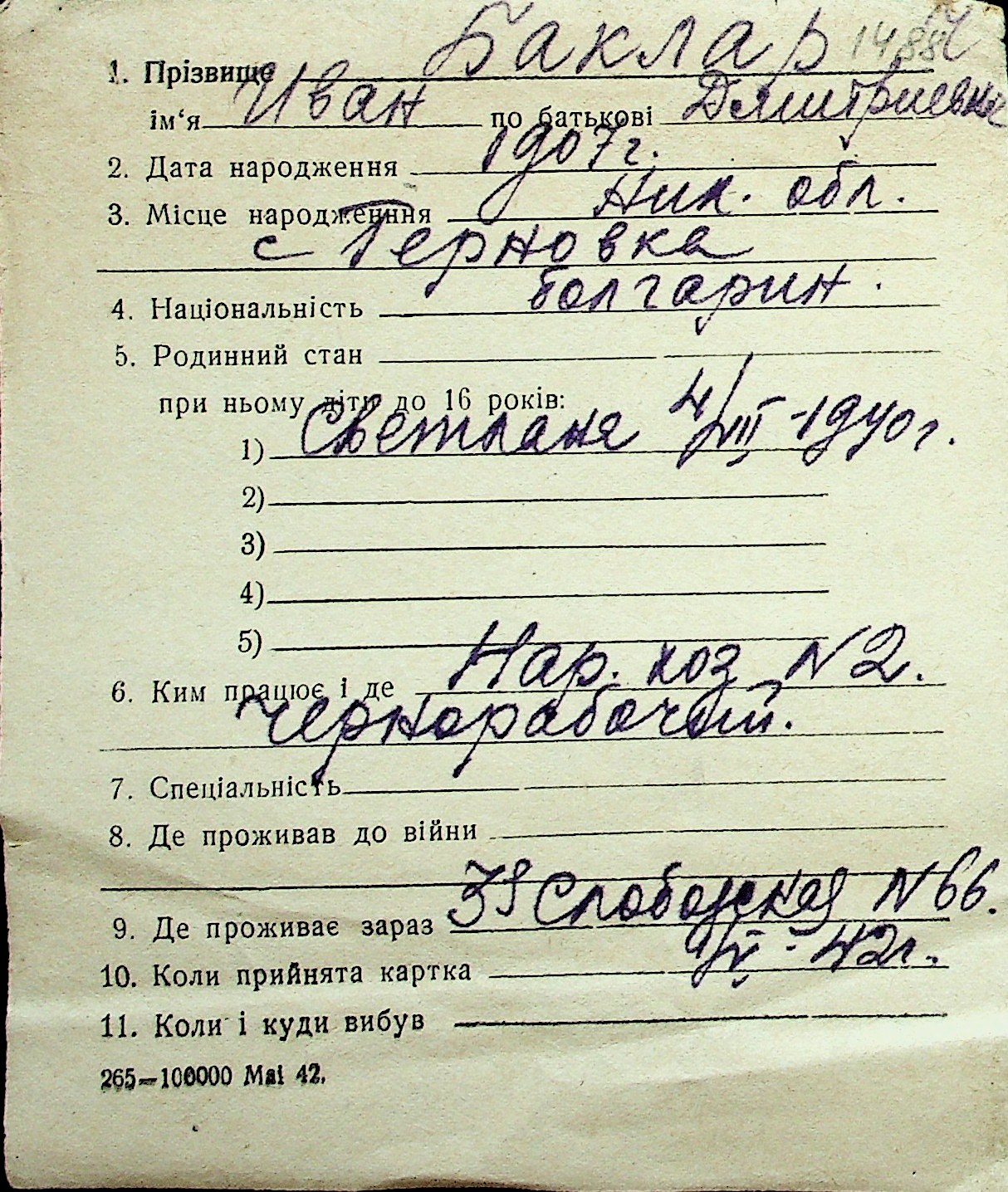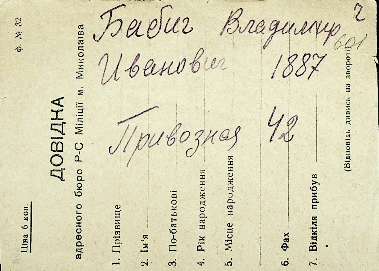 ◦ ◦ Перелік карток на осіб, які мешкали у м. Миколаїв у період окупації 1941–1944 років