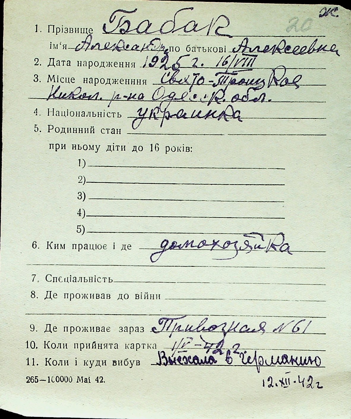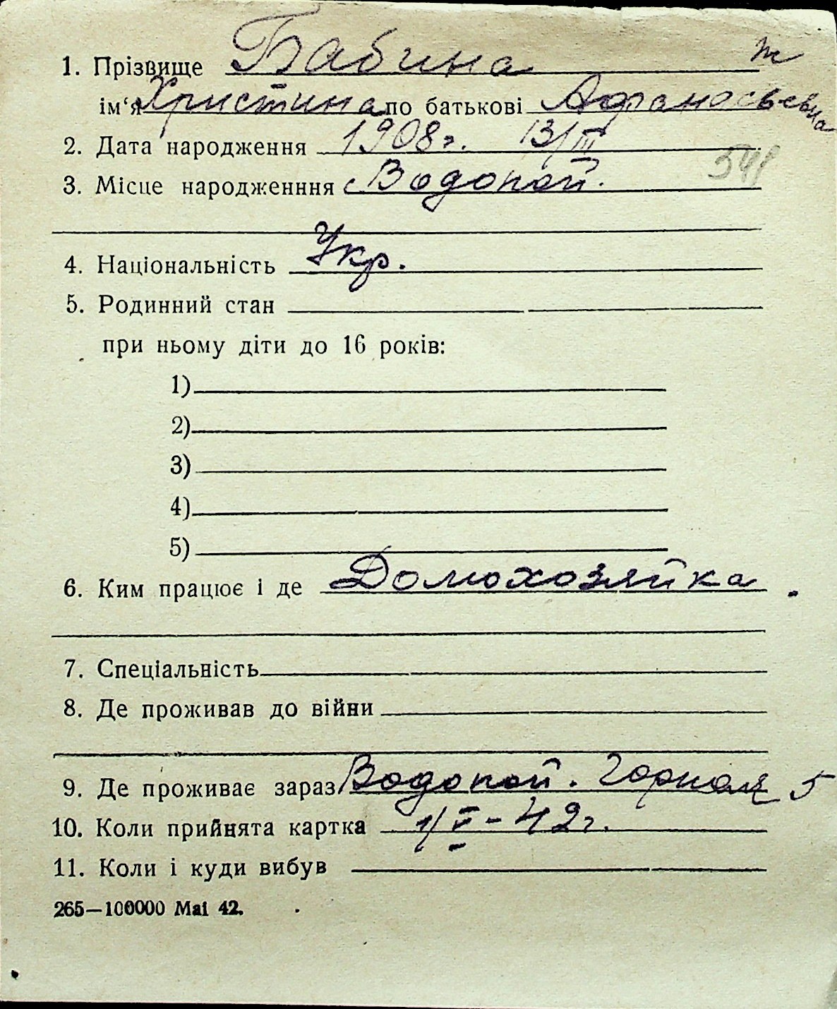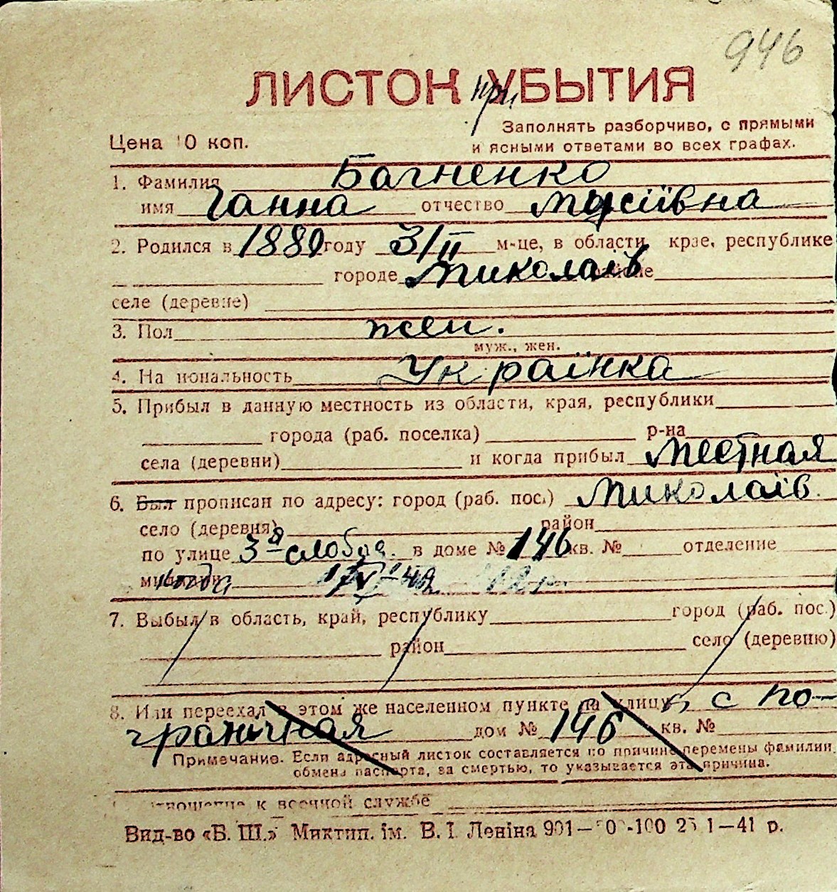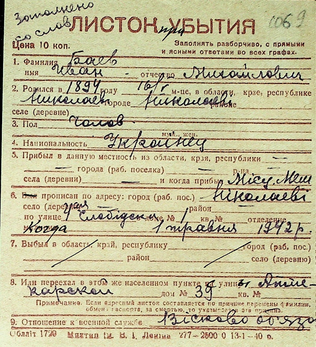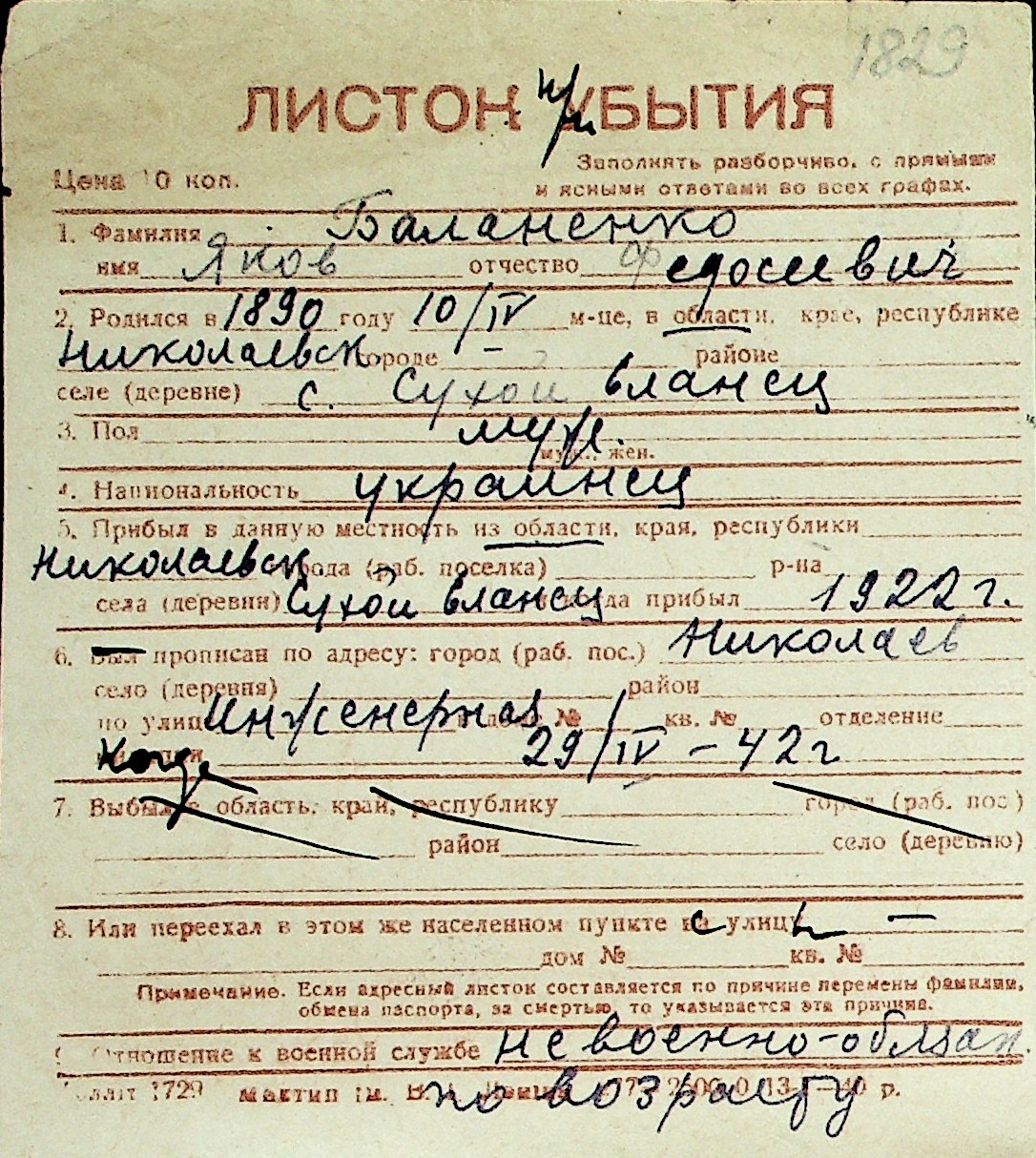 ◦ ◦ Перелік карток на осіб, які мешкали у м. Миколаїв у період окупації 1941–1944 років