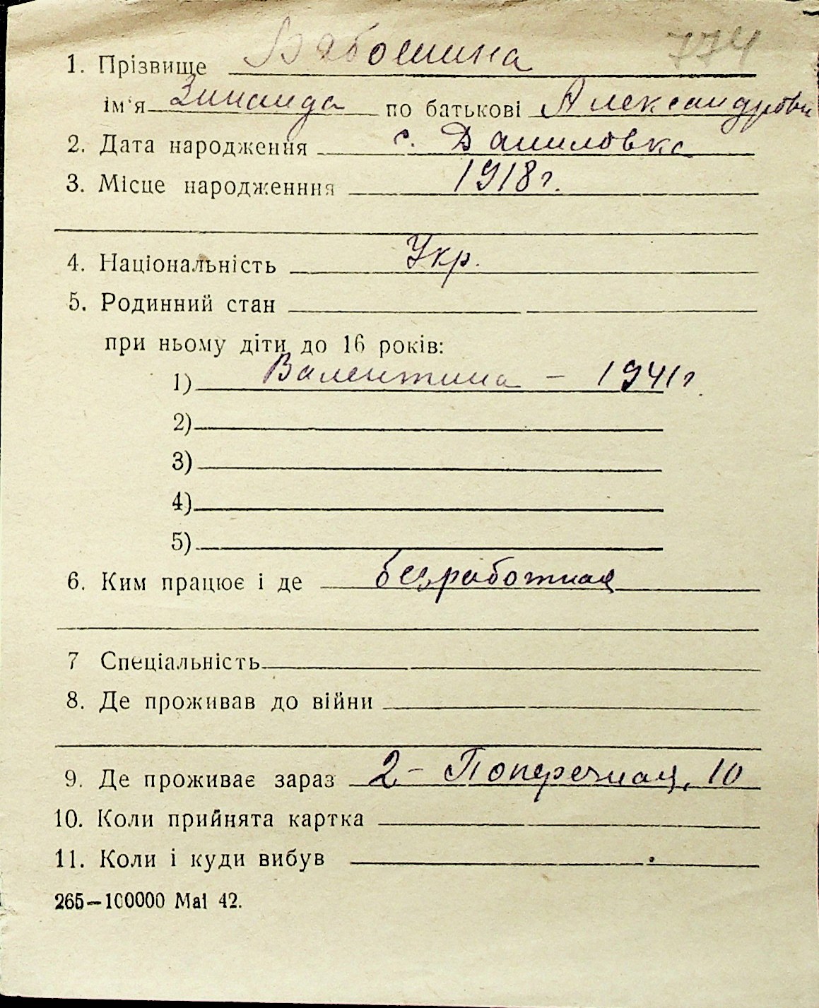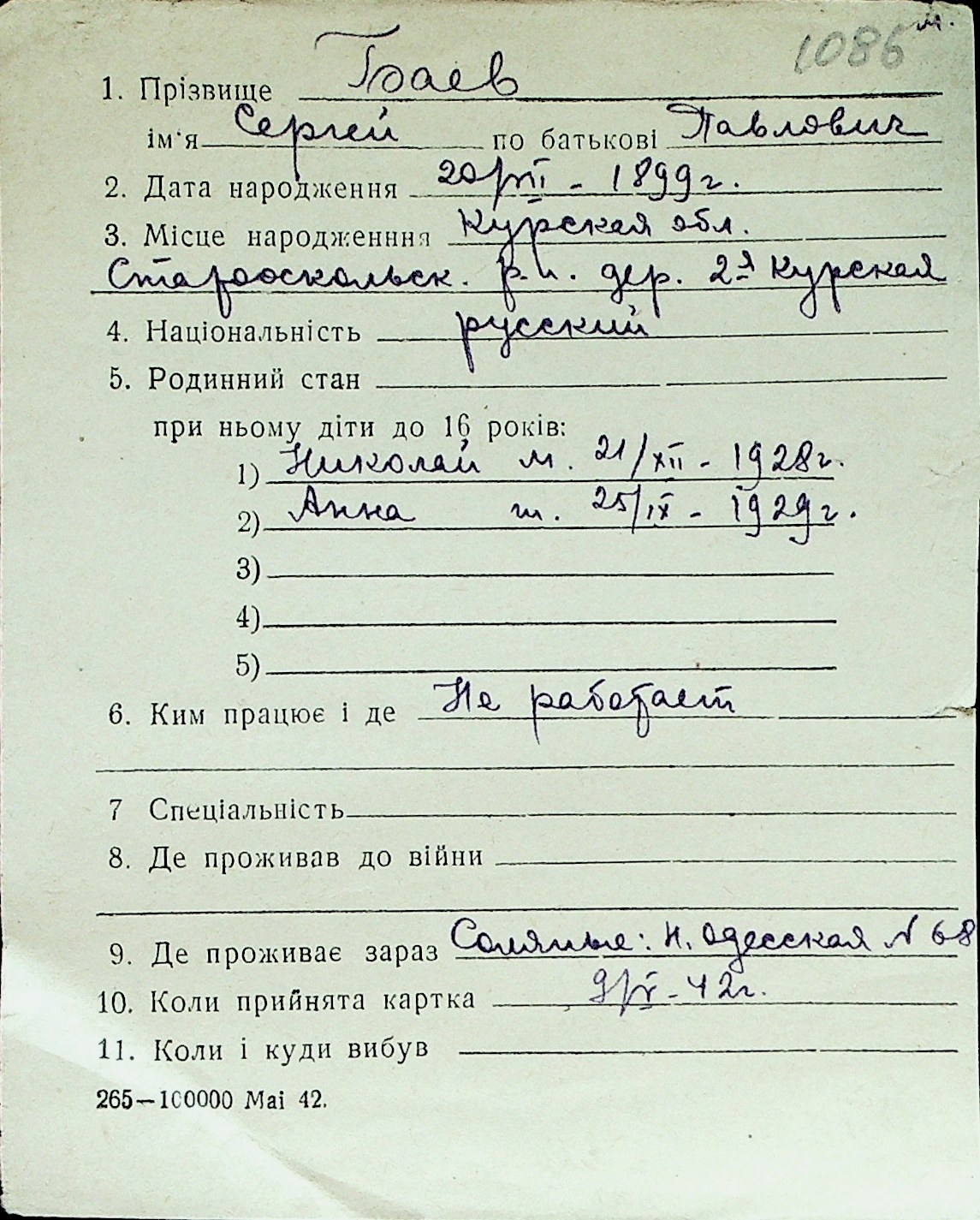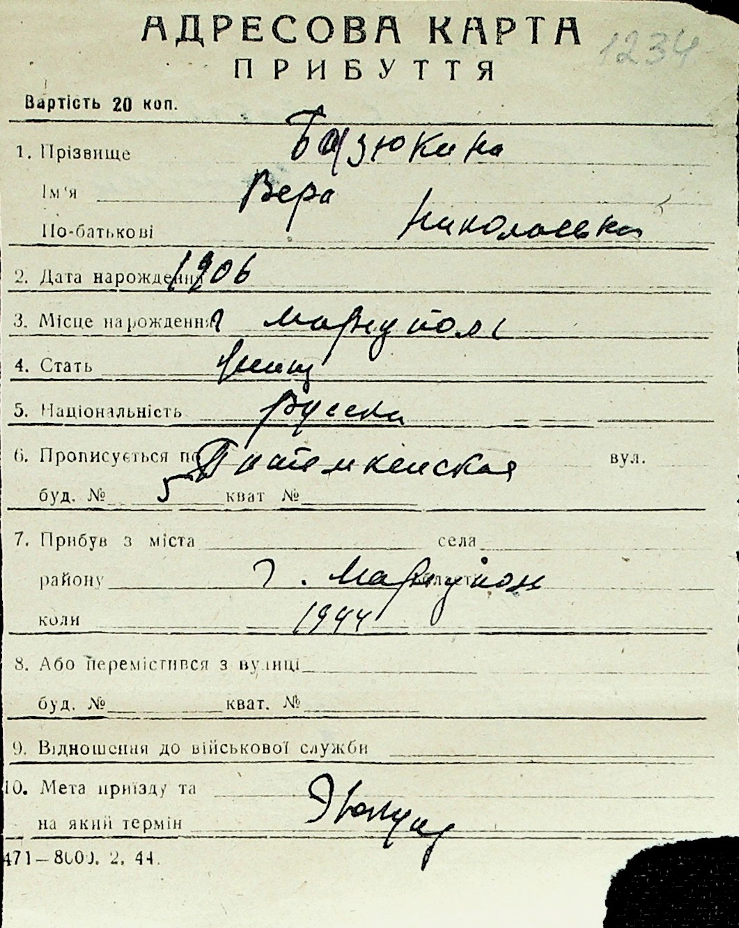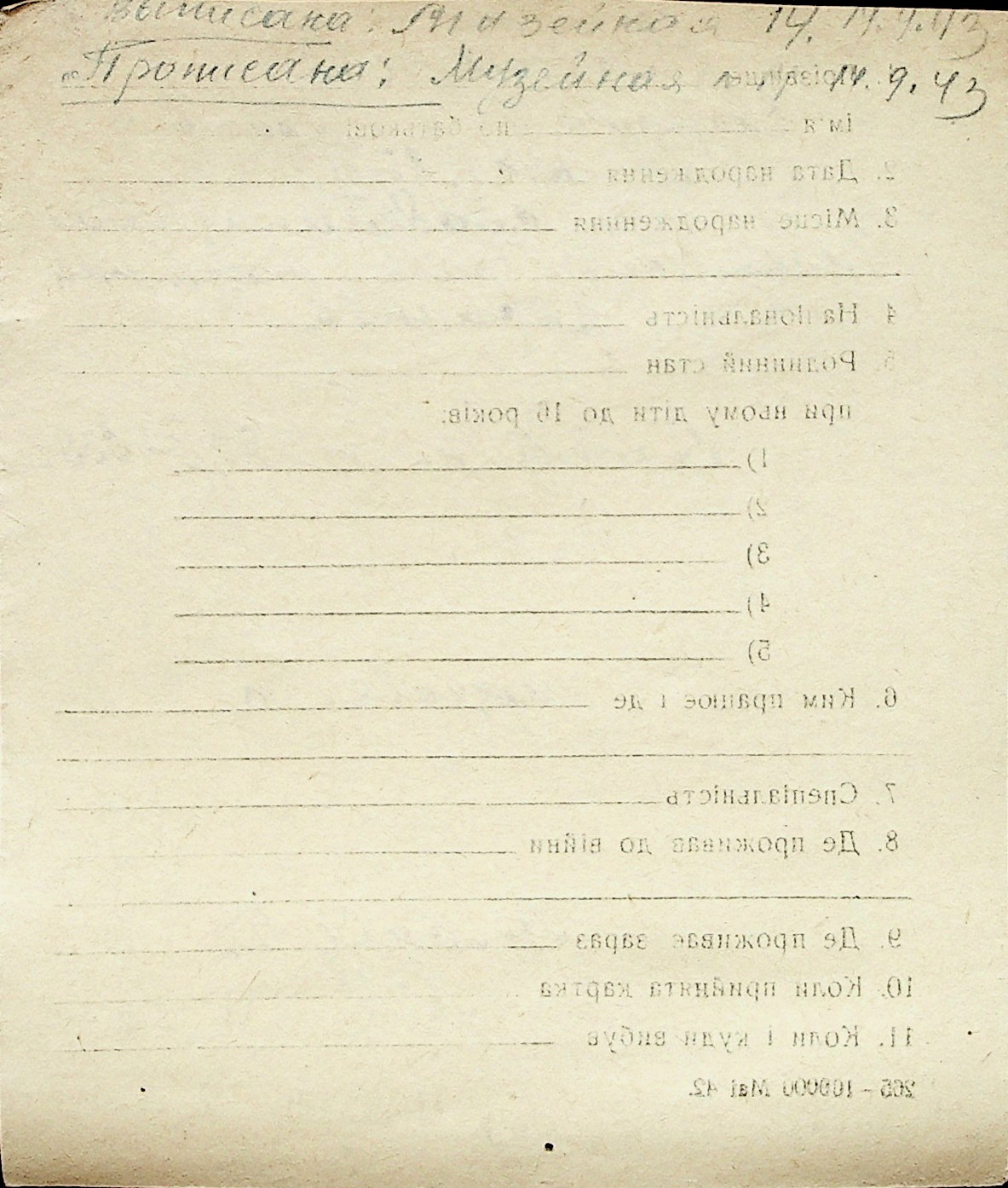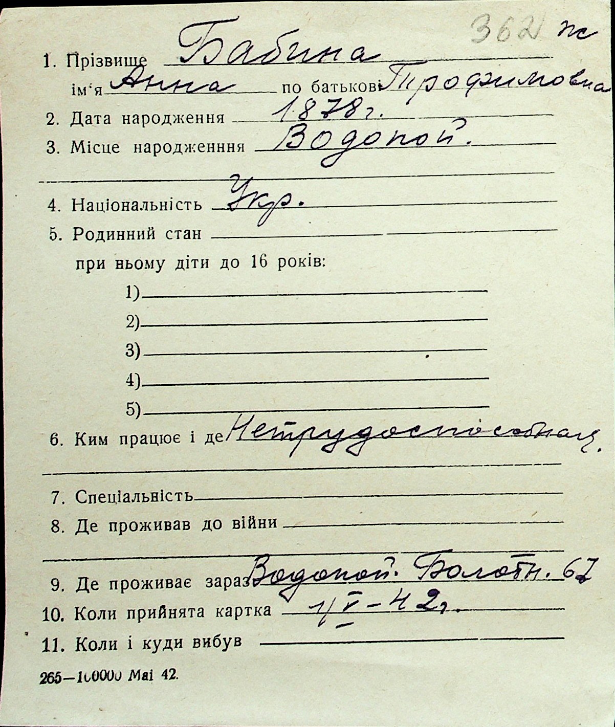 ◦ ◦ Перелік карток на осіб, які мешкали у м. Миколаїв у період окупації 1941–1944 років