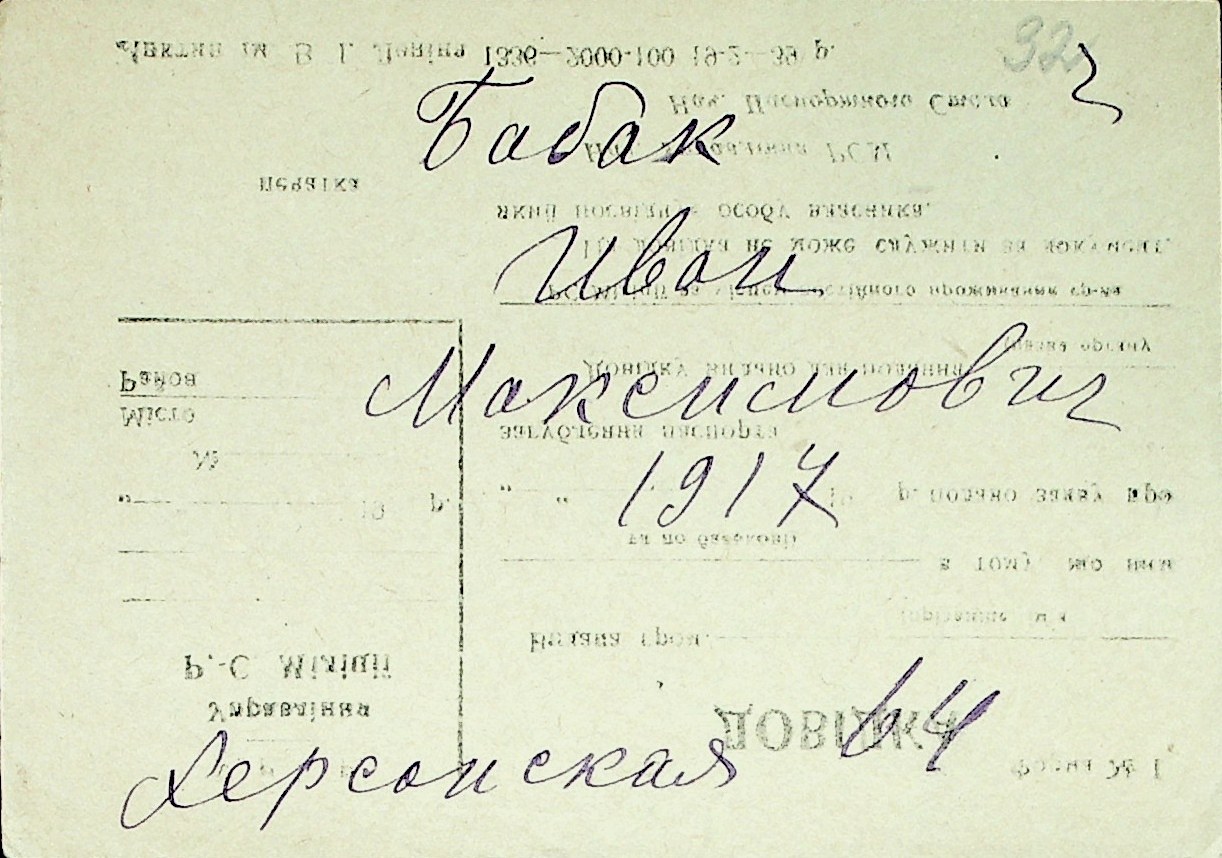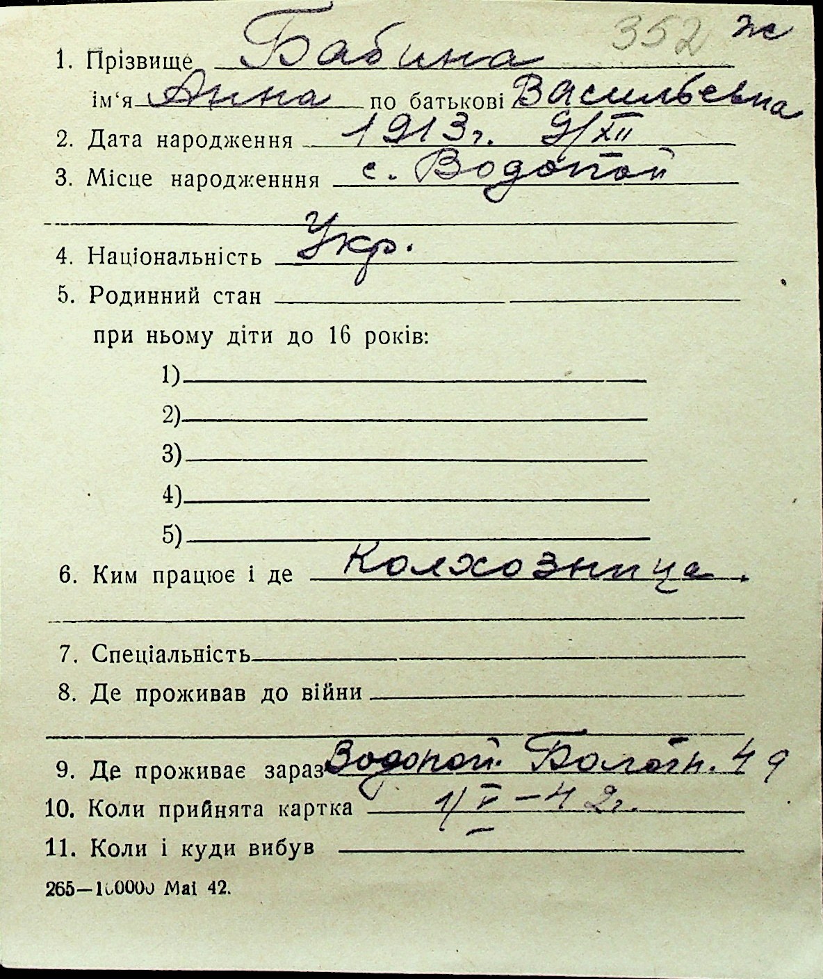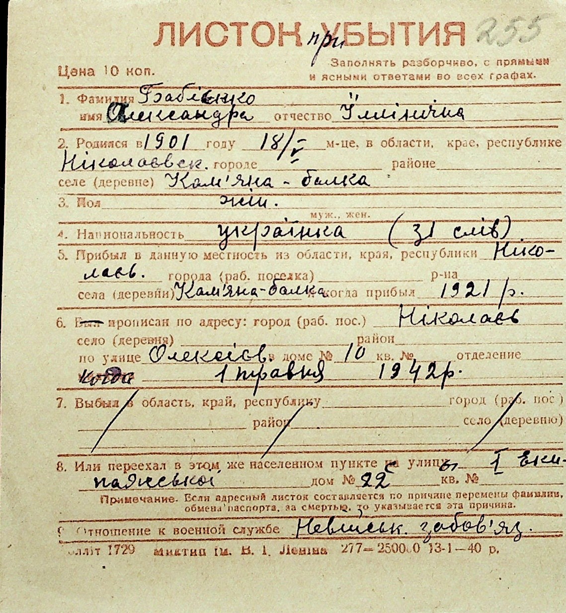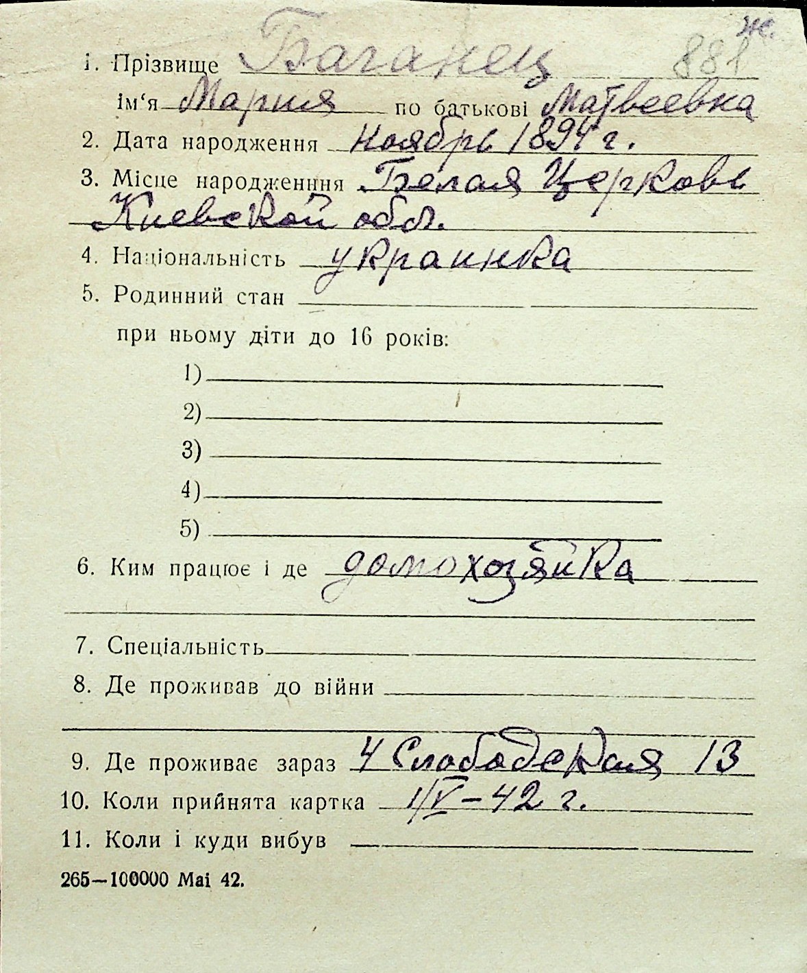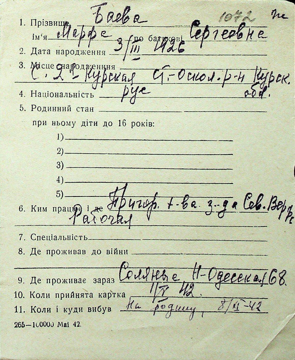 ◦ ◦ Перелік карток на осіб, які мешкали у м. Миколаїв у період окупації 1941–1944 років