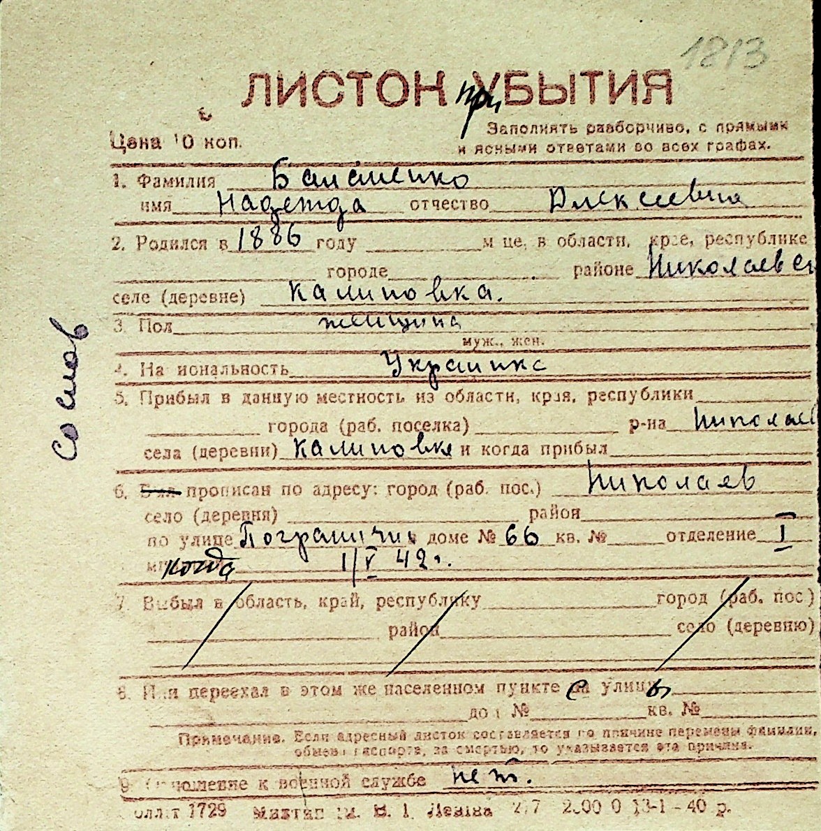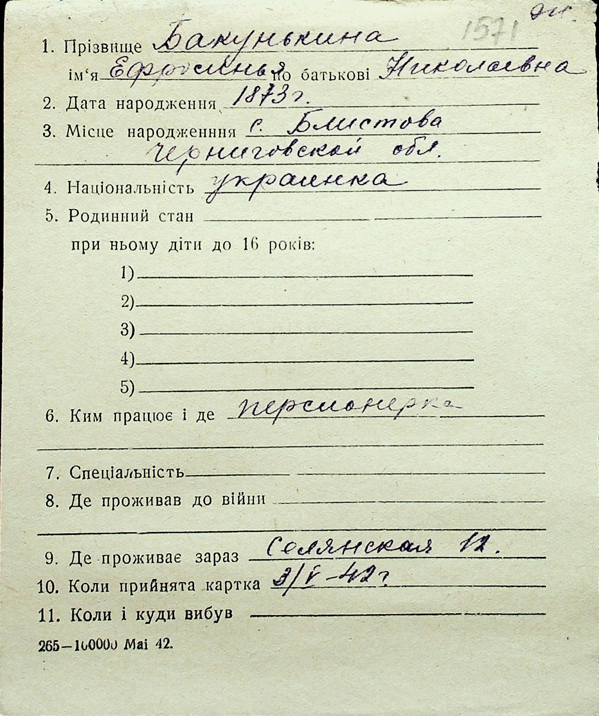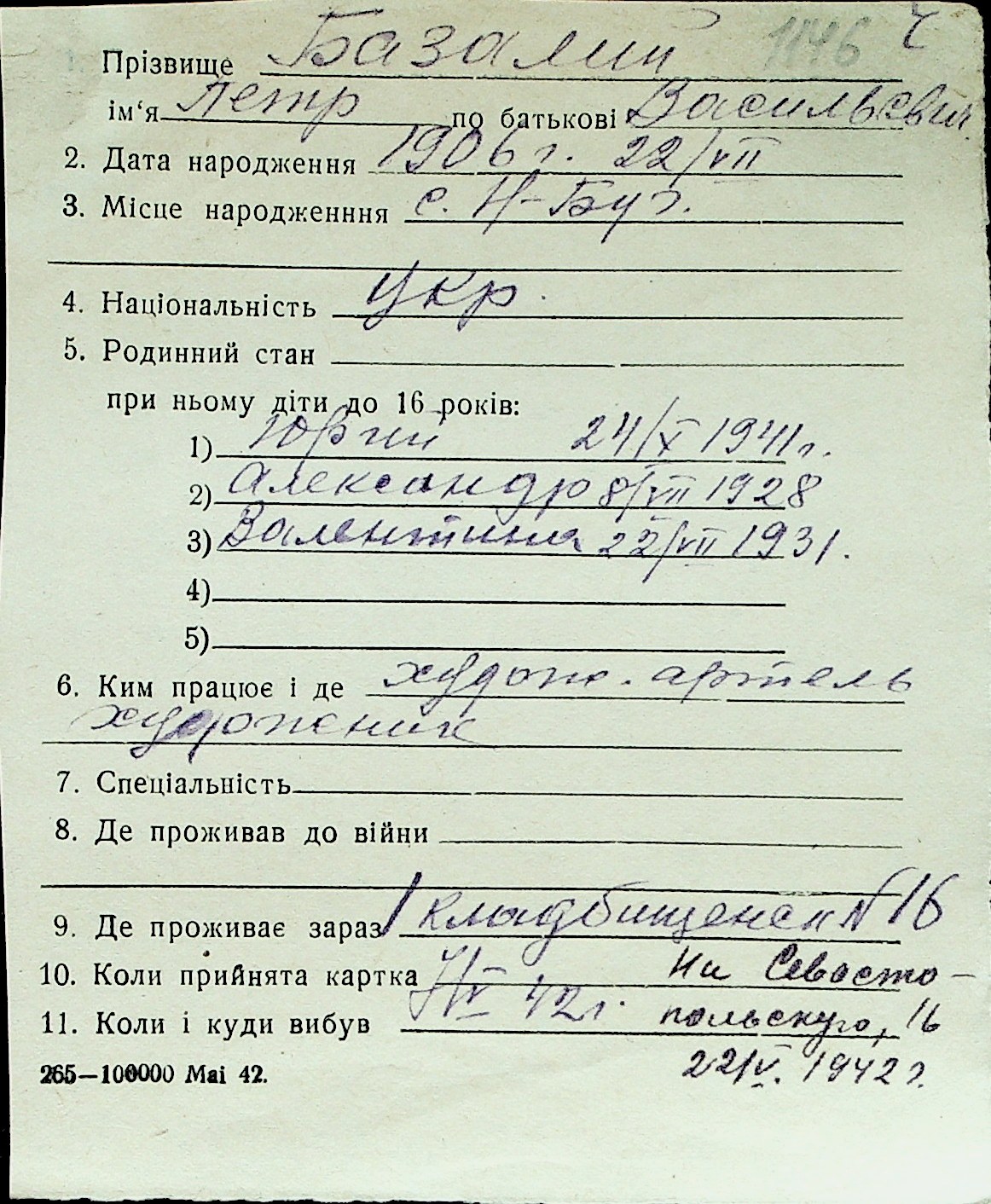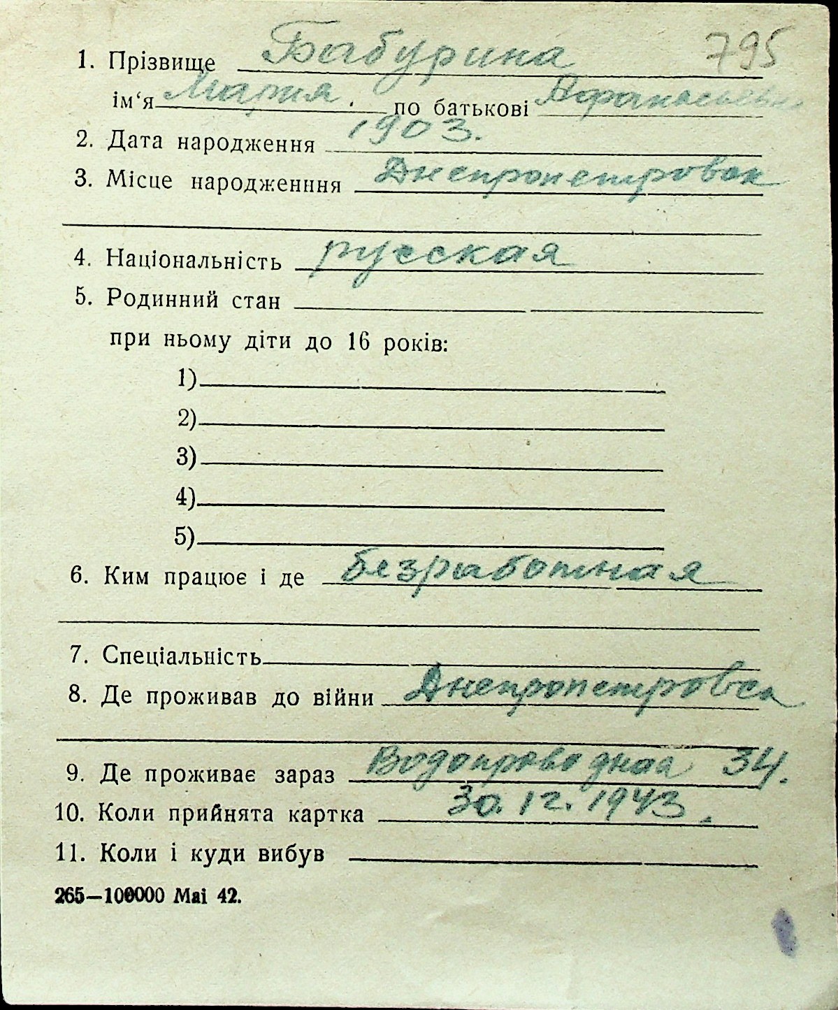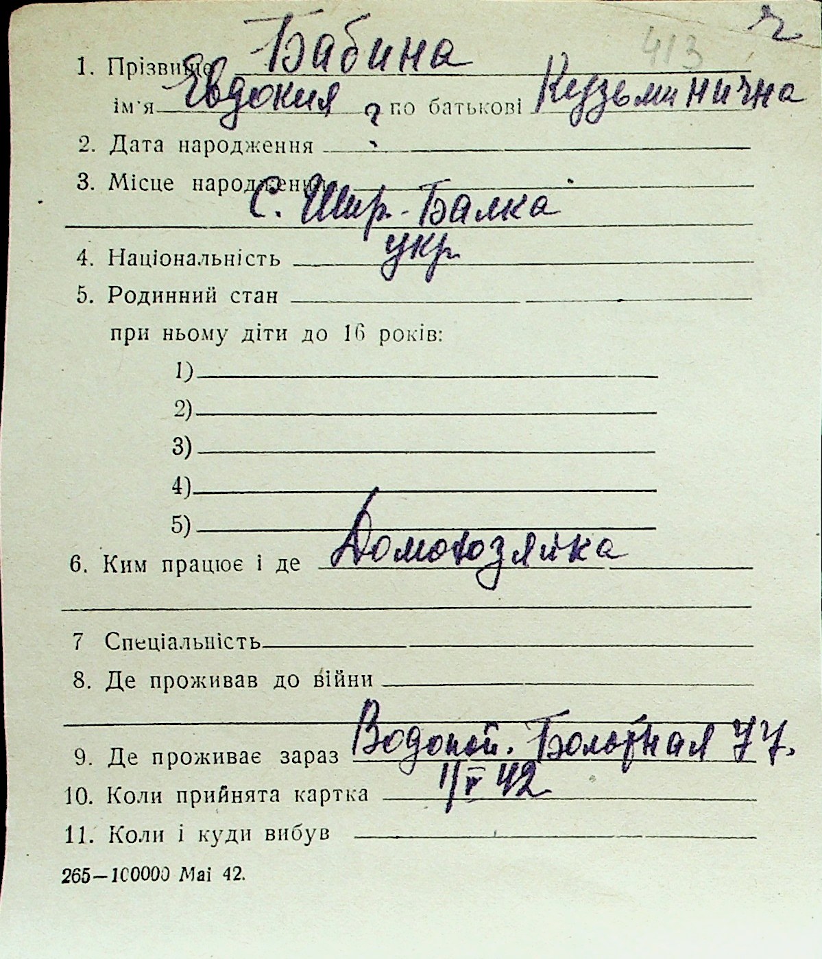 ◦ ◦ Перелік карток на осіб, які мешкали у м. Миколаїв у період окупації 1941–1944 років