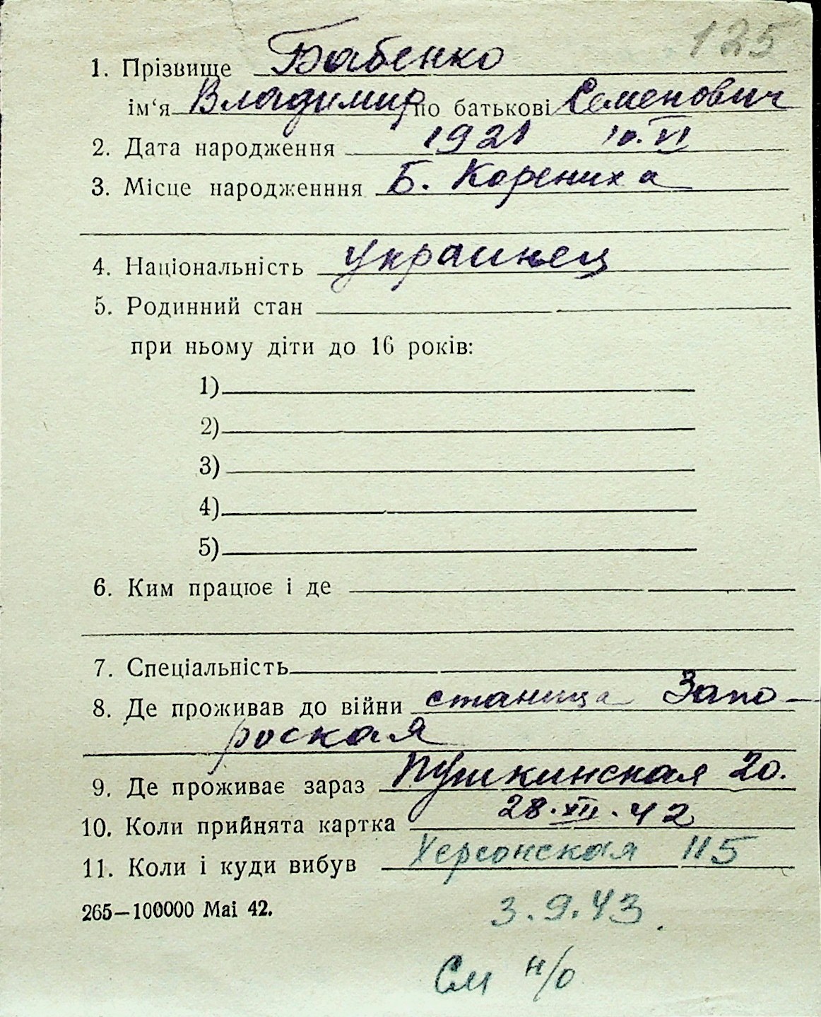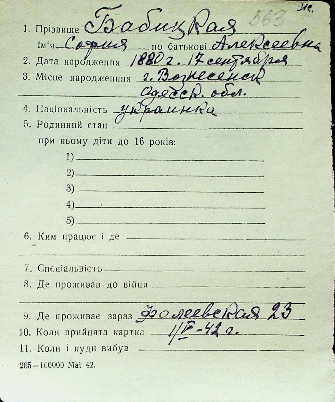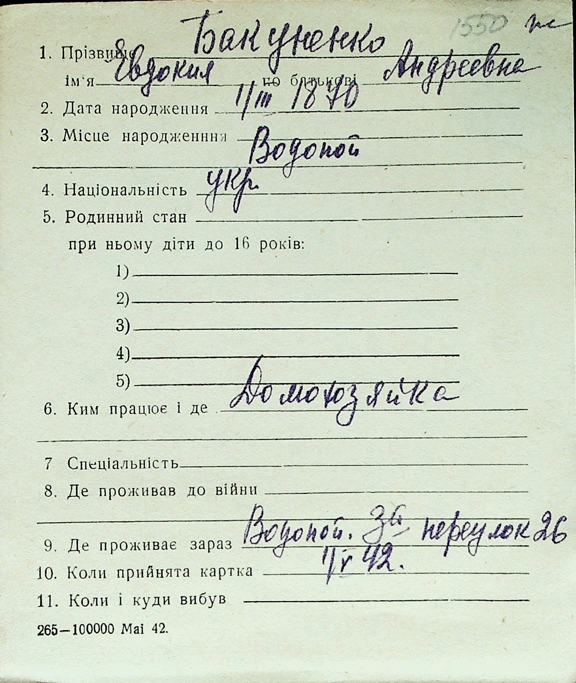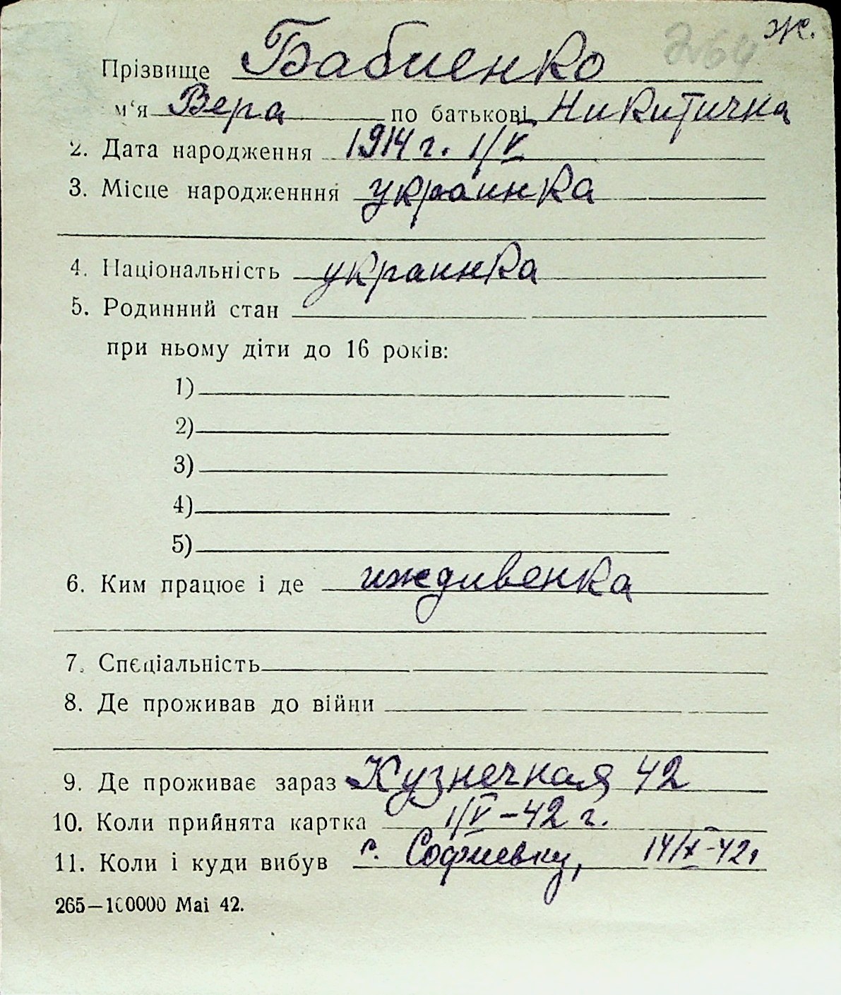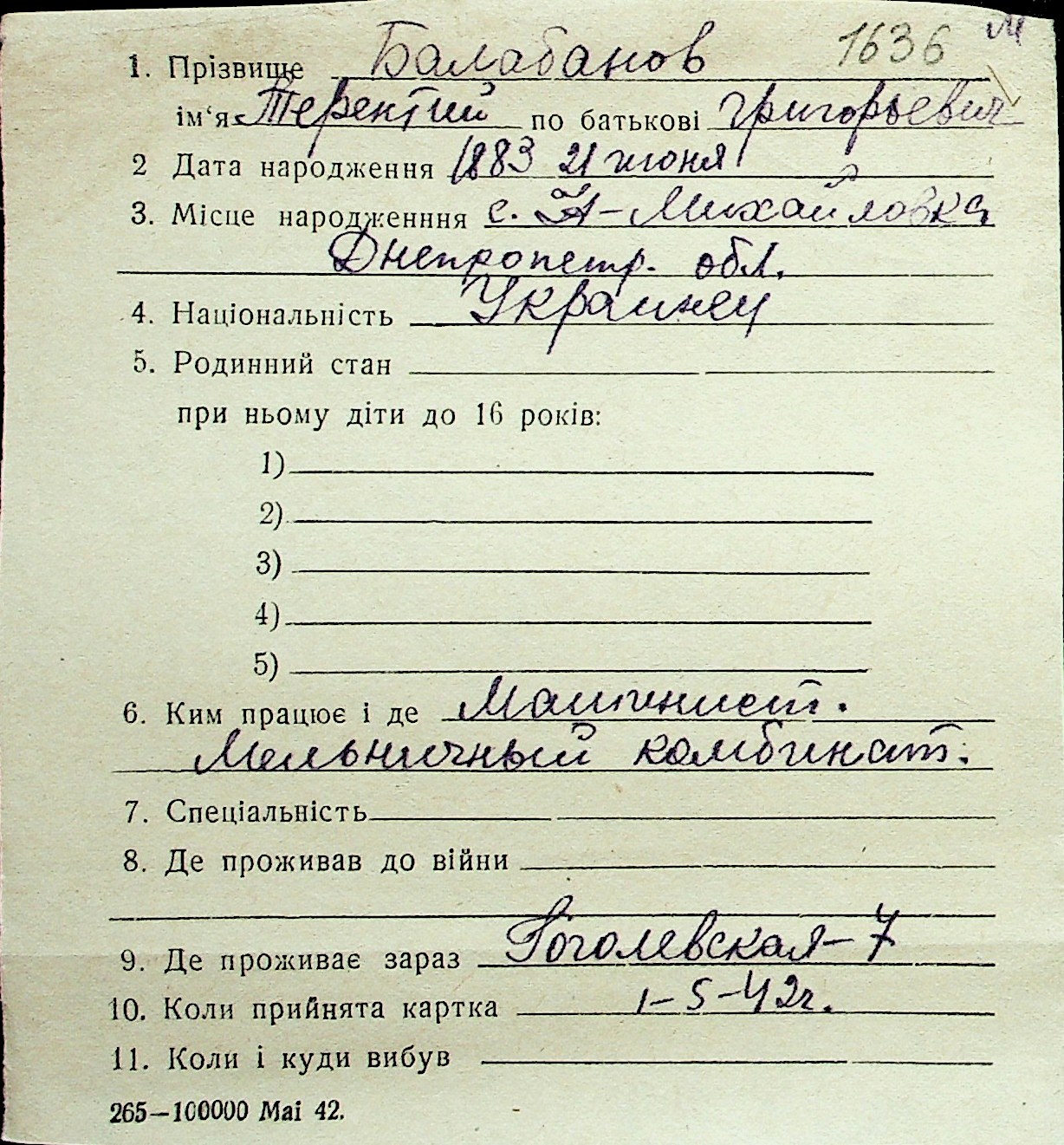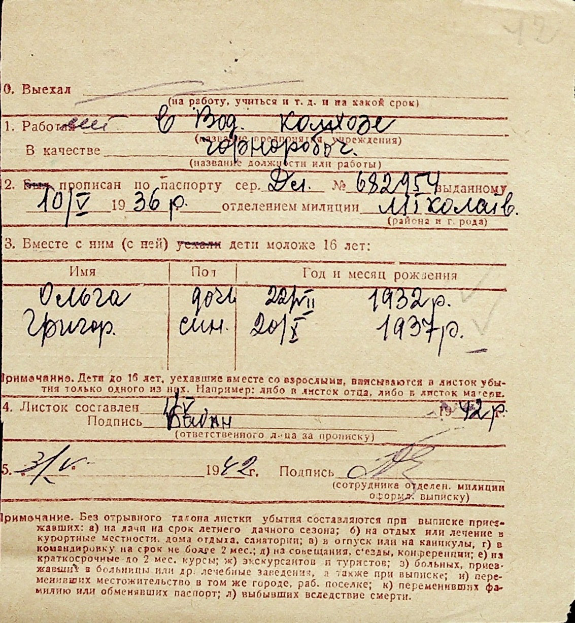 ◦ ◦ Перелік карток на осіб, які мешкали у м. Миколаїв у період окупації 1941–1944 років