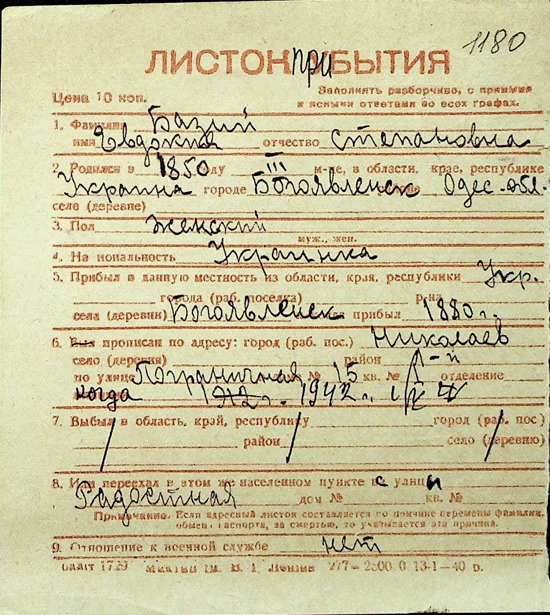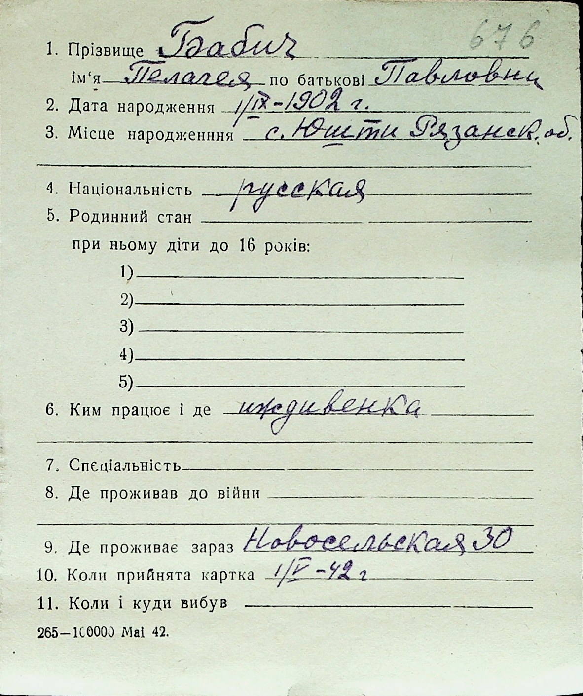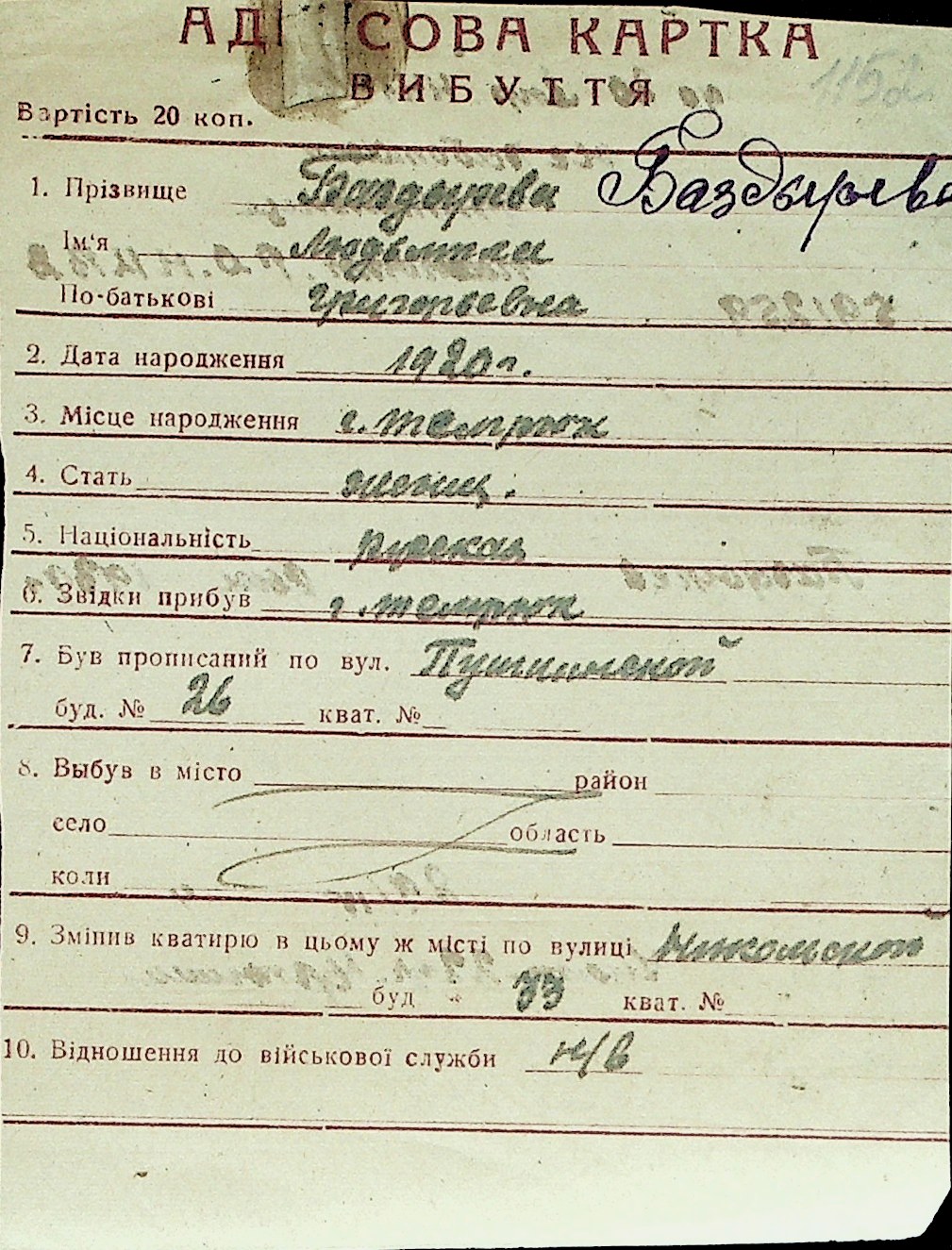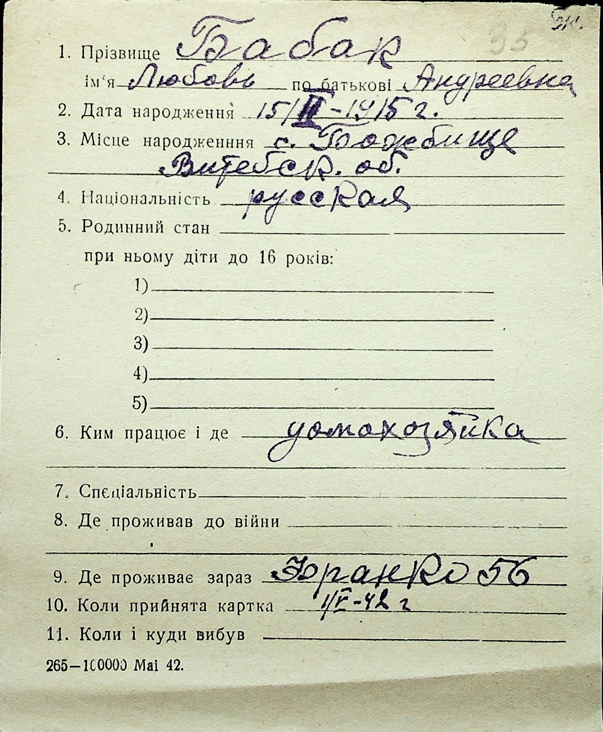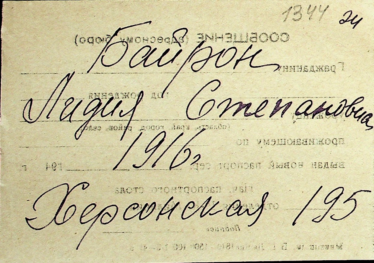 ◦ ◦ Перелік карток на осіб, які мешкали у м. Миколаїв у період окупації 1941–1944 років