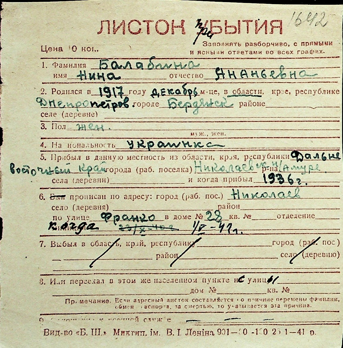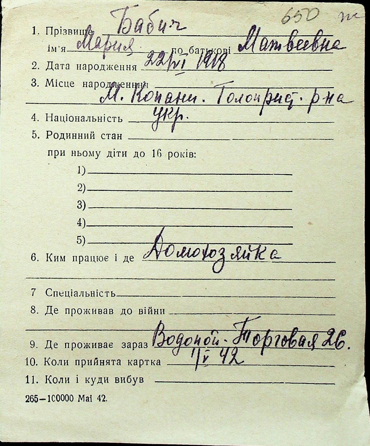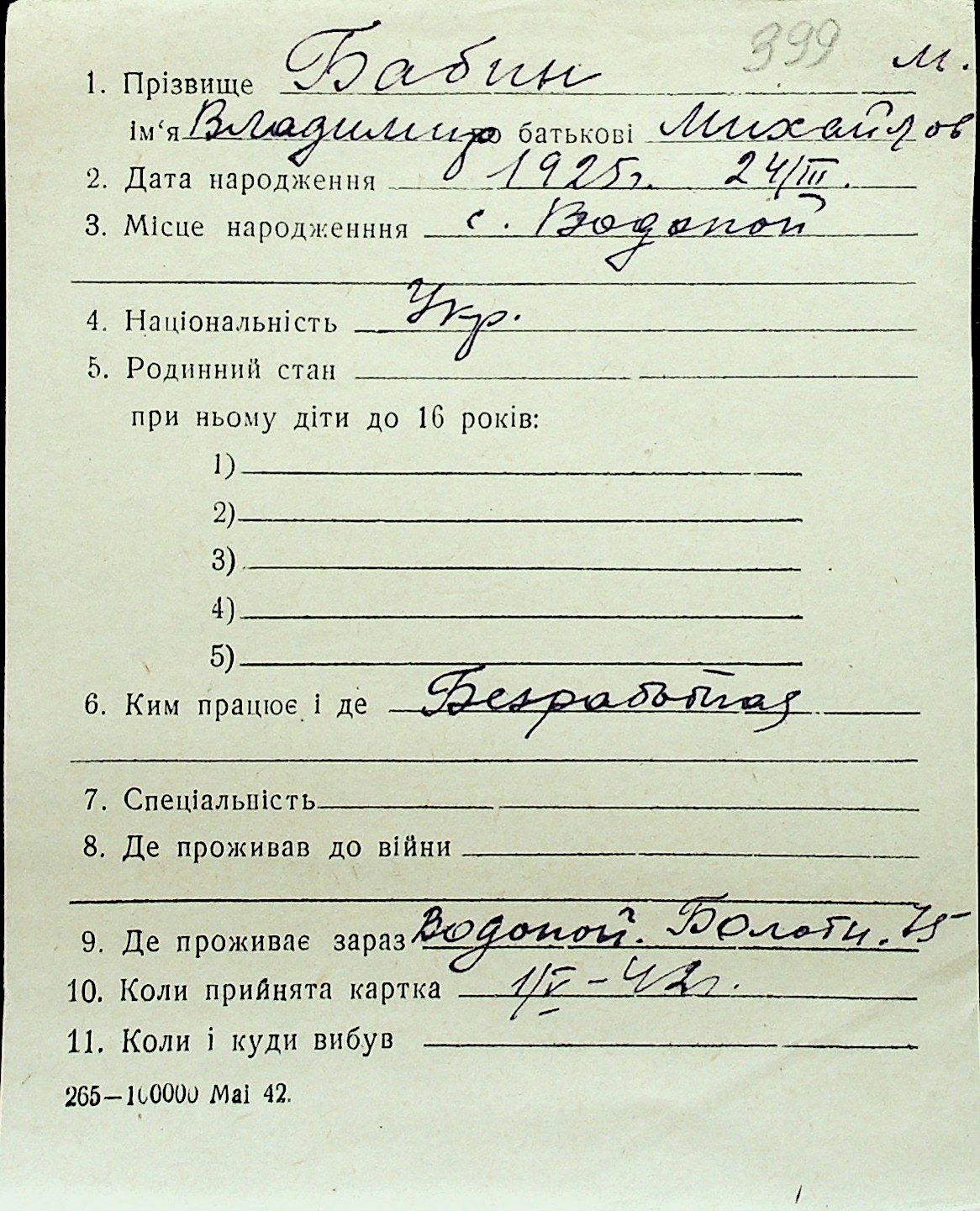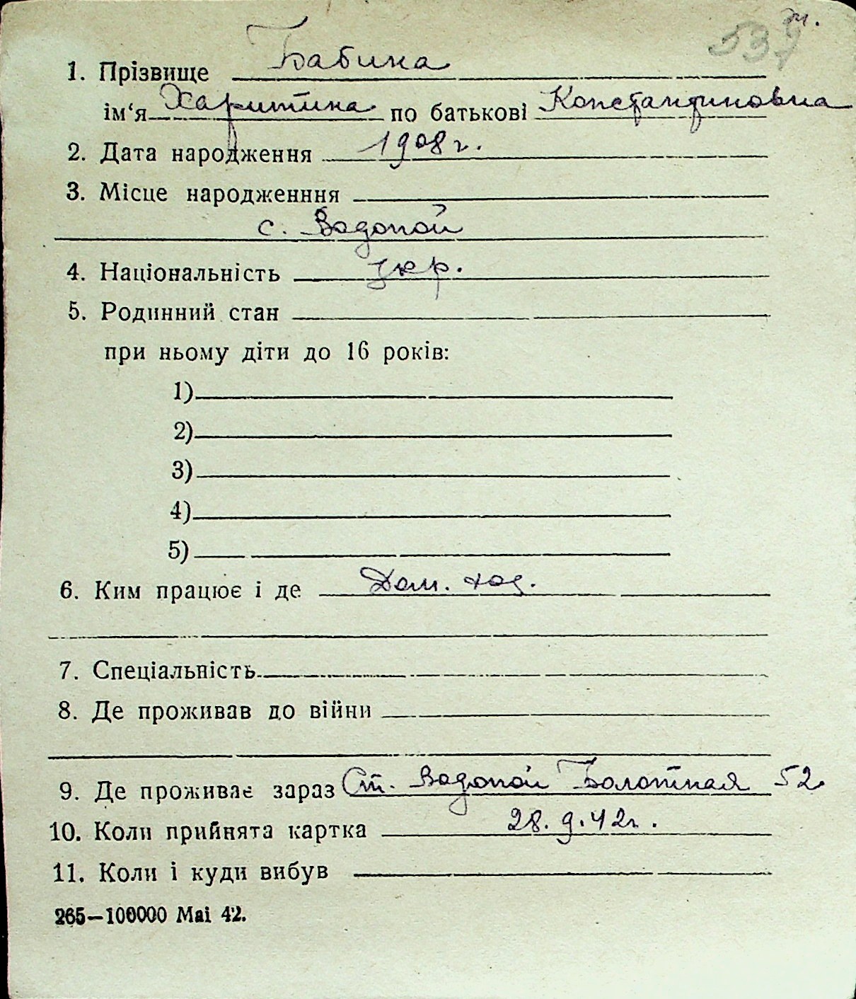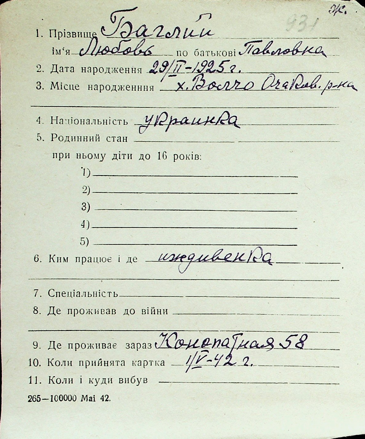 ◦ ◦ Перелік карток на осіб, які мешкали у м. Миколаїв у період окупації 1941–1944 років