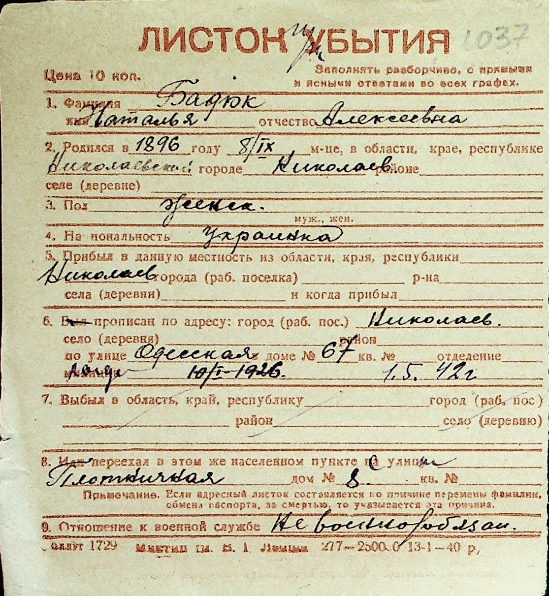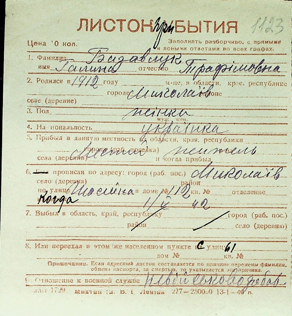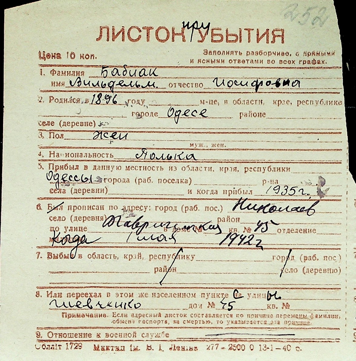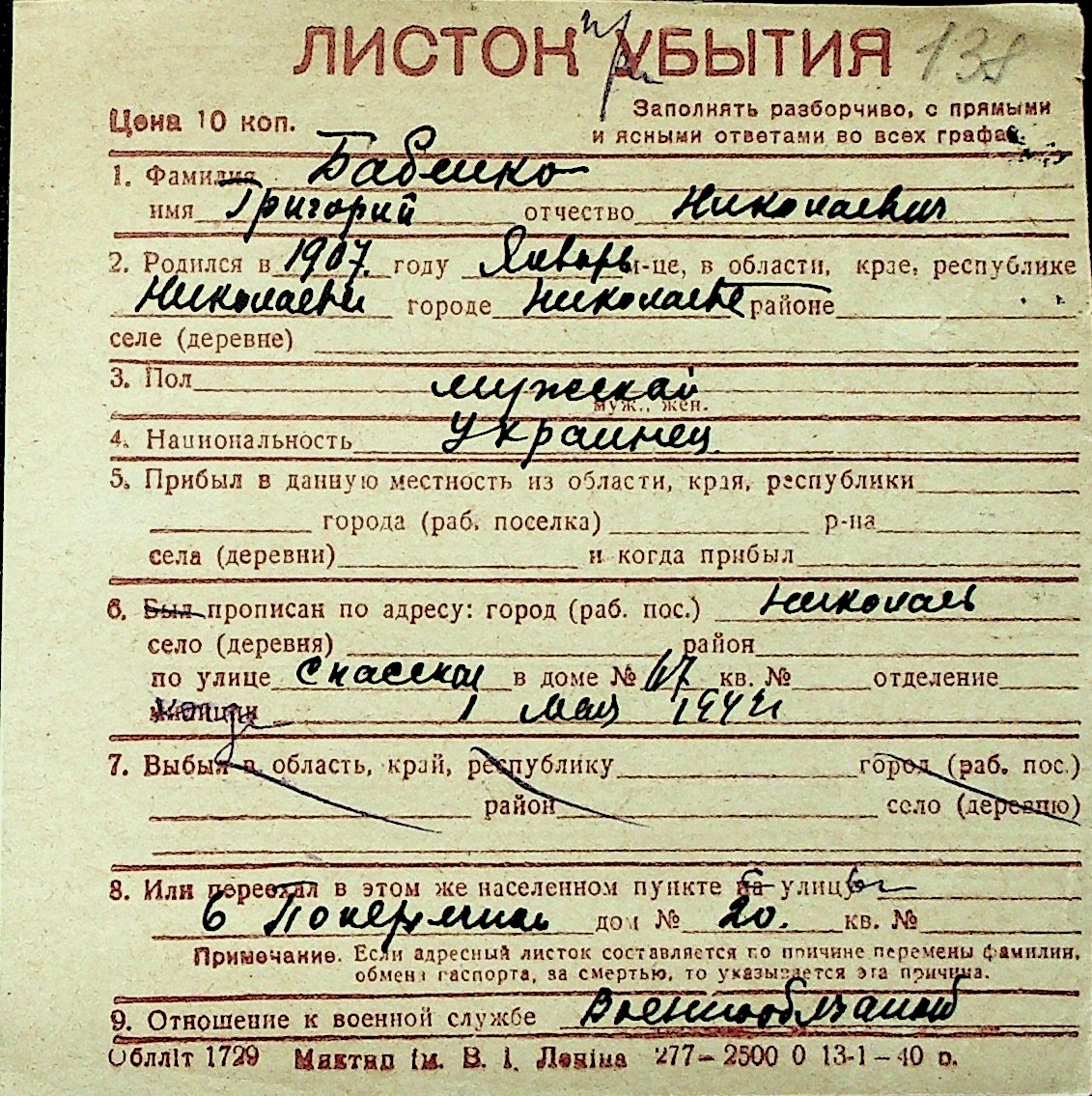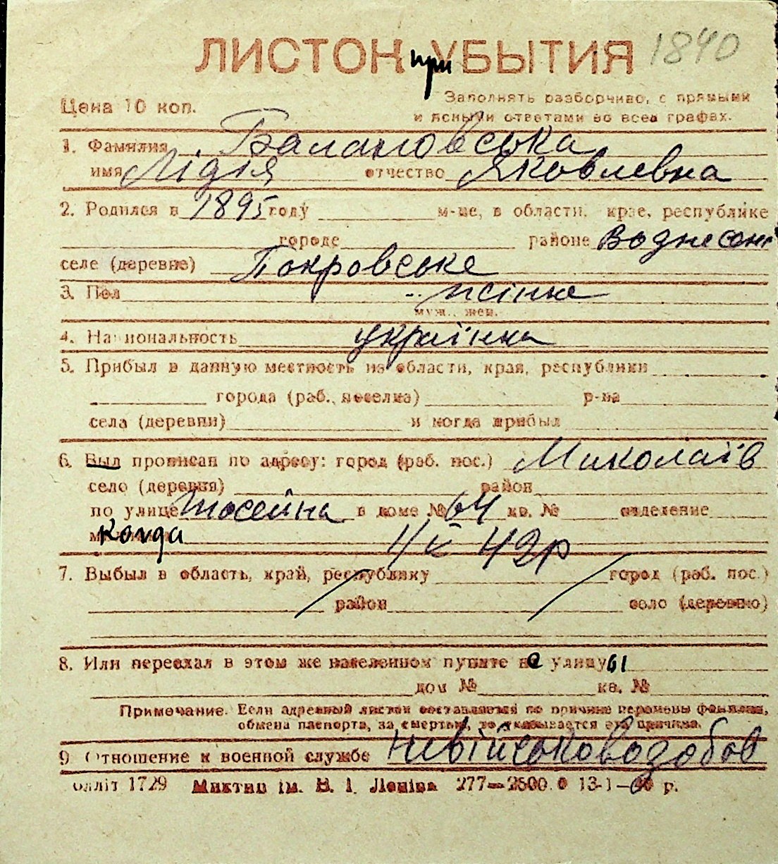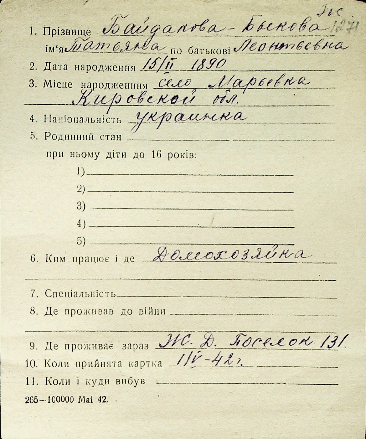 ◦ ◦ Перелік карток на осіб, які мешкали у м. Миколаїв у період окупації 1941–1944 років