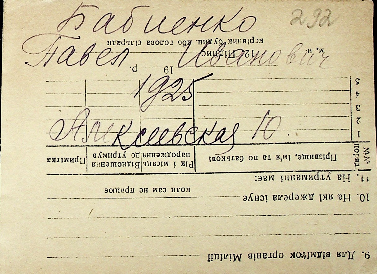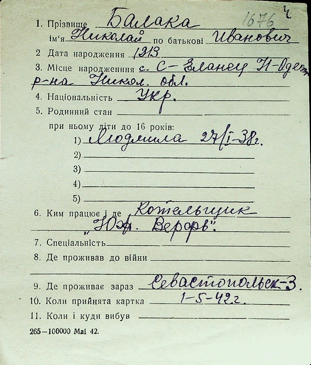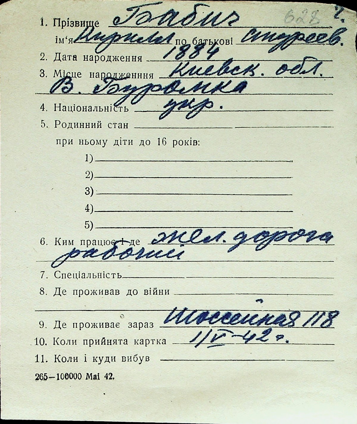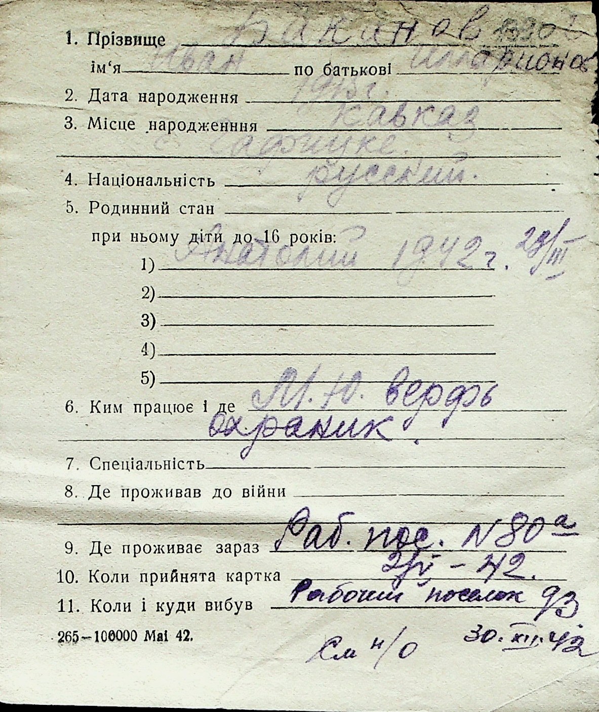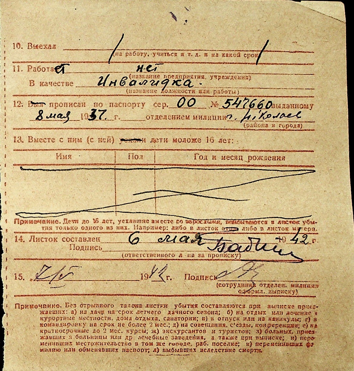 ◦ ◦ Перелік карток на осіб, які мешкали у м. Миколаїв у період окупації 1941–1944 років