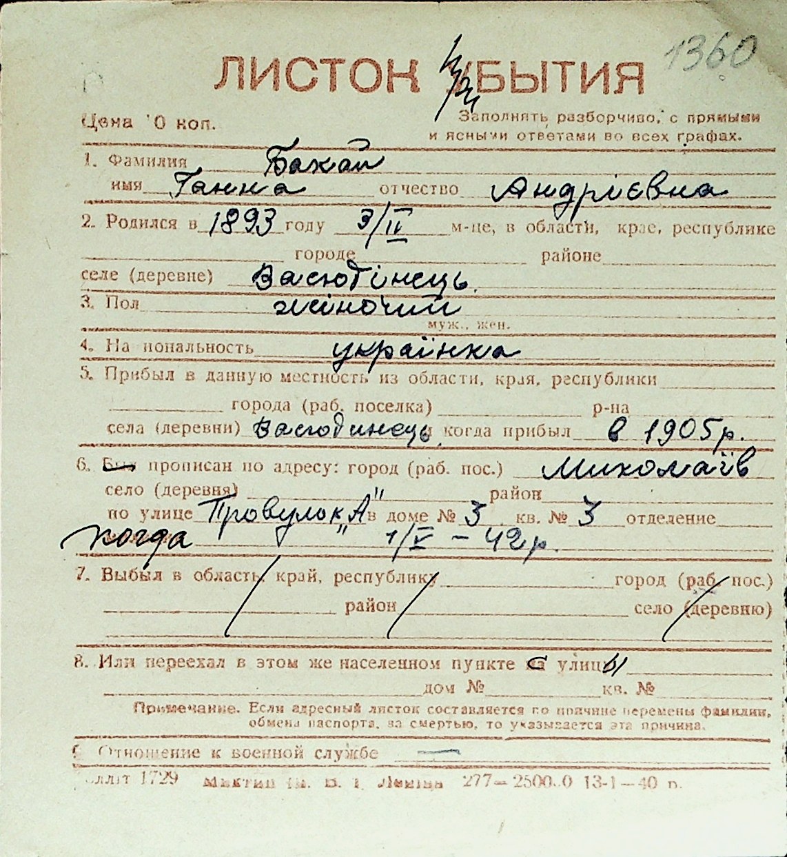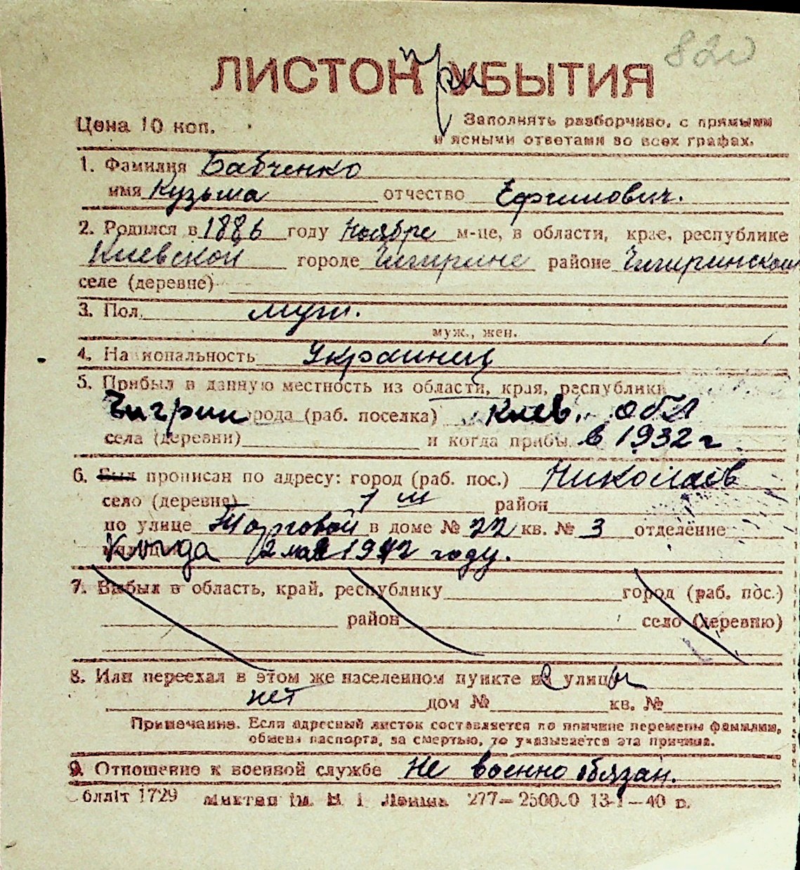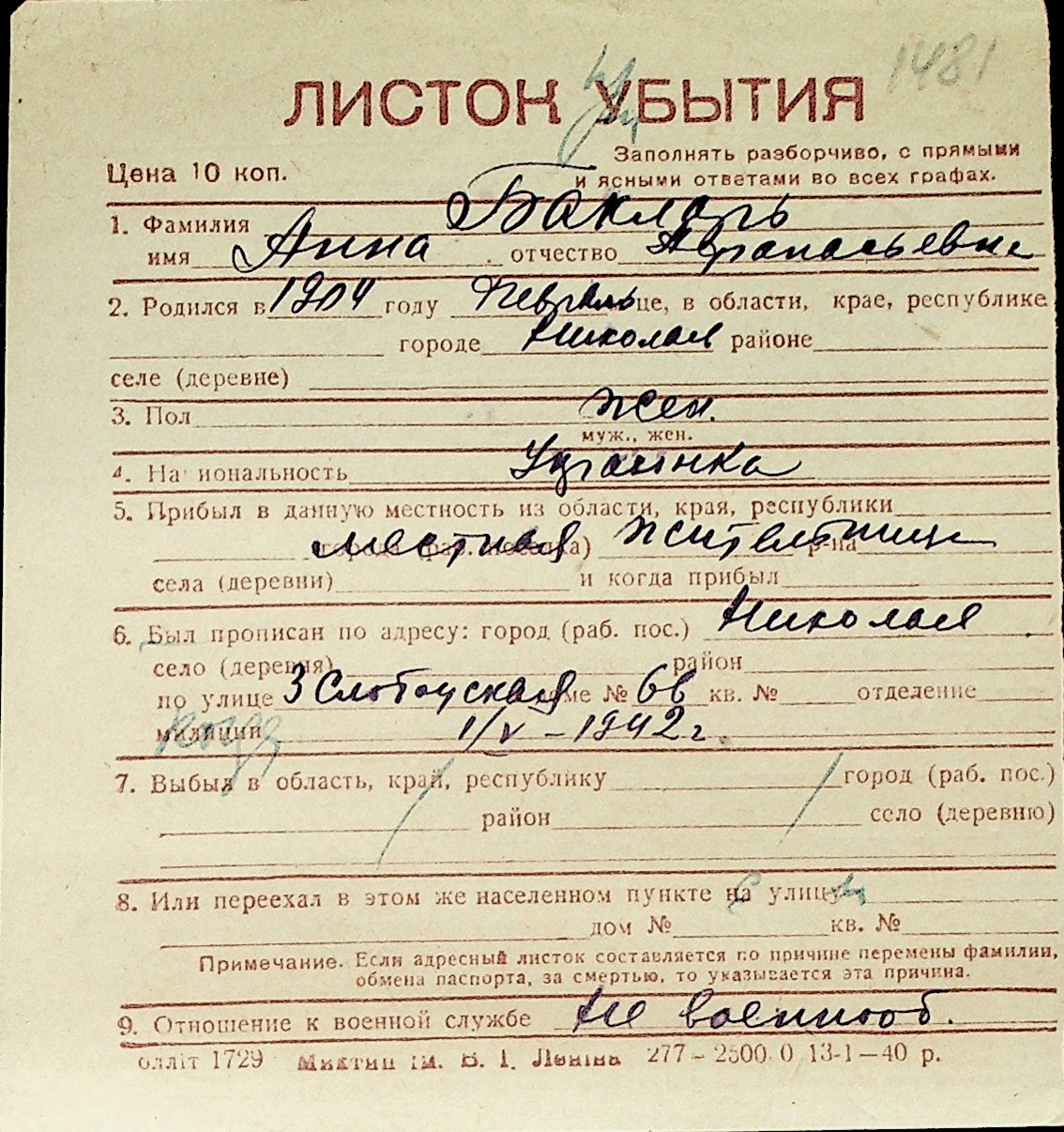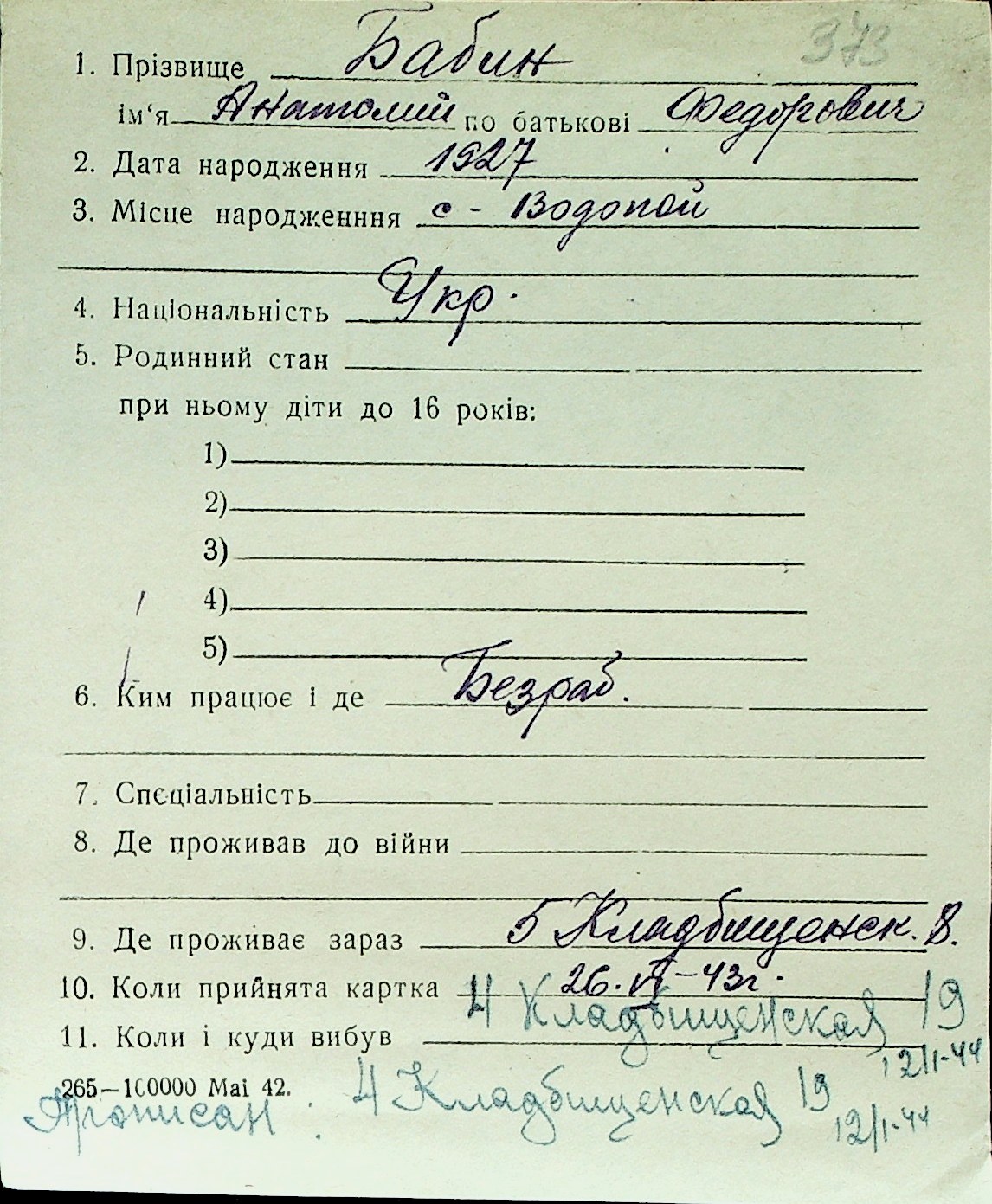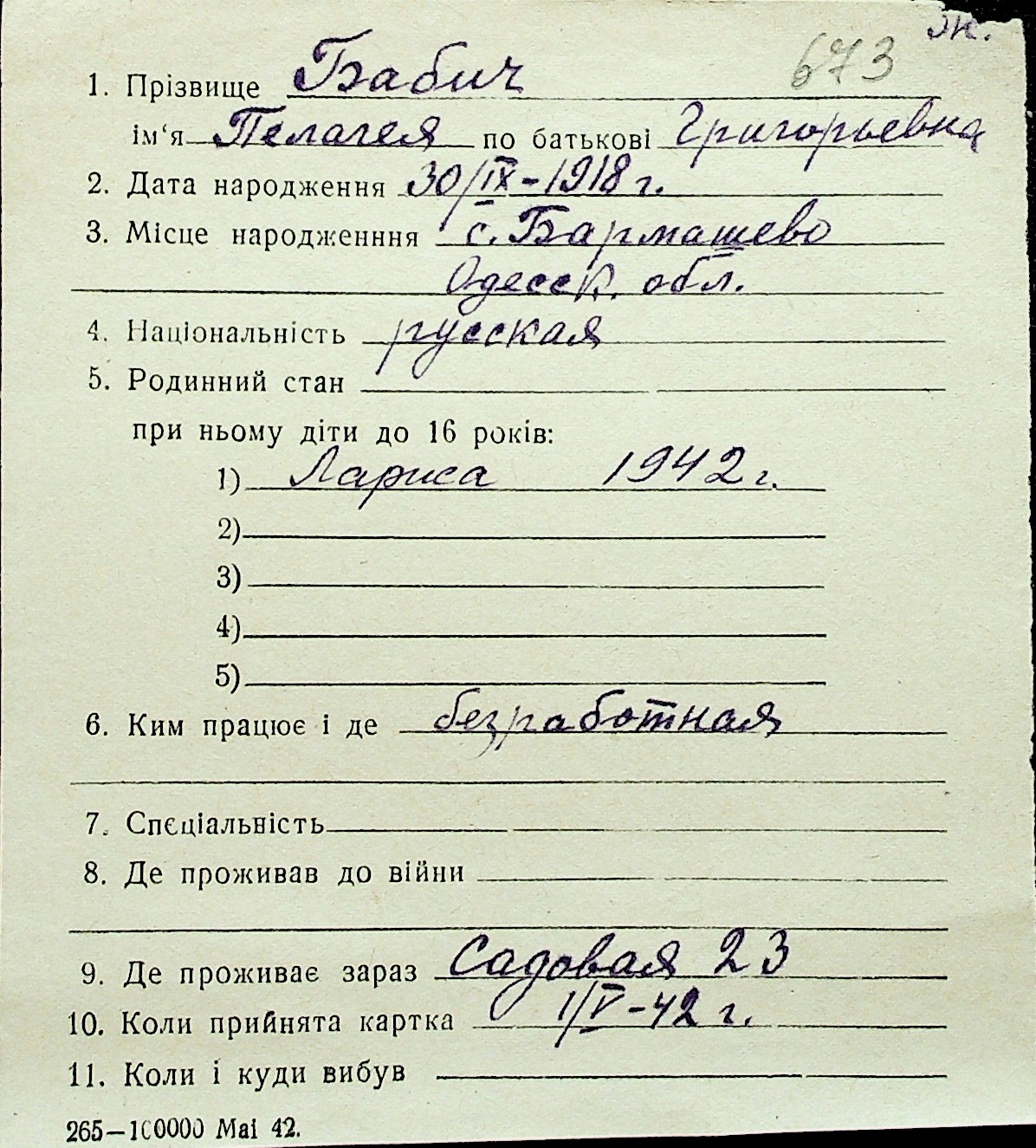 ◦ ◦ Перелік карток на осіб, які мешкали у м. Миколаїв у період окупації 1941–1944 років
