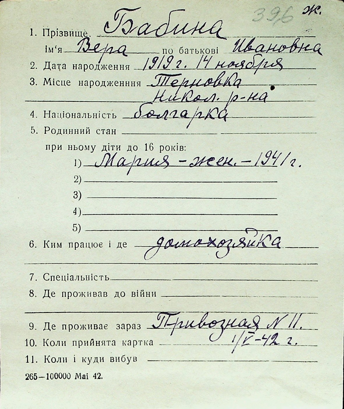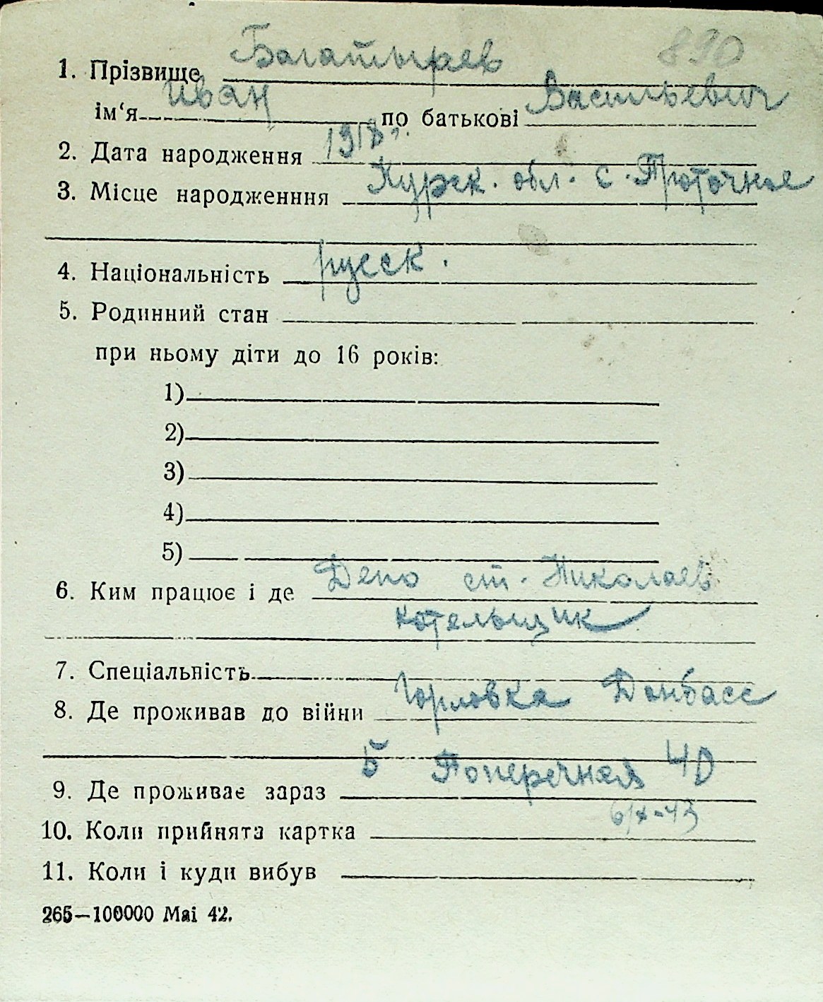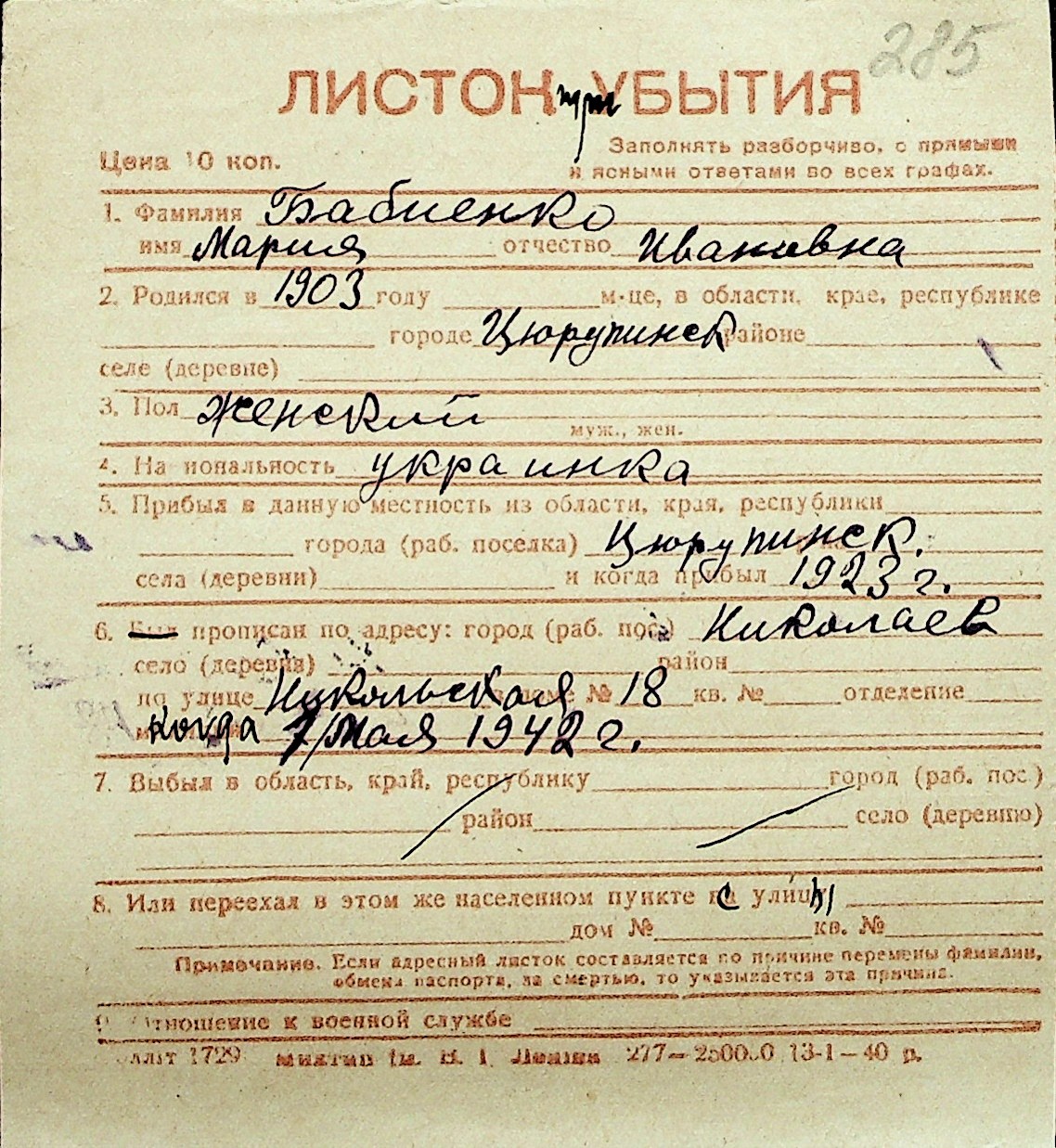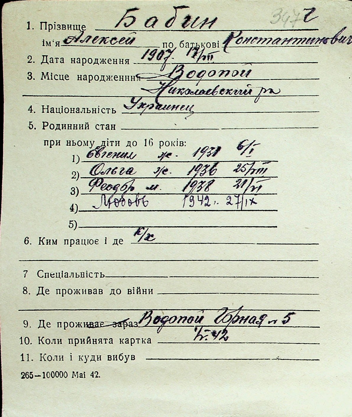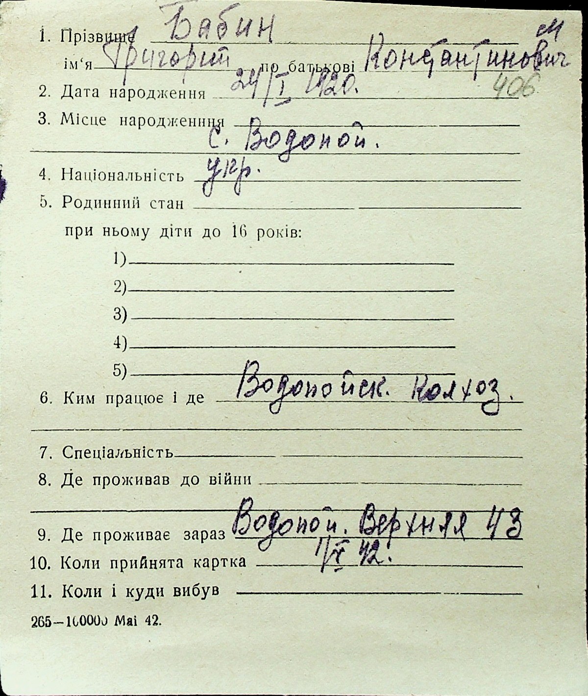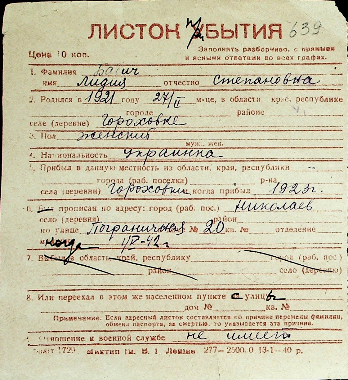 ◦ ◦ Перелік карток на осіб, які мешкали у м. Миколаїв у період окупації 1941–1944 років