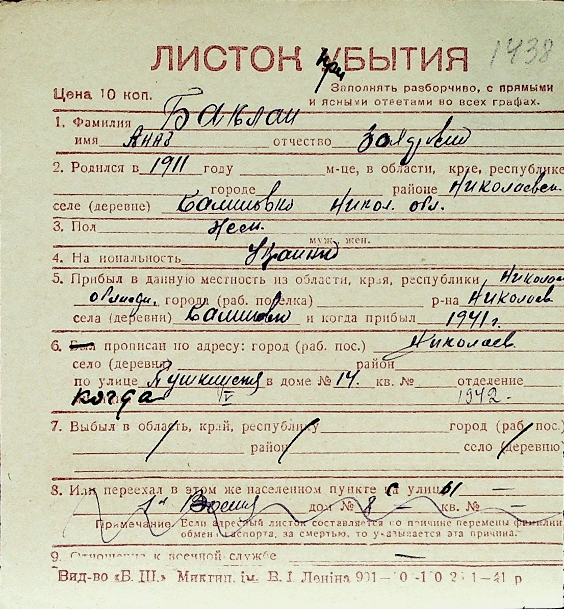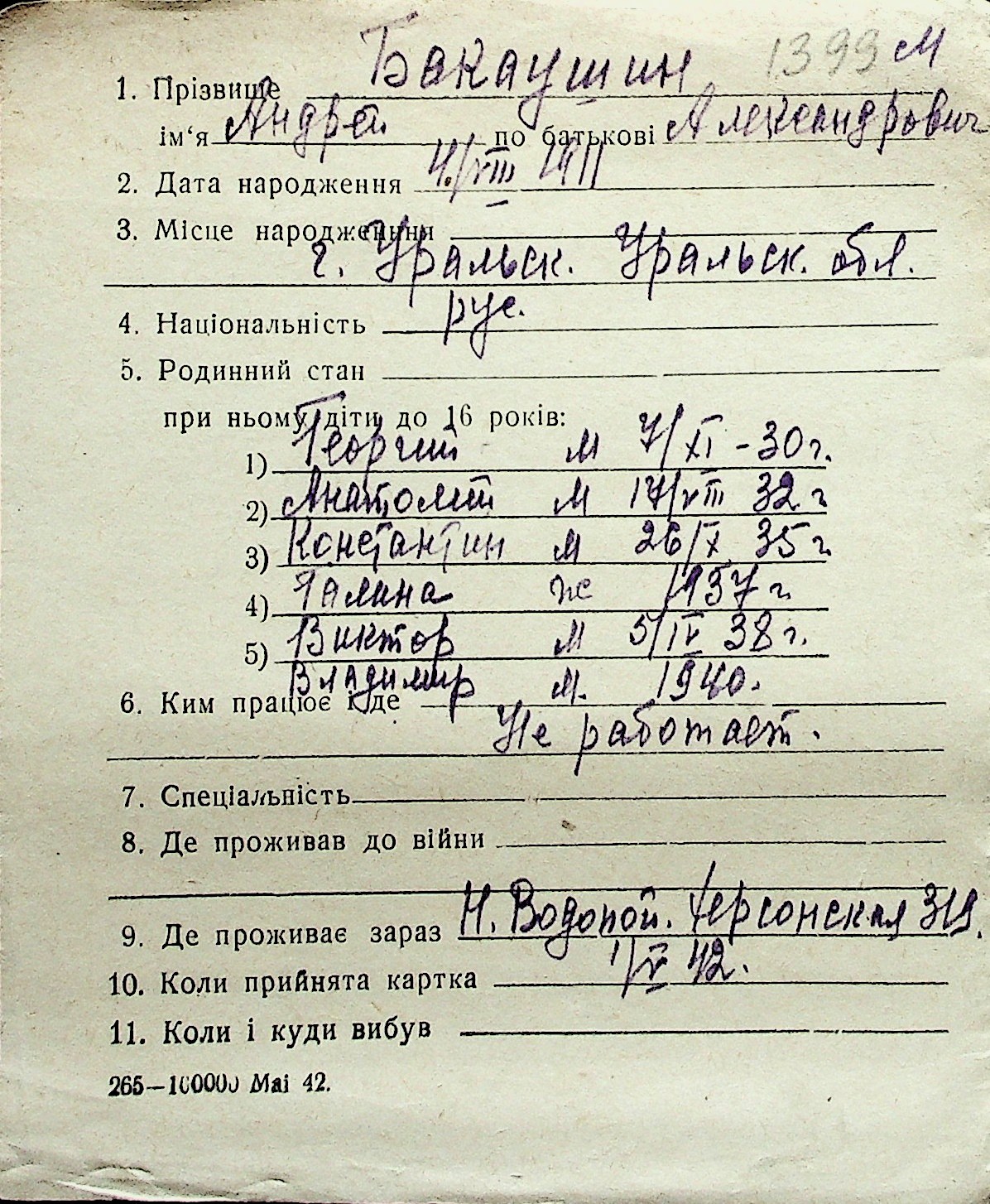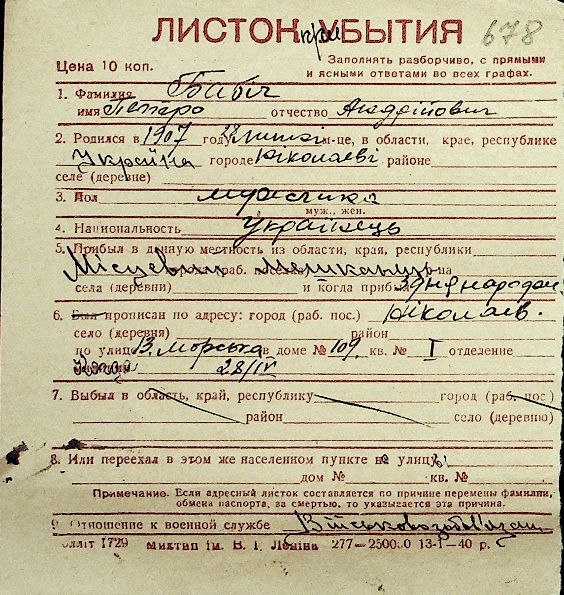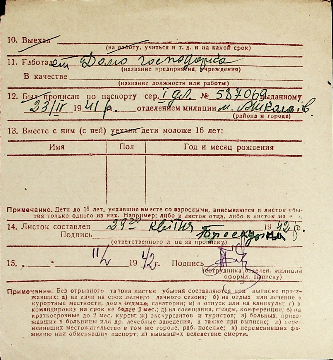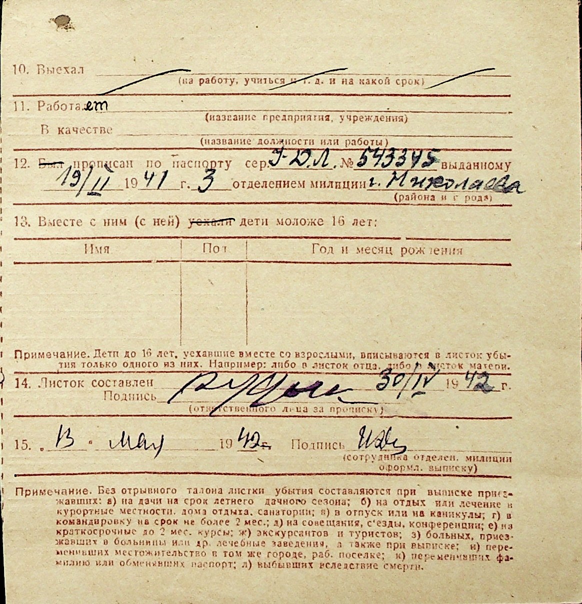 ◦ ◦ Перелік карток на осіб, які мешкали у м. Миколаїв у період окупації 1941–1944 років