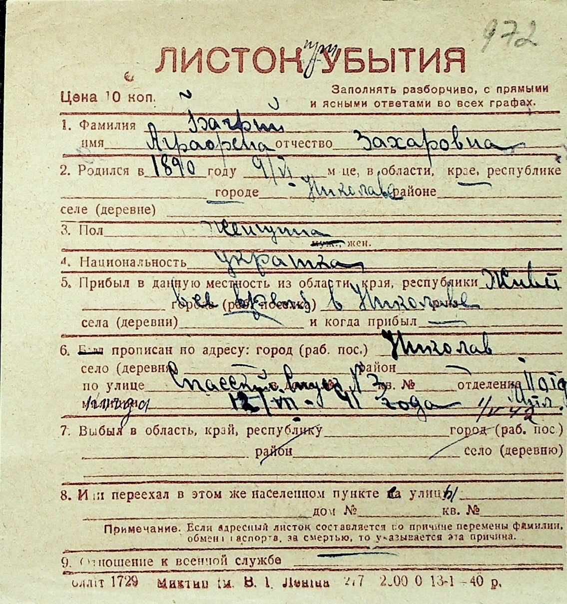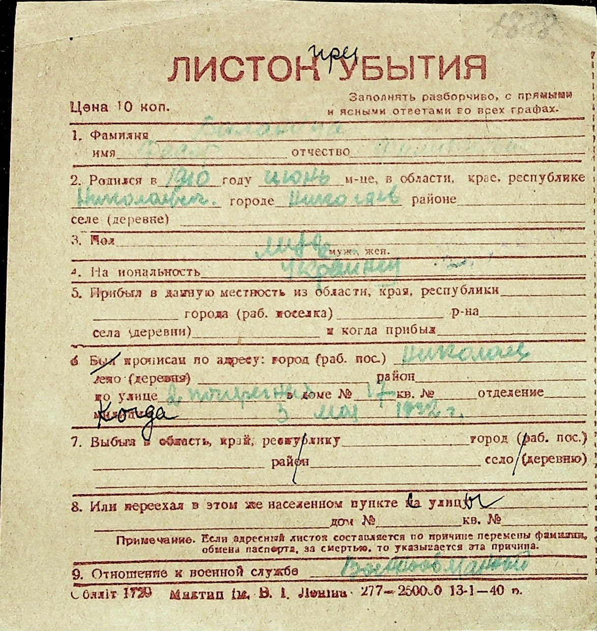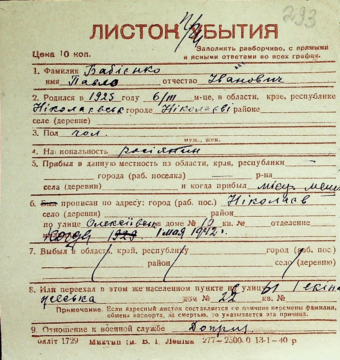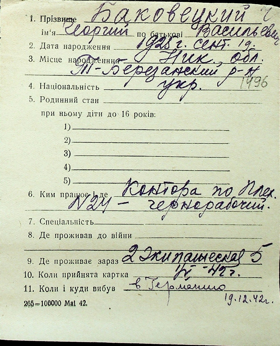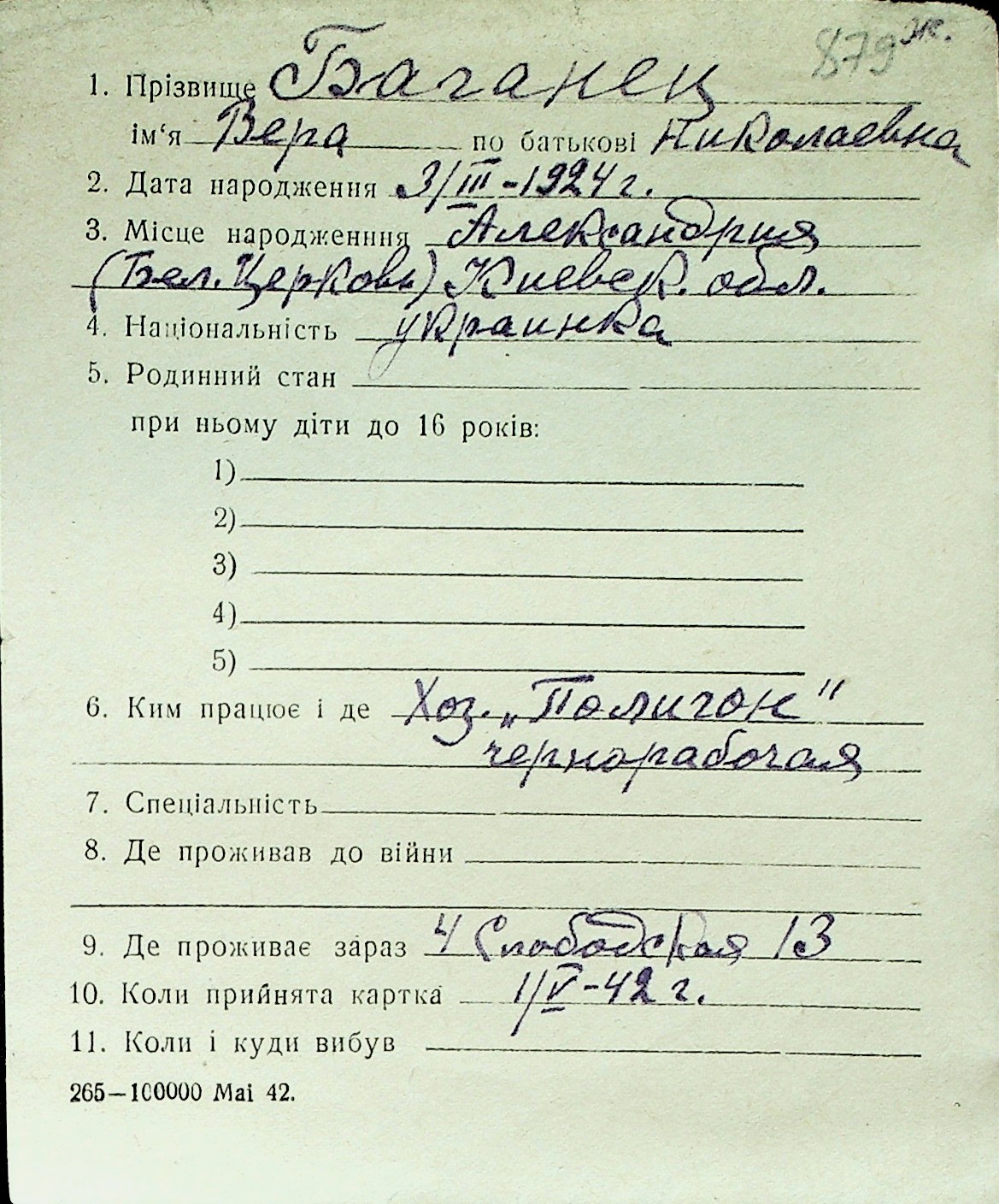 ◦ ◦ Перелік карток на осіб, які мешкали у м. Миколаїв у період окупації 1941–1944 років