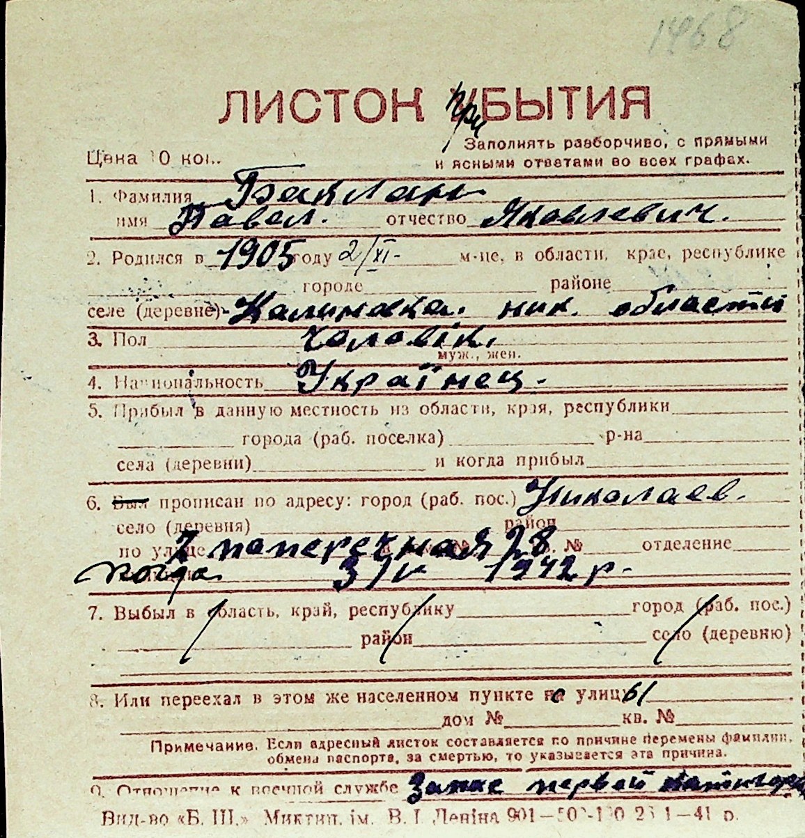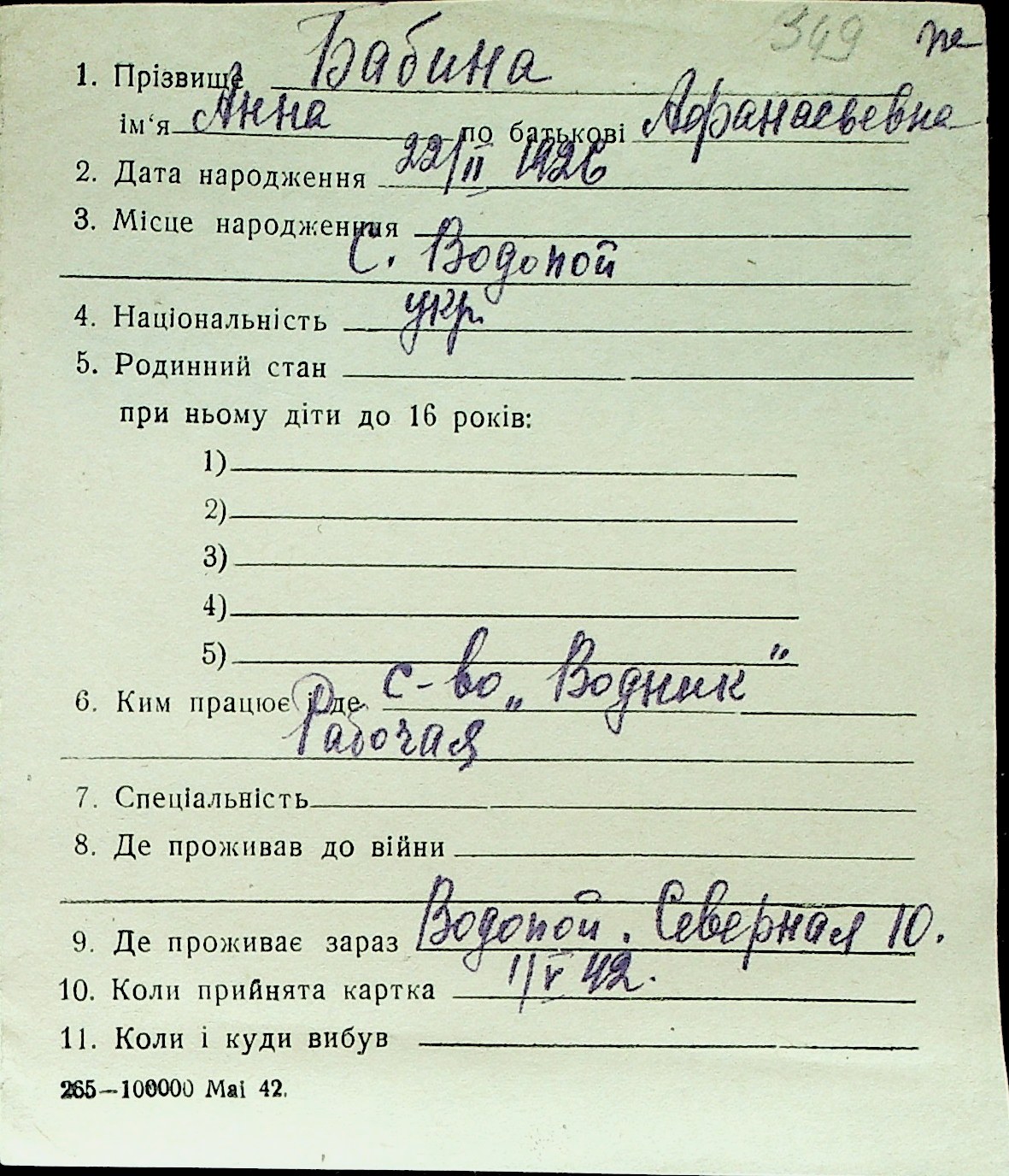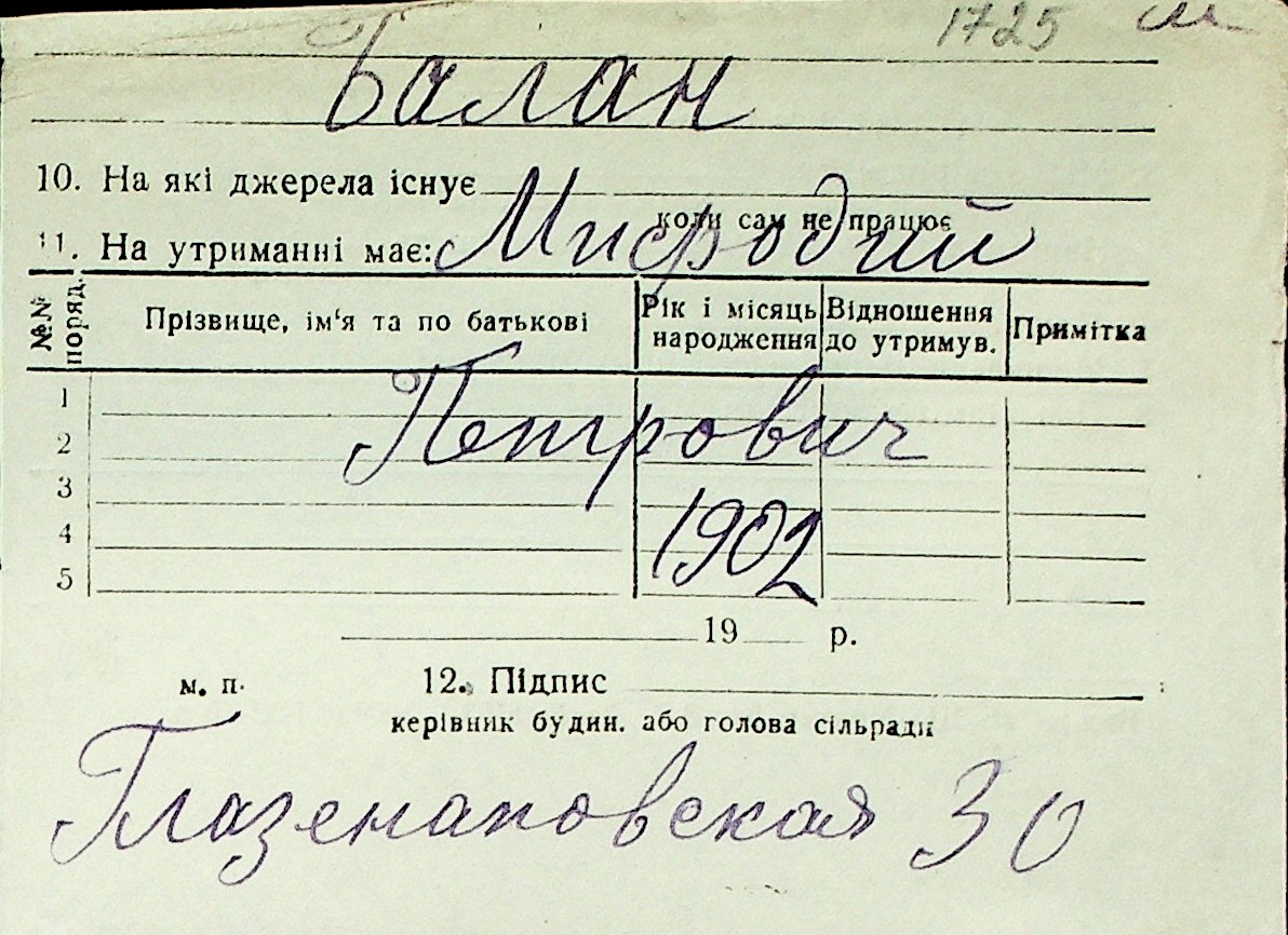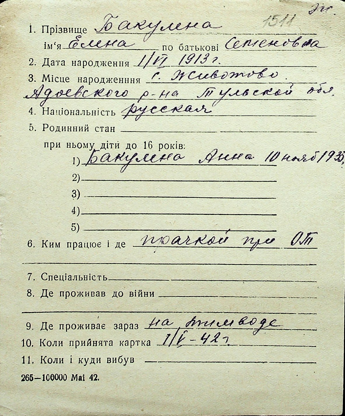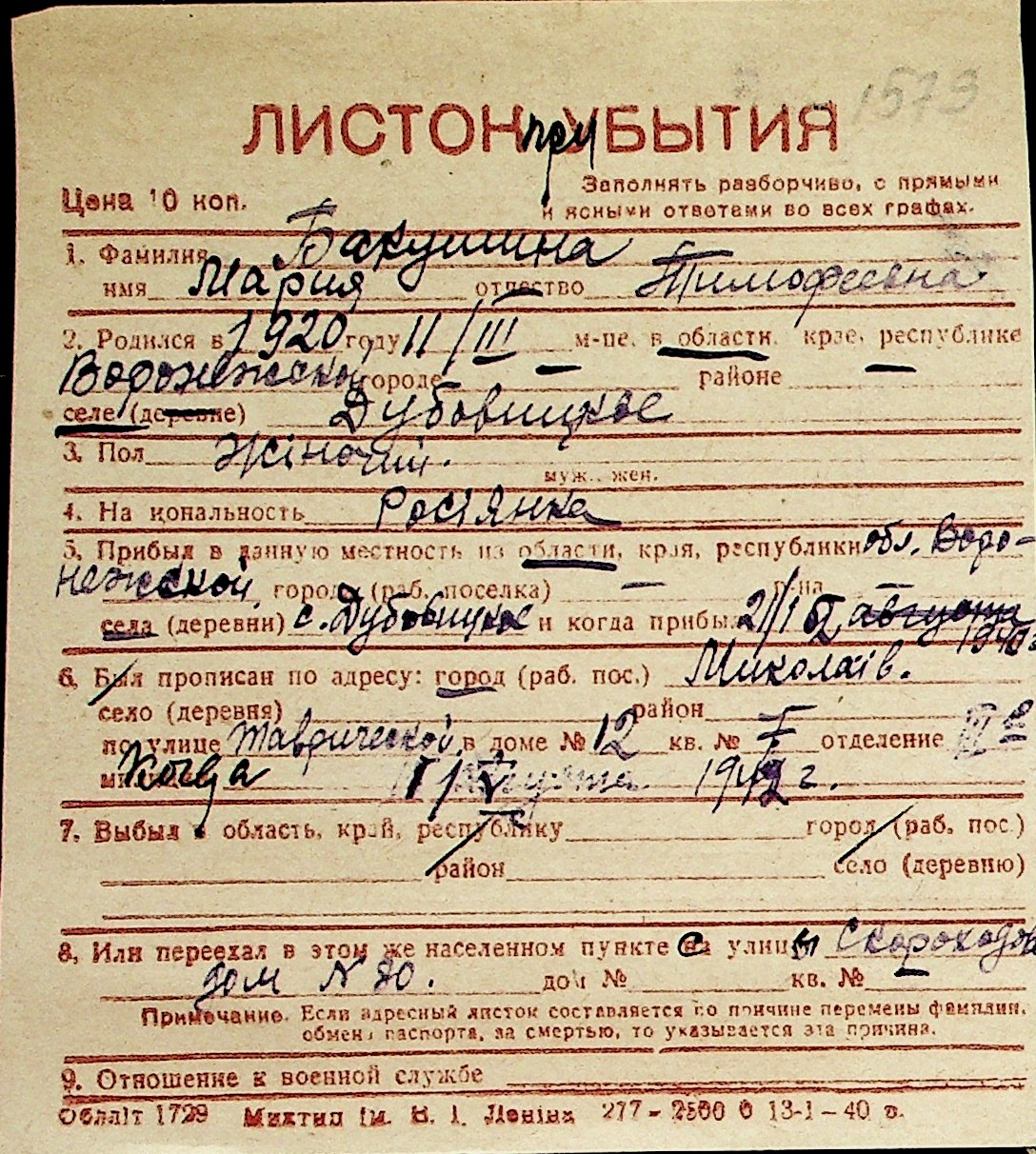 ◦ ◦ Перелік карток на осіб, які мешкали у м. Миколаїв у період окупації 1941–1944 років