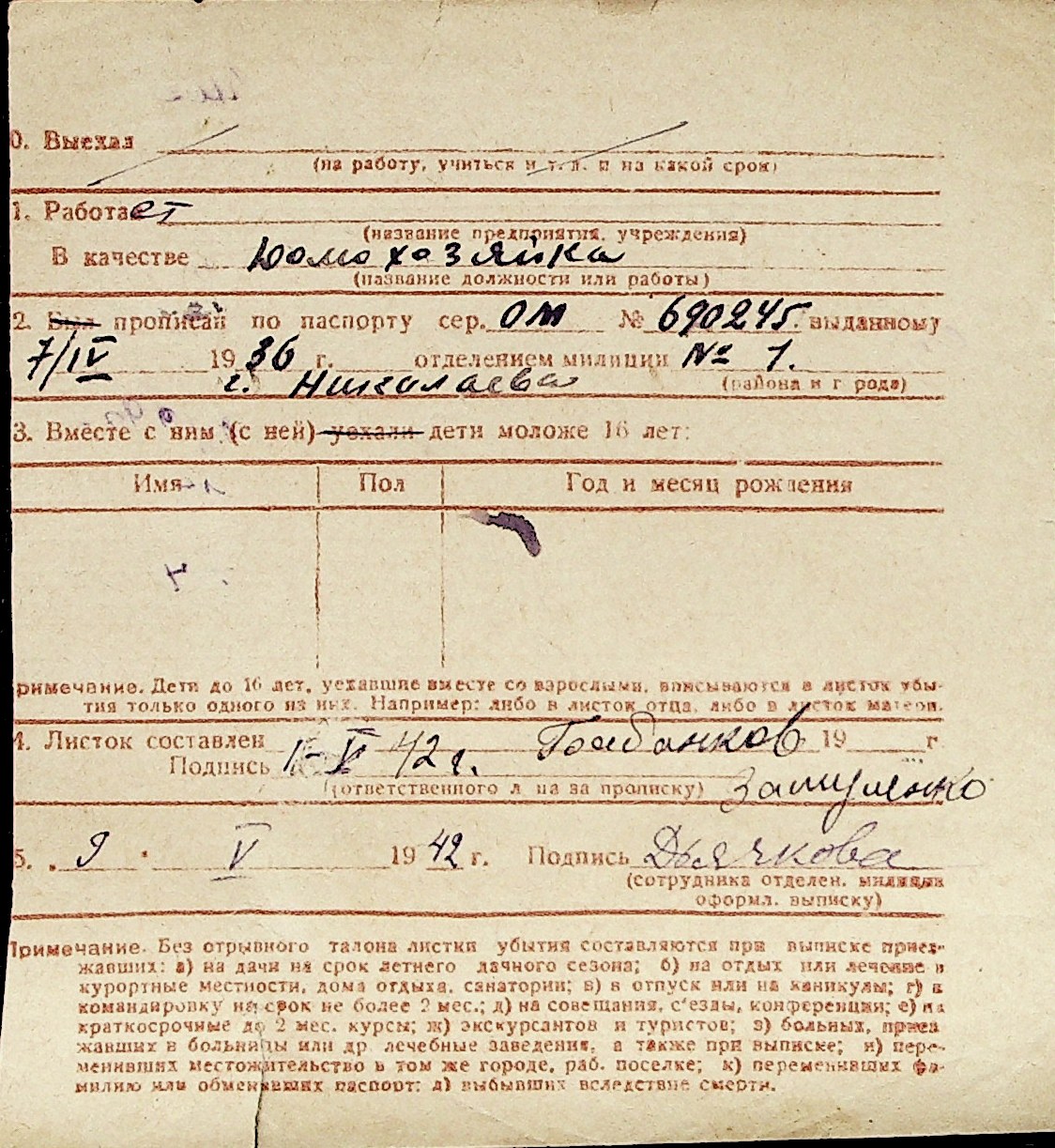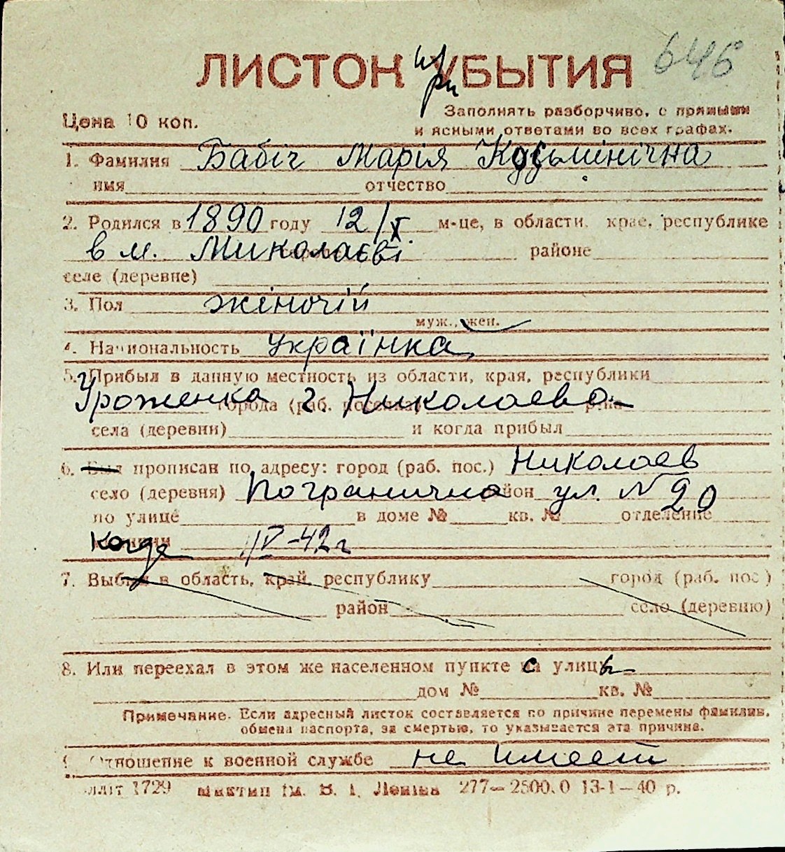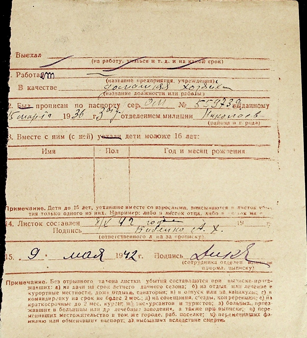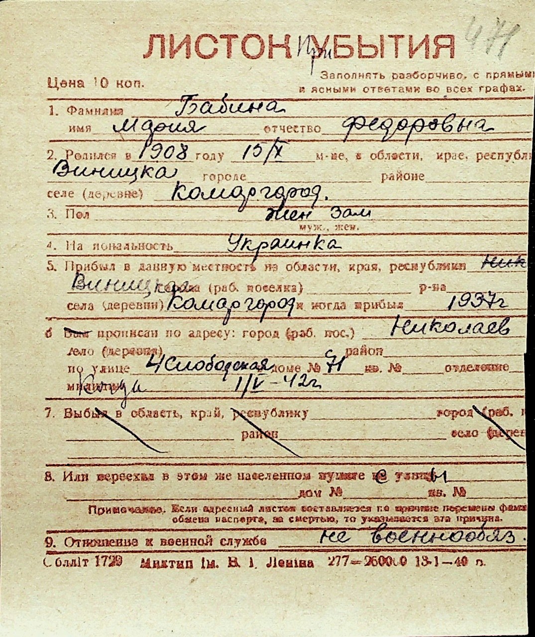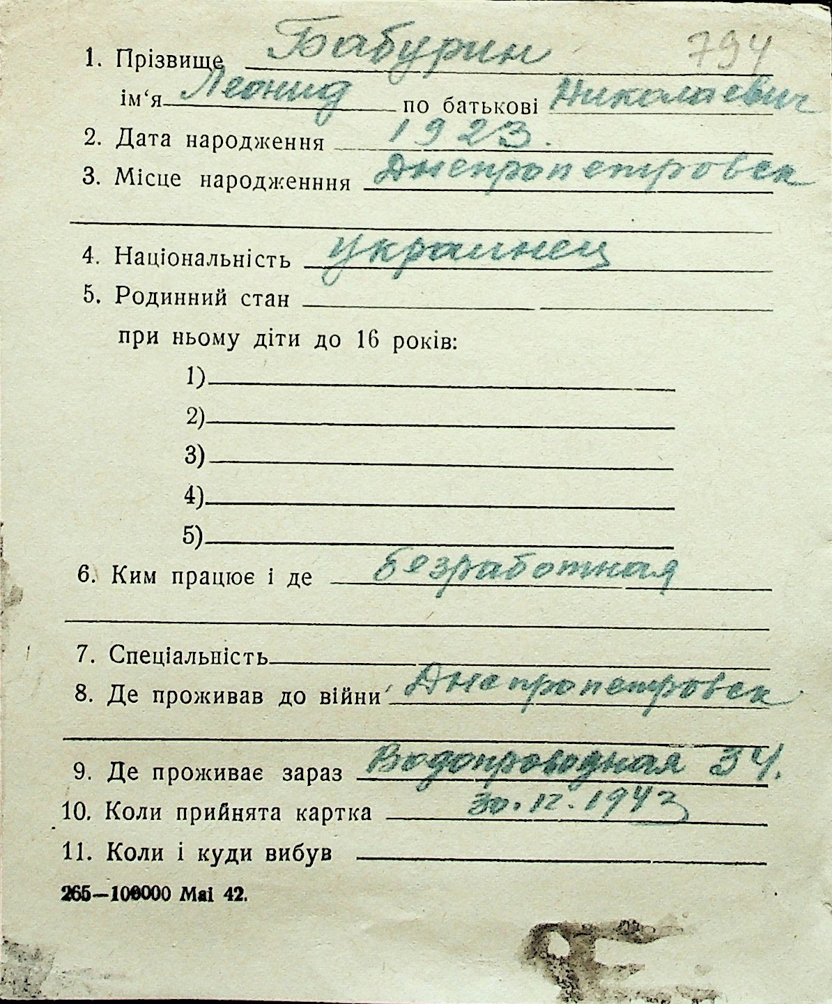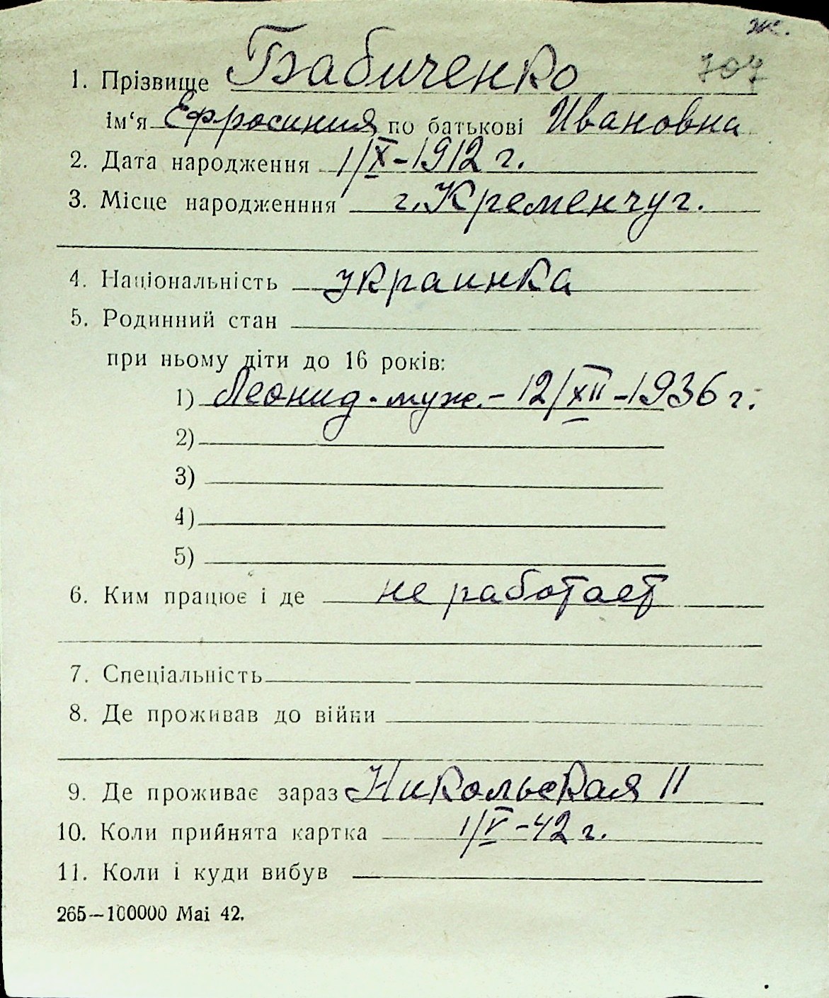 ◦ ◦ Перелік карток на осіб, які мешкали у м. Миколаїв у період окупації 1941–1944 років