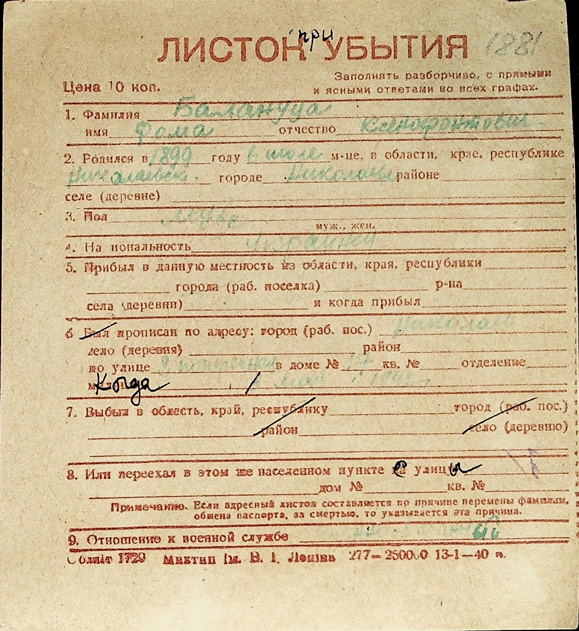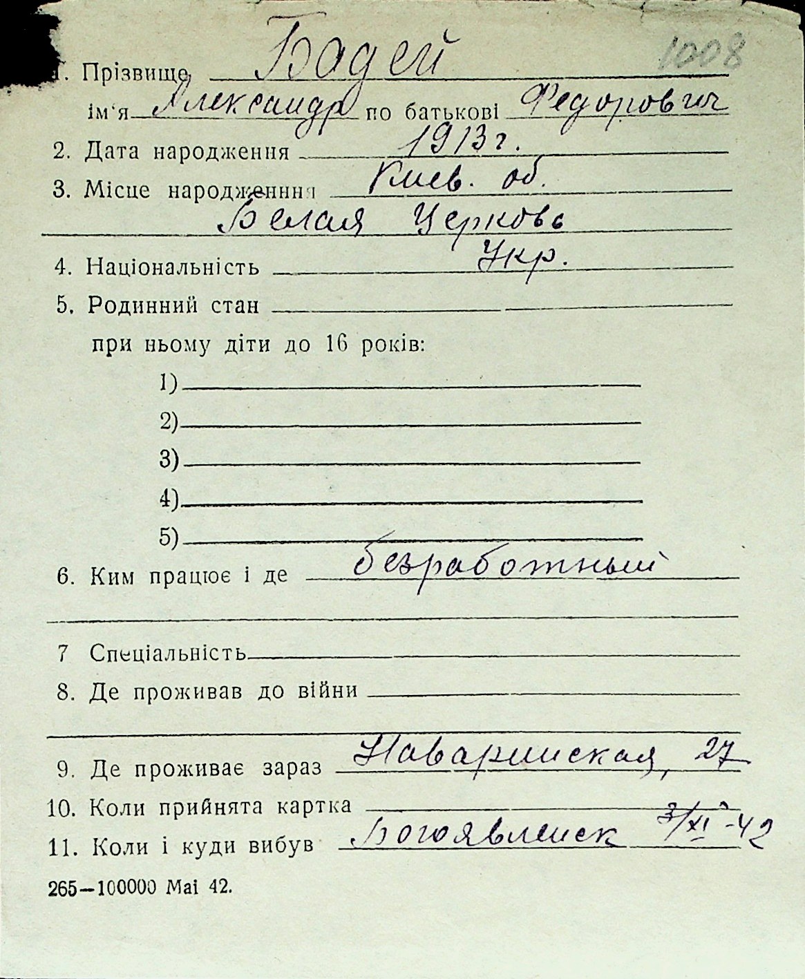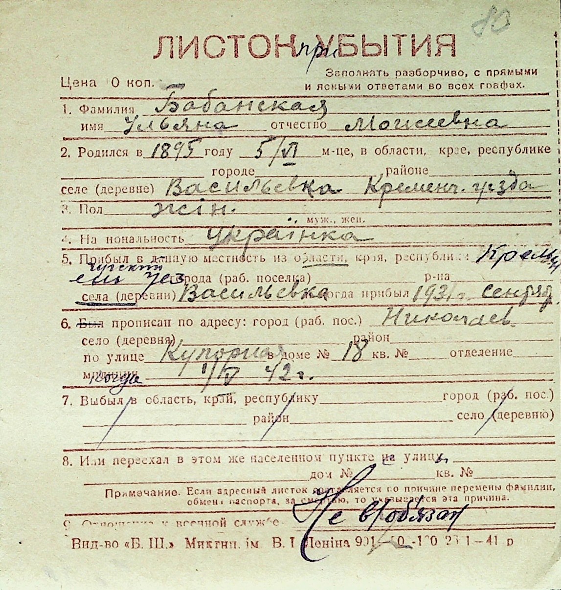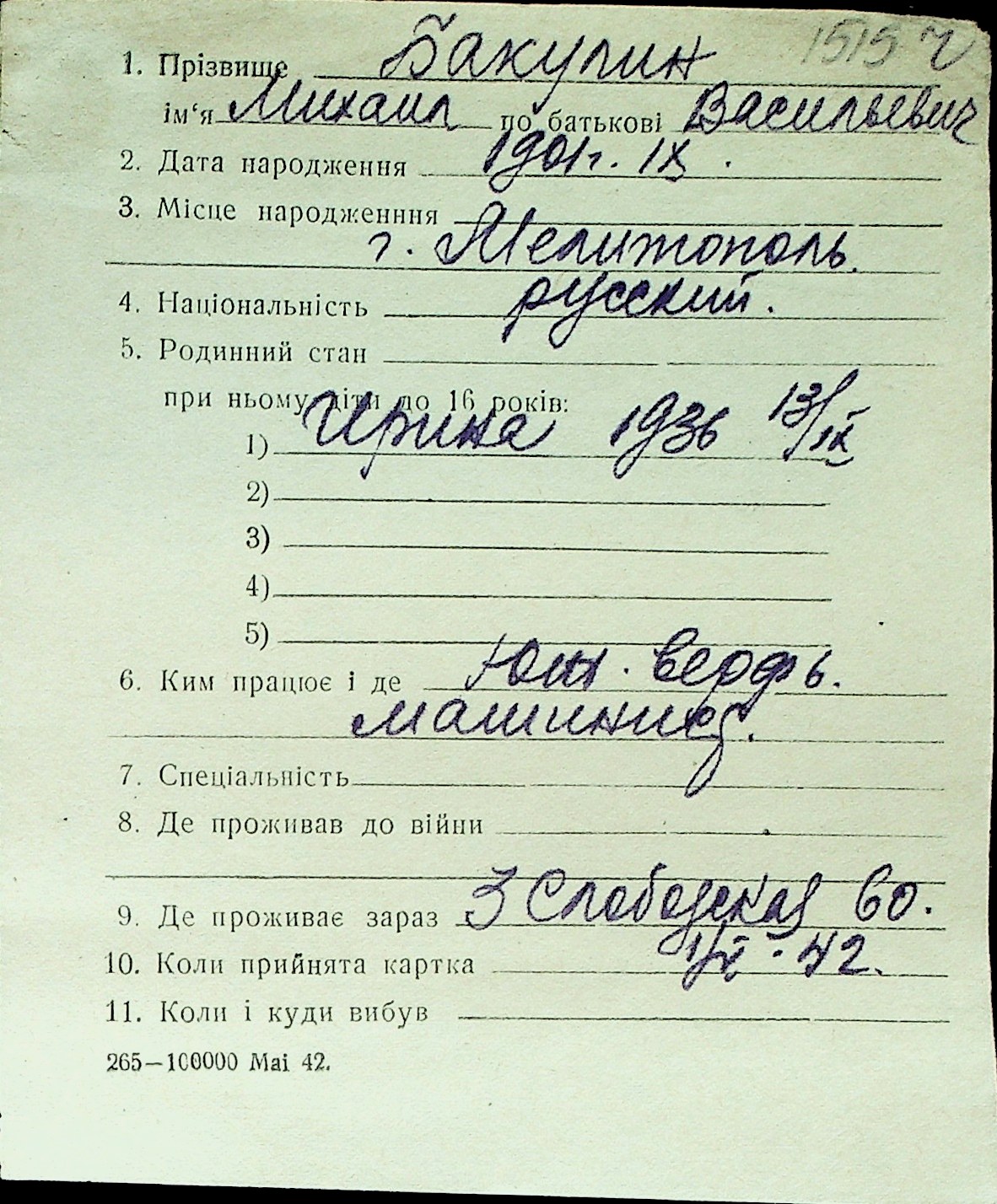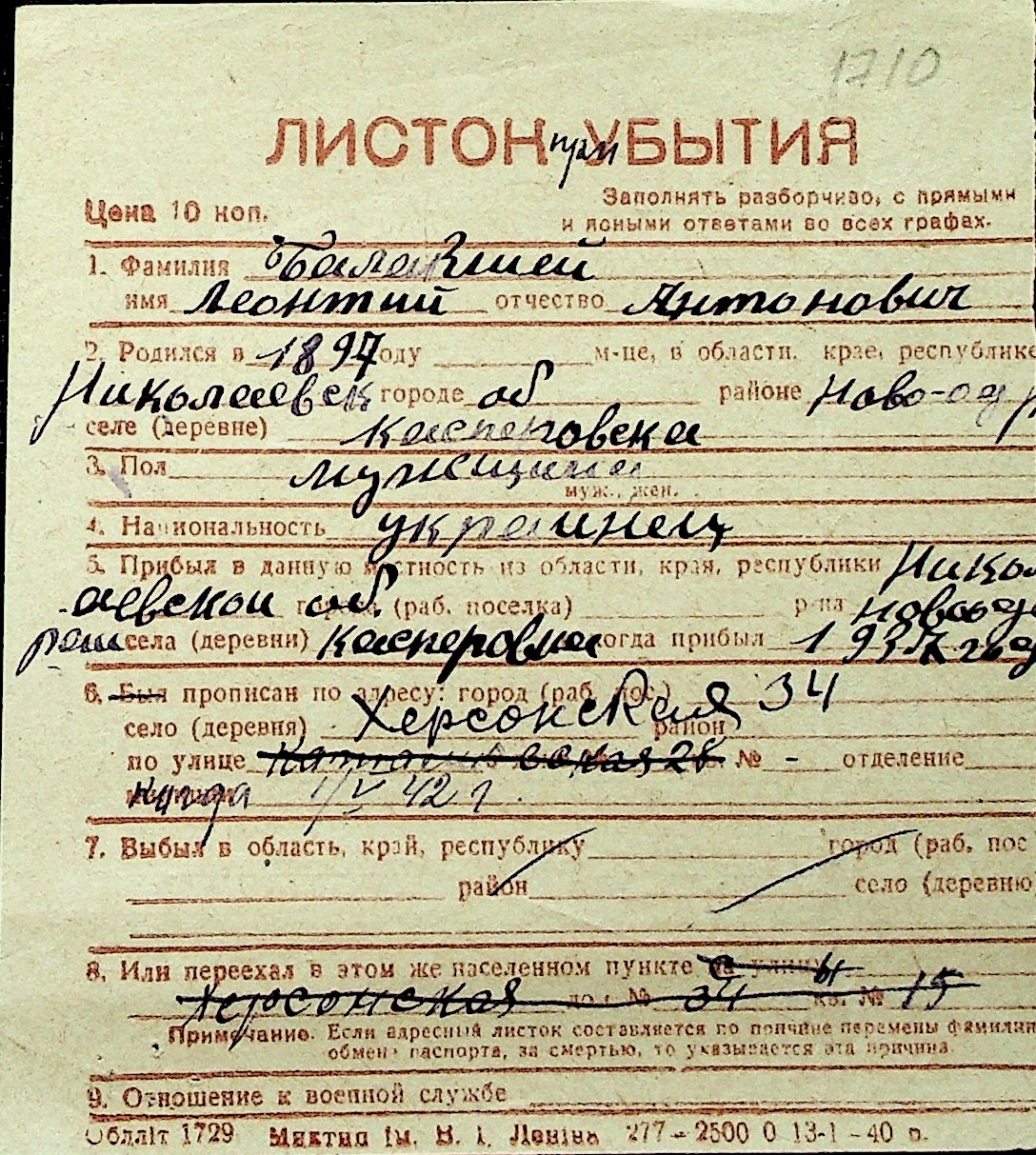 ◦ ◦ Перелік карток на осіб, які мешкали у м. Миколаїв у період окупації 1941–1944 років